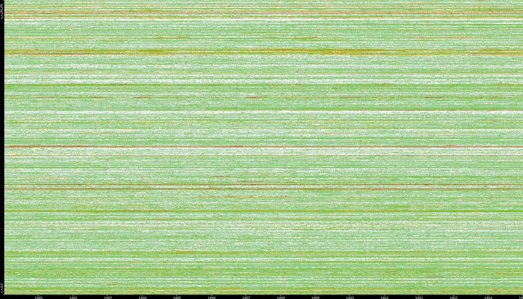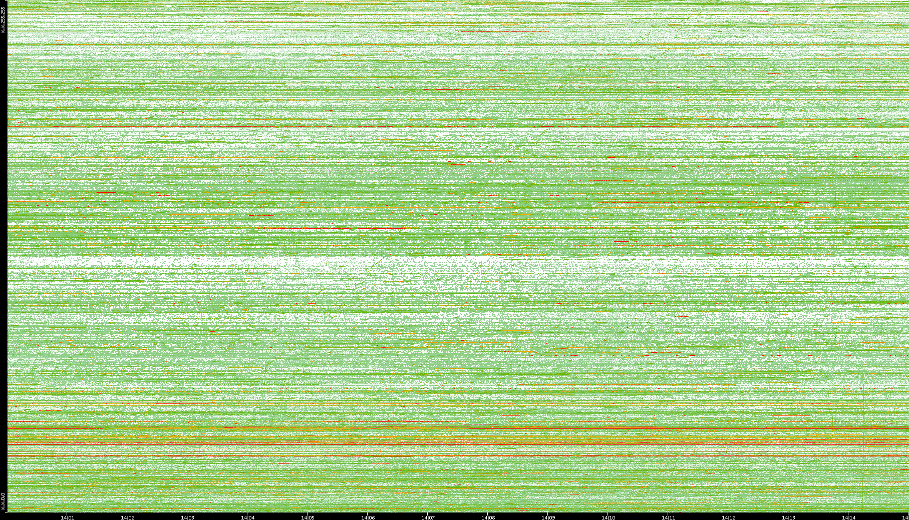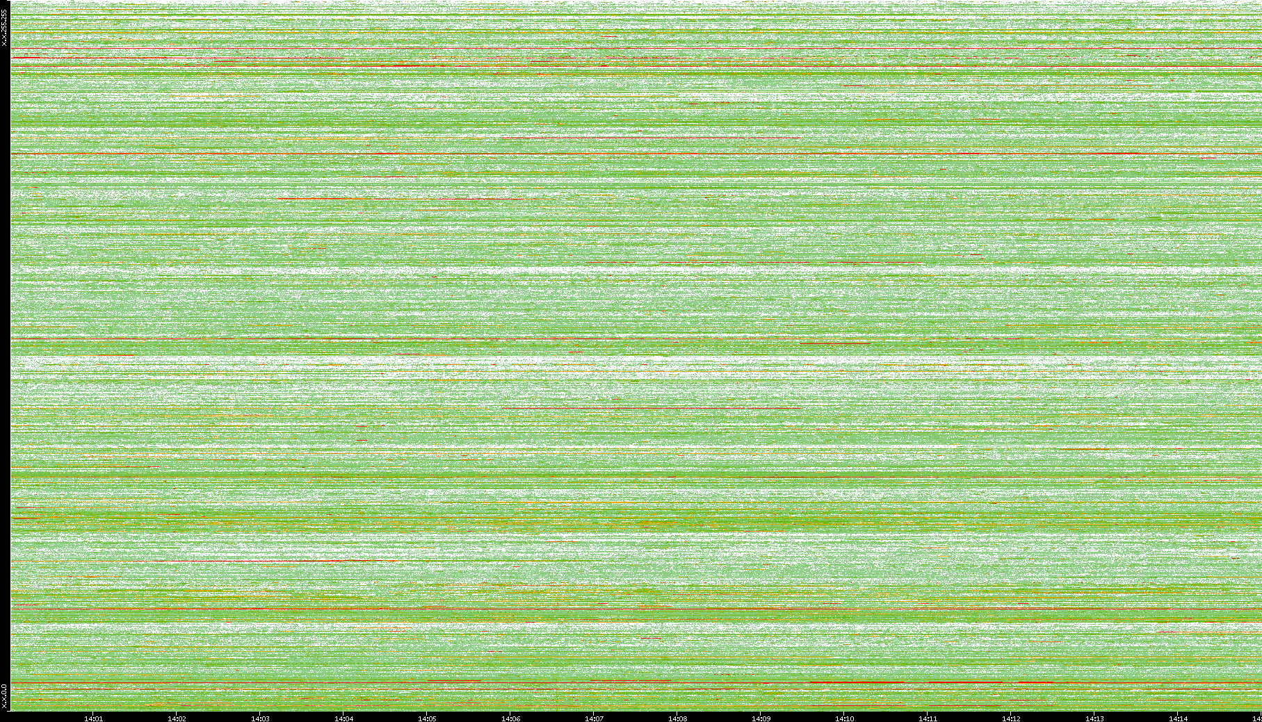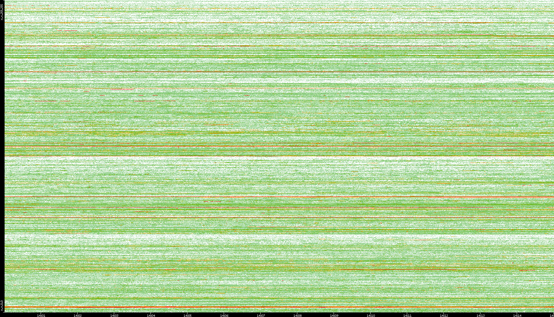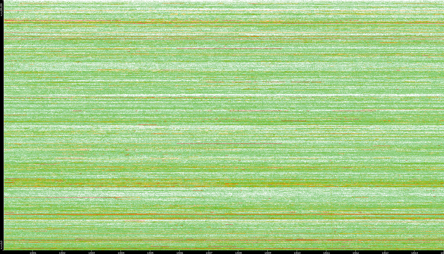| Date | Dest. IP vs. Time | Dest. Port vs. Time | Src. IP vs. Time | Src. Port vs. Time | Nb. of Packets vs. Time | Throughput vs. Time | Average Packet Size vs. Time | Entropy of Port vs. Time |