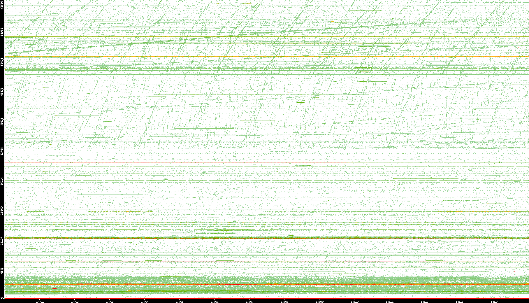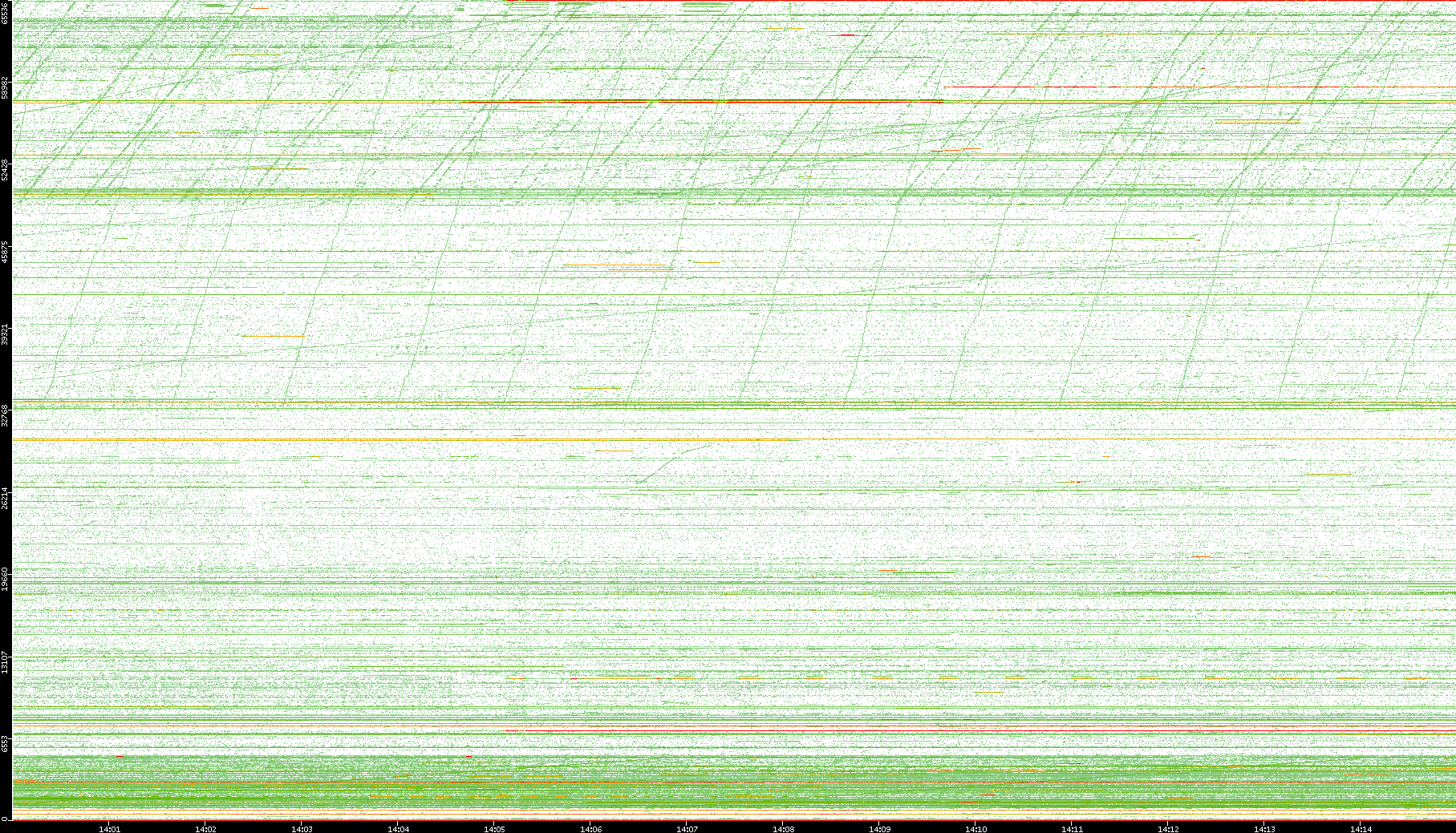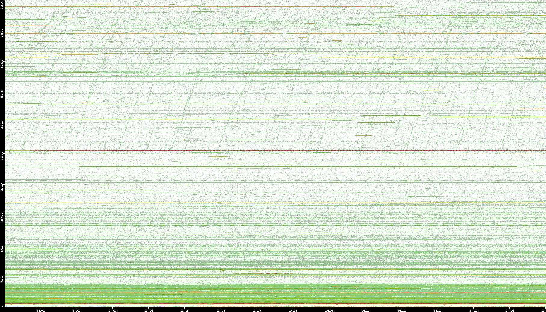 | Date | Dest. IP vs. Time | Dest. Port vs. Time | Src. IP vs. Time | Src. Port vs. Time | Nb. of Packets vs. Time | Throughput vs. Time | Average Packet Size vs. Time | Entropy of Port vs. Time |