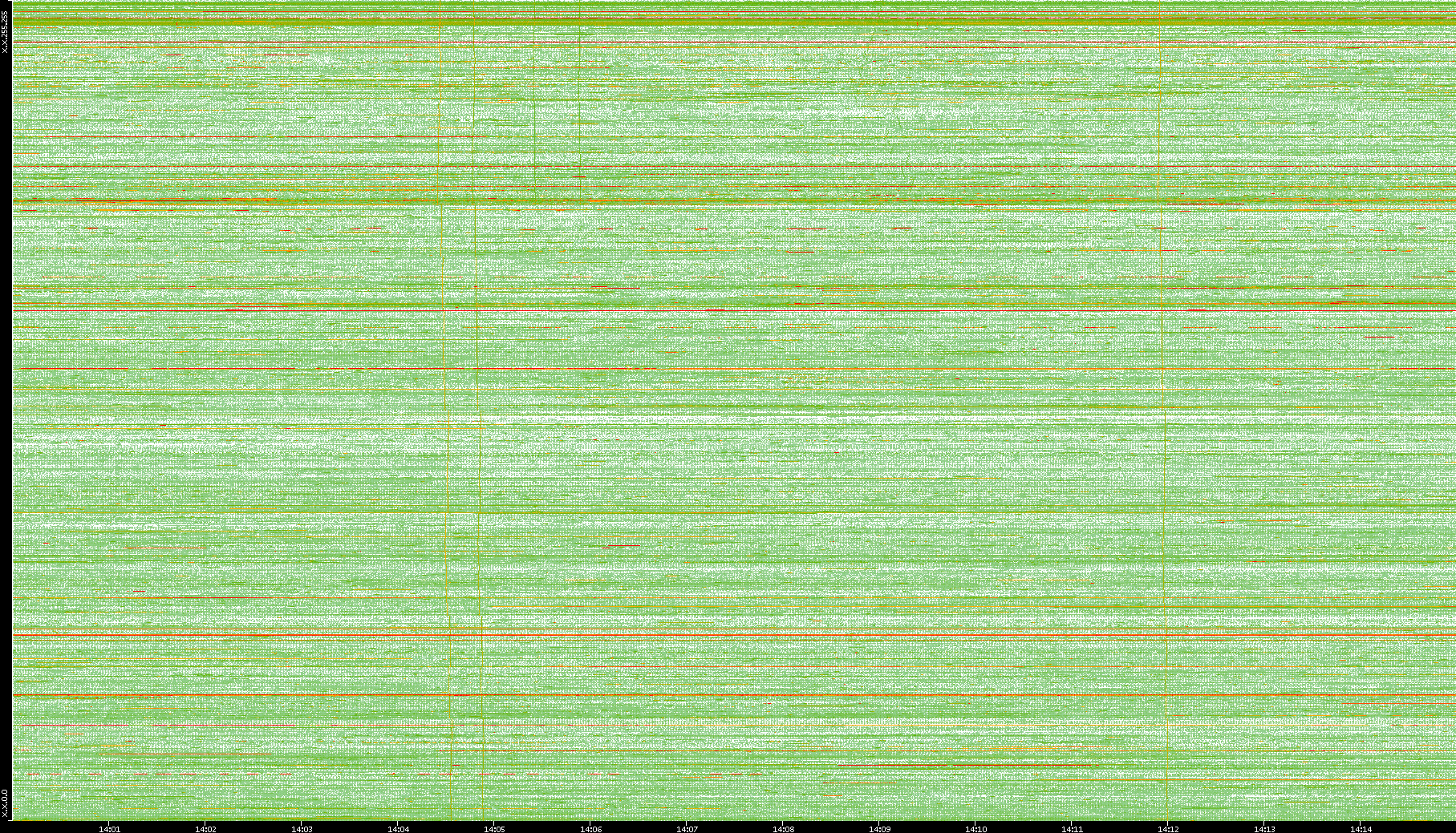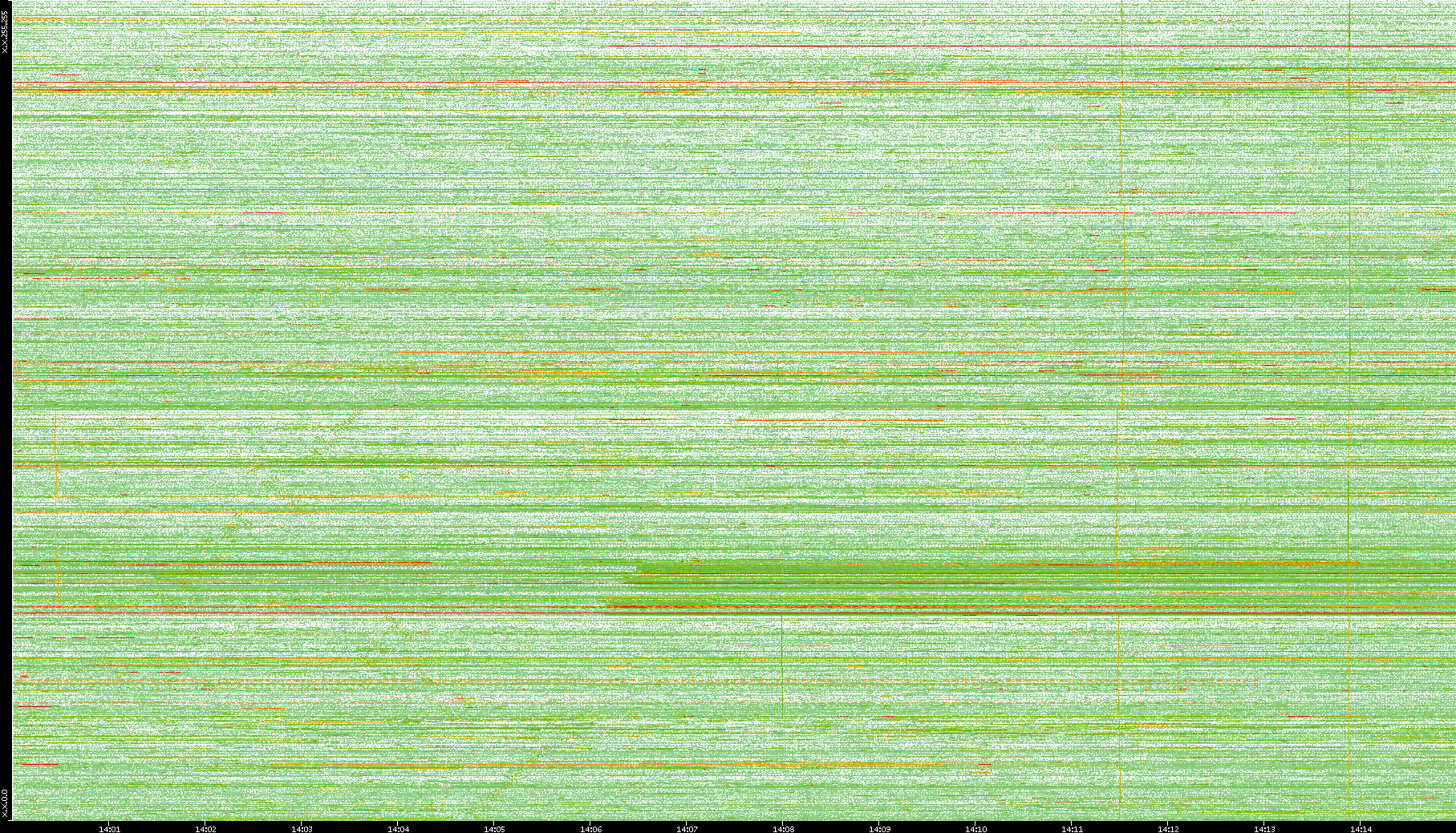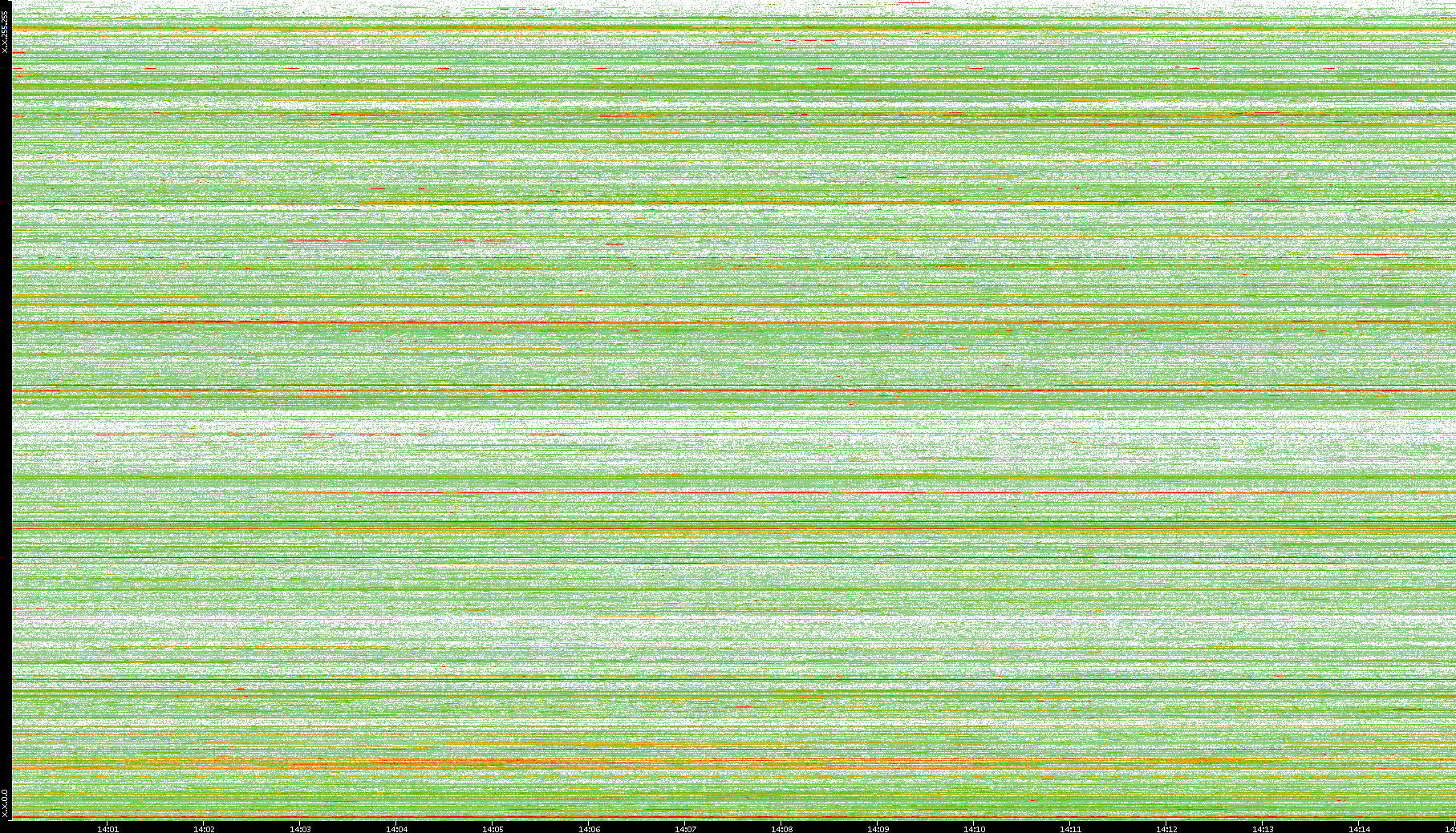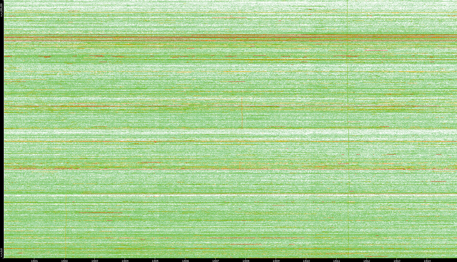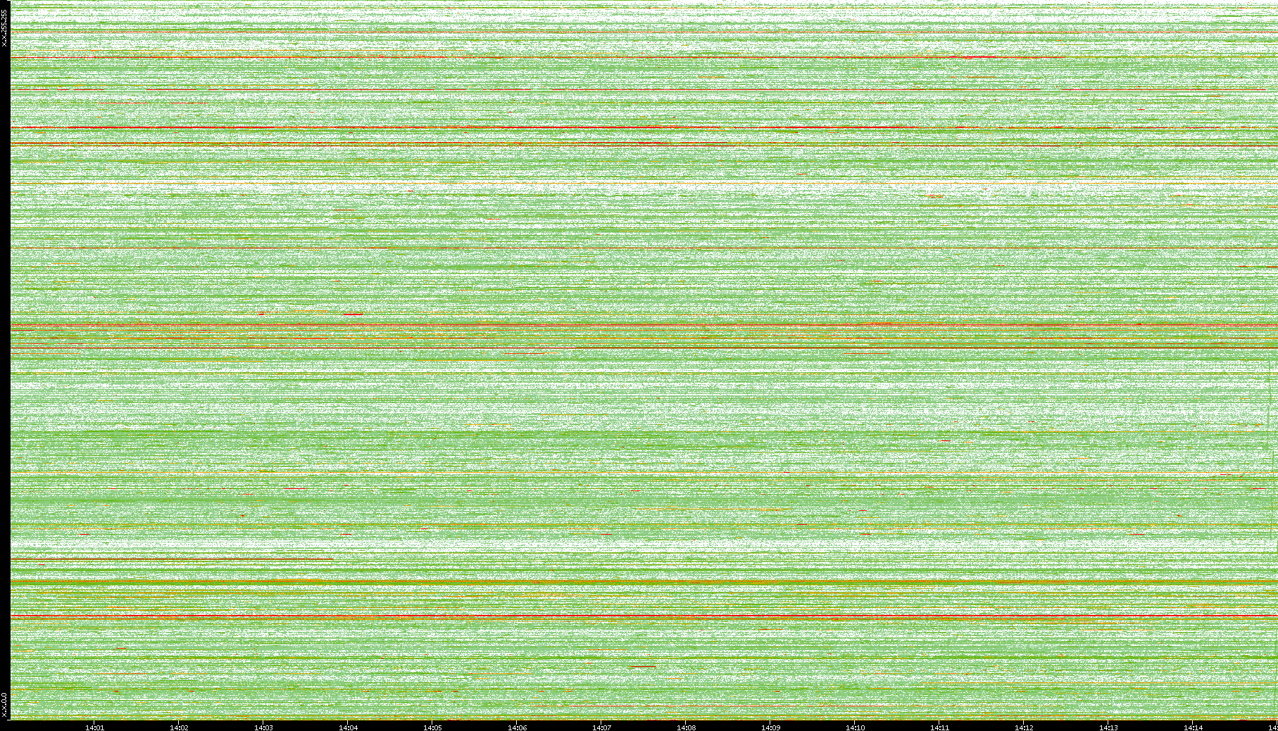 2008/01/14 Dest. IP vs. Time Dest. Port vs. Time Src. IP vs. Time Src. Port vs. Time Nb. of Packets vs. Time Throughput vs. Time Average Packet Size vs. Time Entropy of Port vs. Time
