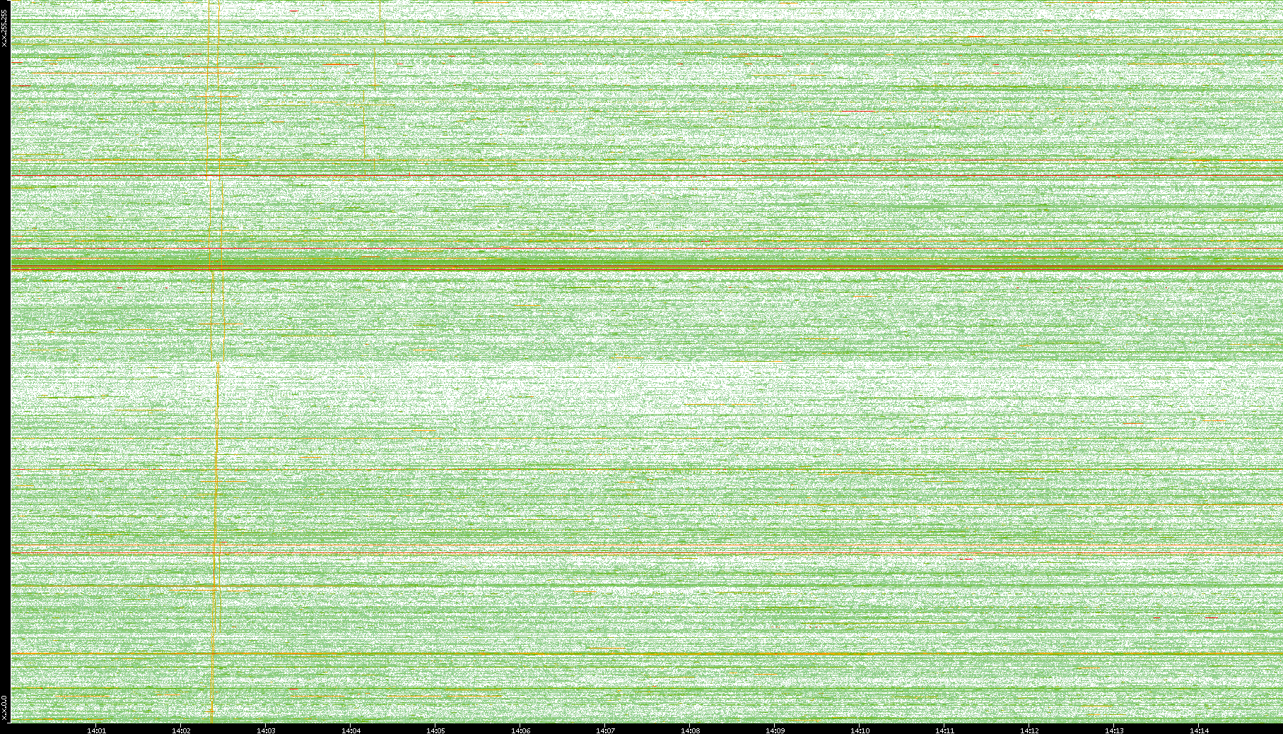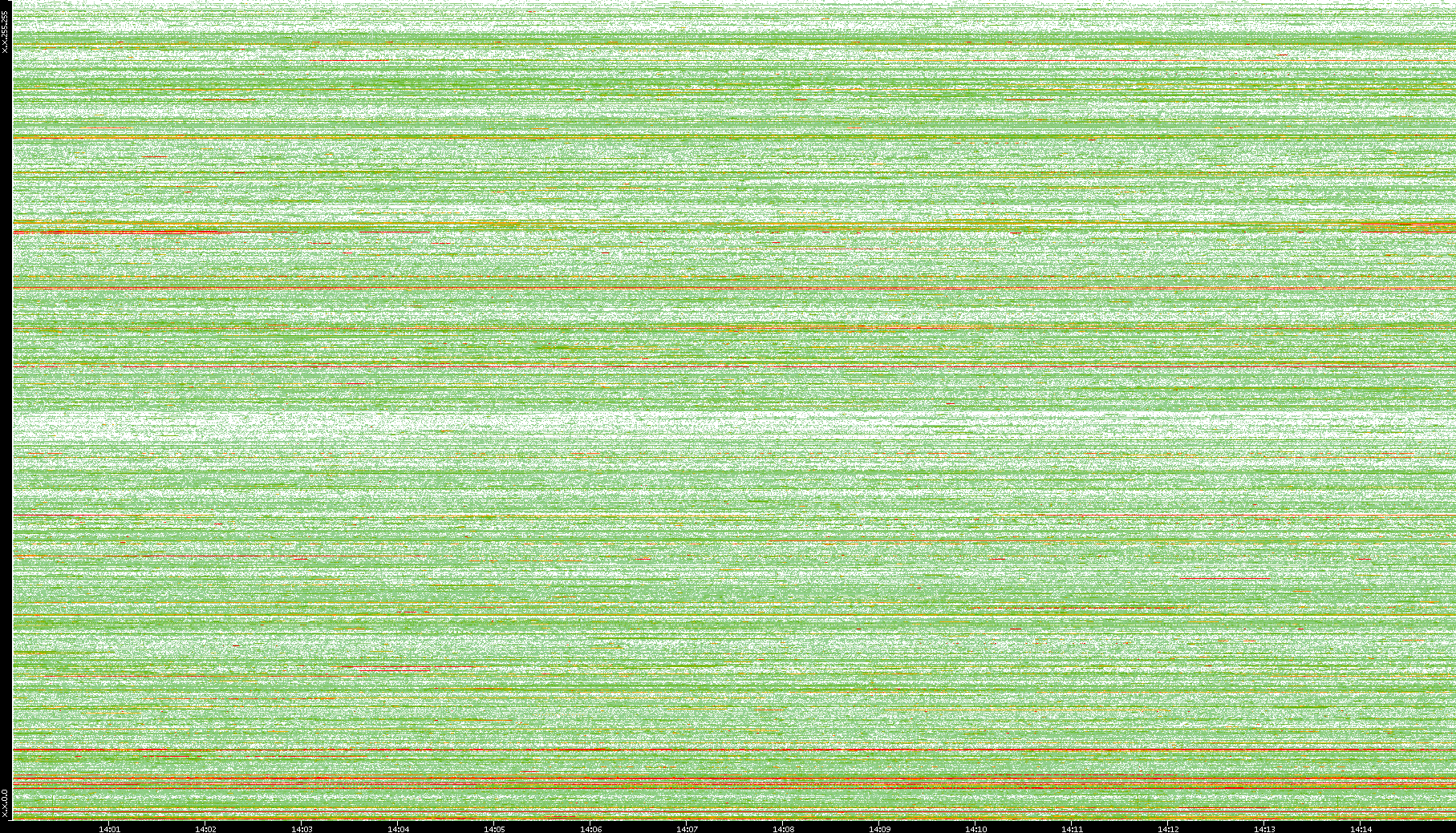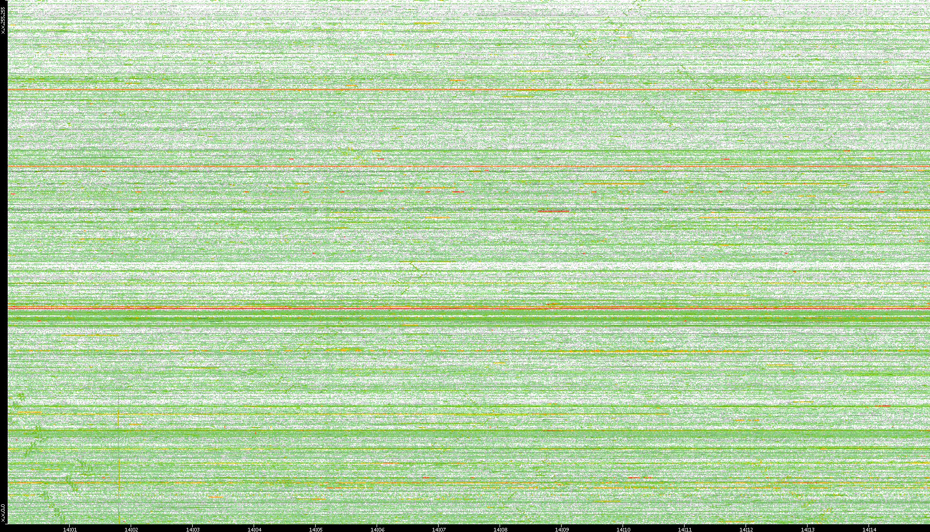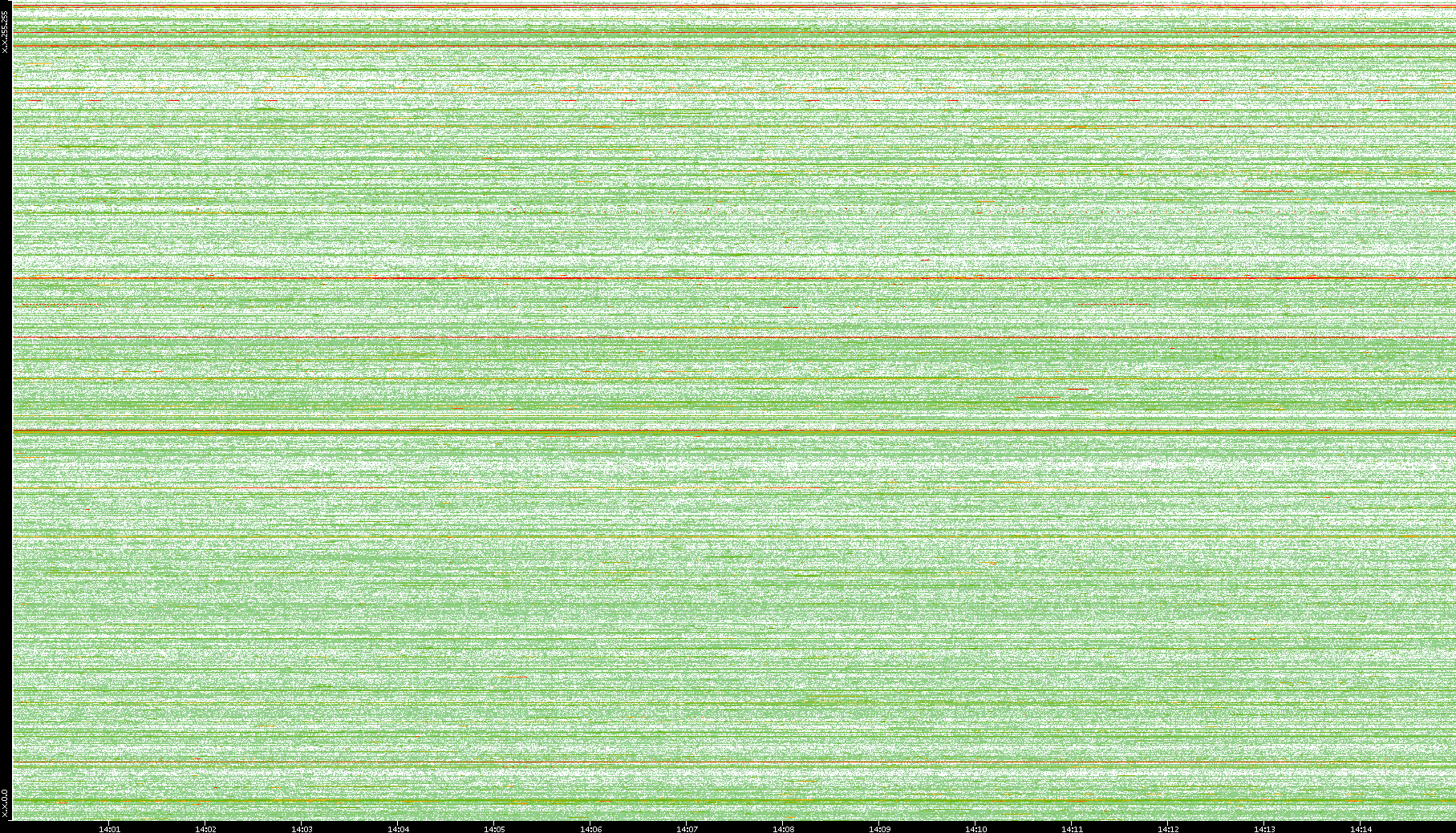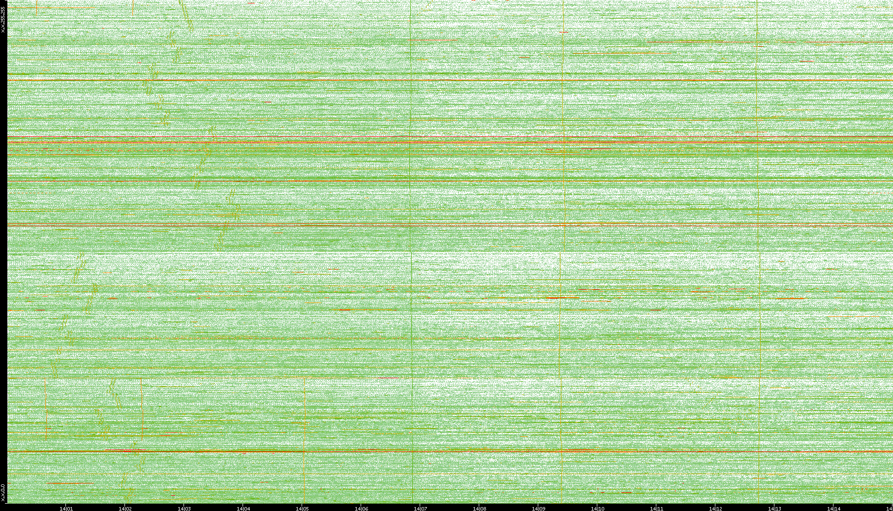 2008/01/14 Dest. IP vs. Time Dest. Port vs. Time Src. IP vs. Time Src. Port vs. Time Nb. of Packets vs. Time Throughput vs. Time Average Packet Size vs. Time Entropy of Port vs. Time