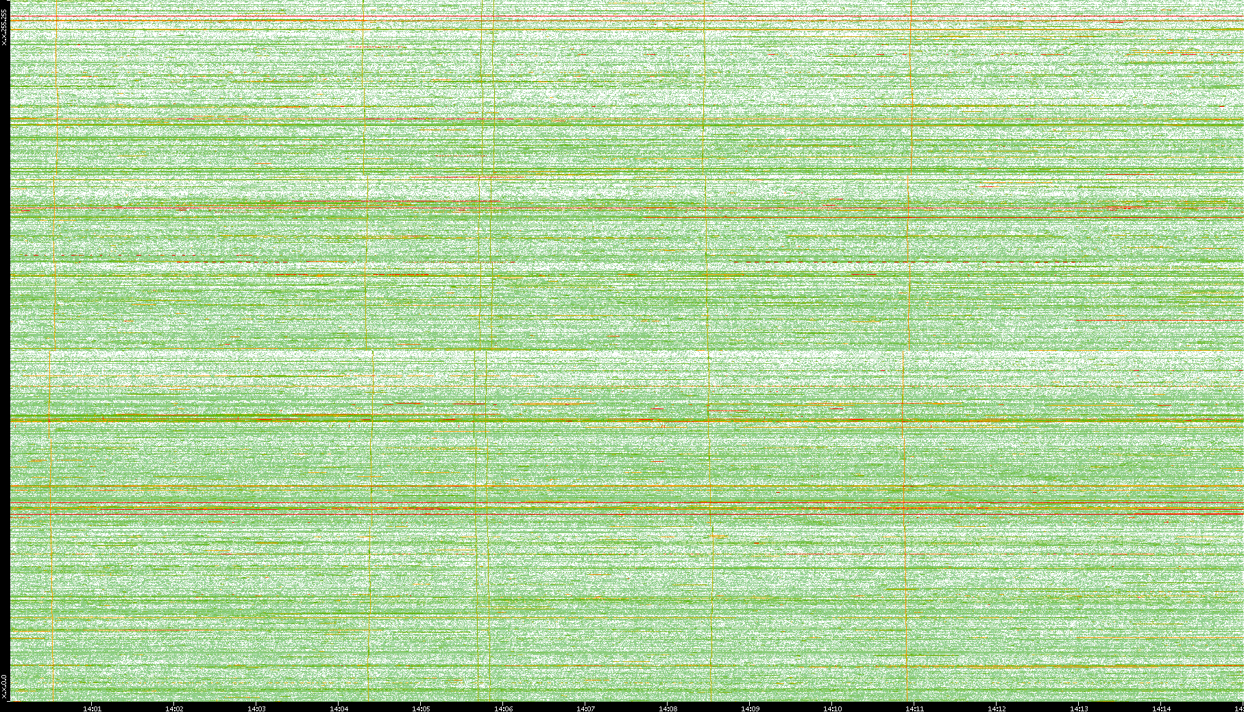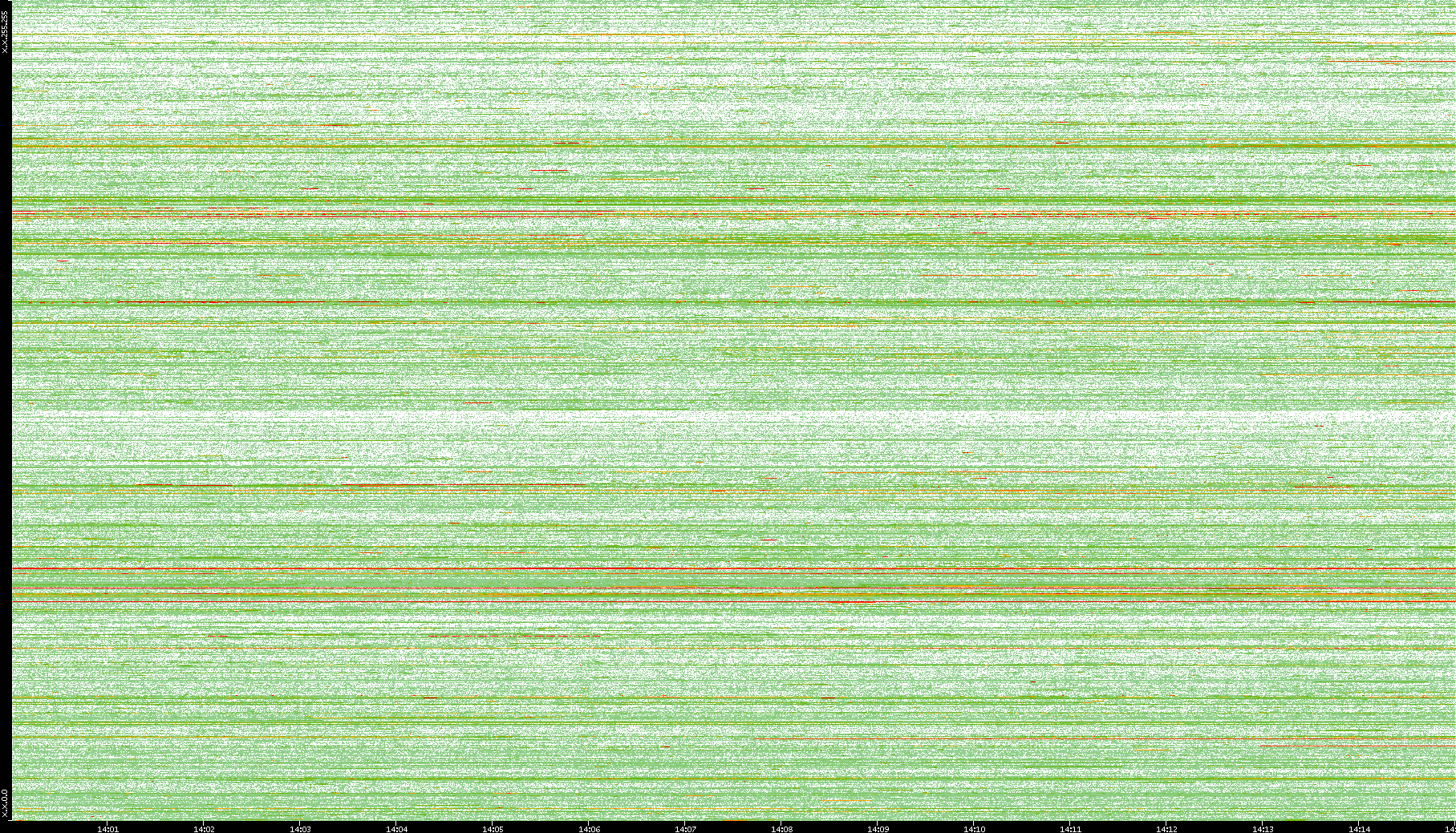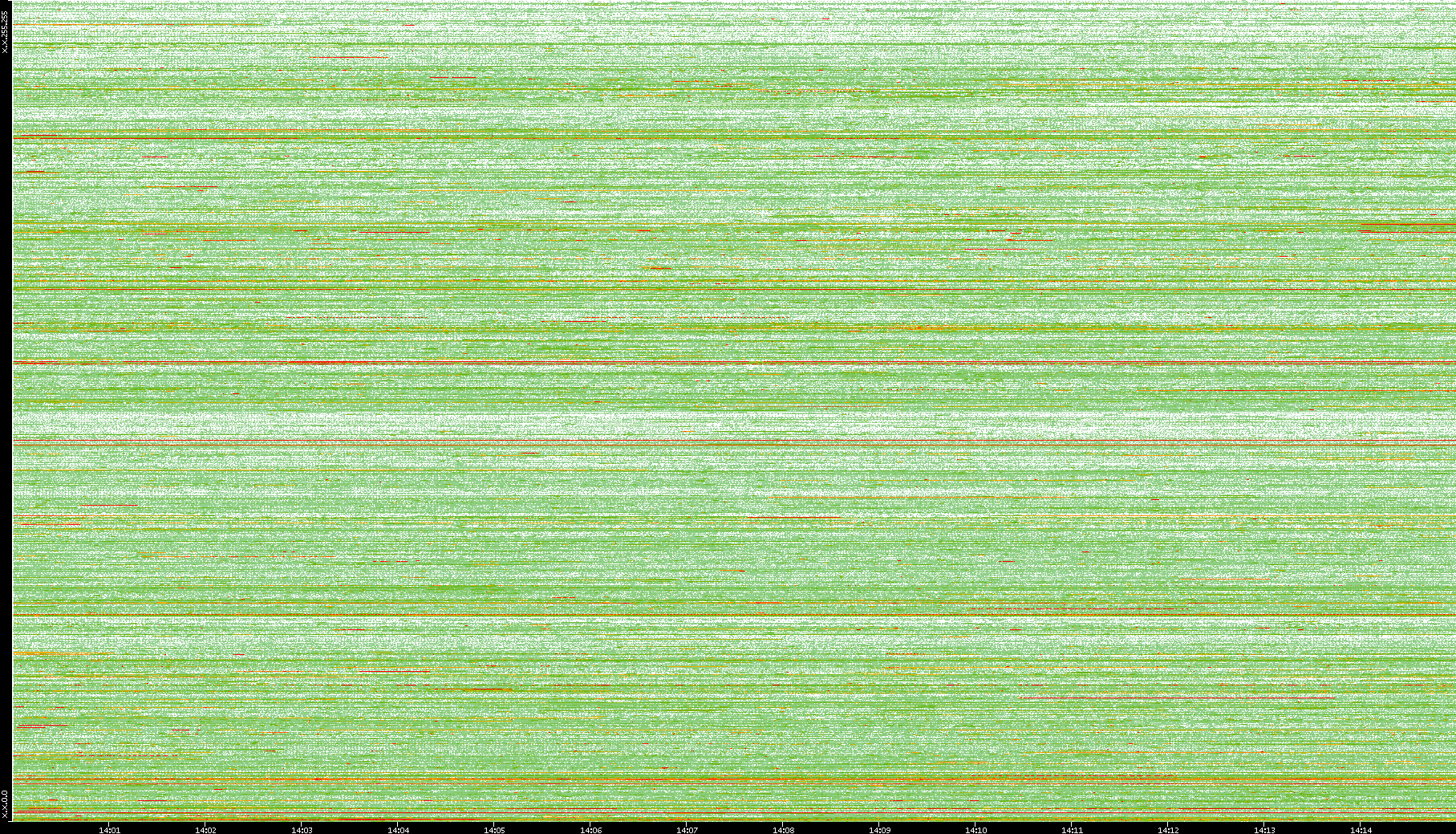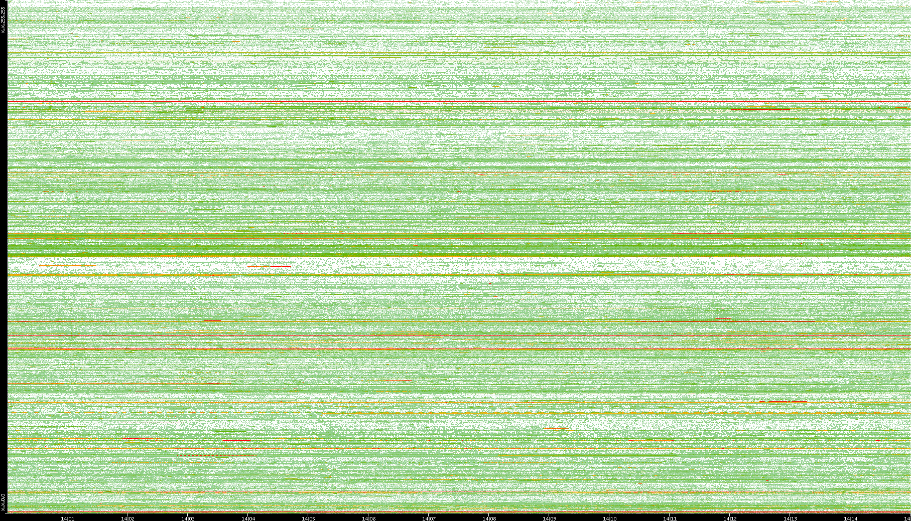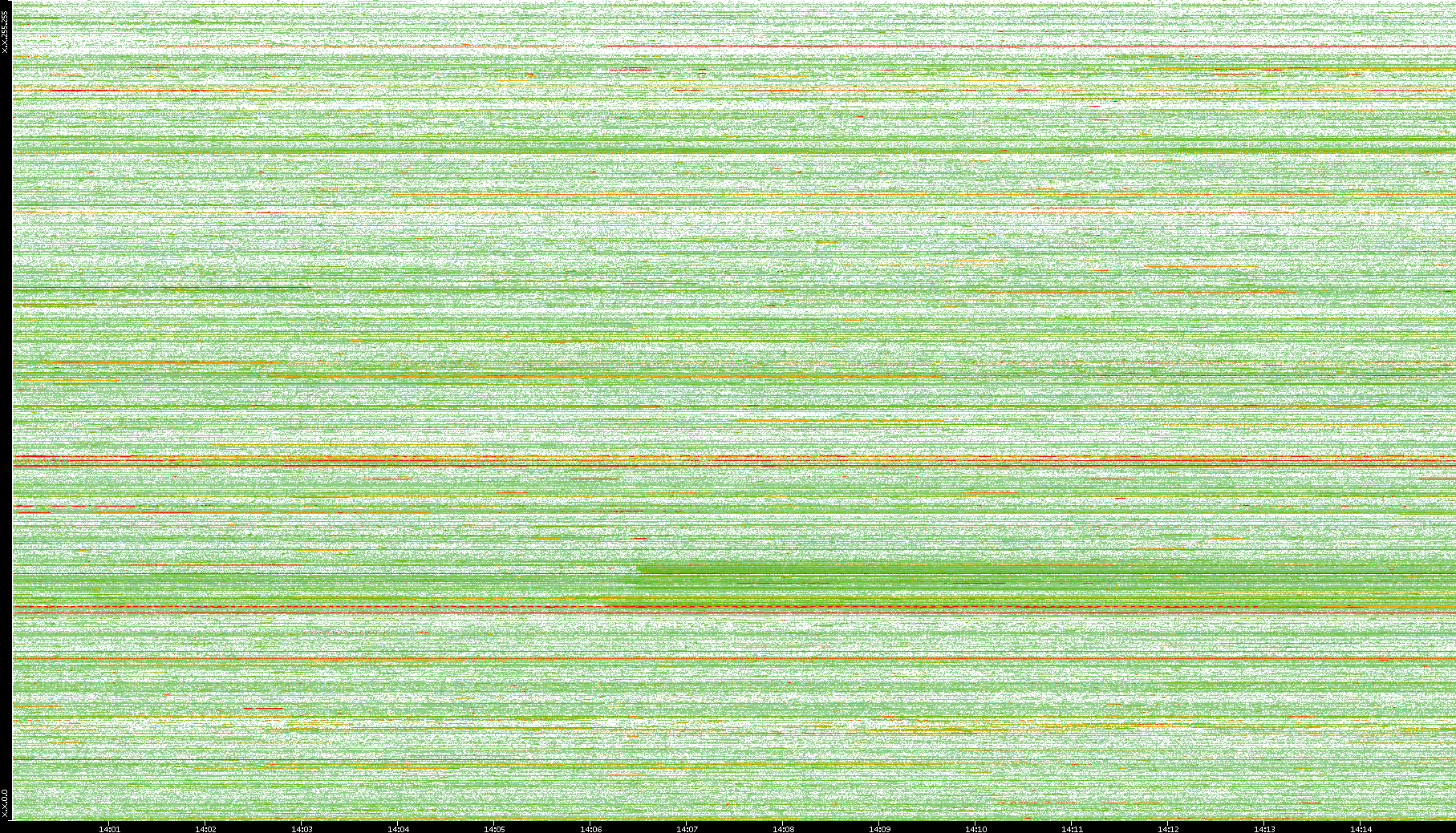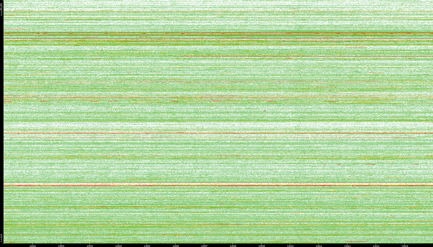 2008/01/14 Dest. IP vs. Time Dest. Port vs. Time Src. IP vs. Time Src. Port vs. Time Nb. of Packets vs. Time Throughput vs. Time Average Packet Size vs. Time Entropy of Port vs. Time