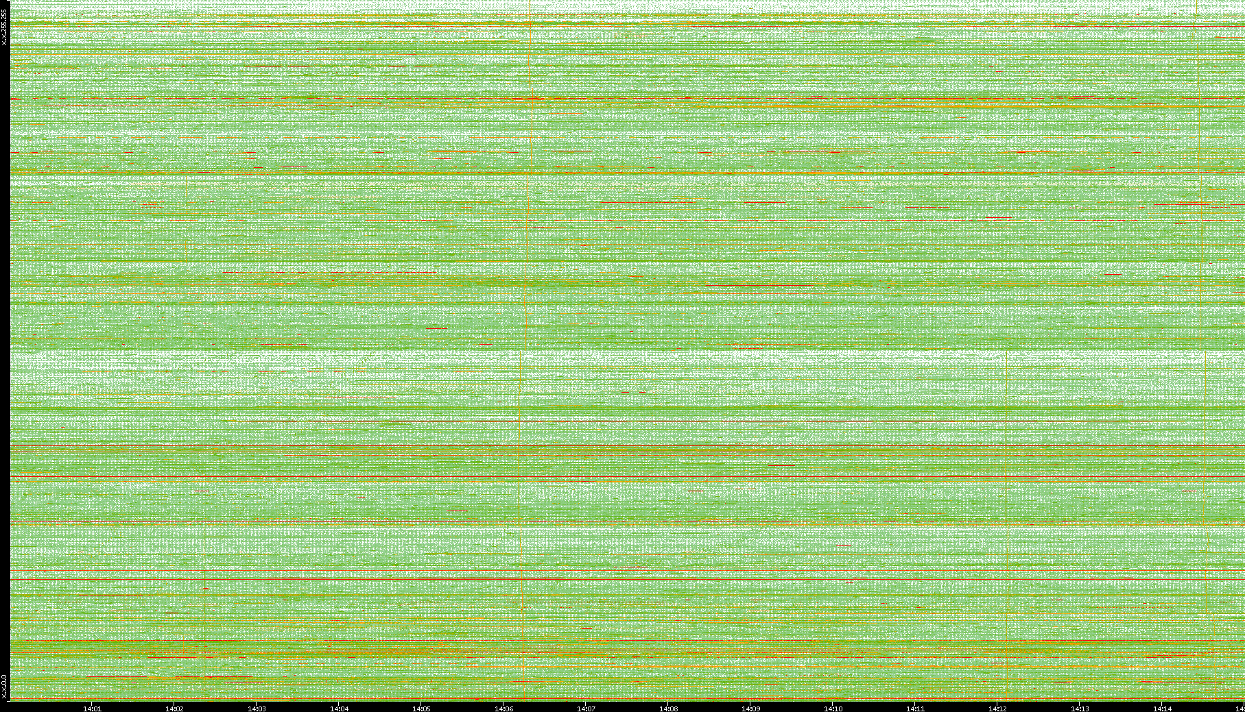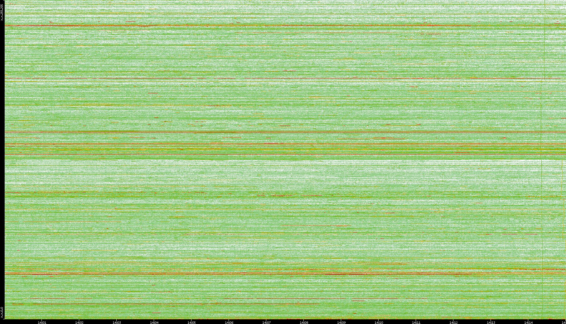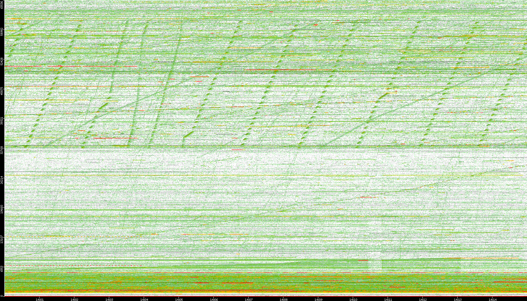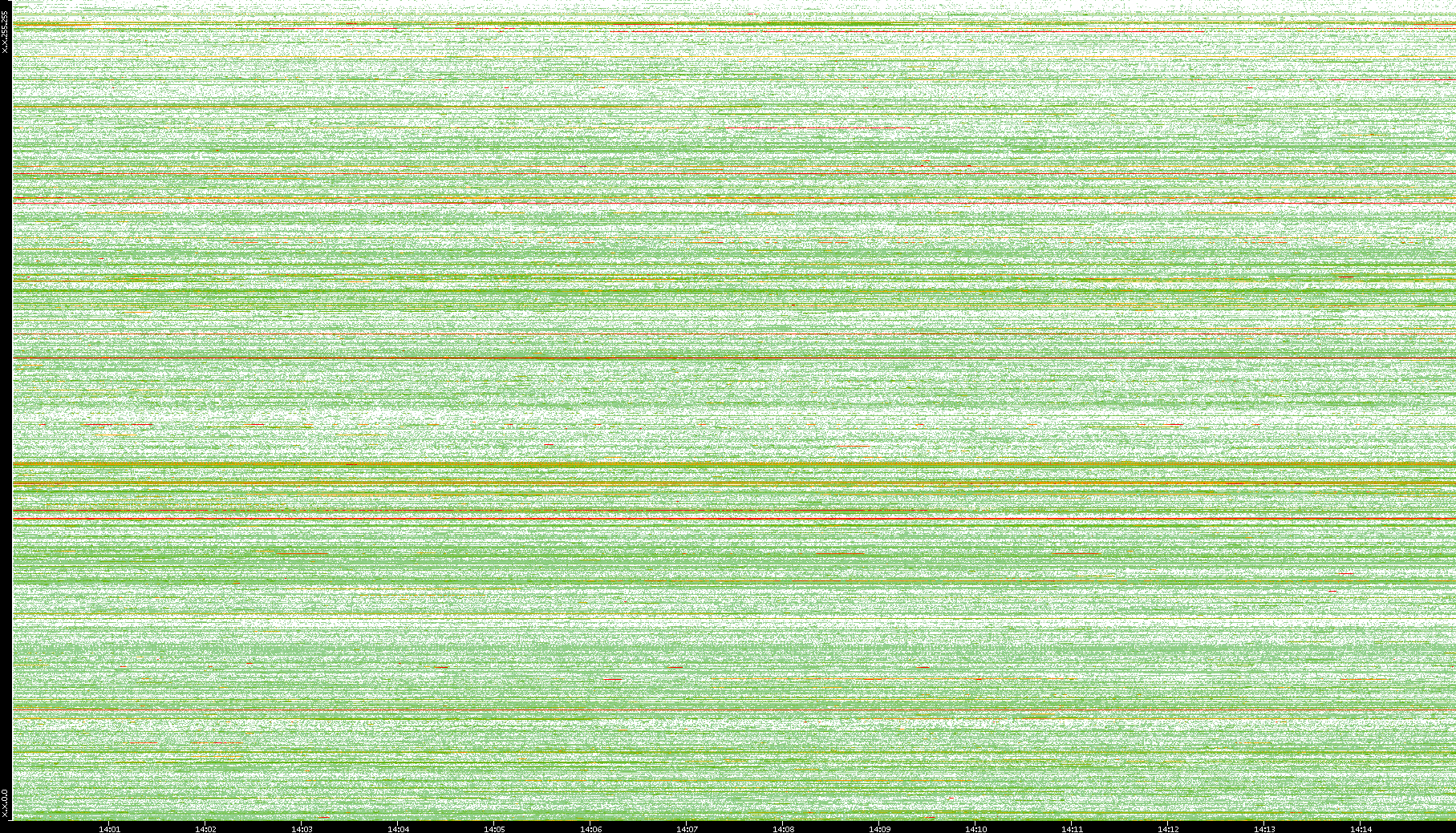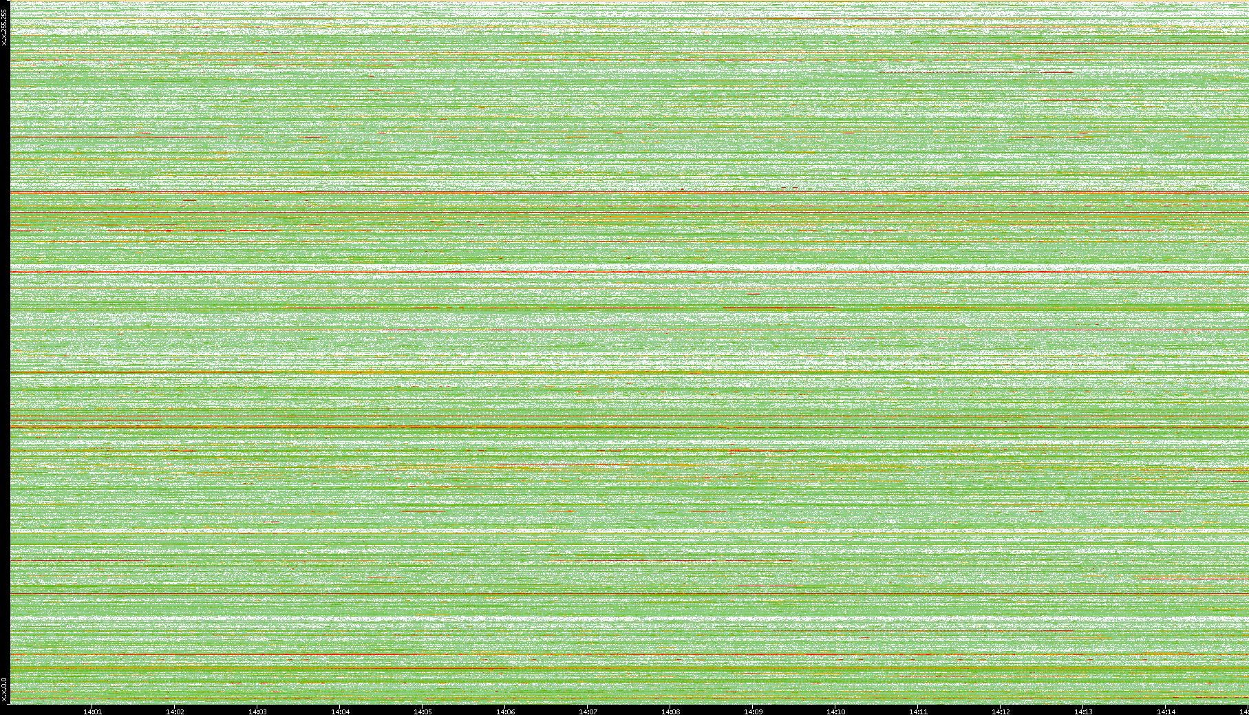 2008/01/14 Dest. IP vs. Time Dest. Port vs. Time Src. IP vs. Time Src. Port vs. Time Nb. of Packets vs. Time Throughput vs. Time Average Packet Size vs. Time Entropy of Port vs. Time