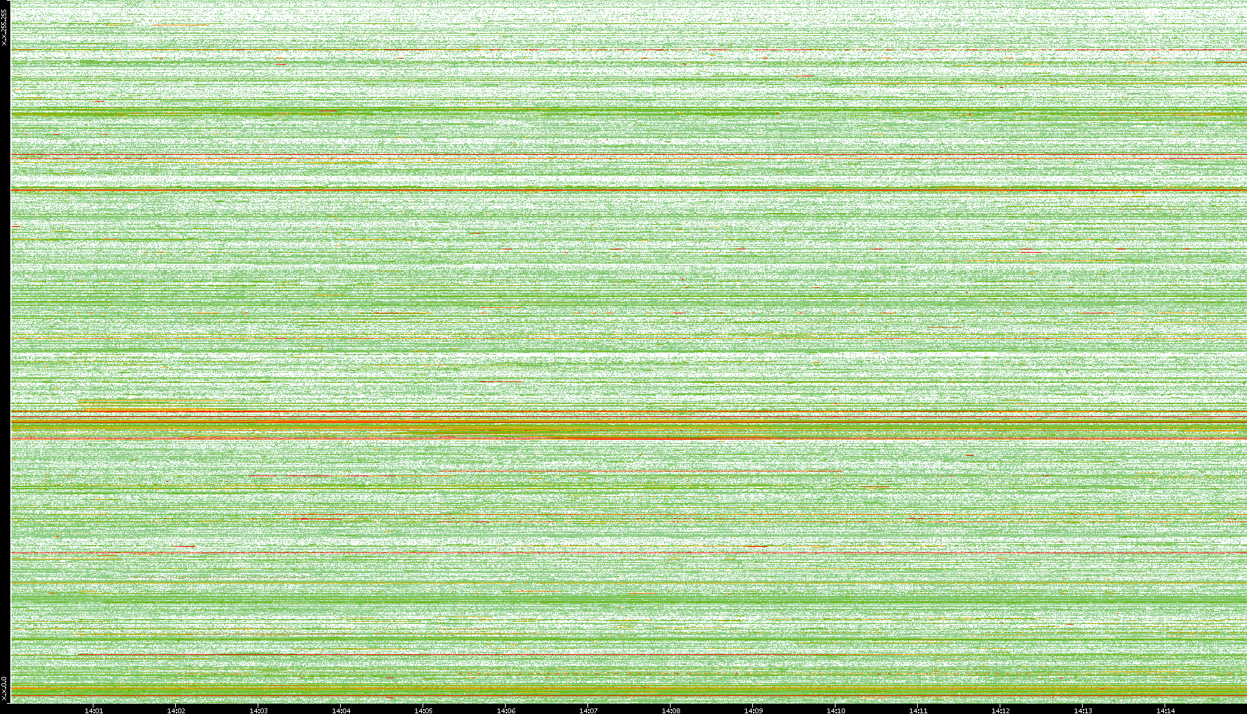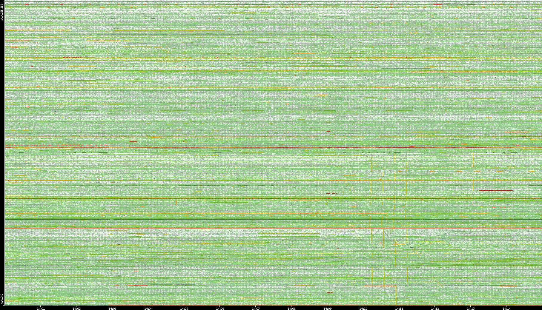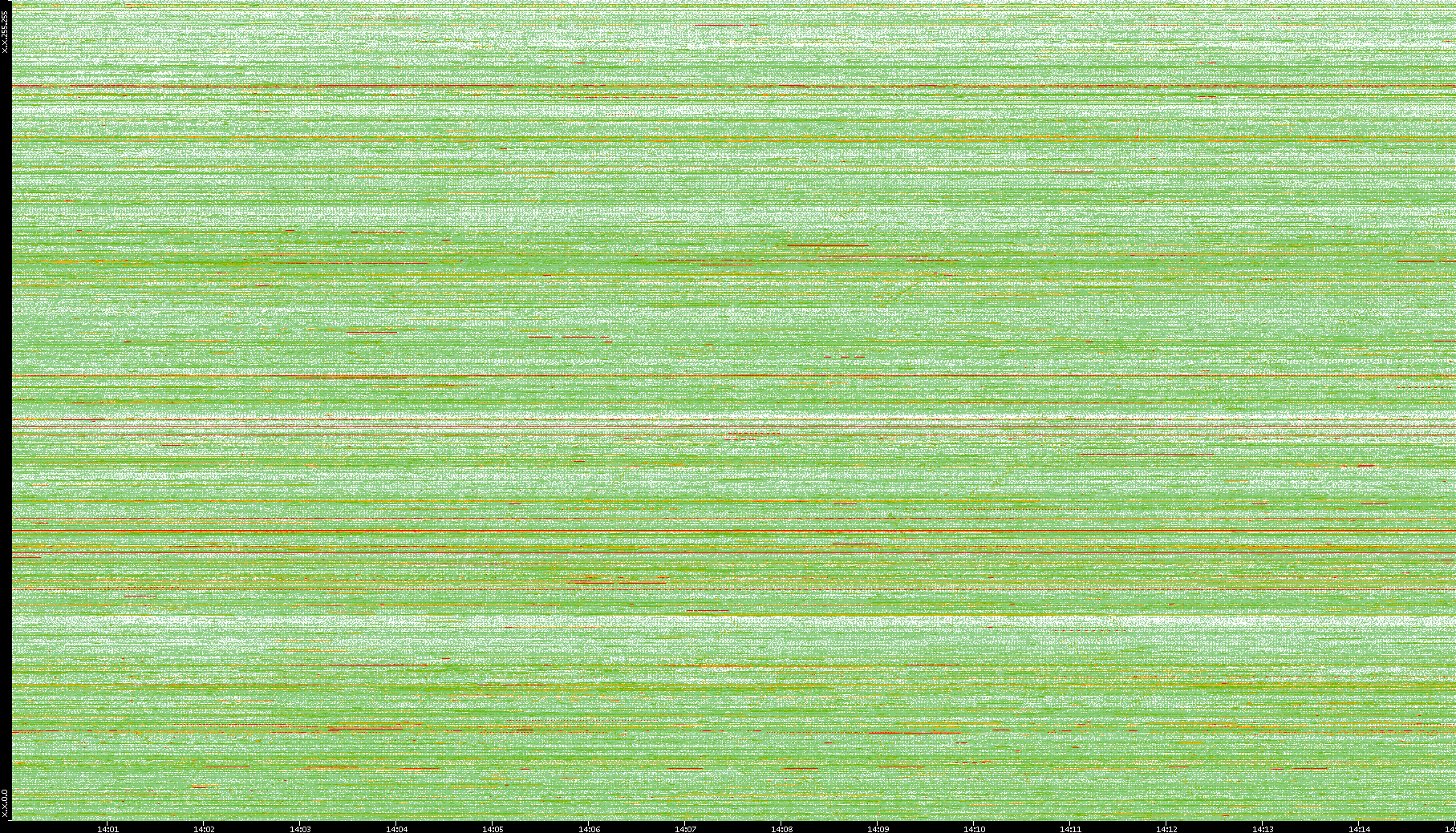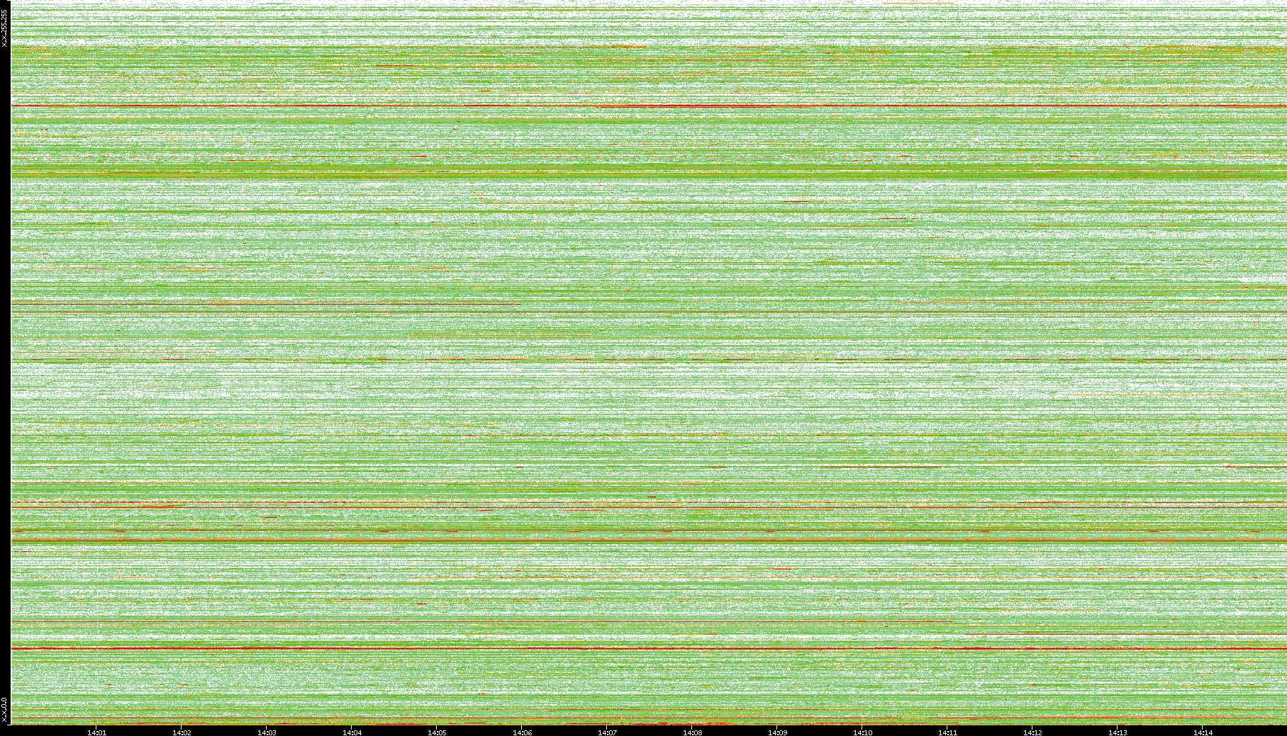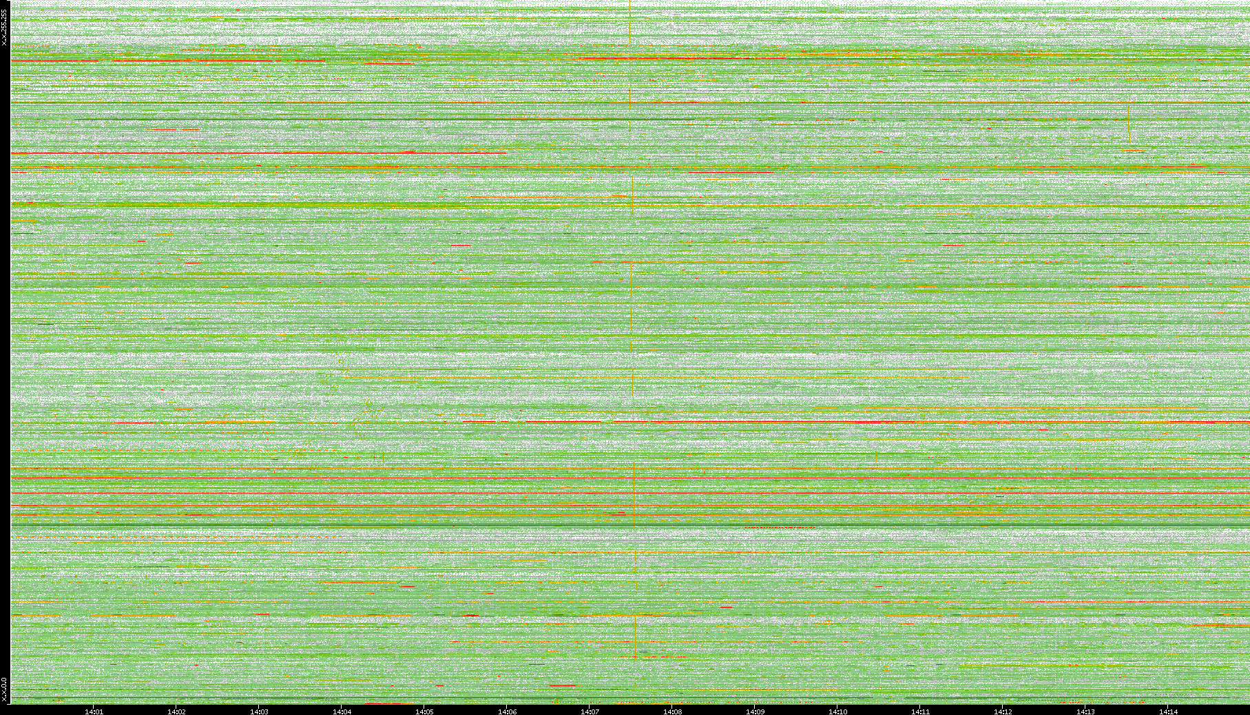 2008/01/14 Dest. IP vs. Time Dest. Port vs. Time Src. IP vs. Time Src. Port vs. Time Nb. of Packets vs. Time Throughput vs. Time Average Packet Size vs. Time Entropy of Port vs. Time