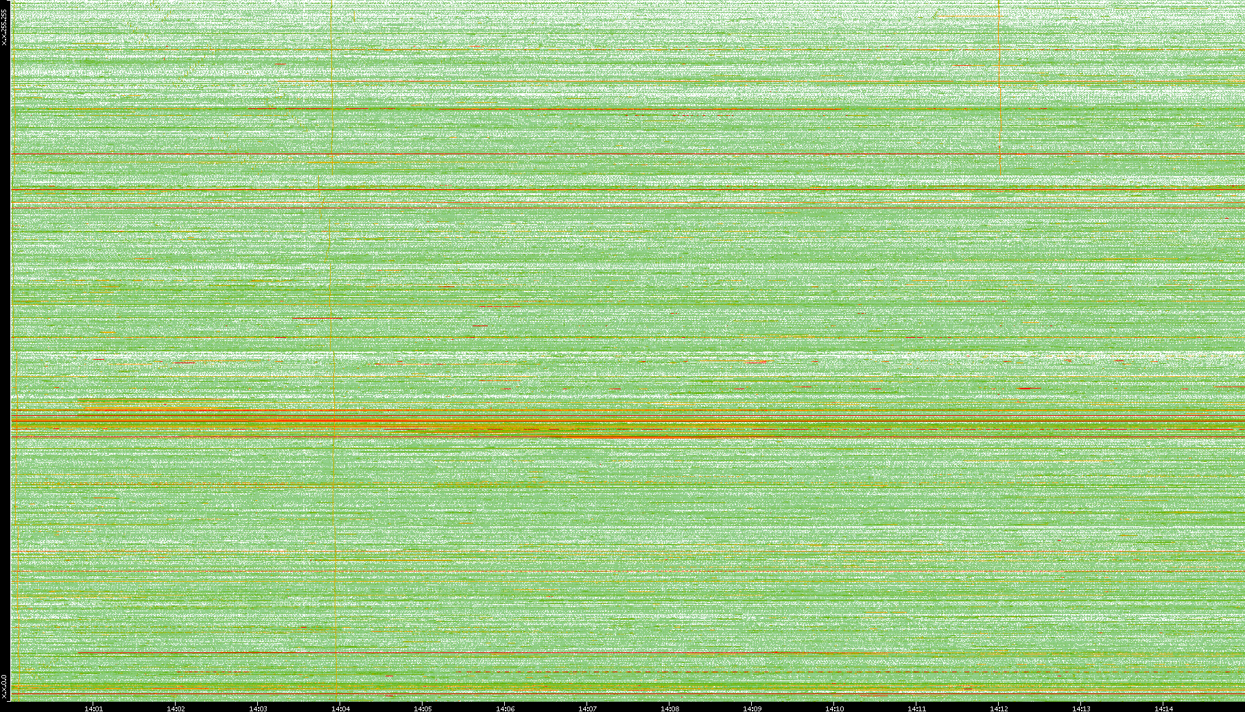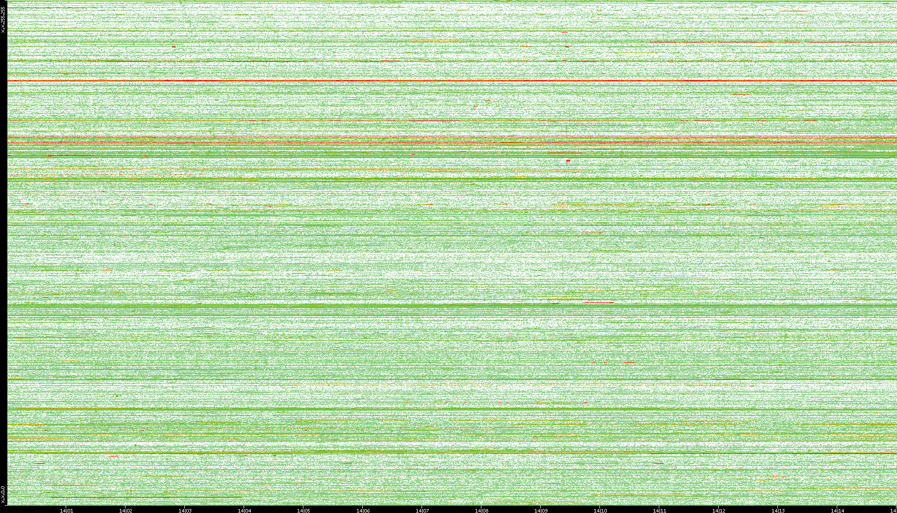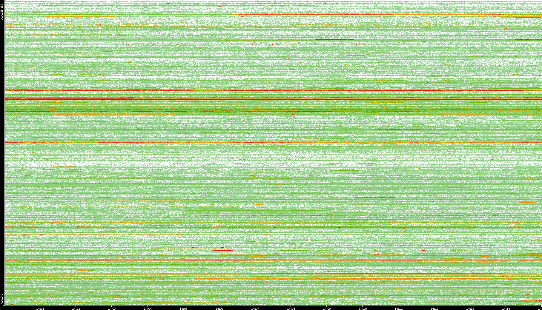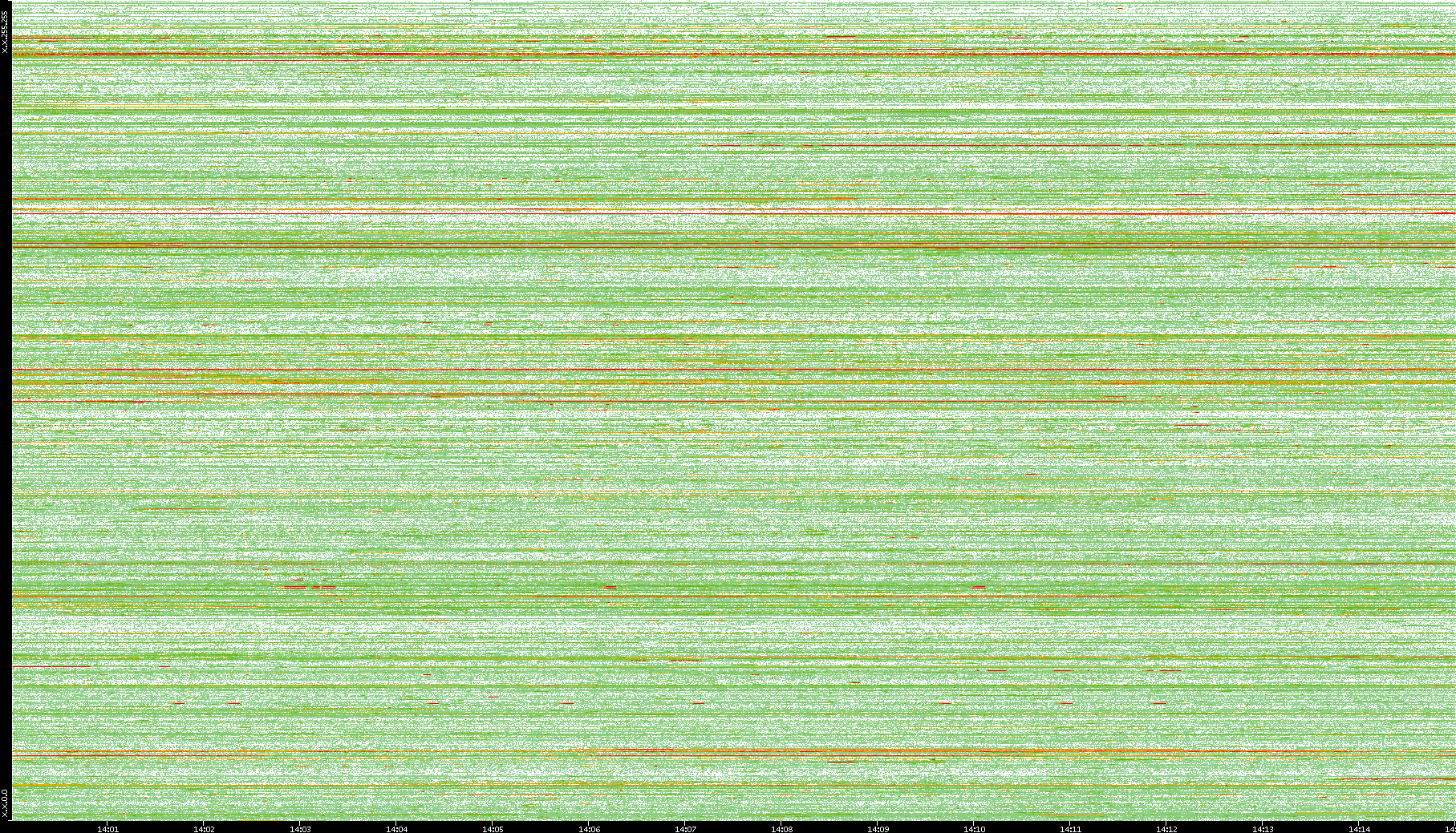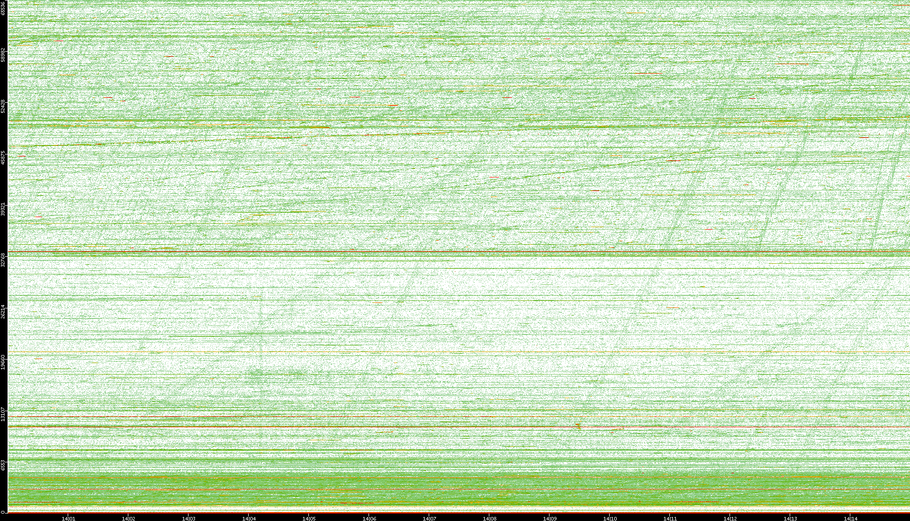 2008/01/14 Dest. IP vs. Time Dest. Port vs. Time Src. IP vs. Time Src. Port vs. Time Nb. of Packets vs. Time Throughput vs. Time Average Packet Size vs. Time Entropy of Port vs. Time