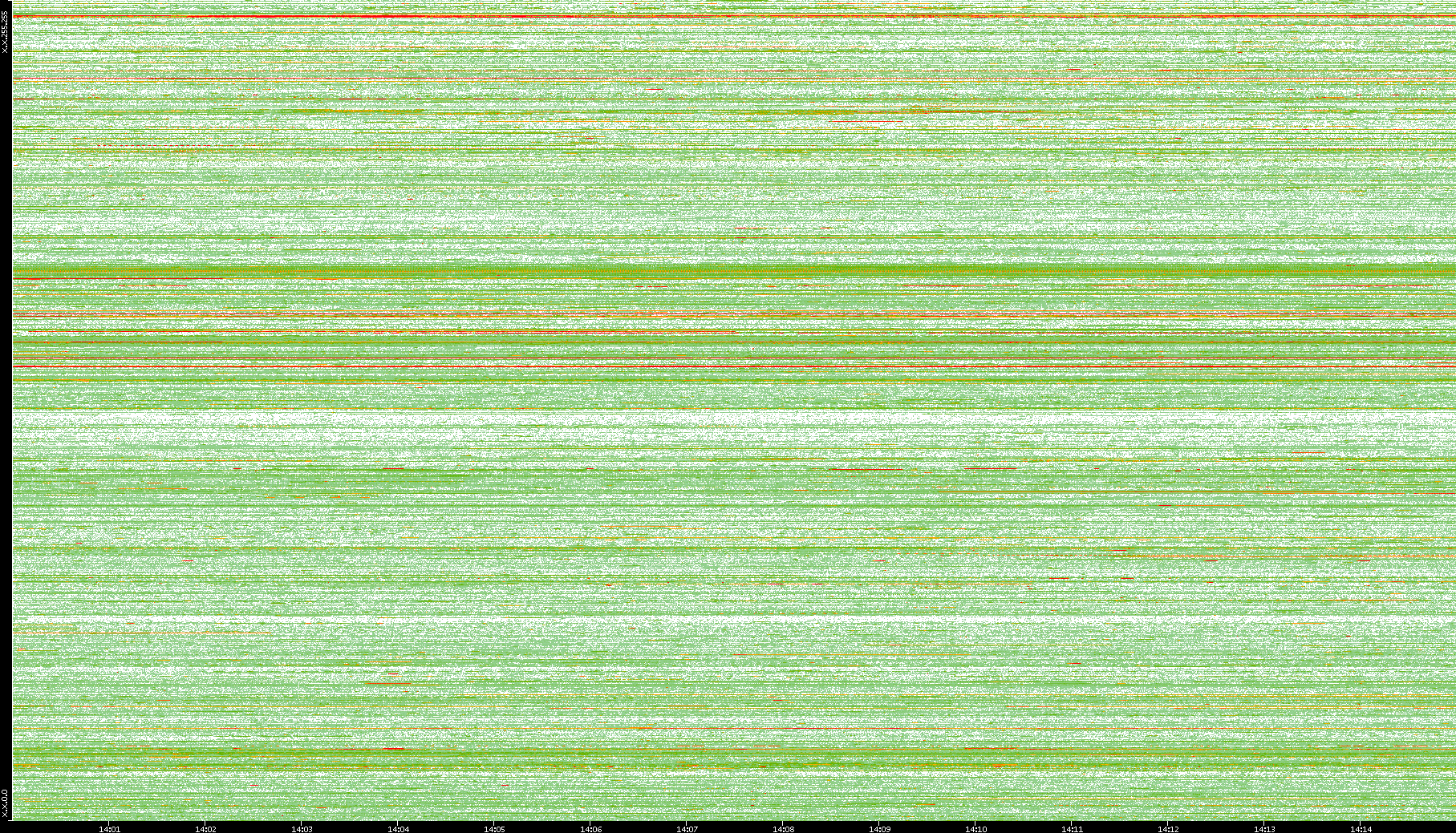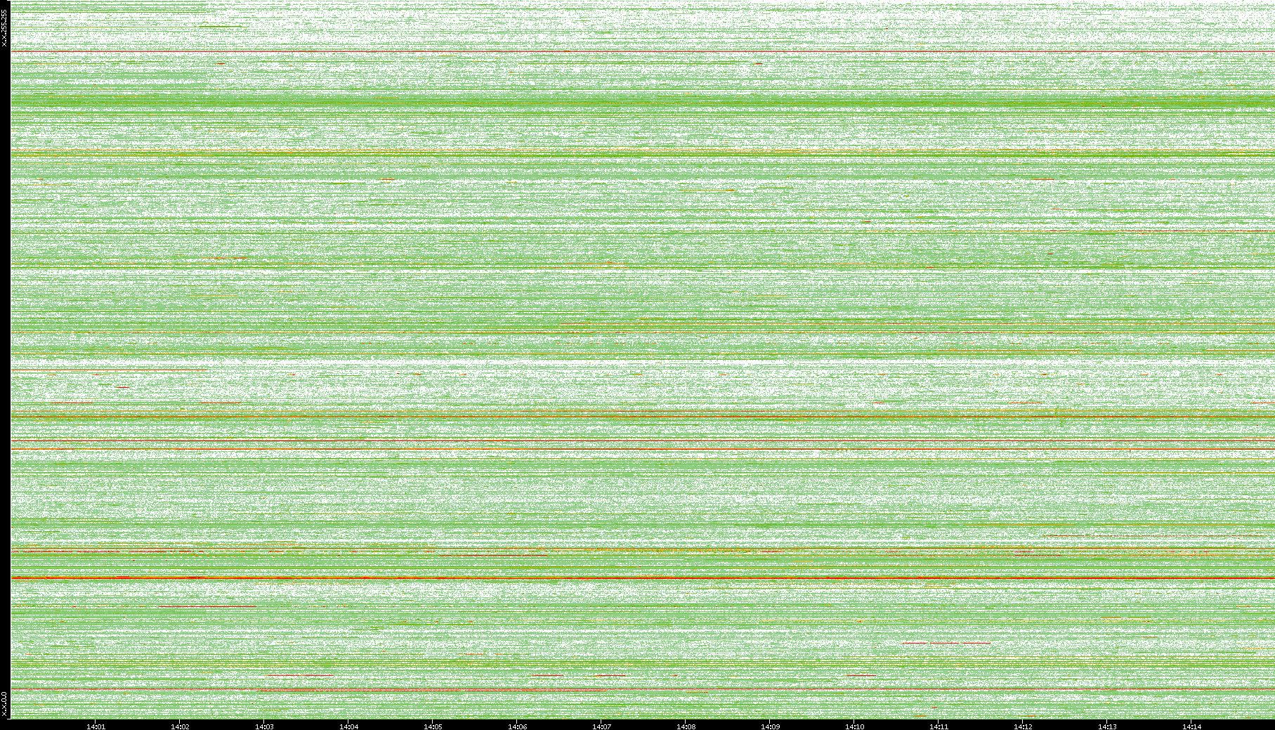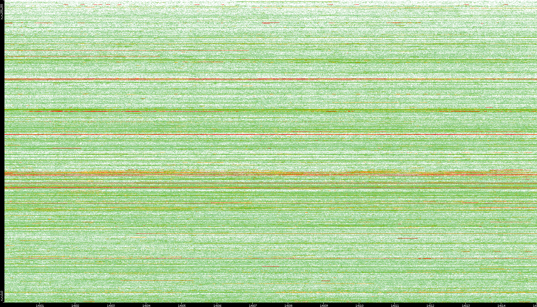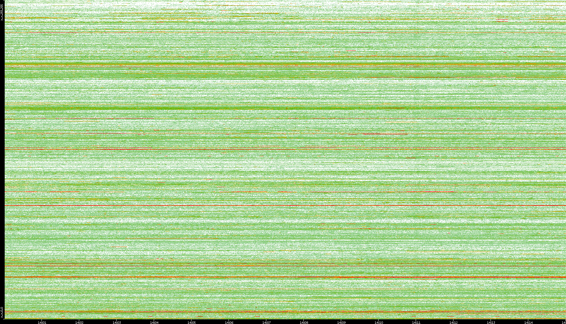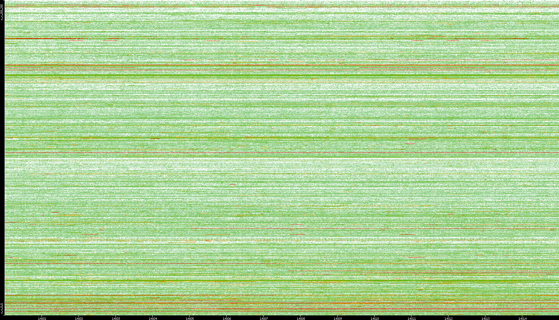 2008/01/14 Dest. IP vs. Time Dest. Port vs. Time Src. IP vs. Time Src. Port vs. Time Nb. of Packets vs. Time Throughput vs. Time Average Packet Size vs. Time Entropy of Port vs. Time
