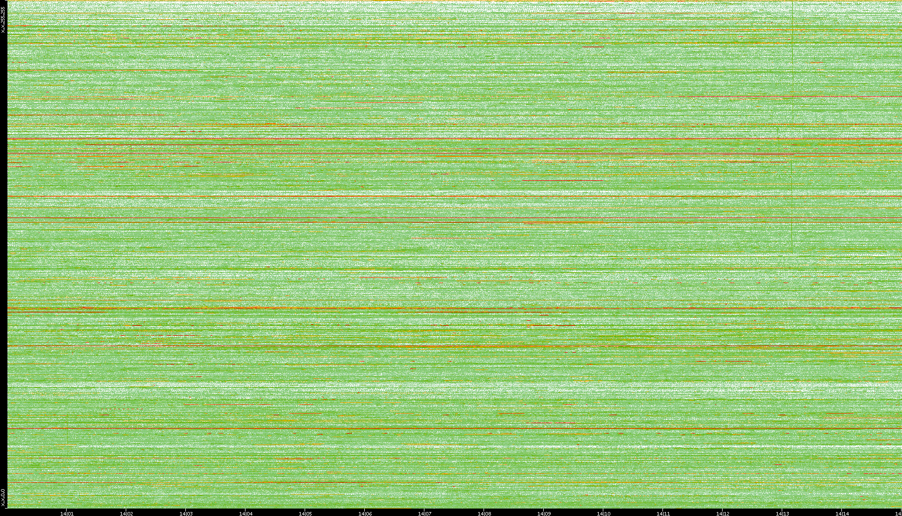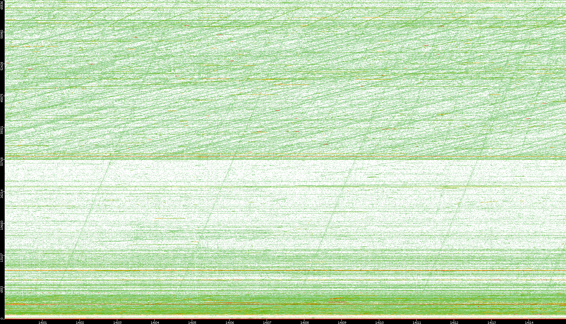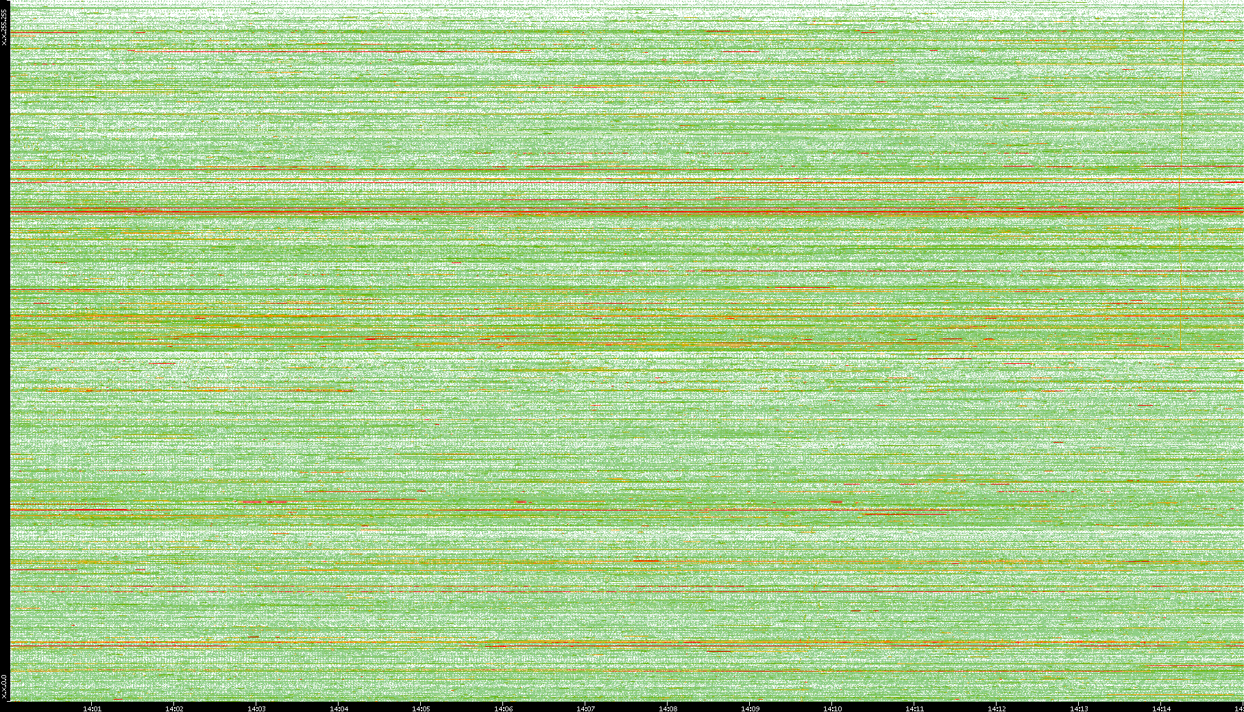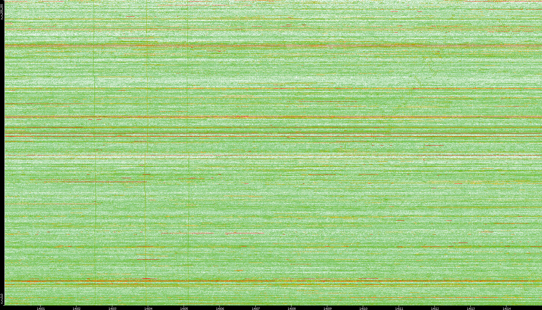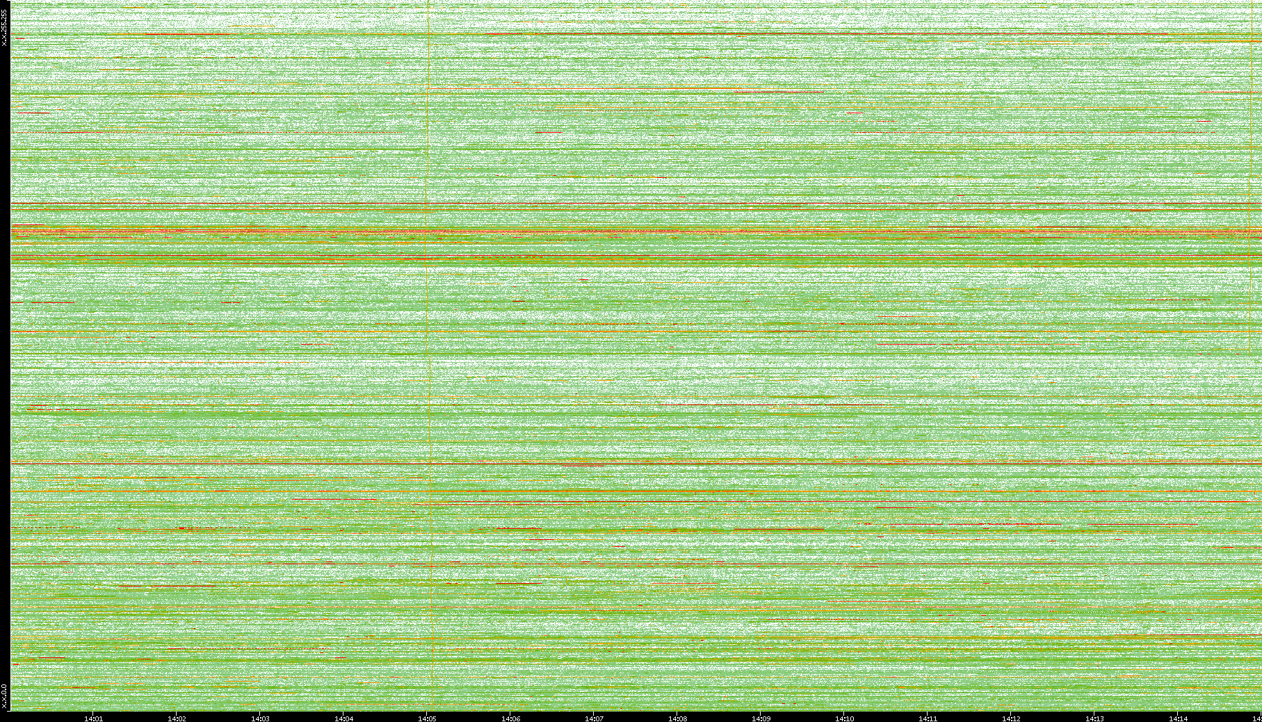 2008/01/14 Dest. IP vs. Time Dest. Port vs. Time Src. IP vs. Time Src. Port vs. Time Nb. of Packets vs. Time Throughput vs. Time Average Packet Size vs. Time Entropy of Port vs. Time