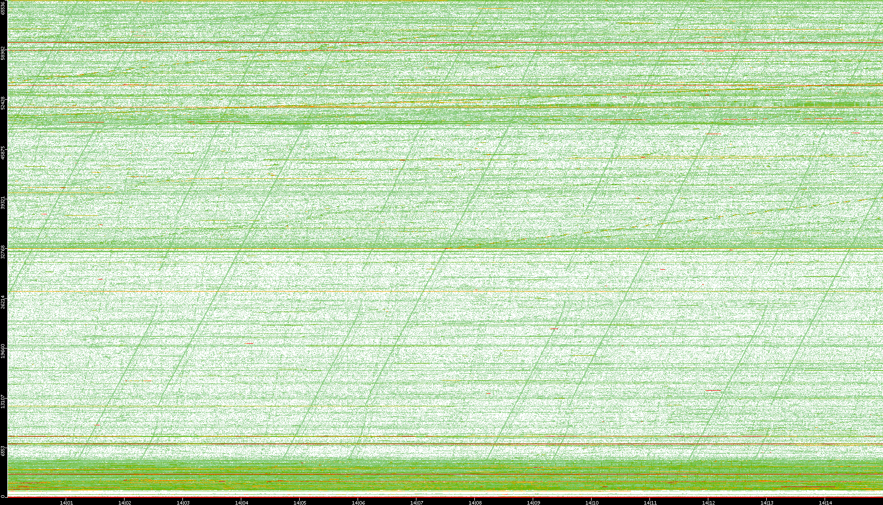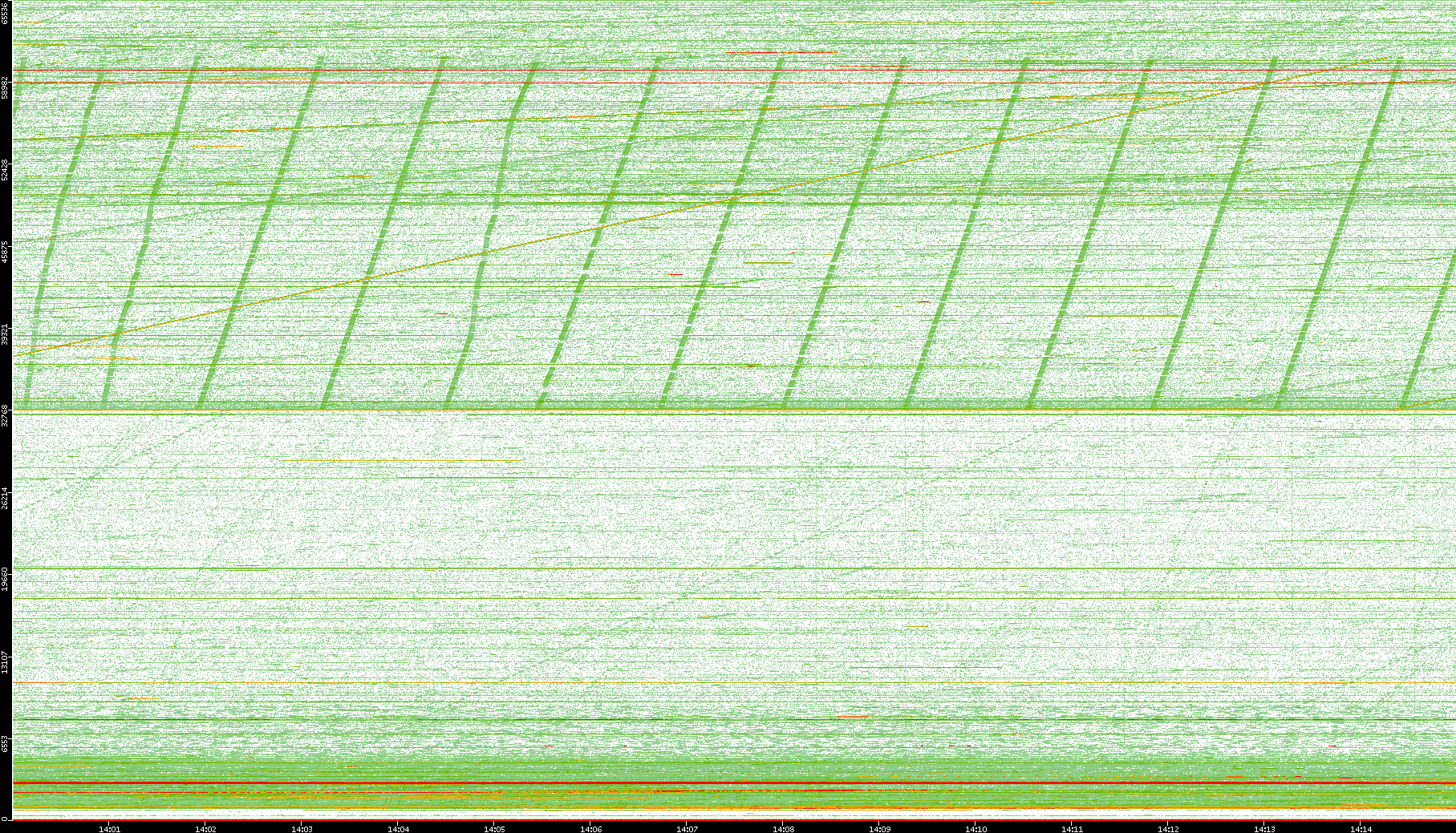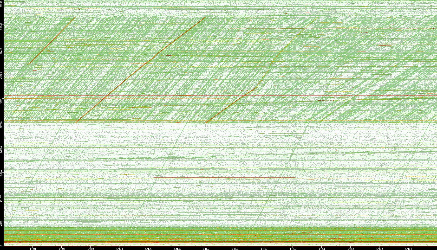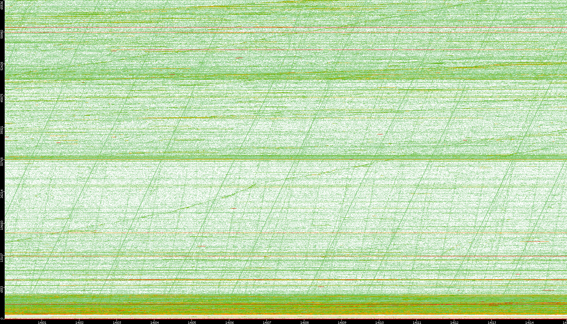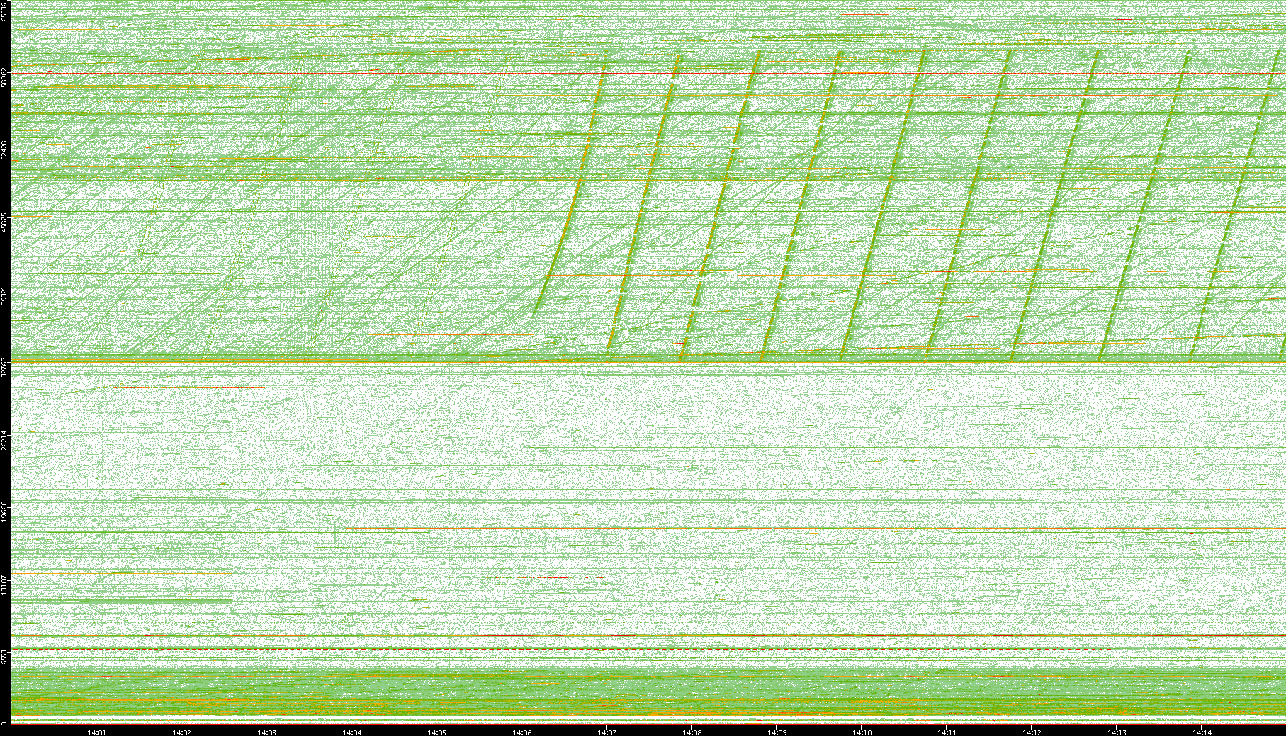 2008/01/14 Dest. IP vs. Time Dest. Port vs. Time Src. IP vs. Time Src. Port vs. Time Nb. of Packets vs. Time Throughput vs. Time Average Packet Size vs. Time Entropy of Port vs. Time