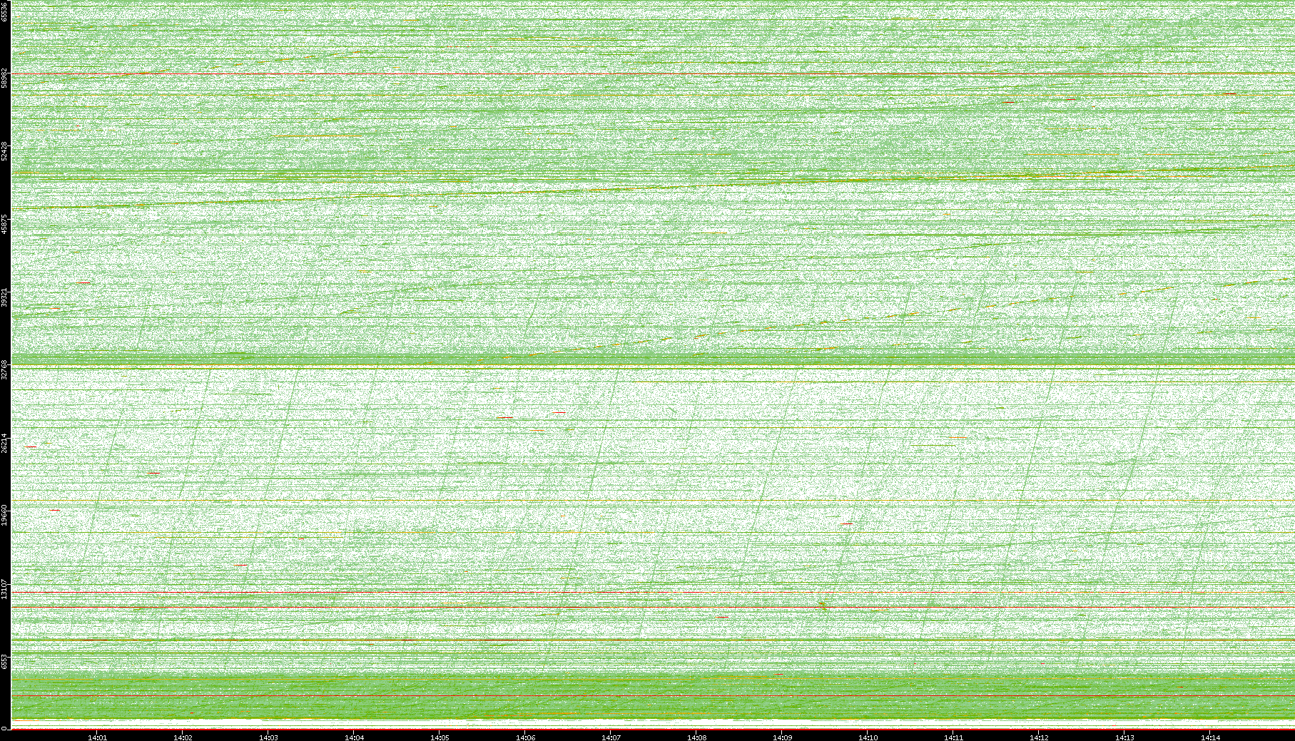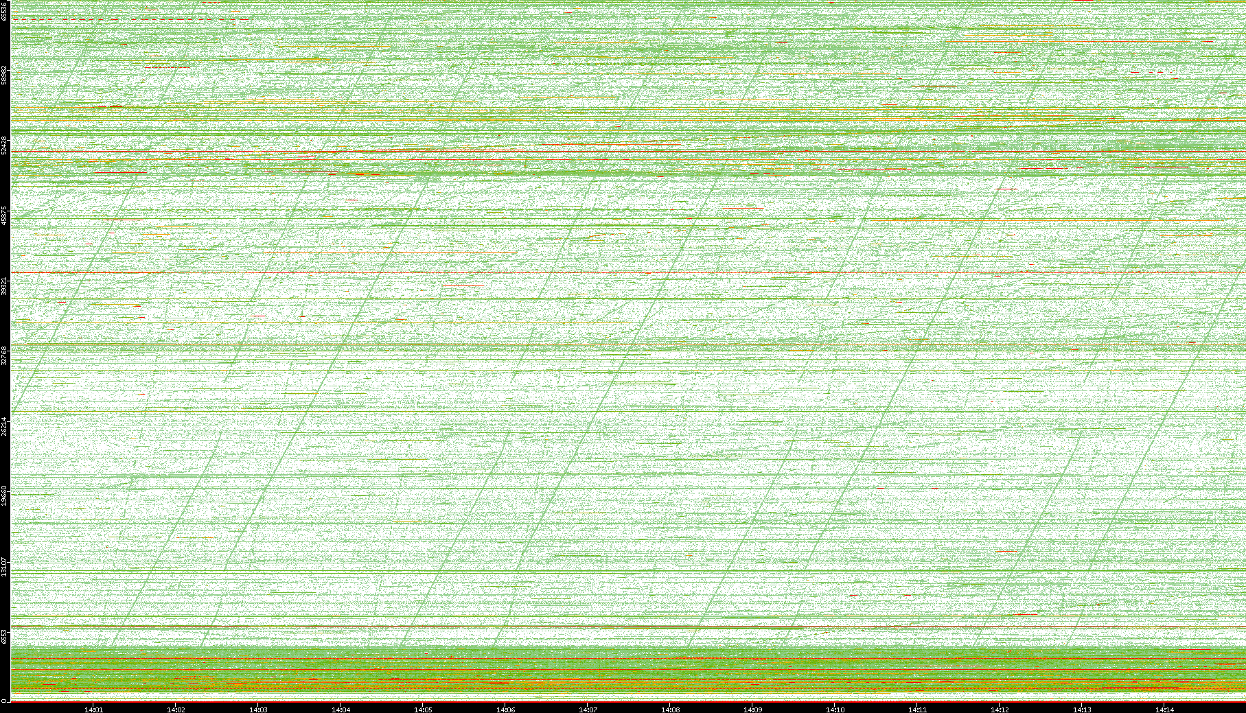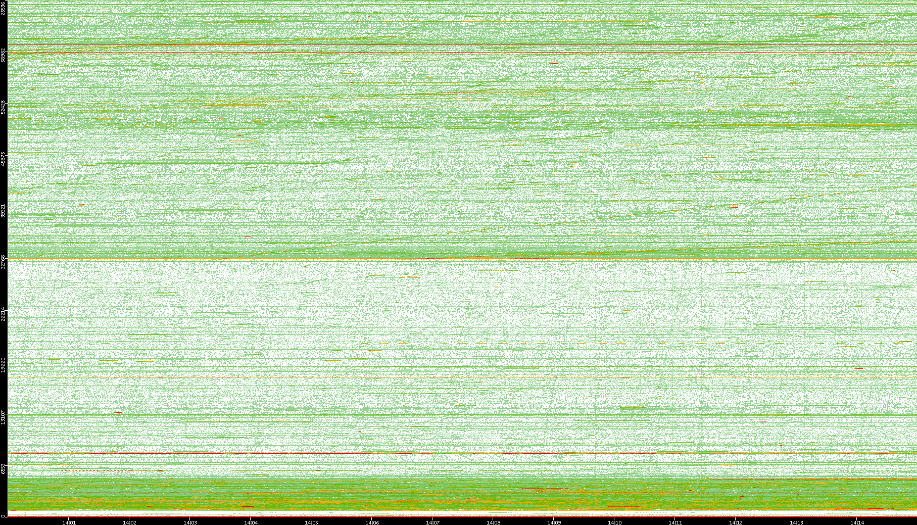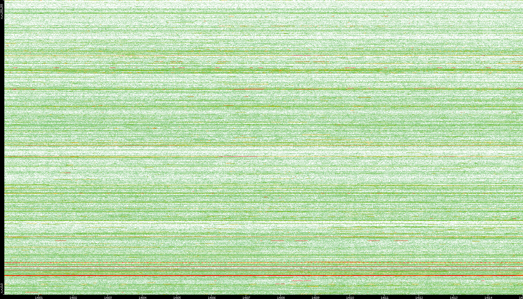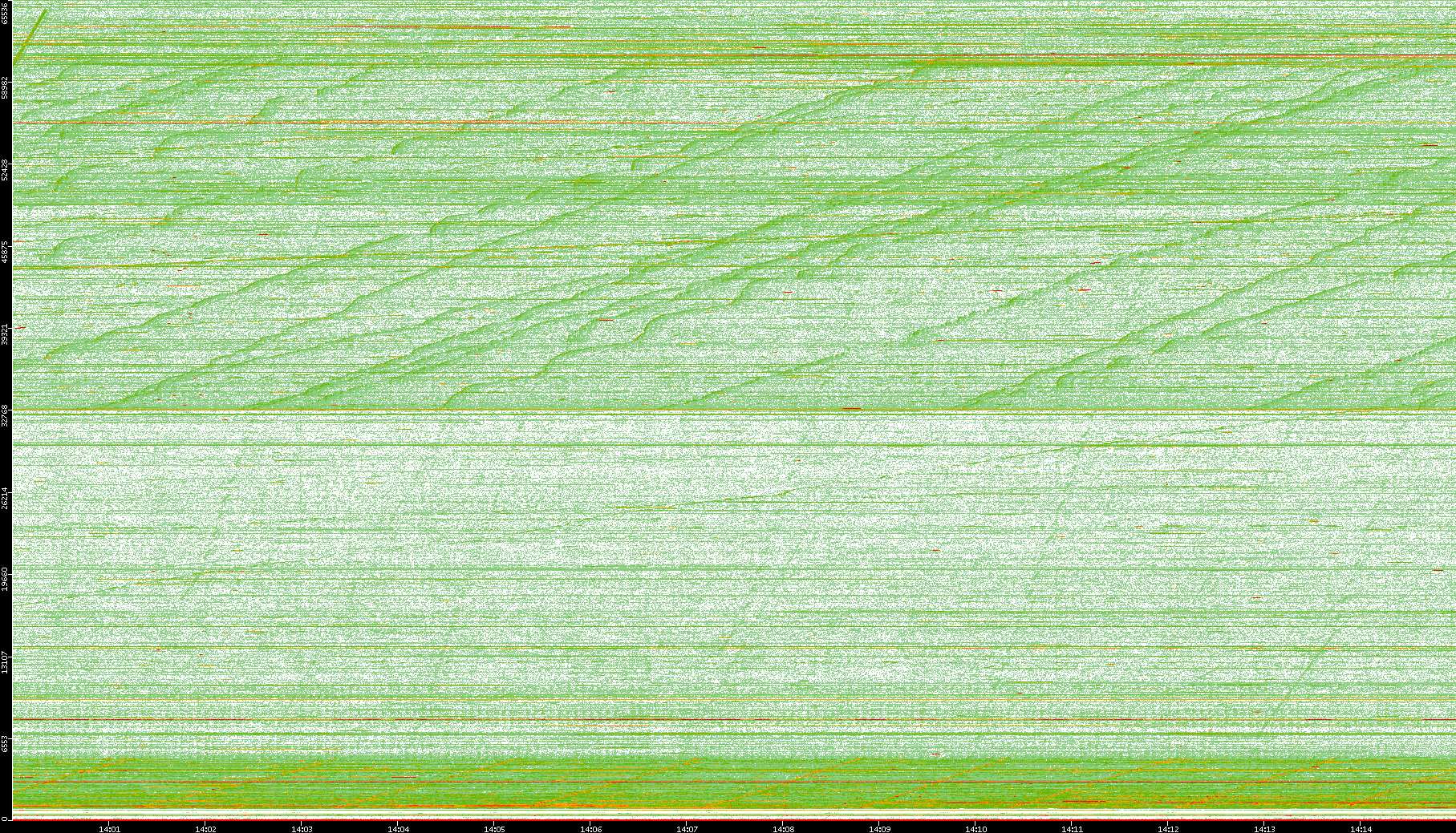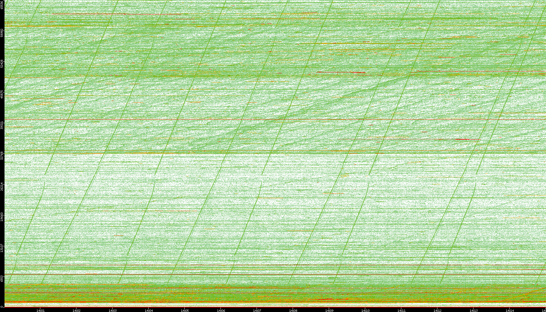 2008/01/14 Dest. IP vs. Time Dest. Port vs. Time Src. IP vs. Time Src. Port vs. Time Nb. of Packets vs. Time Throughput vs. Time Average Packet Size vs. Time Entropy of Port vs. Time