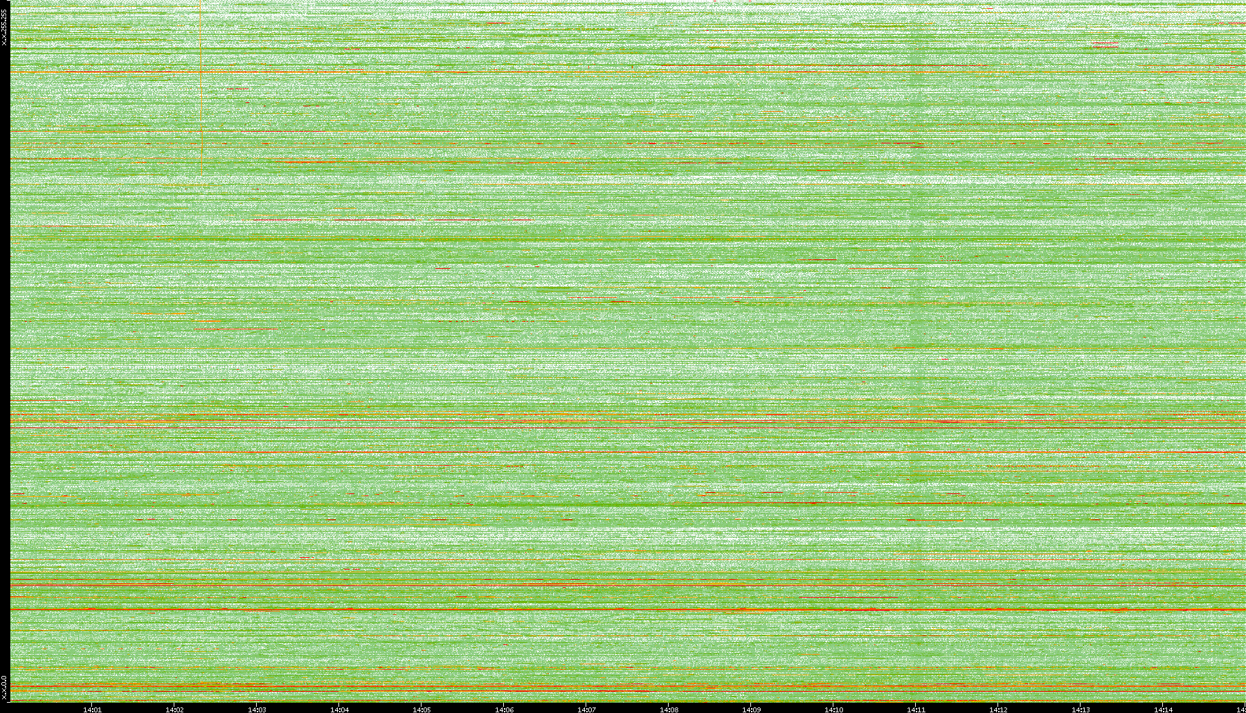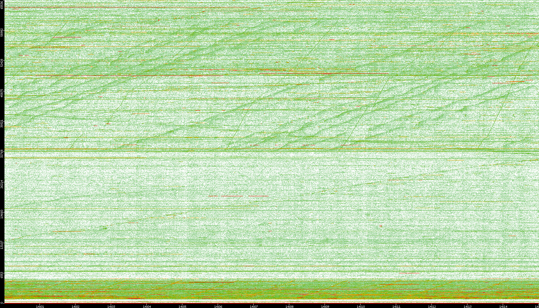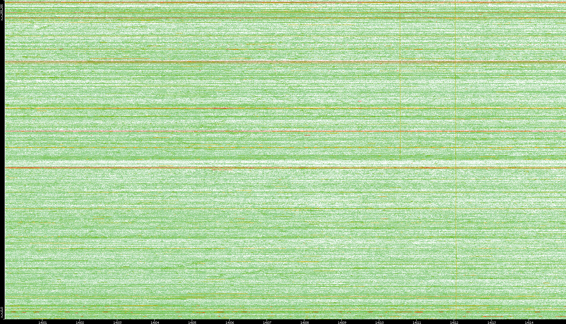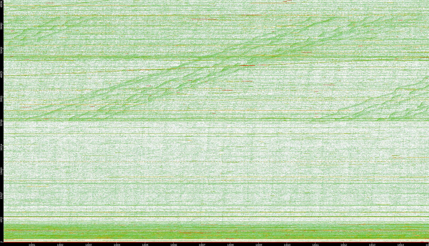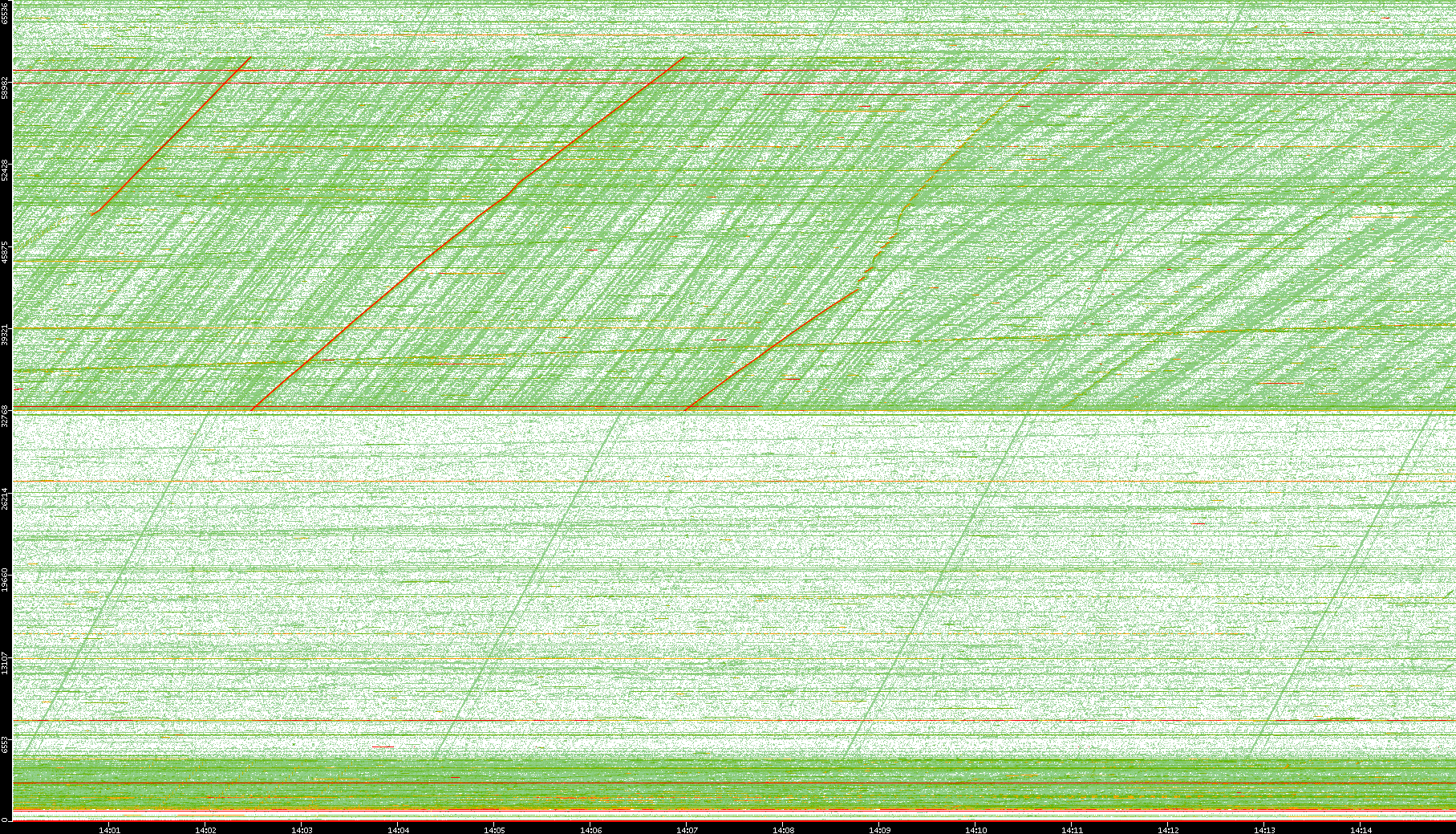 2008/01/14 Dest. IP vs. Time Dest. Port vs. Time Src. IP vs. Time Src. Port vs. Time Nb. of Packets vs. Time Throughput vs. Time Average Packet Size vs. Time Entropy of Port vs. Time