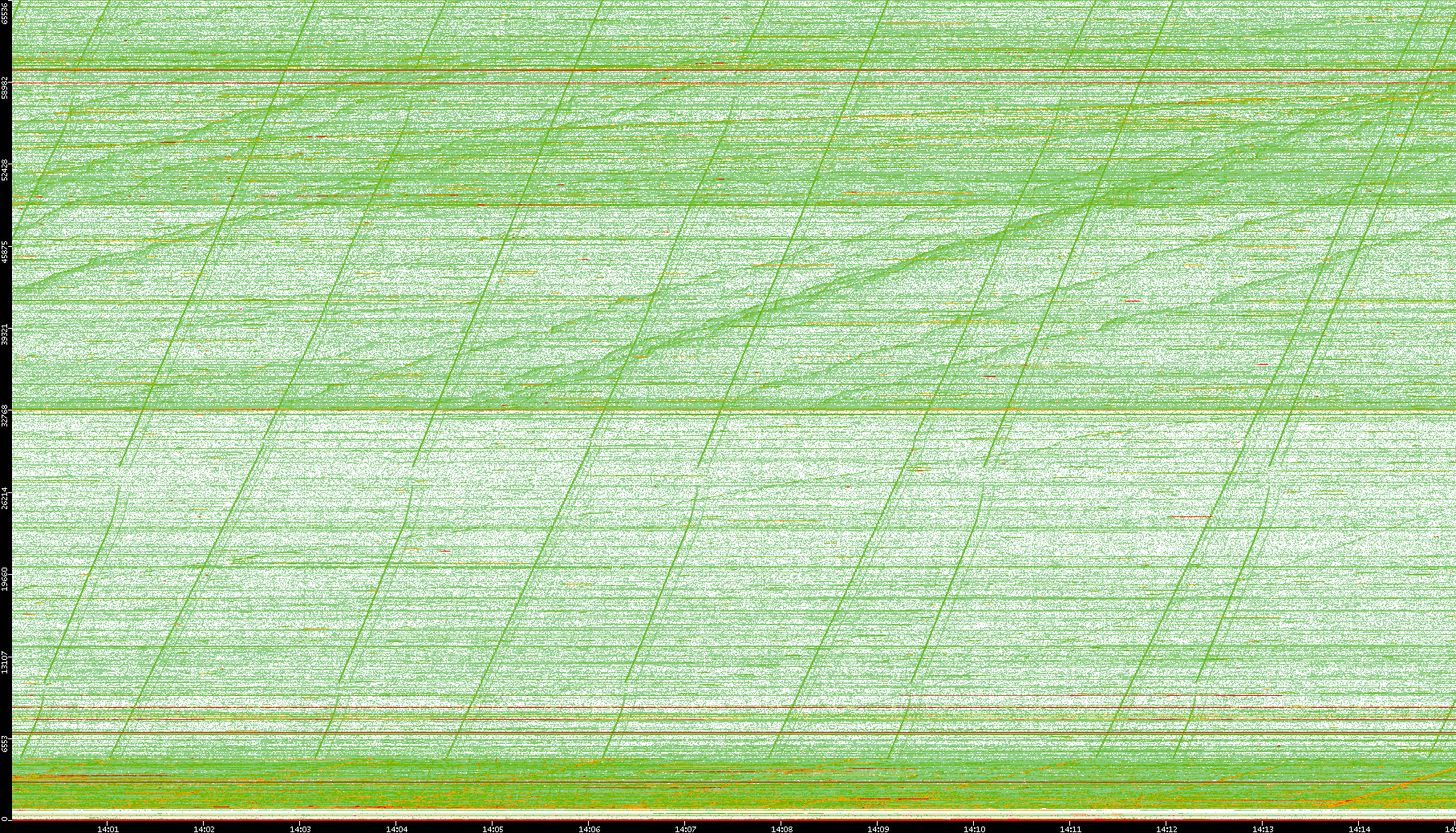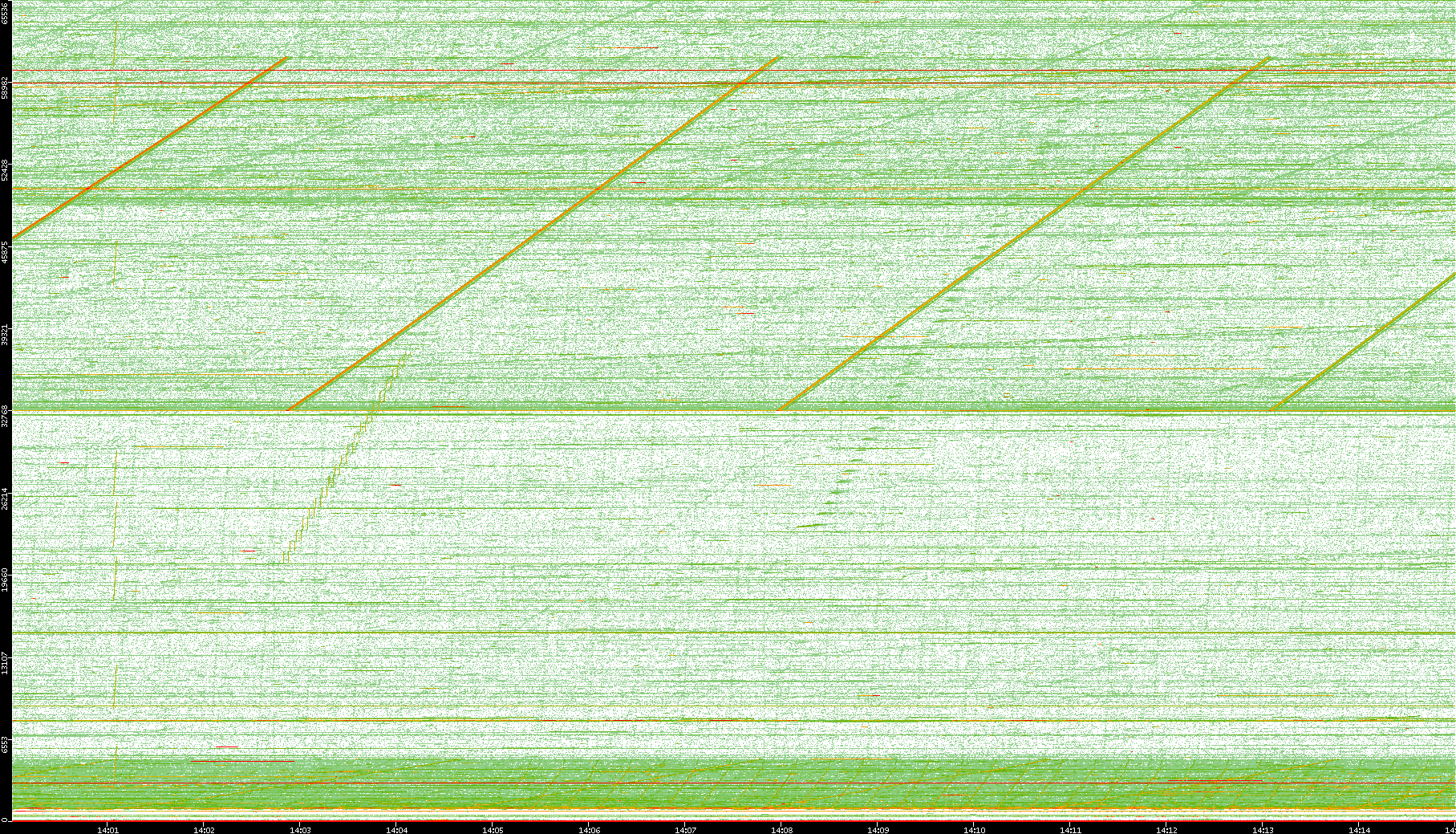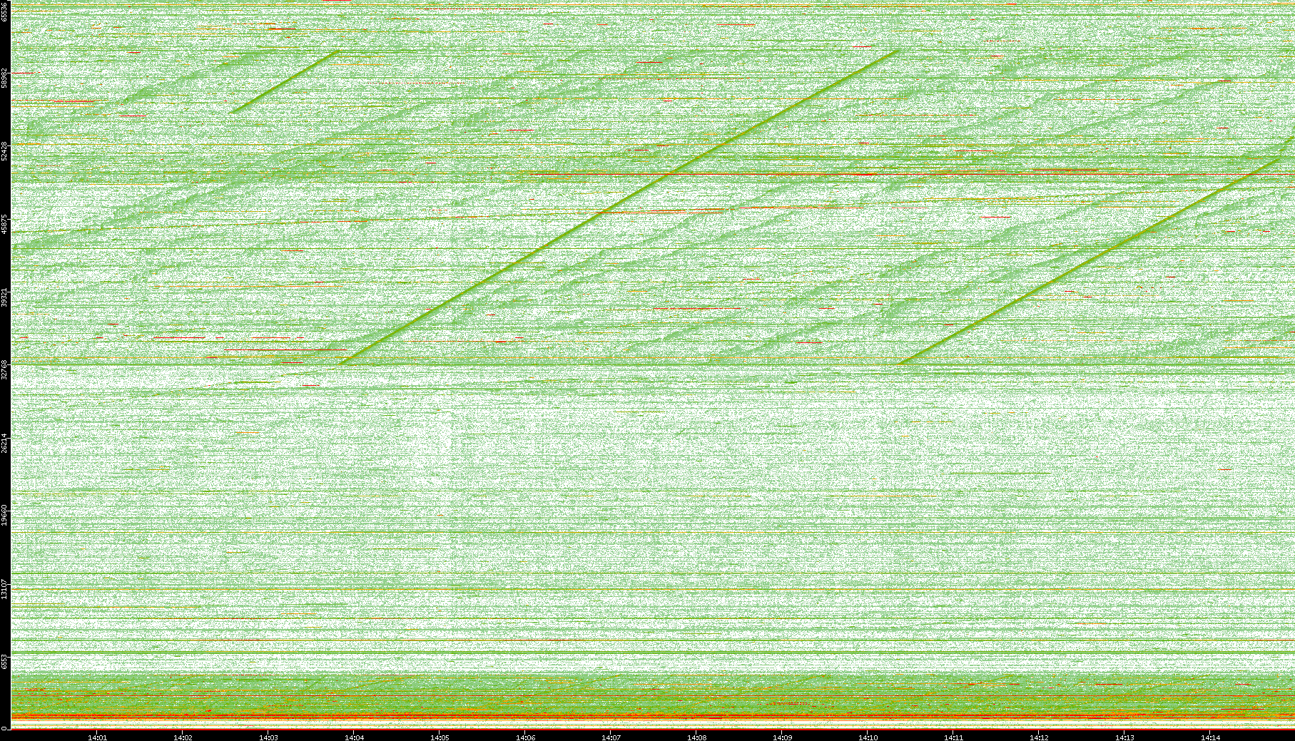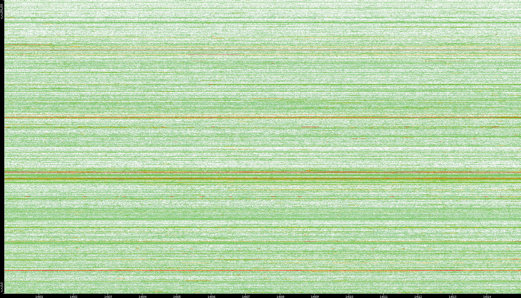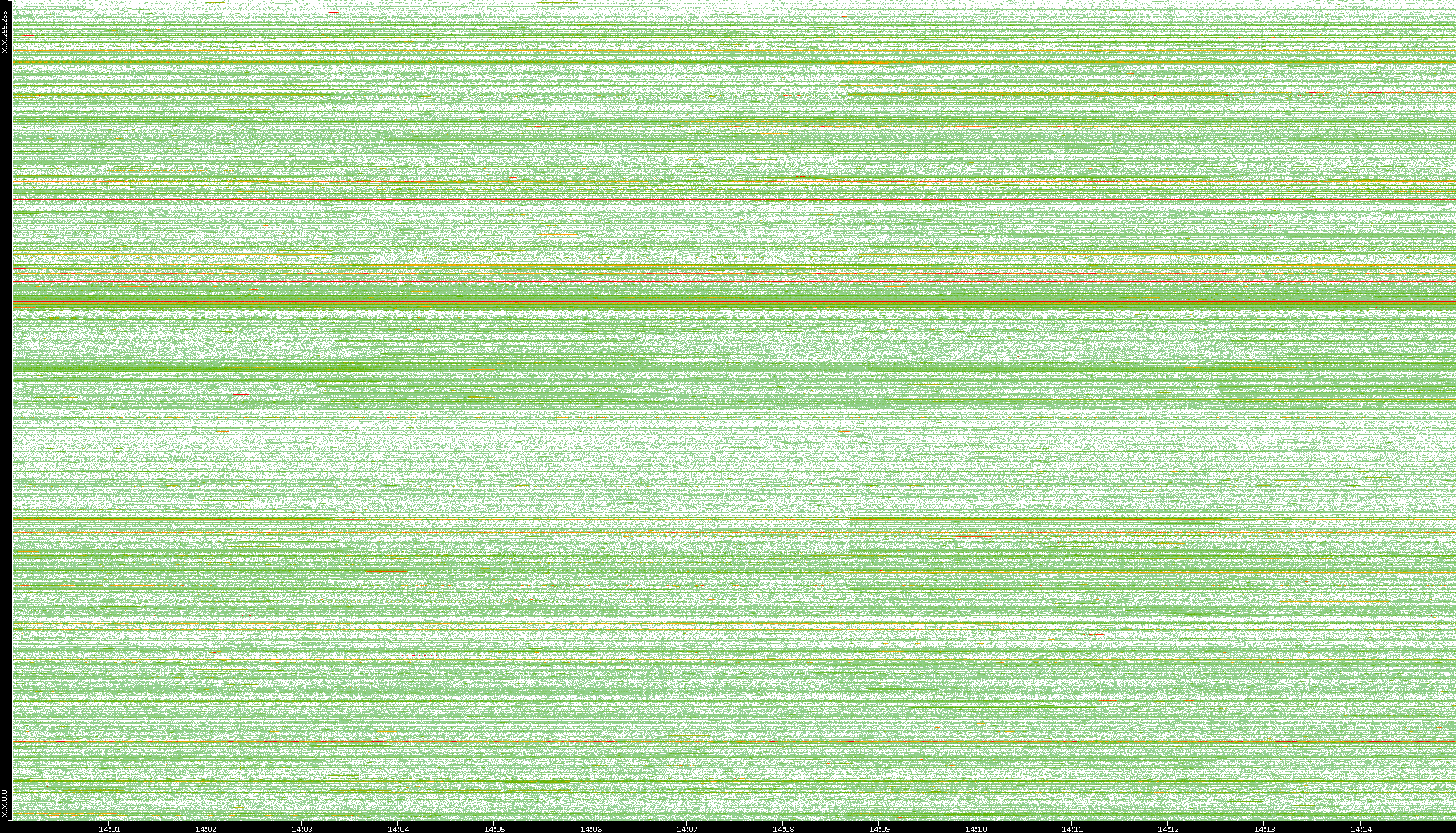 2008/01/14 Dest. IP vs. Time Dest. Port vs. Time Src. IP vs. Time Src. Port vs. Time Nb. of Packets vs. Time Throughput vs. Time Average Packet Size vs. Time Entropy of Port vs. Time