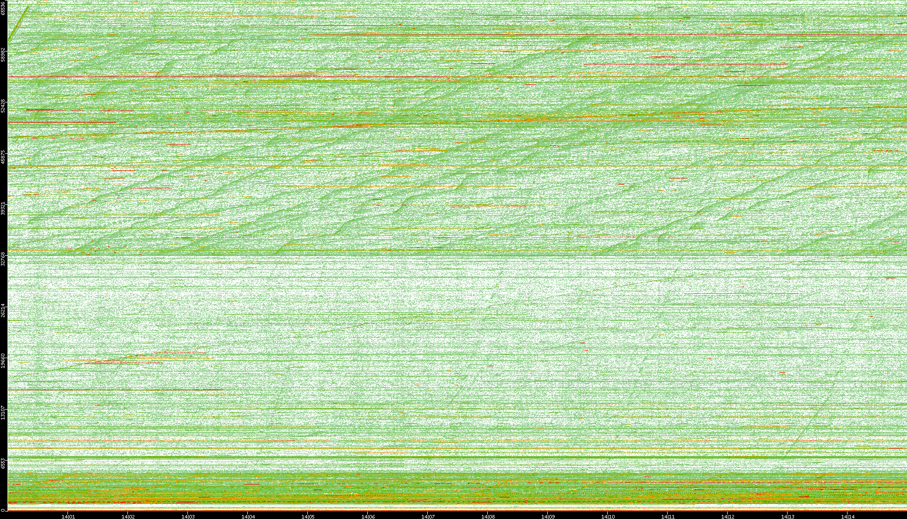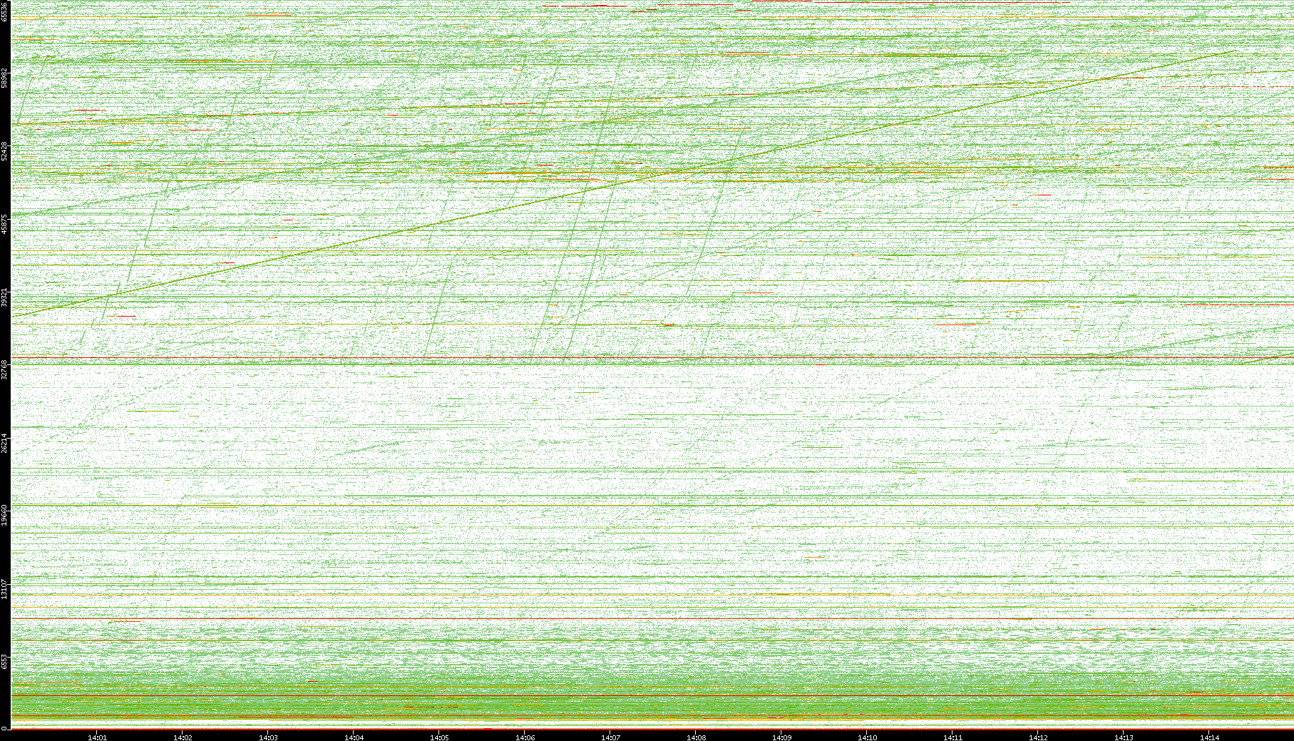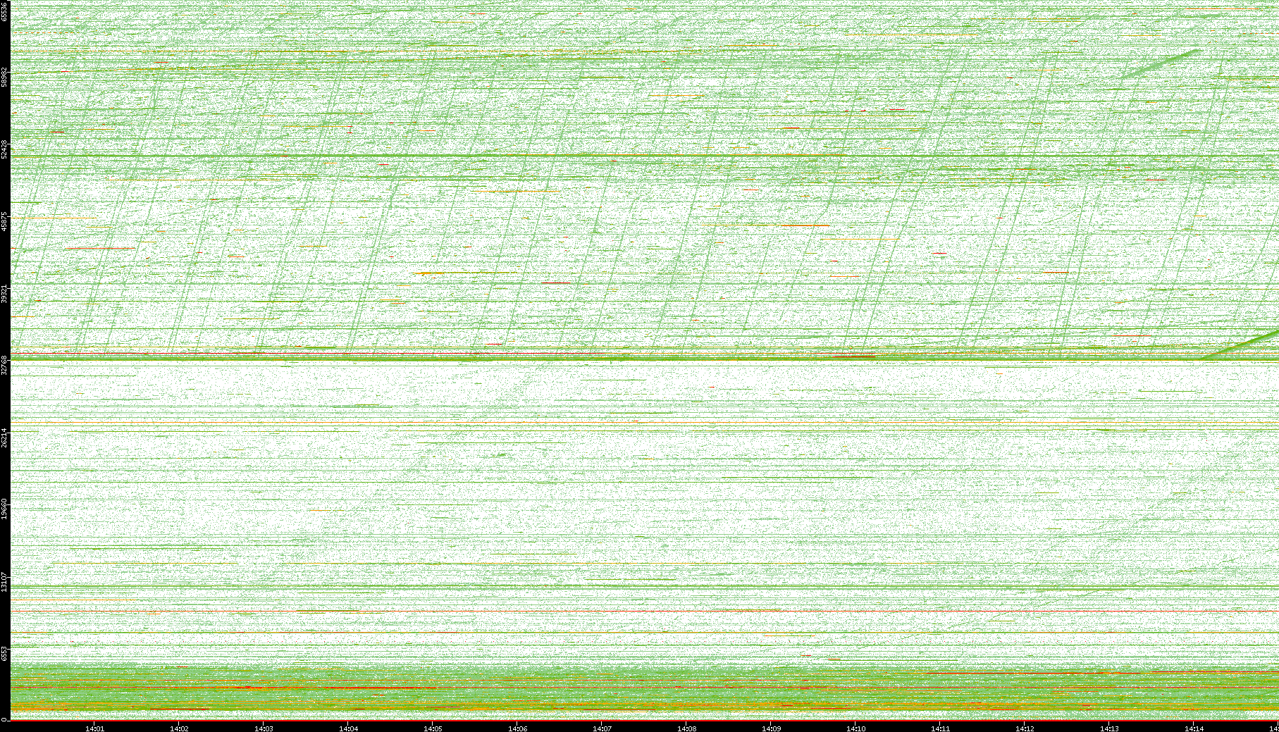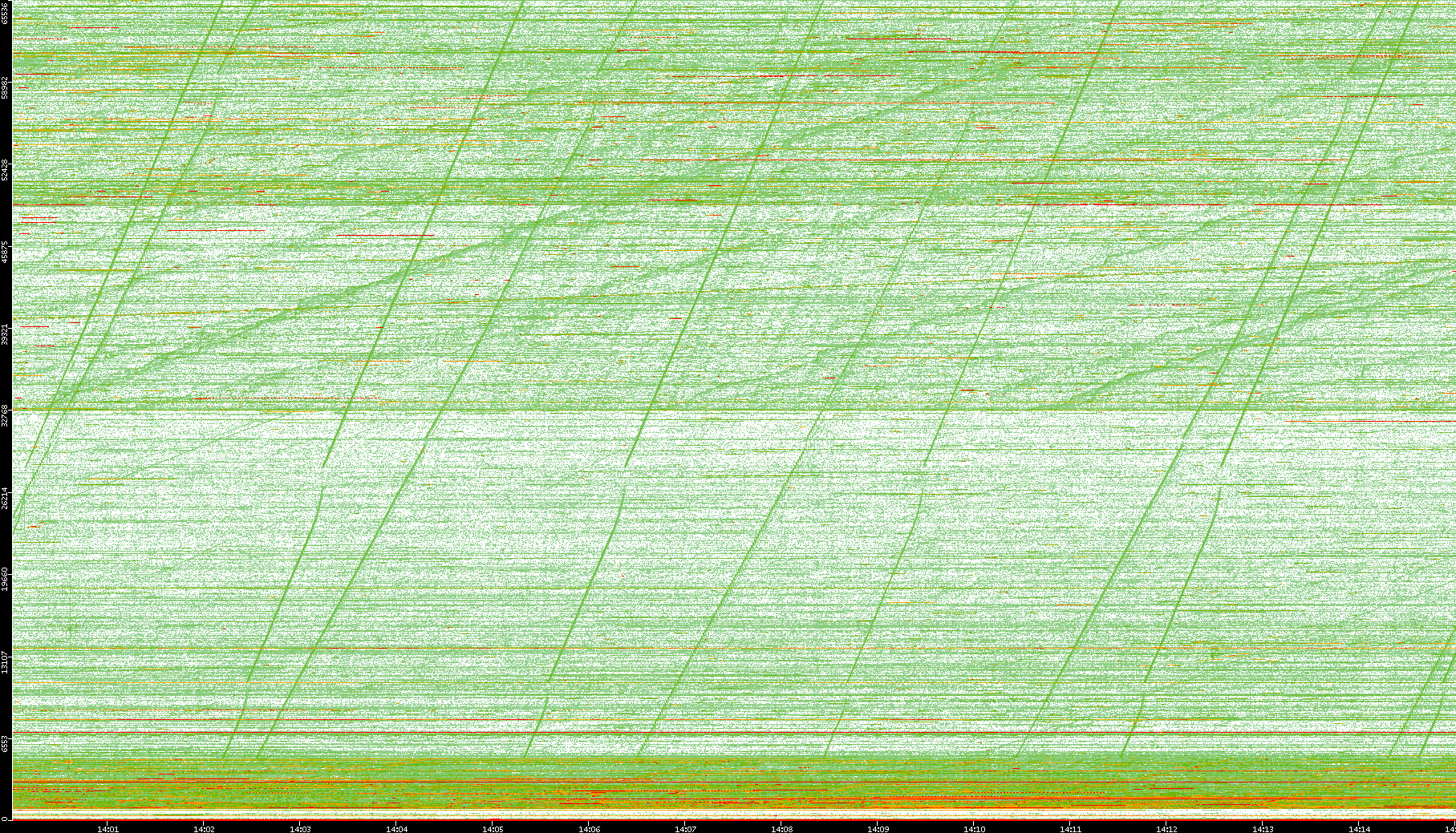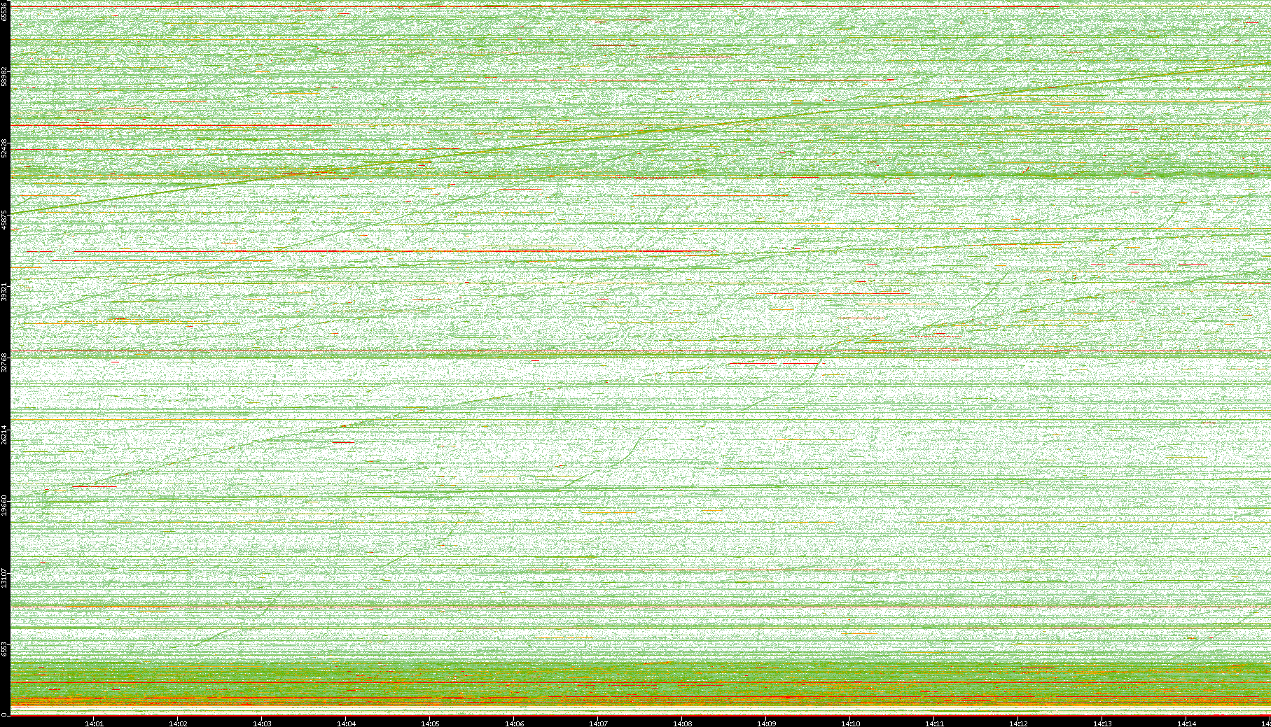 2008/01/14 Dest. IP vs. Time Dest. Port vs. Time Src. IP vs. Time Src. Port vs. Time Nb. of Packets vs. Time Throughput vs. Time Average Packet Size vs. Time Entropy of Port vs. Time