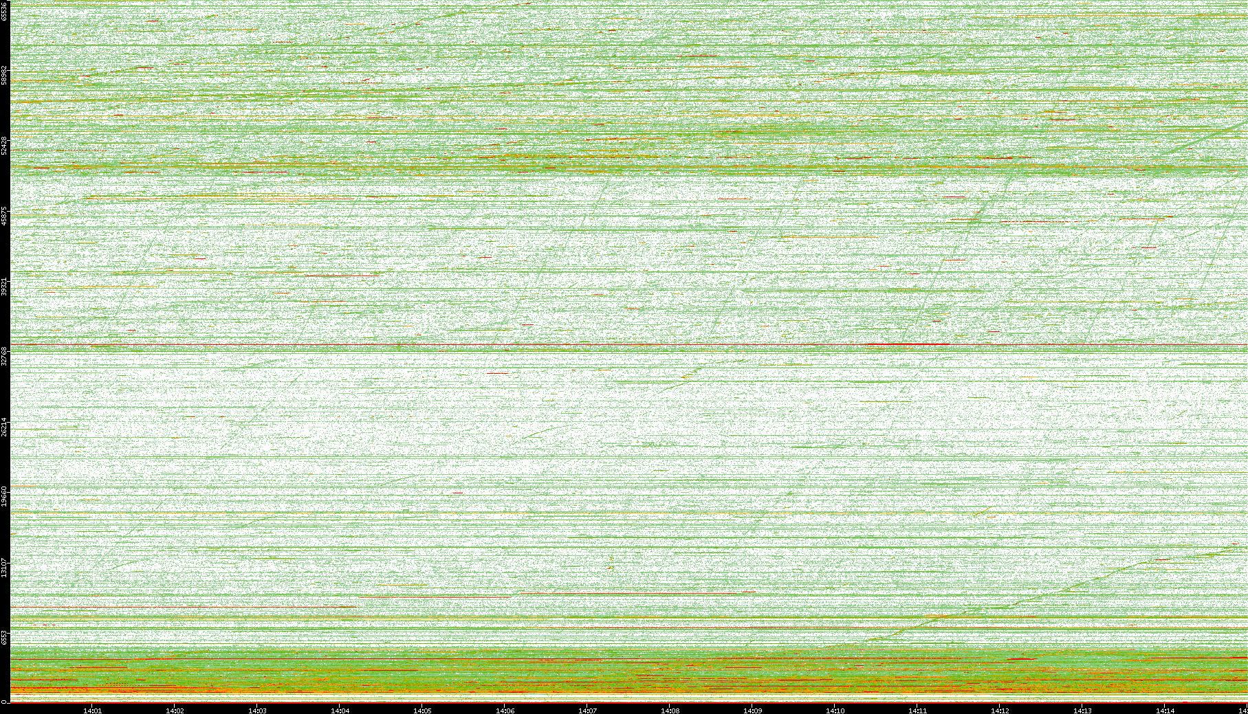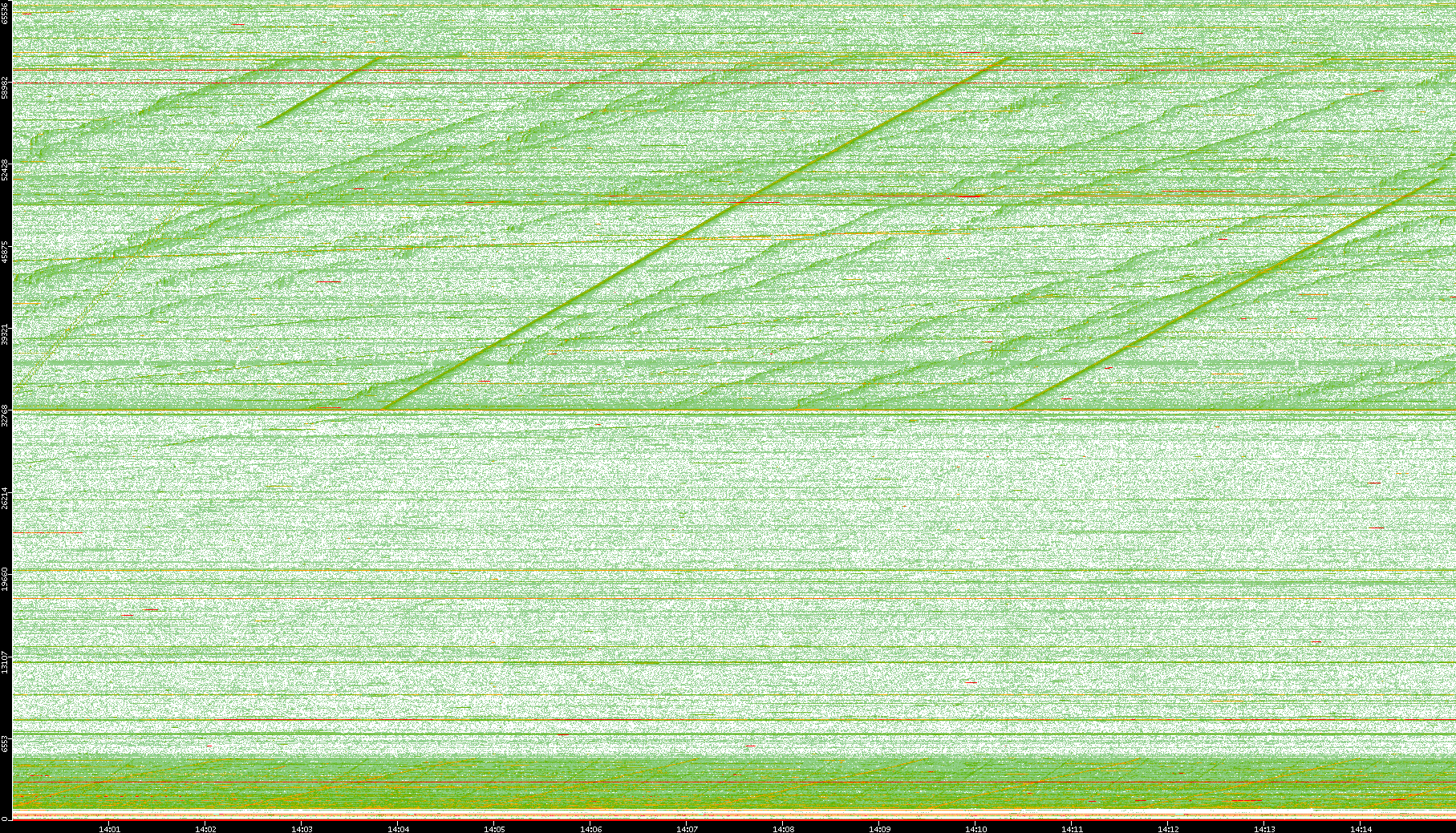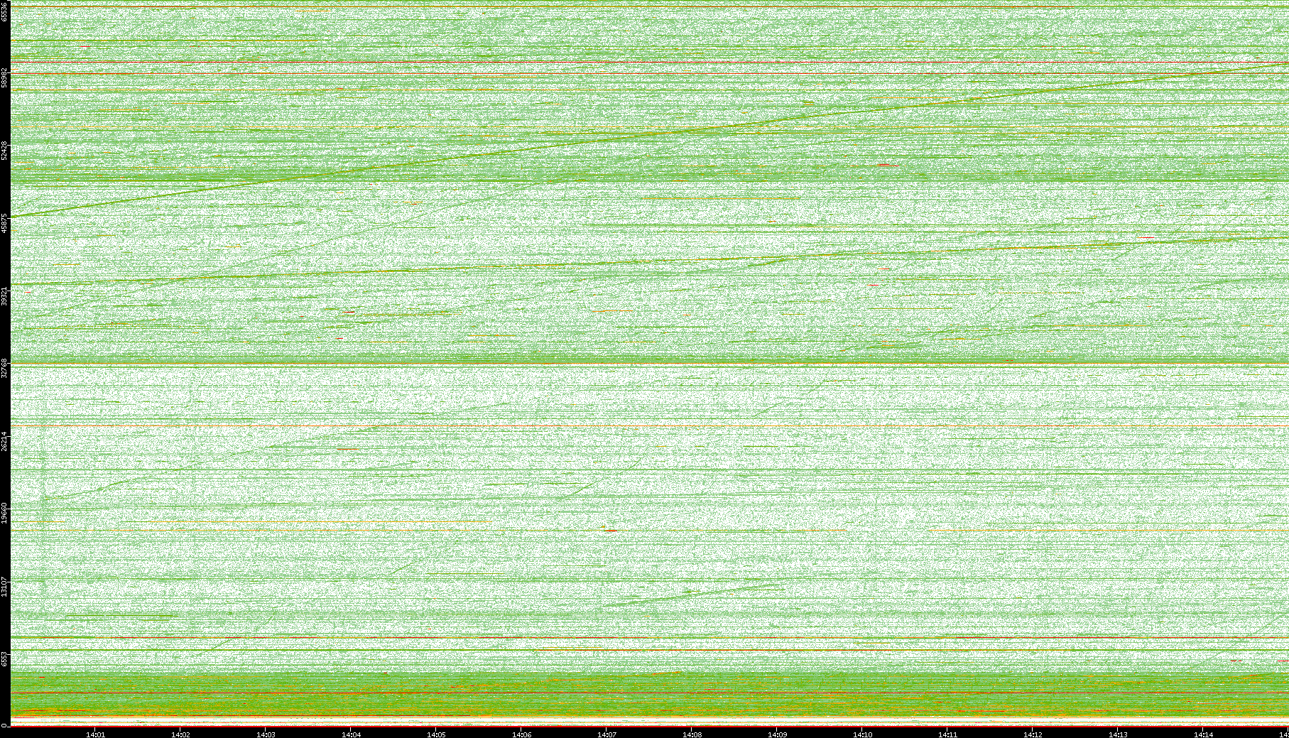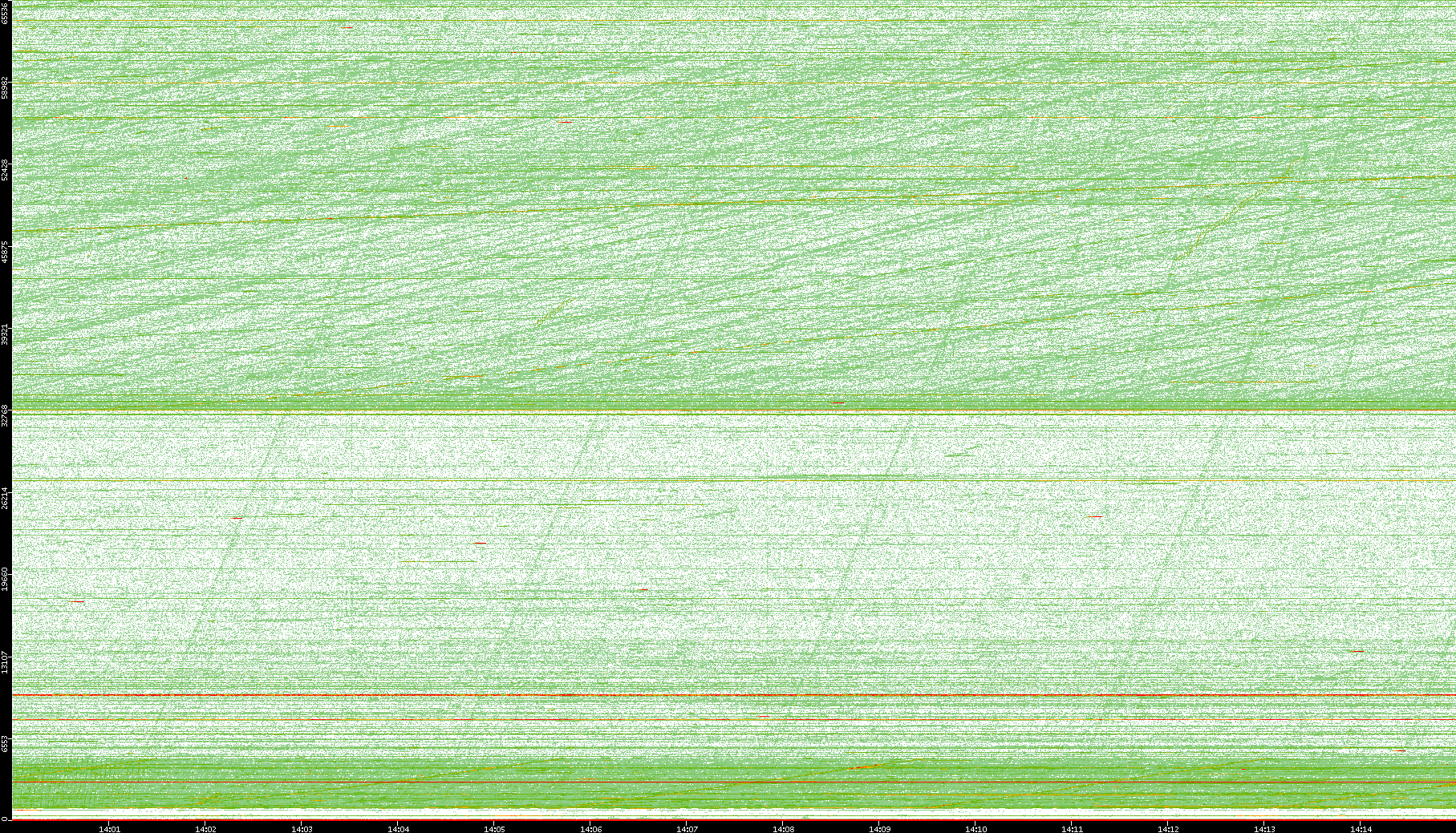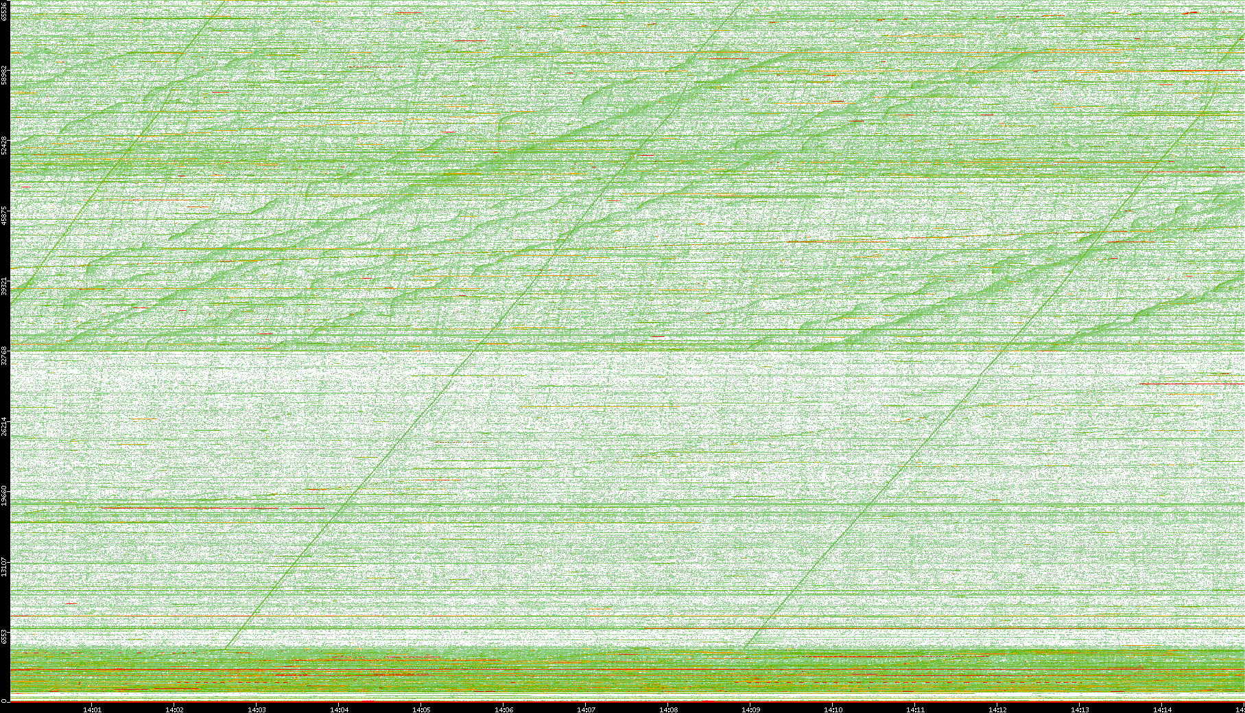 2008/01/14 Dest. IP vs. Time Dest. Port vs. Time Src. IP vs. Time Src. Port vs. Time Nb. of Packets vs. Time Throughput vs. Time Average Packet Size vs. Time Entropy of Port vs. Time