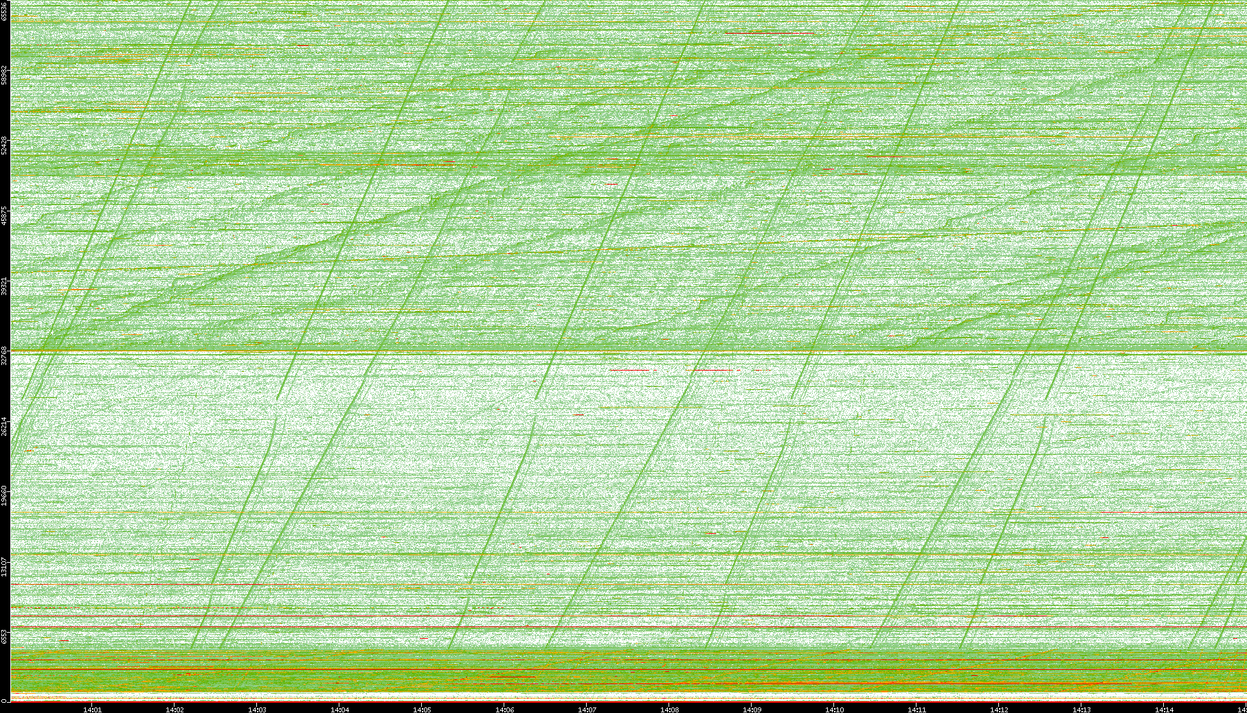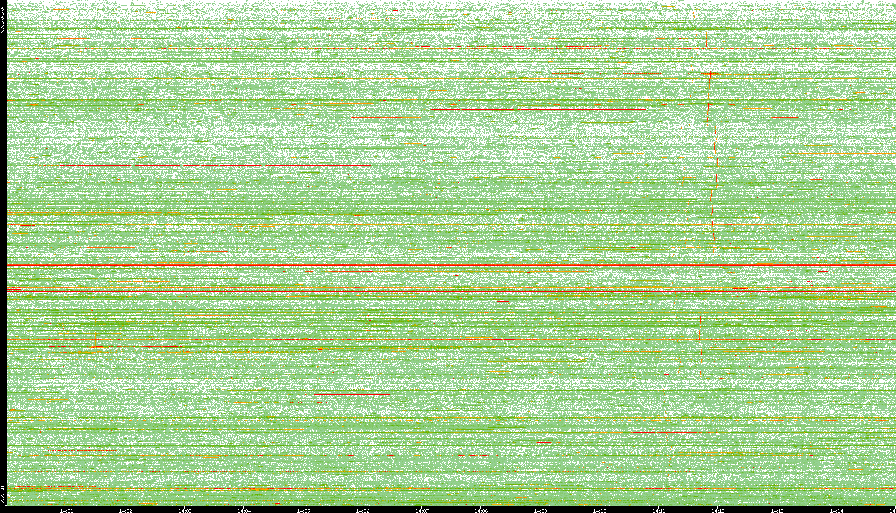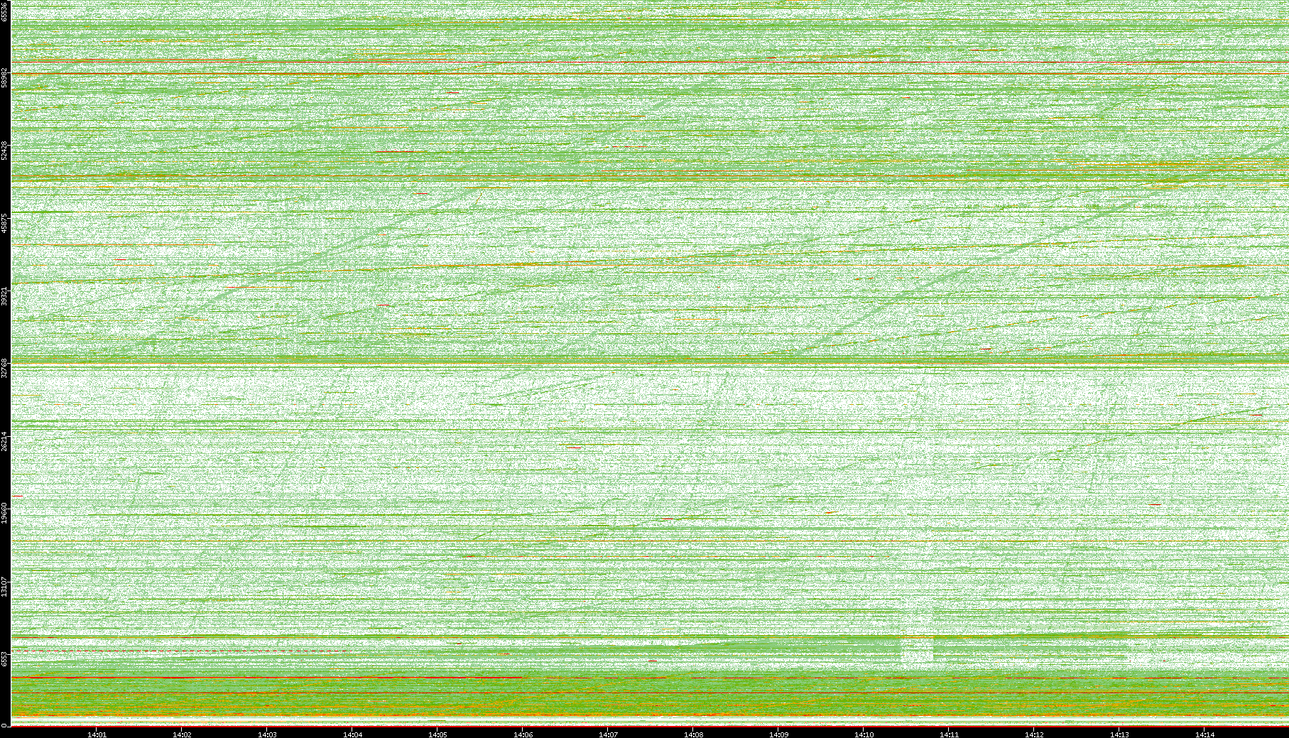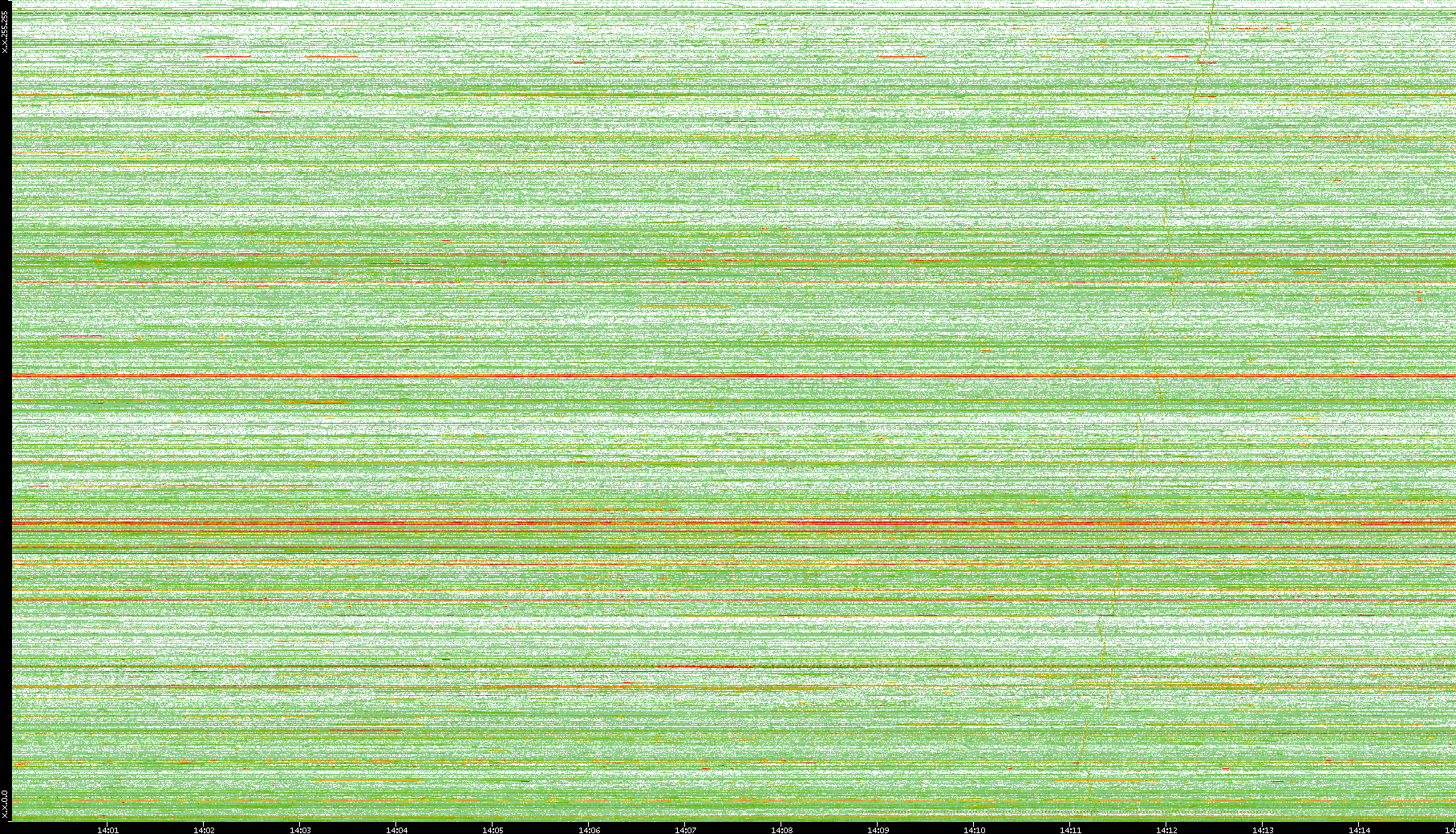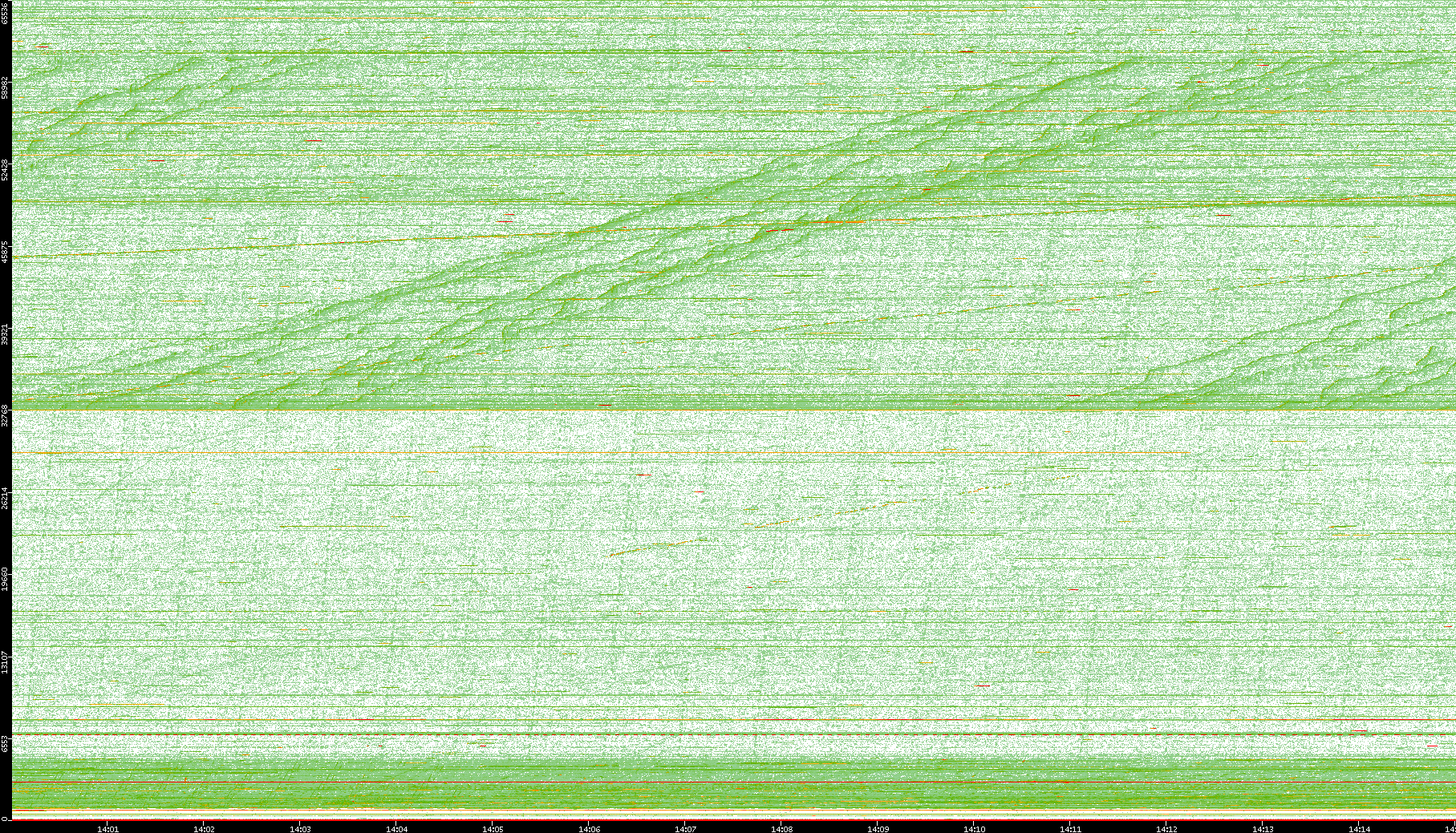 2008/01/14 Dest. IP vs. Time Dest. Port vs. Time Src. IP vs. Time Src. Port vs. Time Nb. of Packets vs. Time Throughput vs. Time Average Packet Size vs. Time Entropy of Port vs. Time