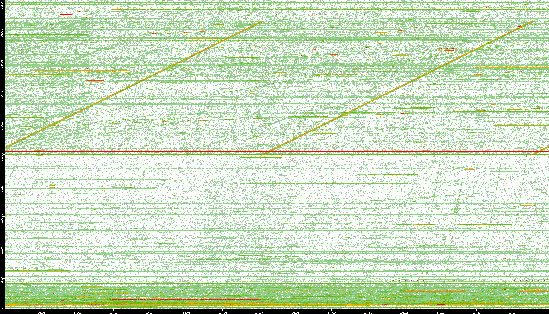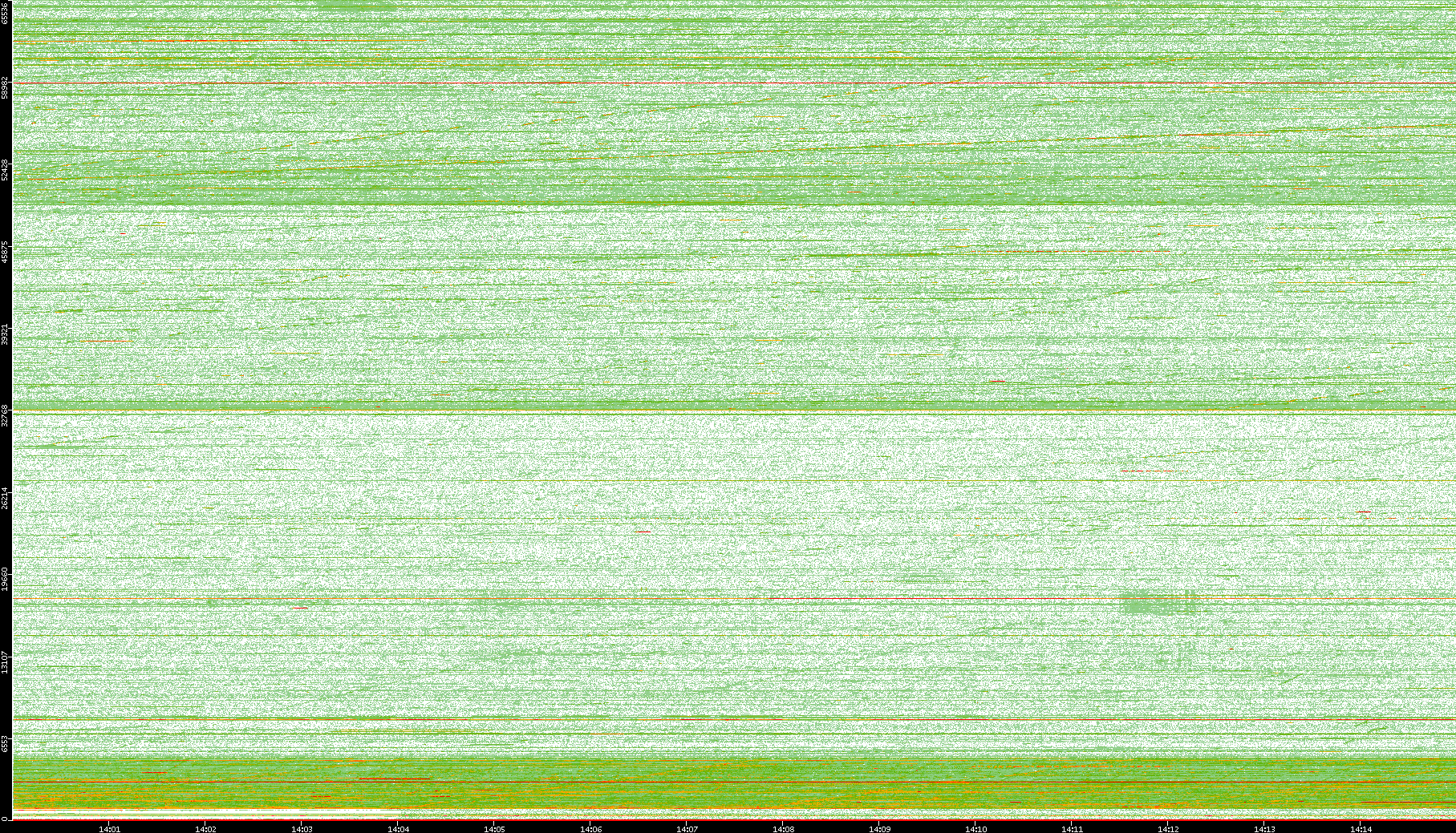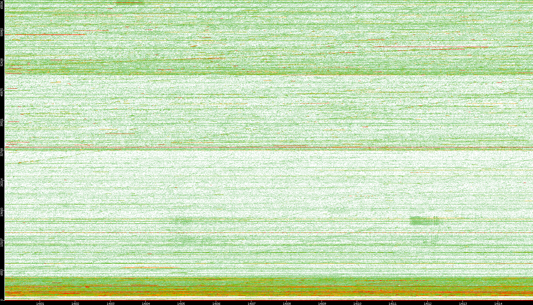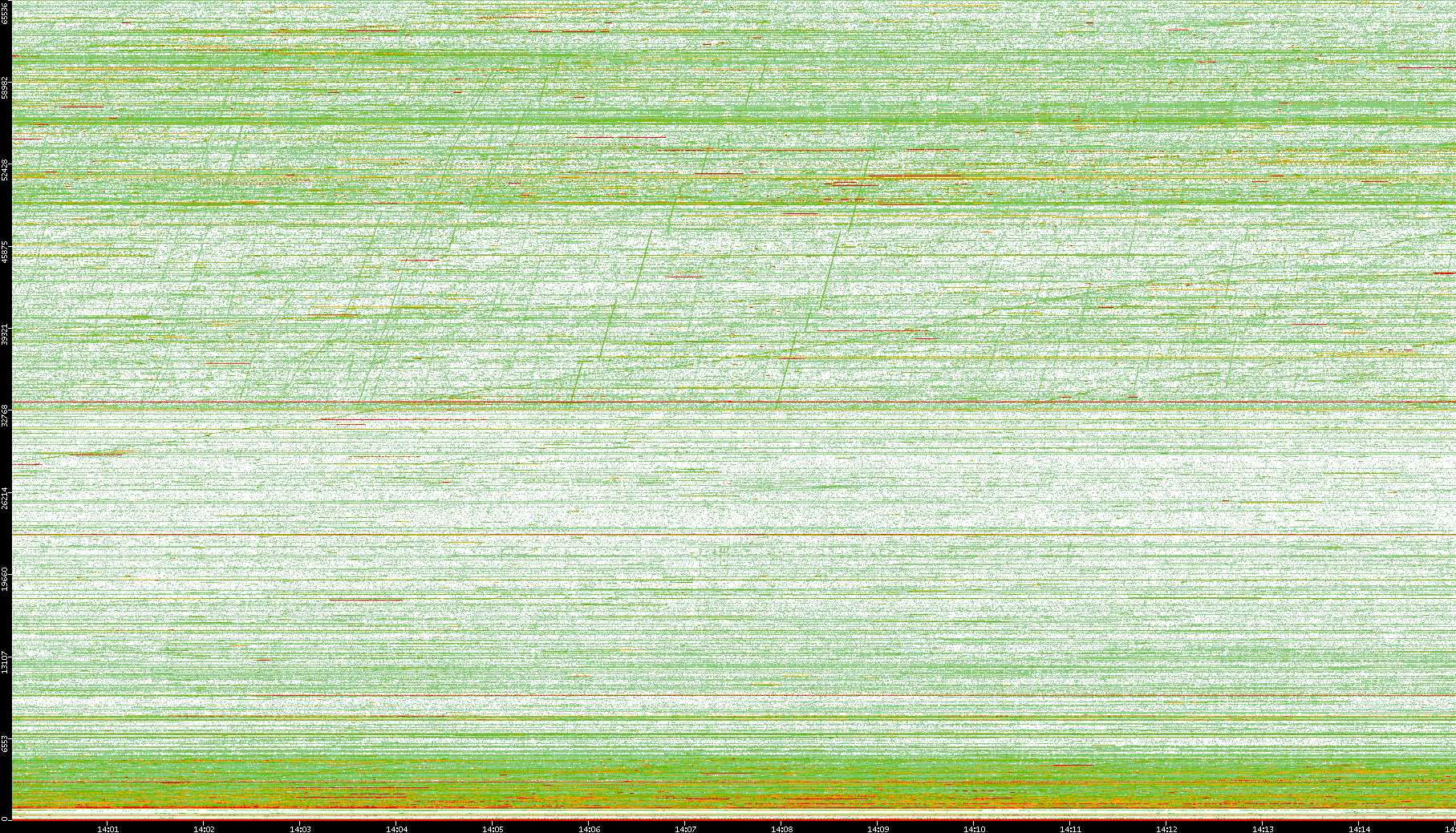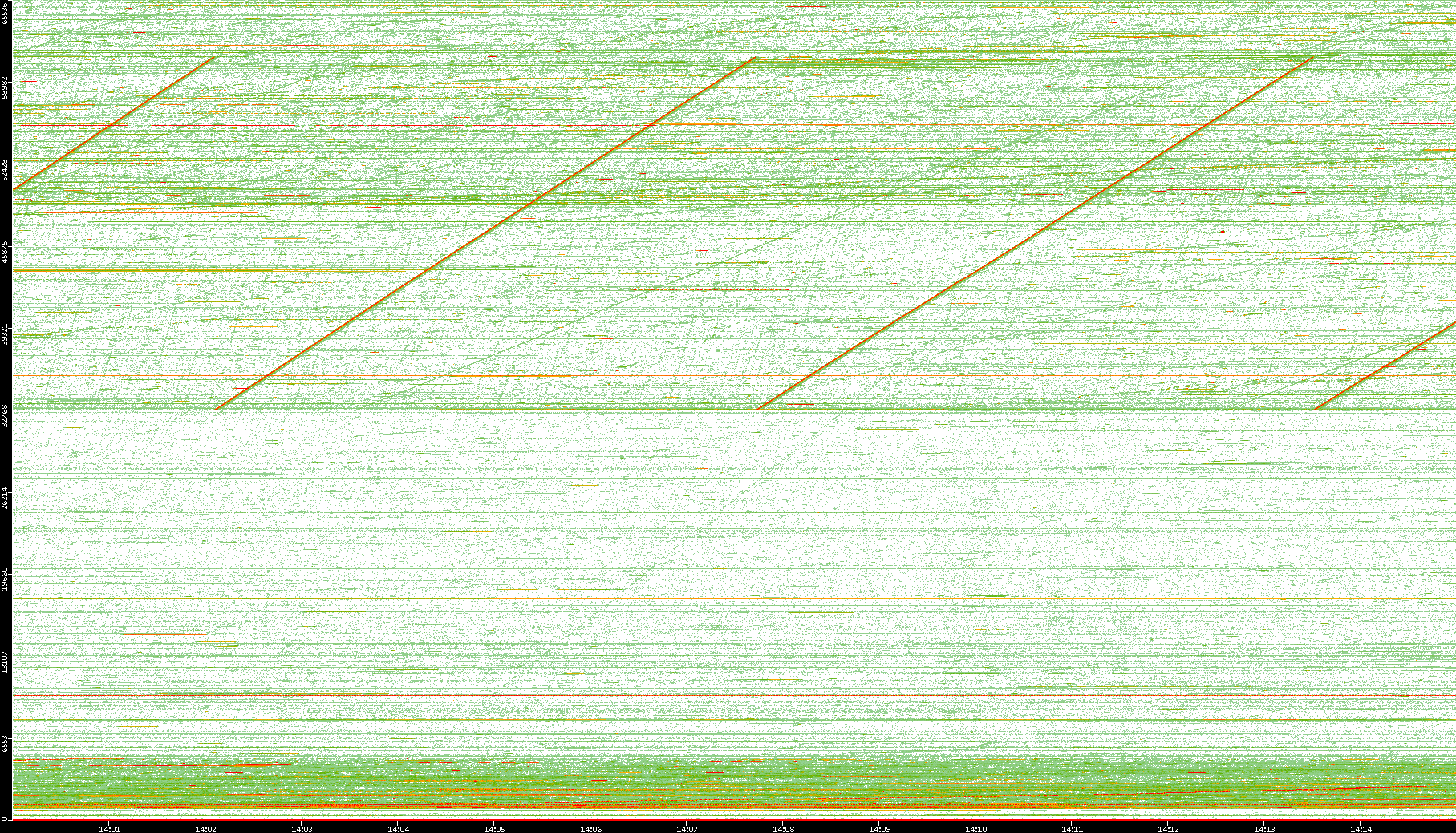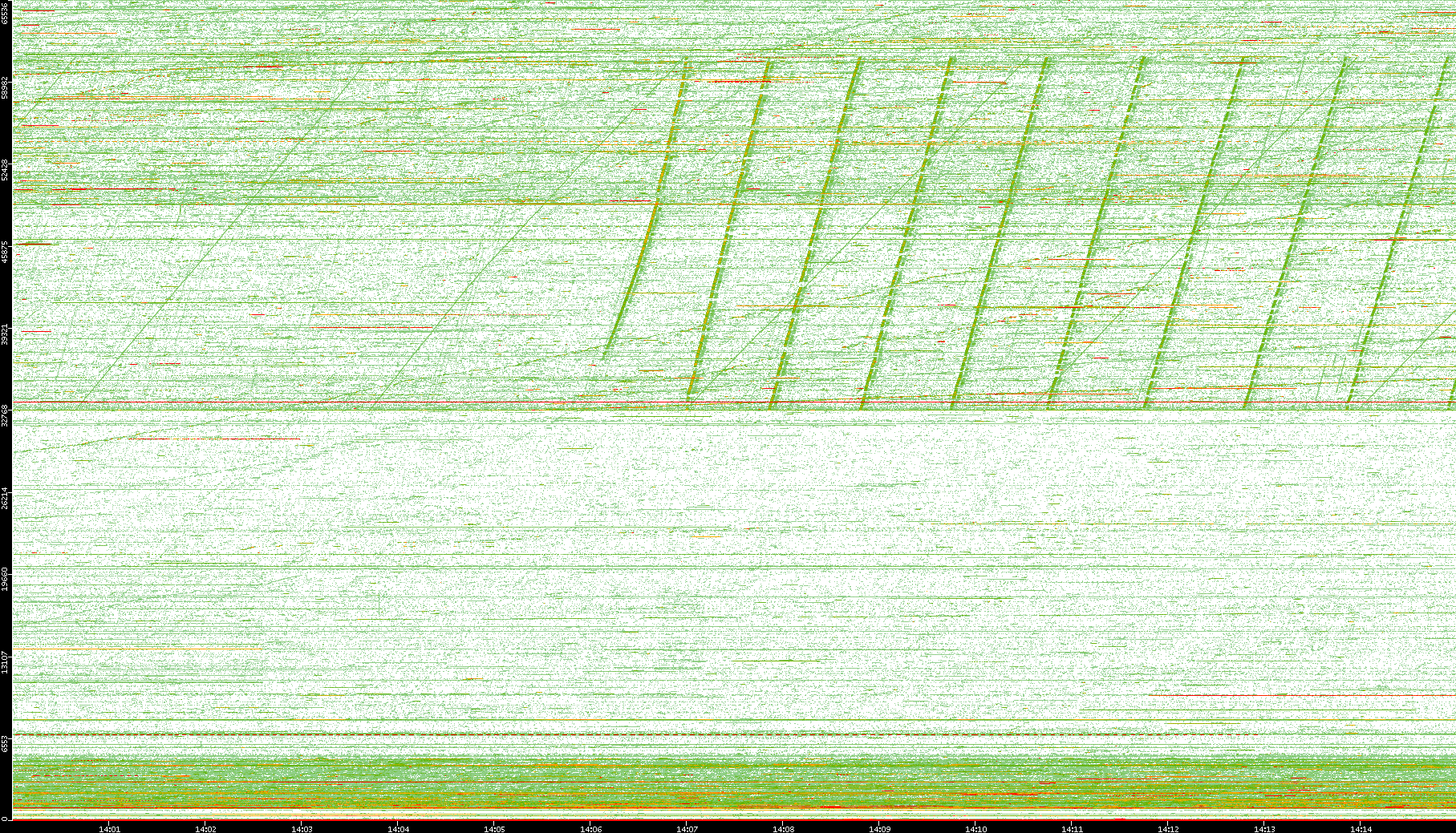 2008/01/14 Dest. IP vs. Time Dest. Port vs. Time Src. IP vs. Time Src. Port vs. Time Nb. of Packets vs. Time Throughput vs. Time Average Packet Size vs. Time Entropy of Port vs. Time
