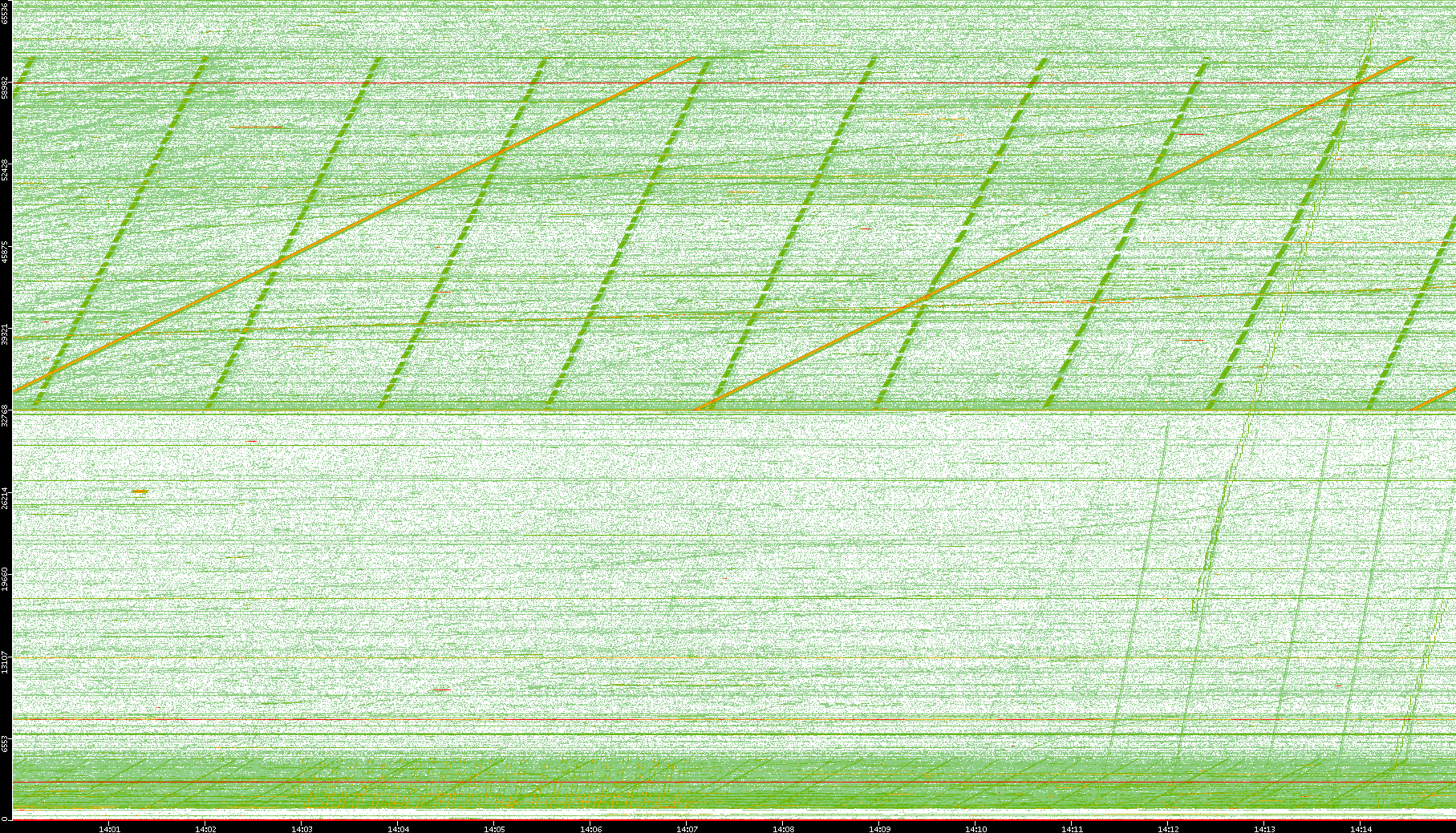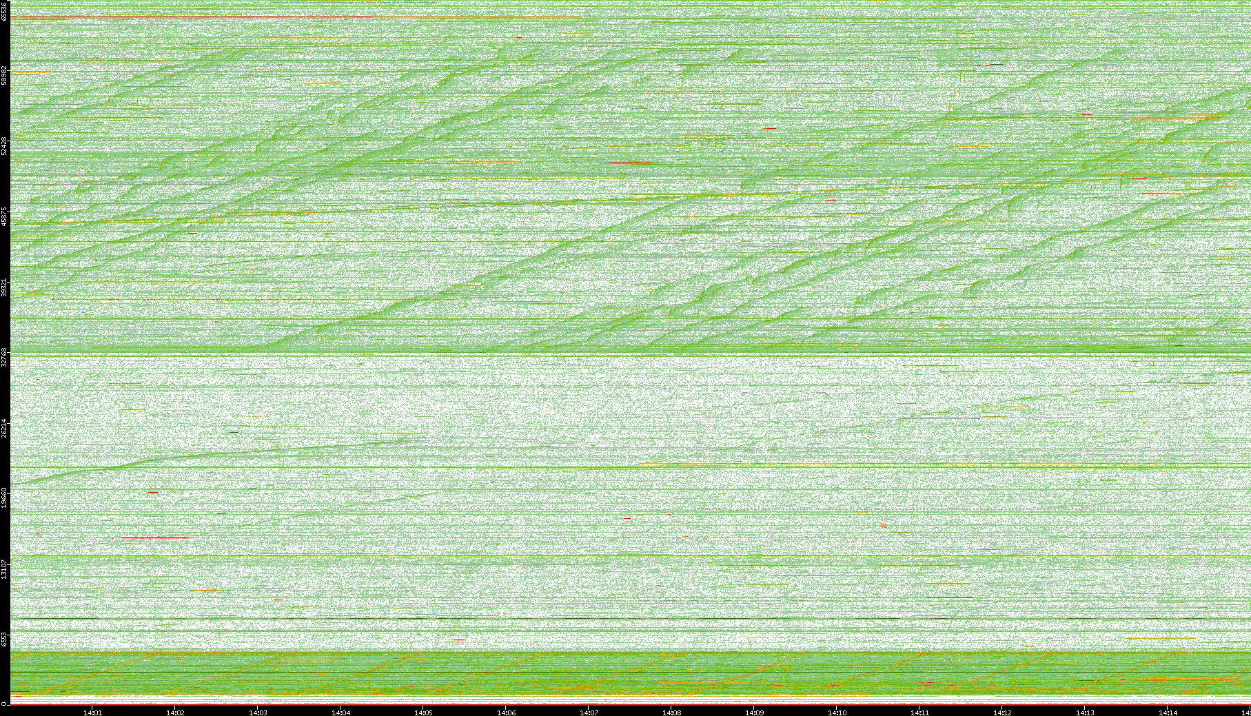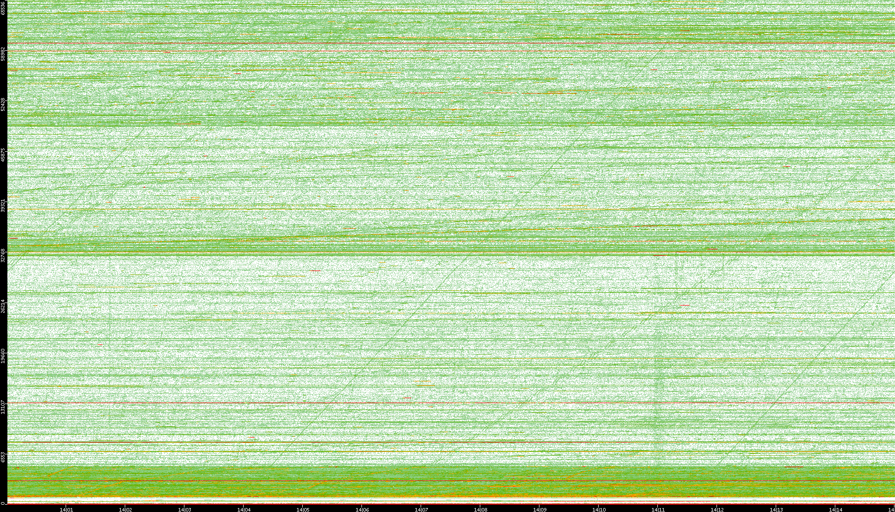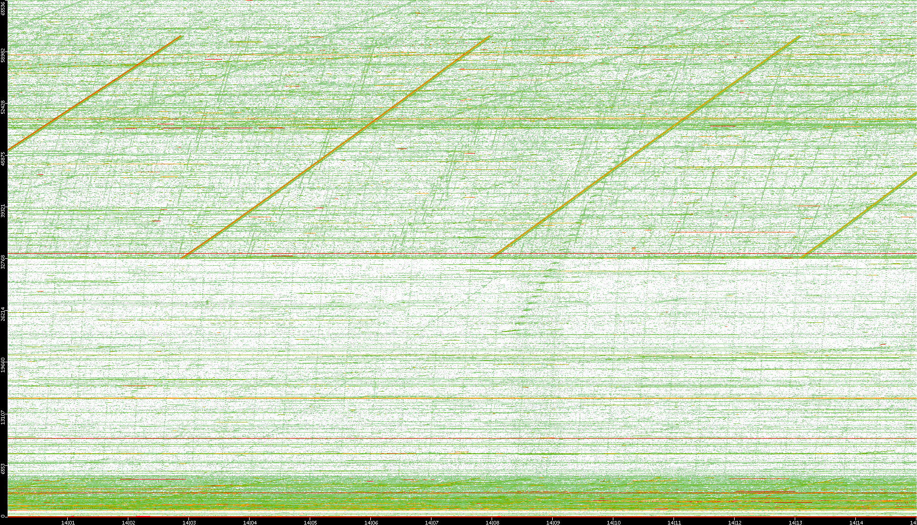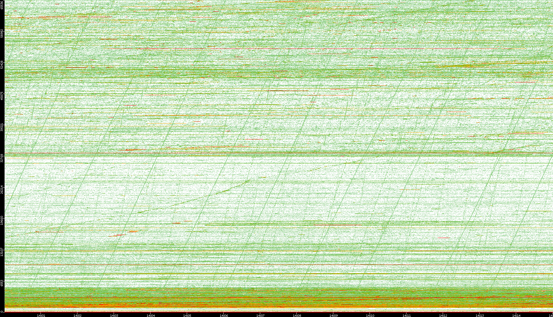 2008/01/14 Dest. IP vs. Time Dest. Port vs. Time Src. IP vs. Time Src. Port vs. Time Nb. of Packets vs. Time Throughput vs. Time Average Packet Size vs. Time Entropy of Port vs. Time