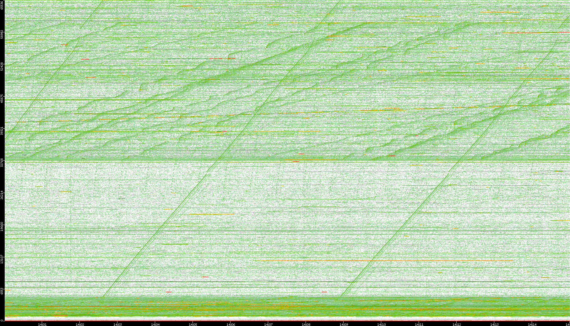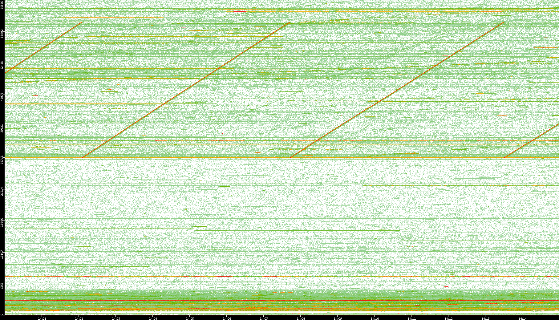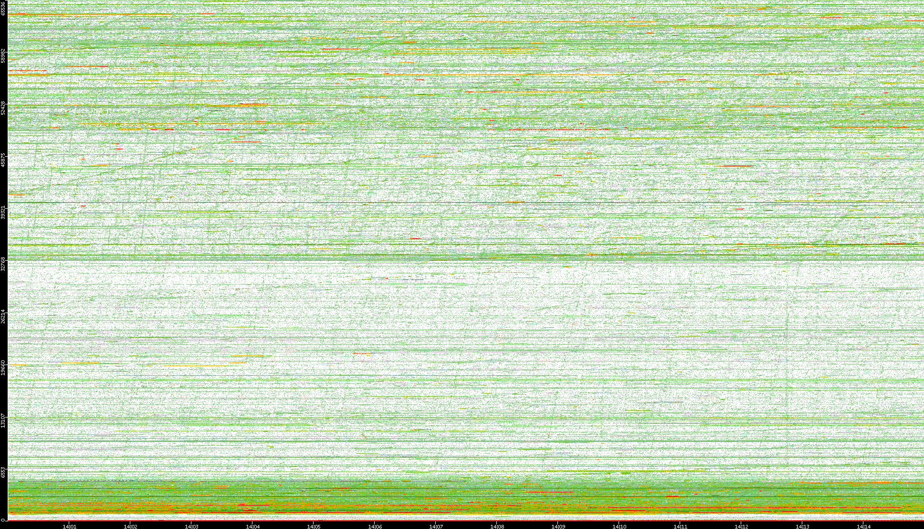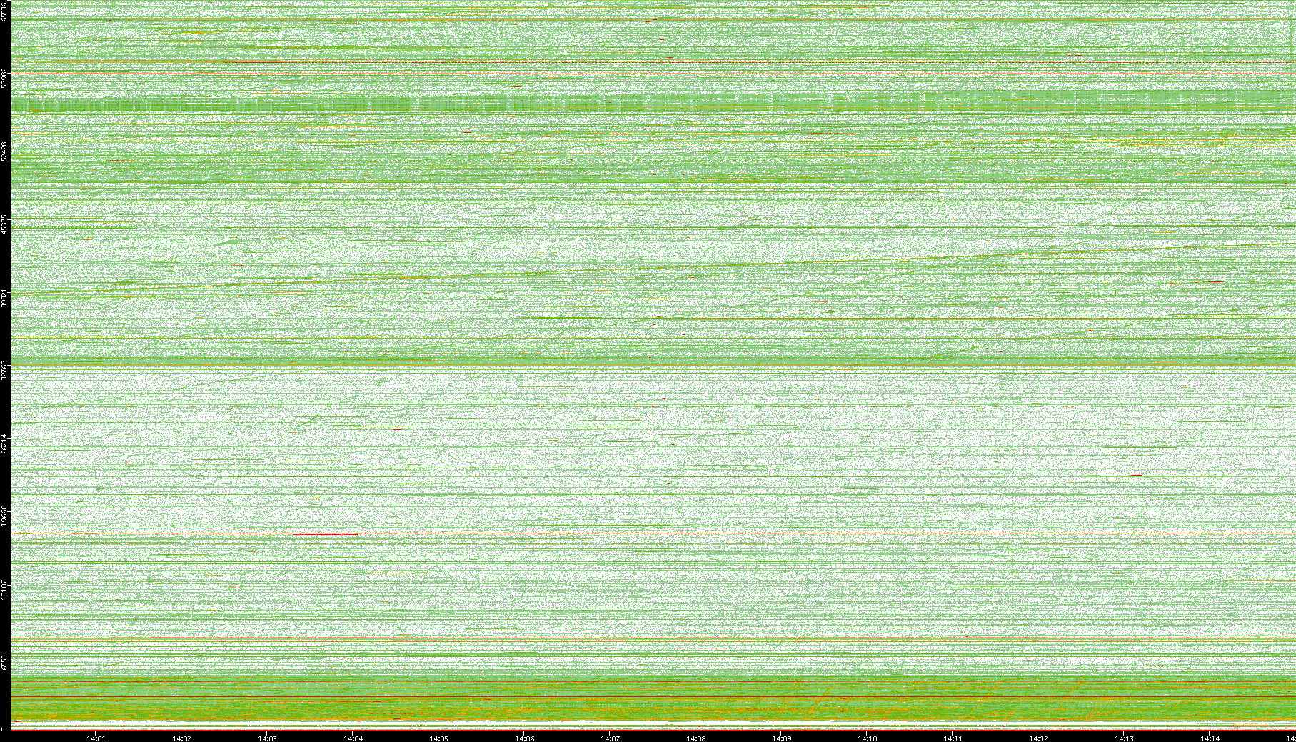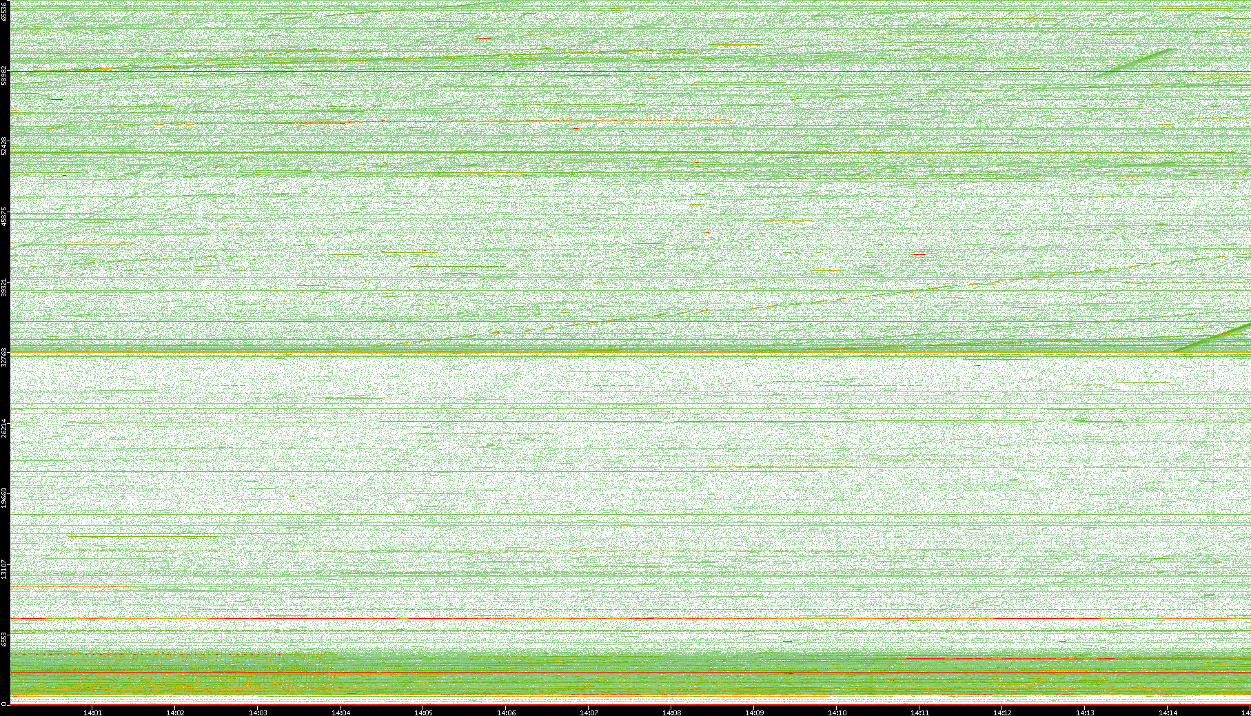 2008/01/14 Dest. IP vs. Time Dest. Port vs. Time Src. IP vs. Time Src. Port vs. Time Nb. of Packets vs. Time Throughput vs. Time Average Packet Size vs. Time Entropy of Port vs. Time