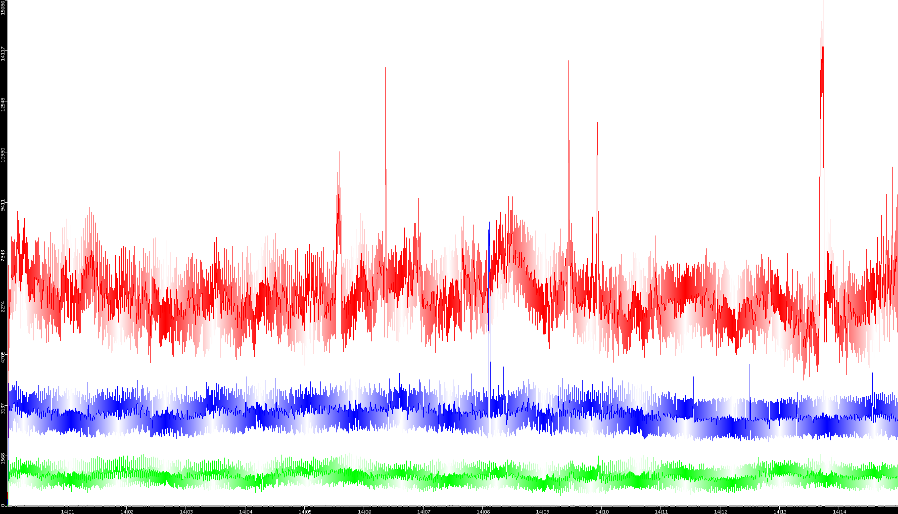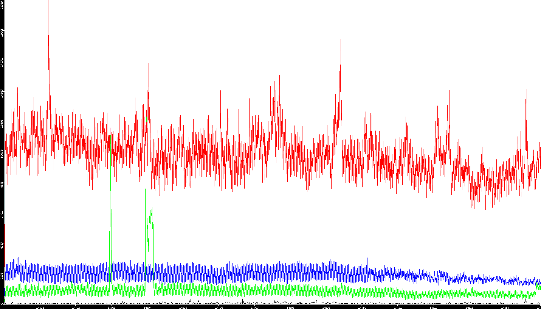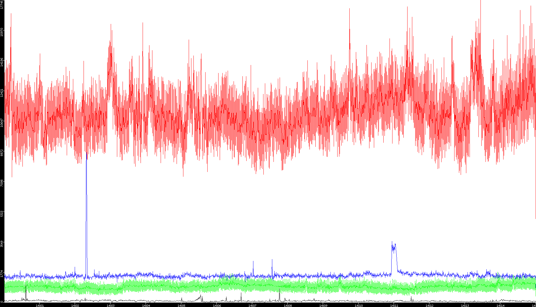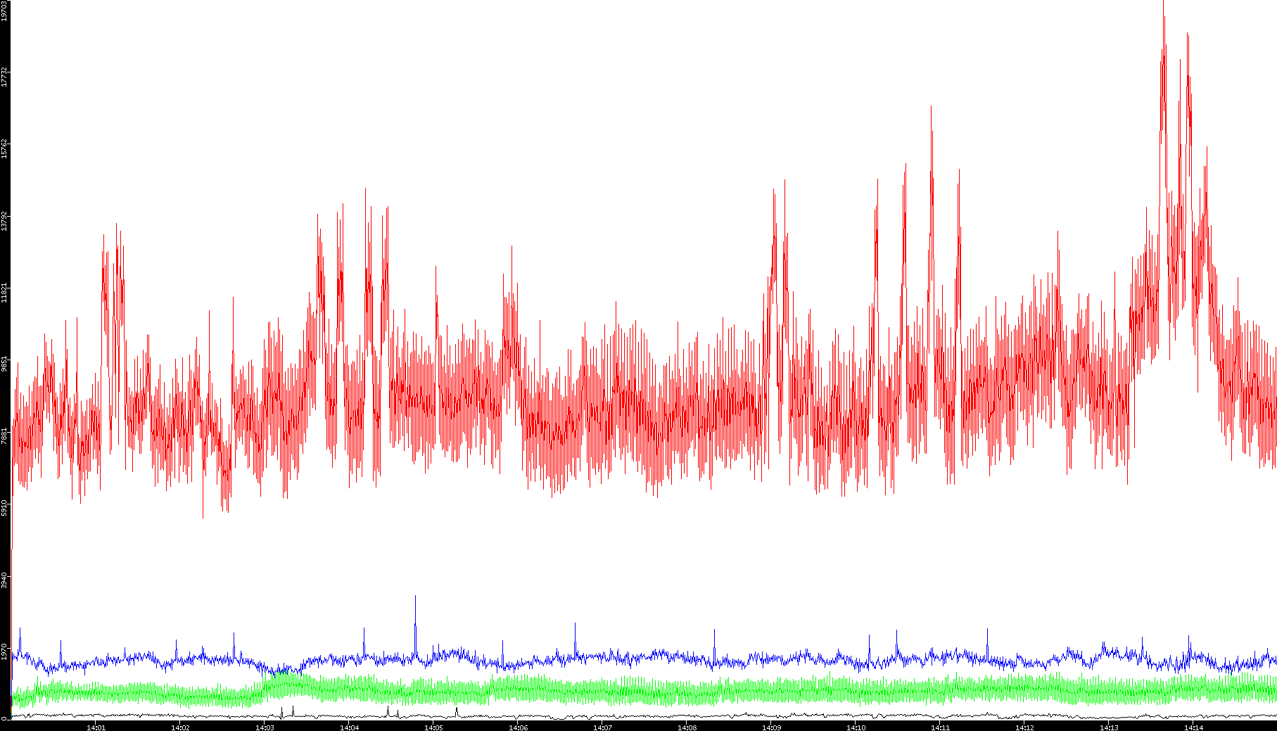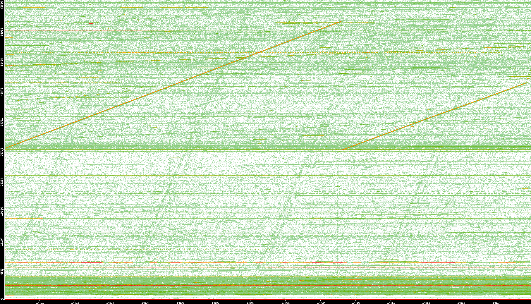 2008/01/14 Dest. IP vs. Time Dest. Port vs. Time Src. IP vs. Time Src. Port vs. Time Nb. of Packets vs. Time Throughput vs. Time Average Packet Size vs. Time Entropy of Port vs. Time