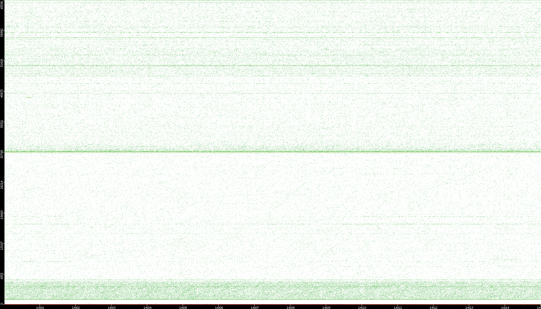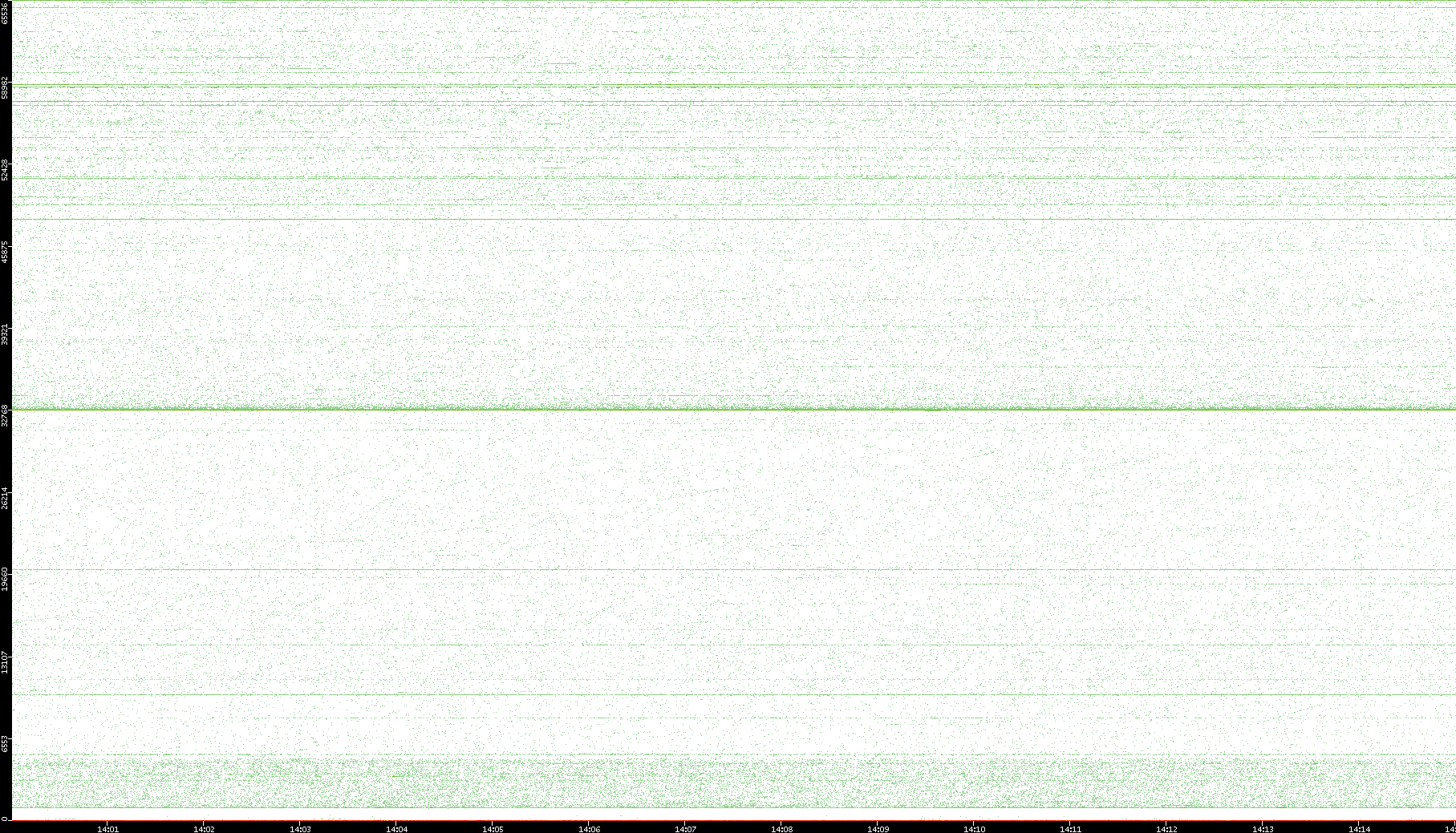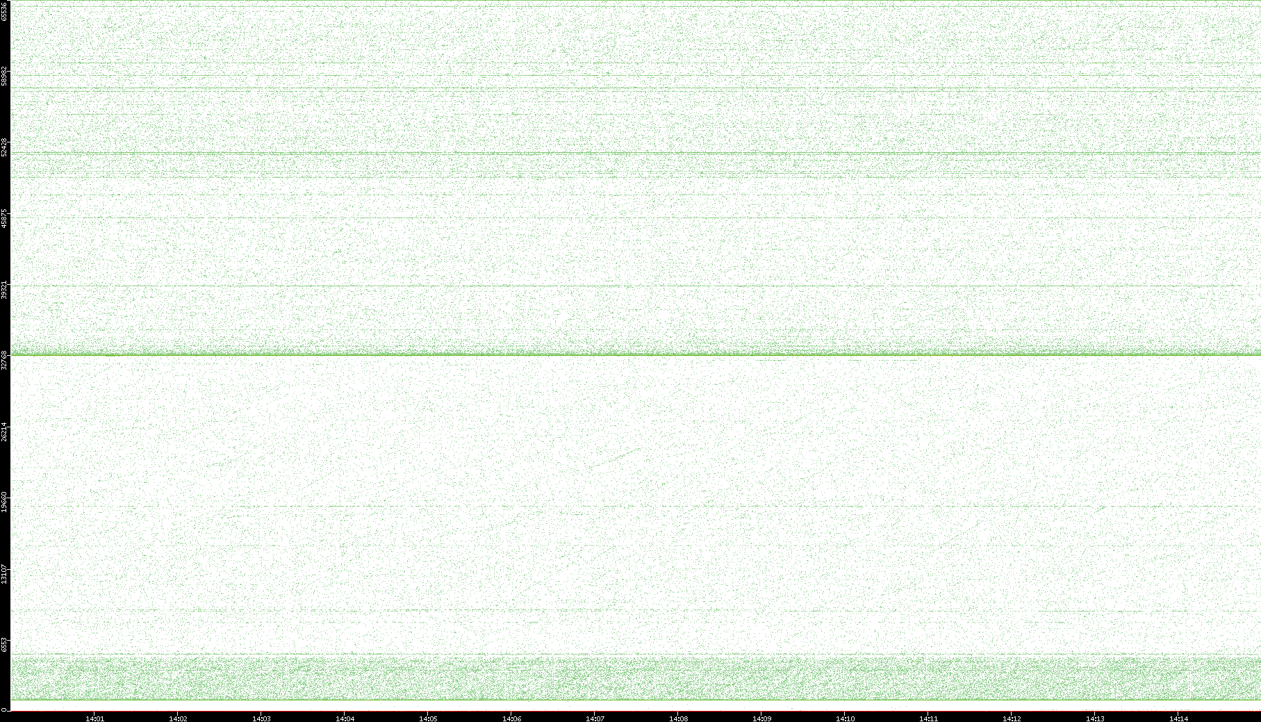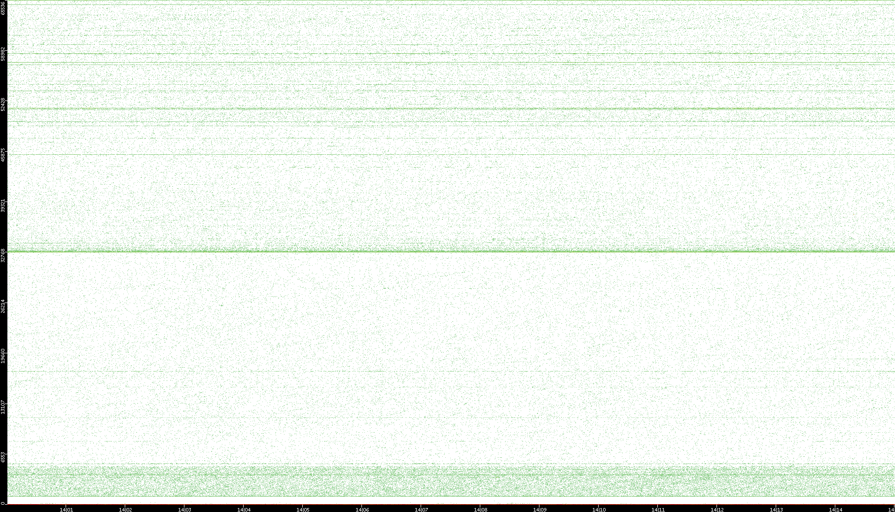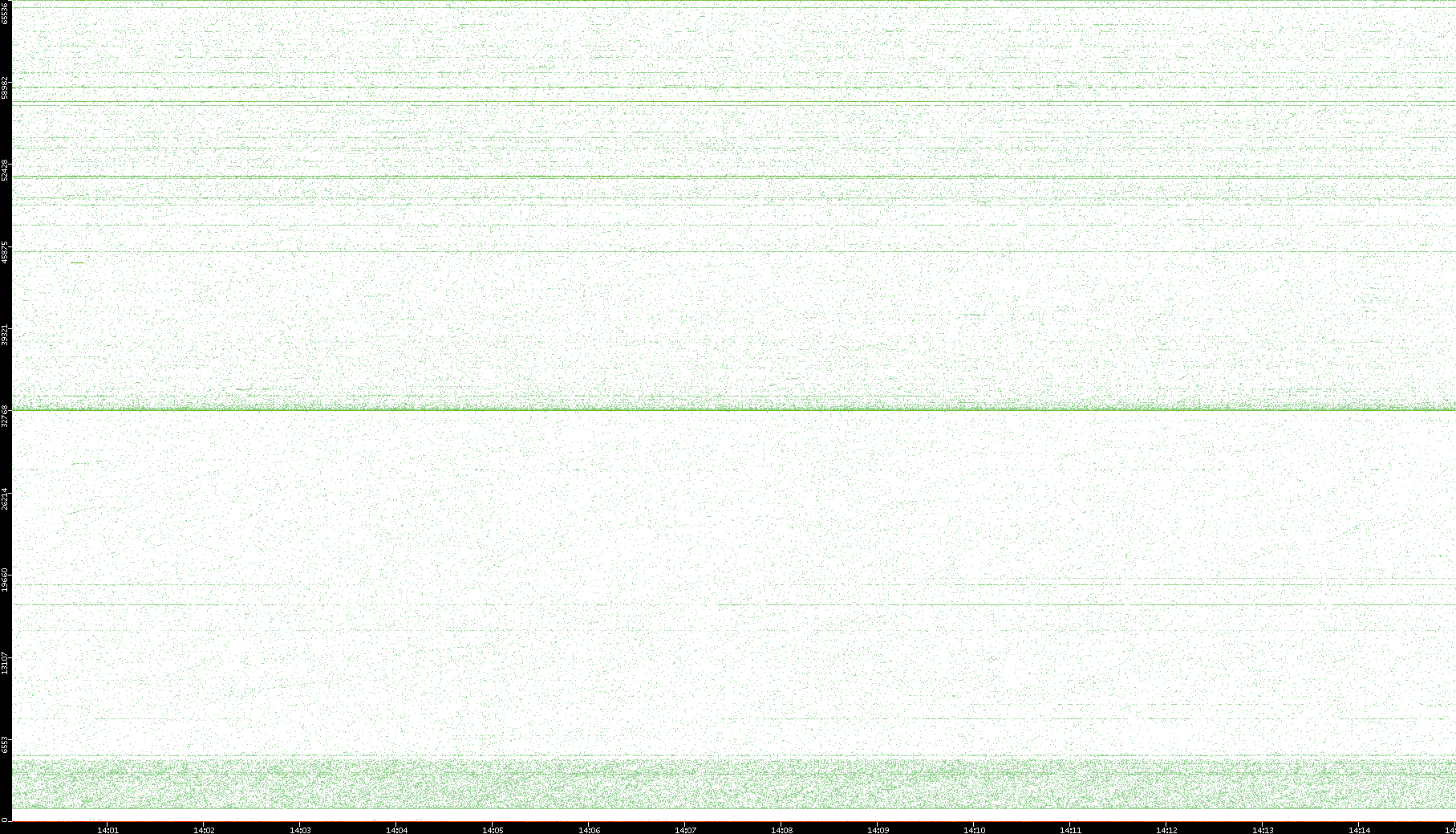 2008/02/14 Dest. IP vs. Time Dest. Port vs. Time Src. IP vs. Time Src. Port vs. Time Nb. of Packets vs. Time Throughput vs. Time Average Packet Size vs. Time Entropy of Port vs. Time