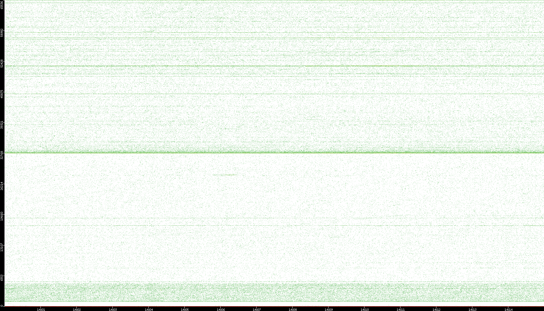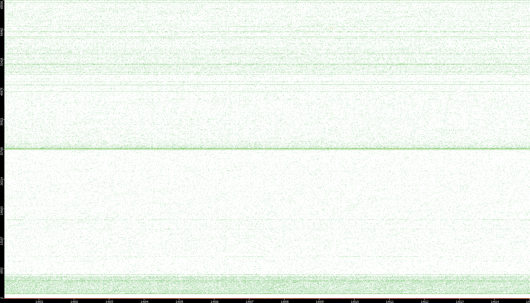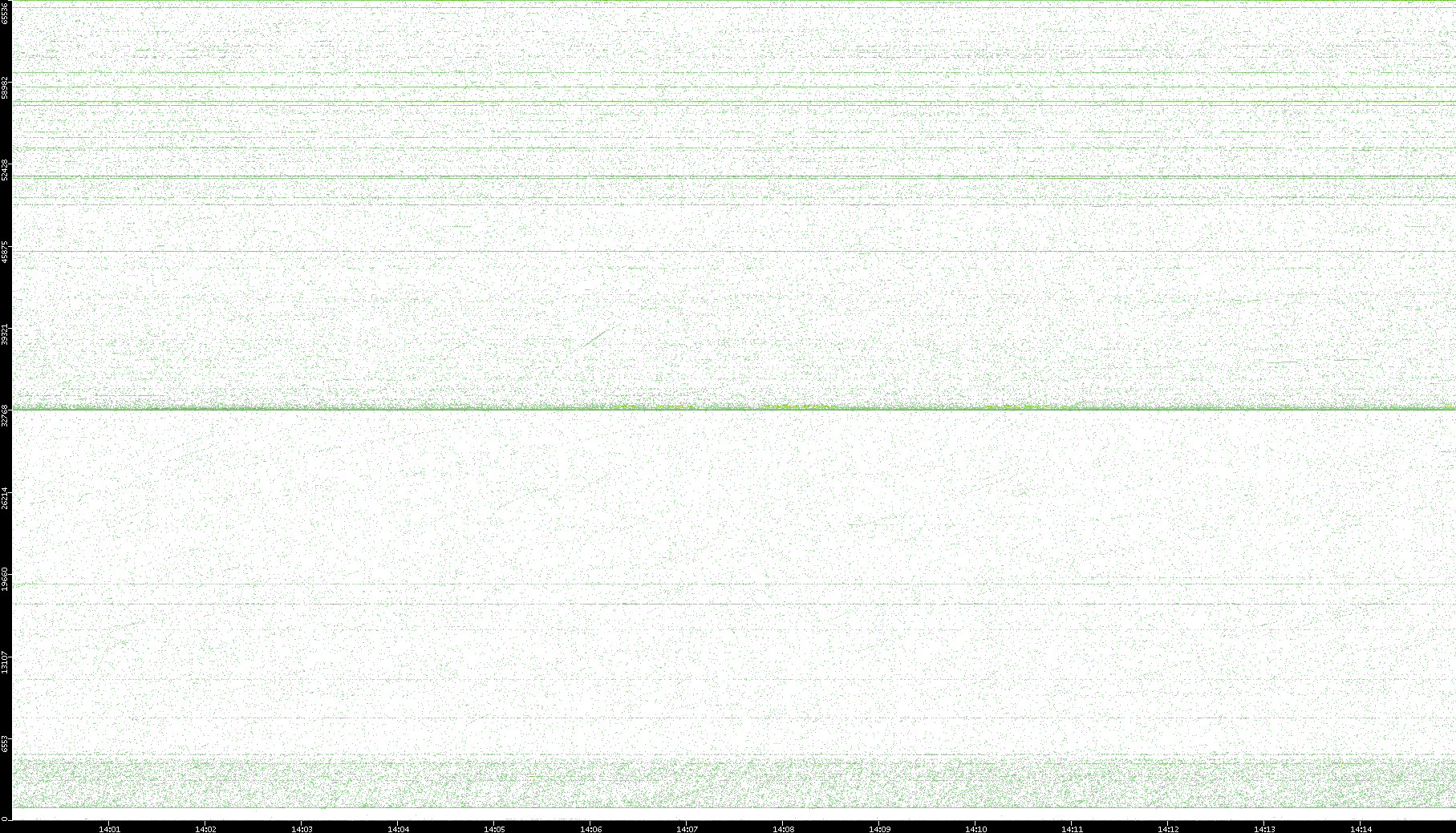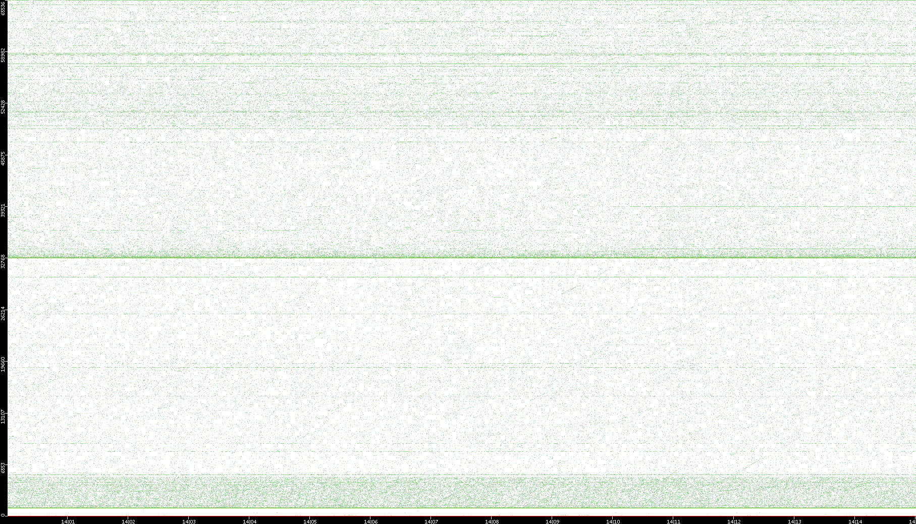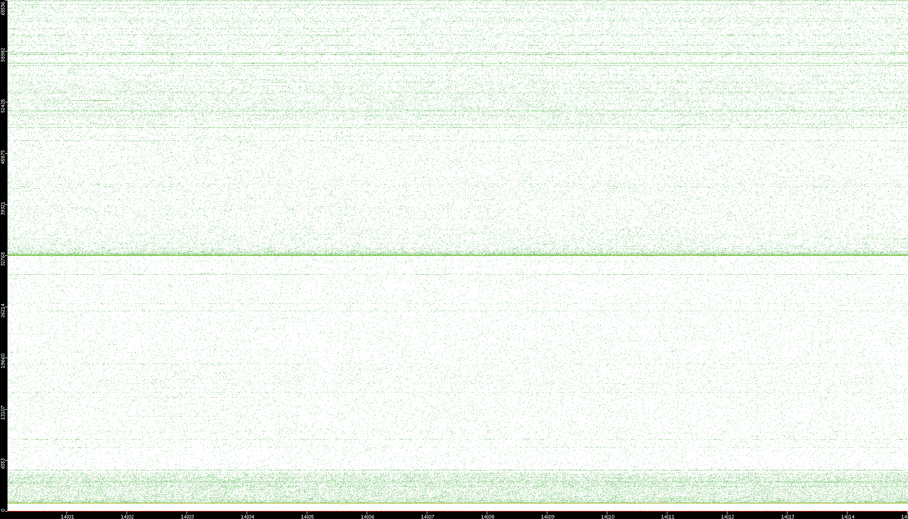 2008/02/14 Dest. IP vs. Time Dest. Port vs. Time Src. IP vs. Time Src. Port vs. Time Nb. of Packets vs. Time Throughput vs. Time Average Packet Size vs. Time Entropy of Port vs. Time