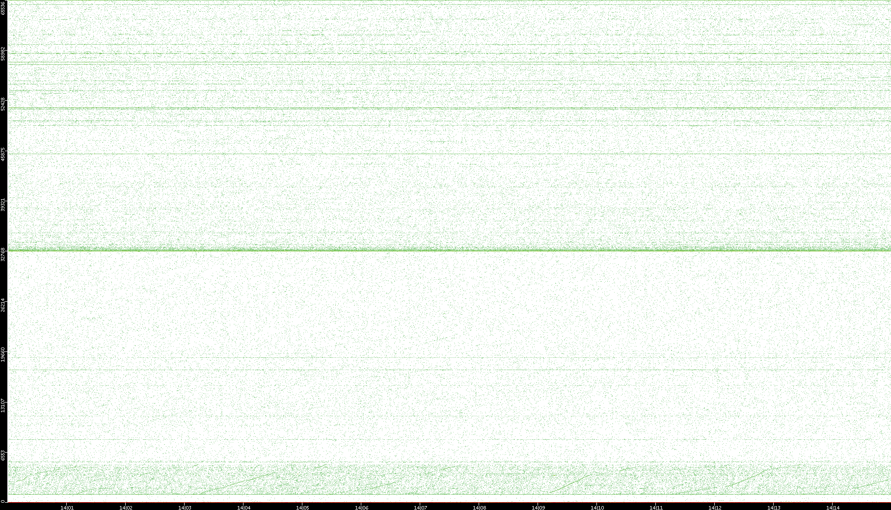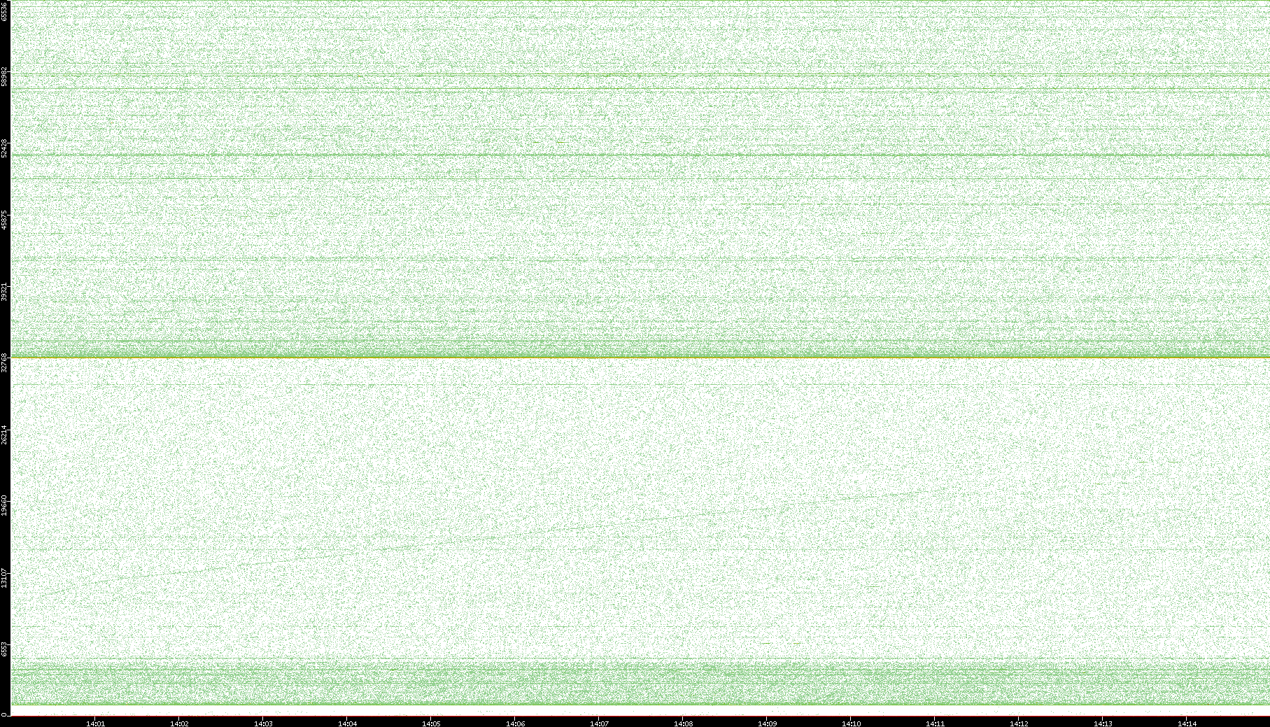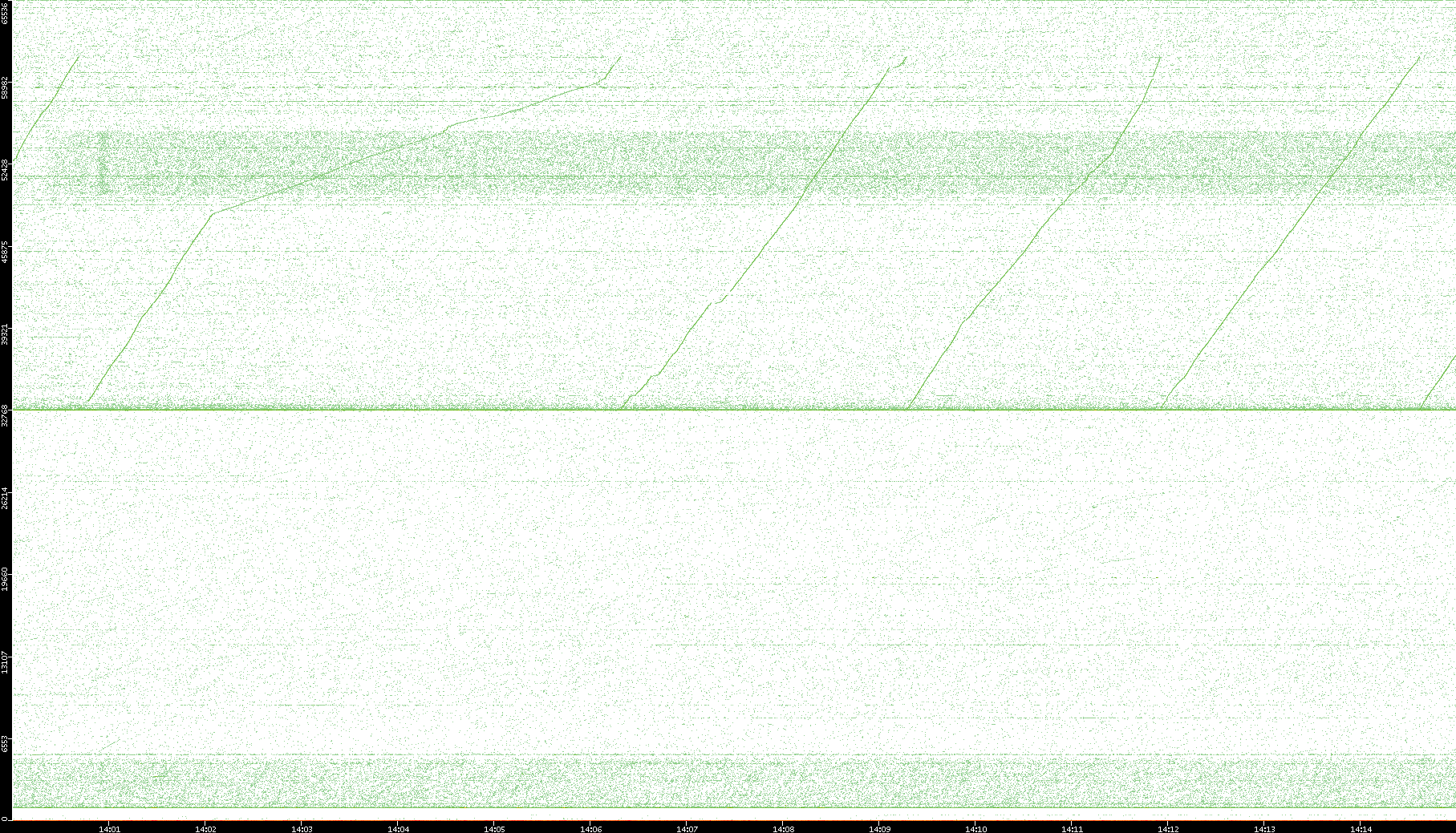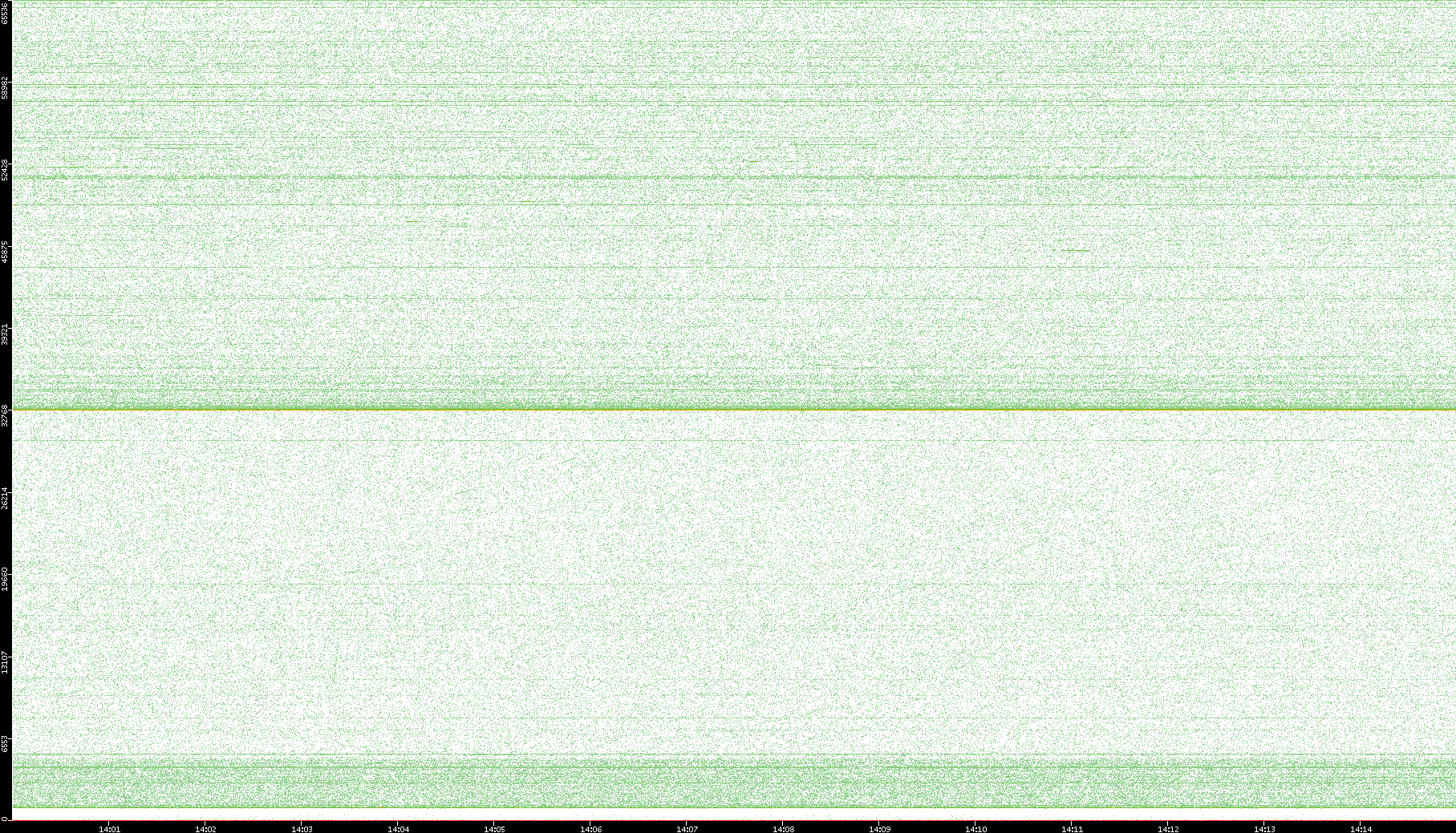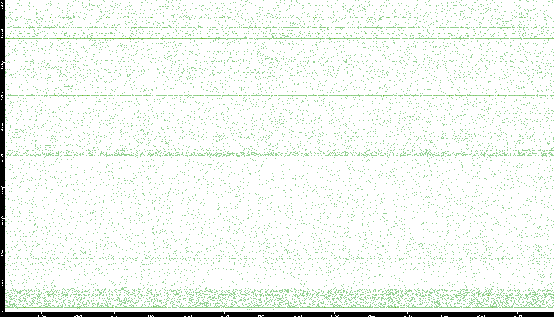 2008/02/14 Dest. IP vs. Time Dest. Port vs. Time Src. IP vs. Time Src. Port vs. Time Nb. of Packets vs. Time Throughput vs. Time Average Packet Size vs. Time Entropy of Port vs. Time