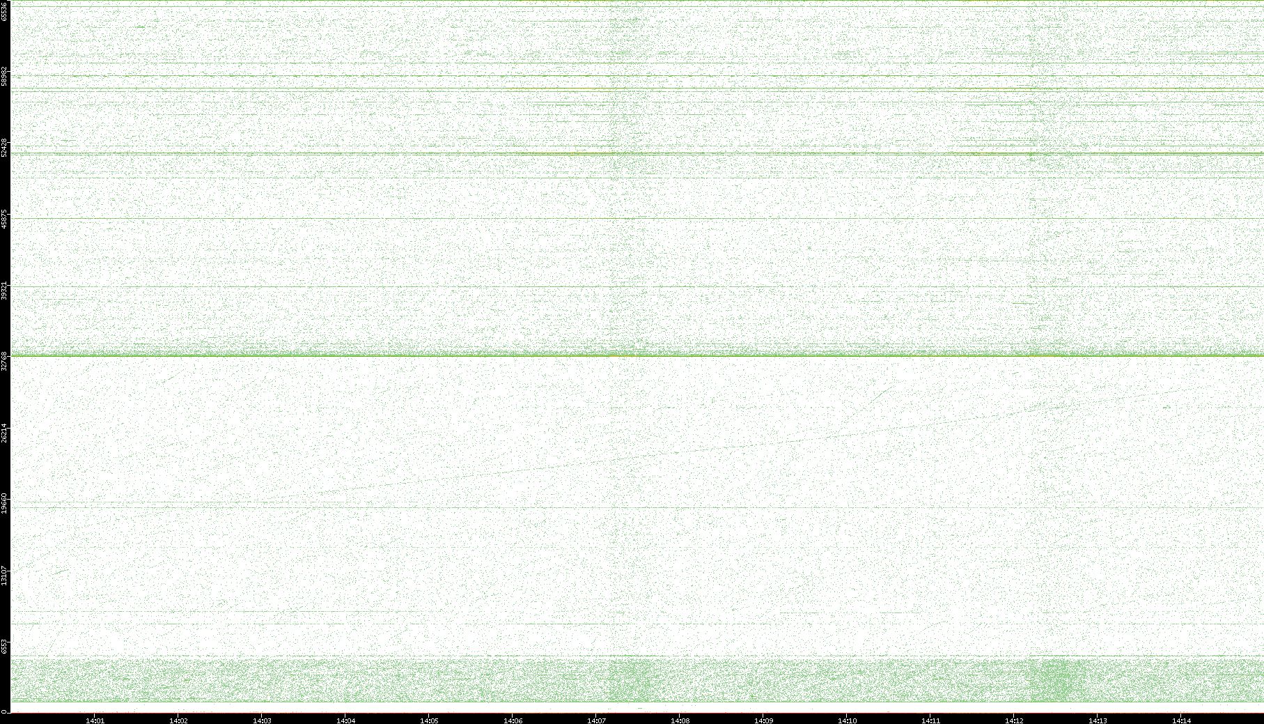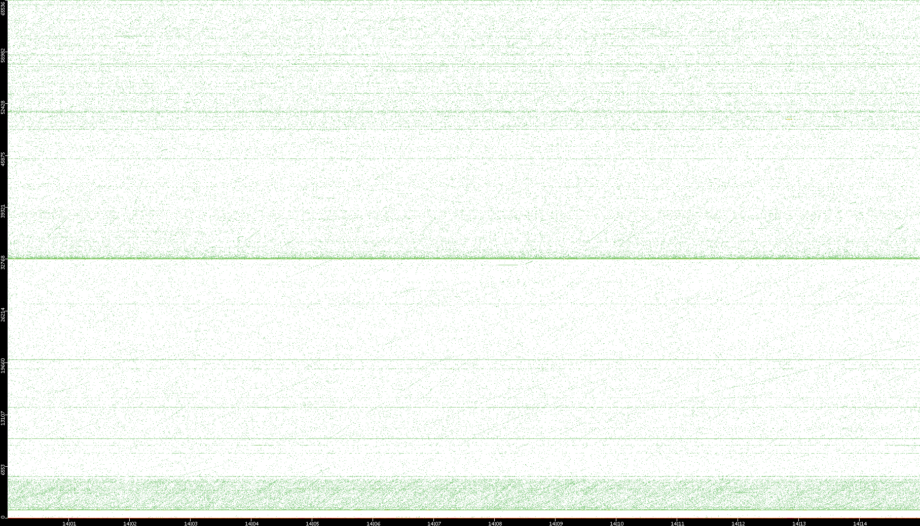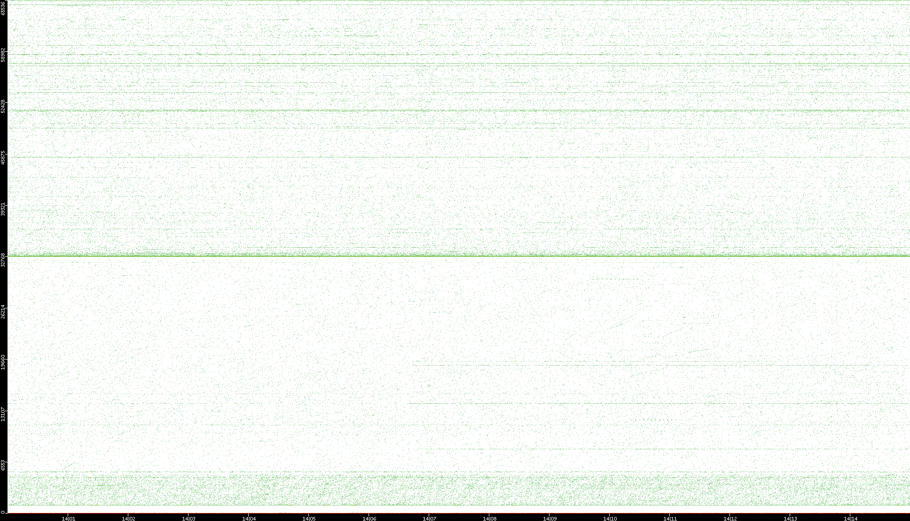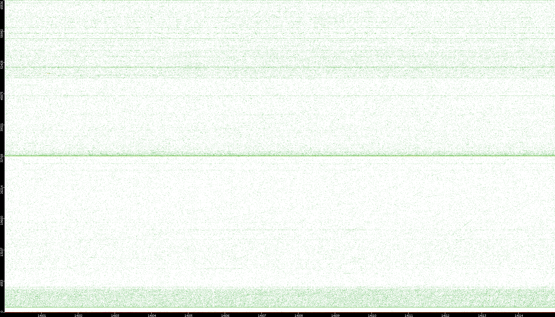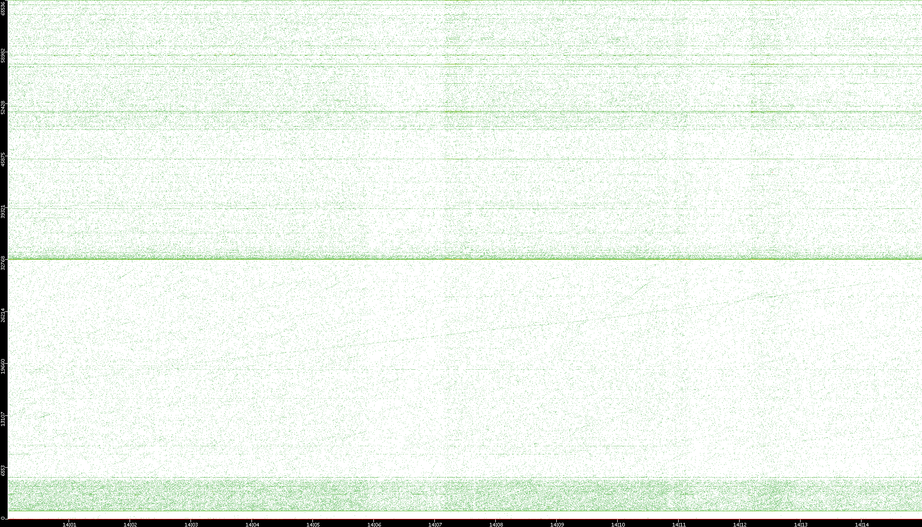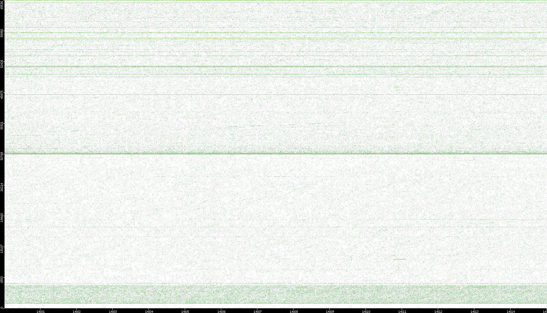2008/02/14 Dest. IP vs. Time Dest. Port vs. Time Src. IP vs. Time Src. Port vs. Time Nb. of Packets vs. Time Throughput vs. Time Average Packet Size vs. Time Entropy of Port vs. Time