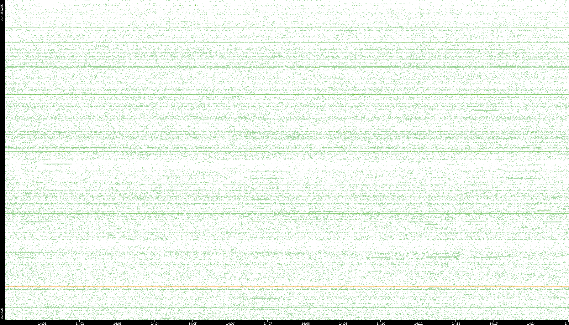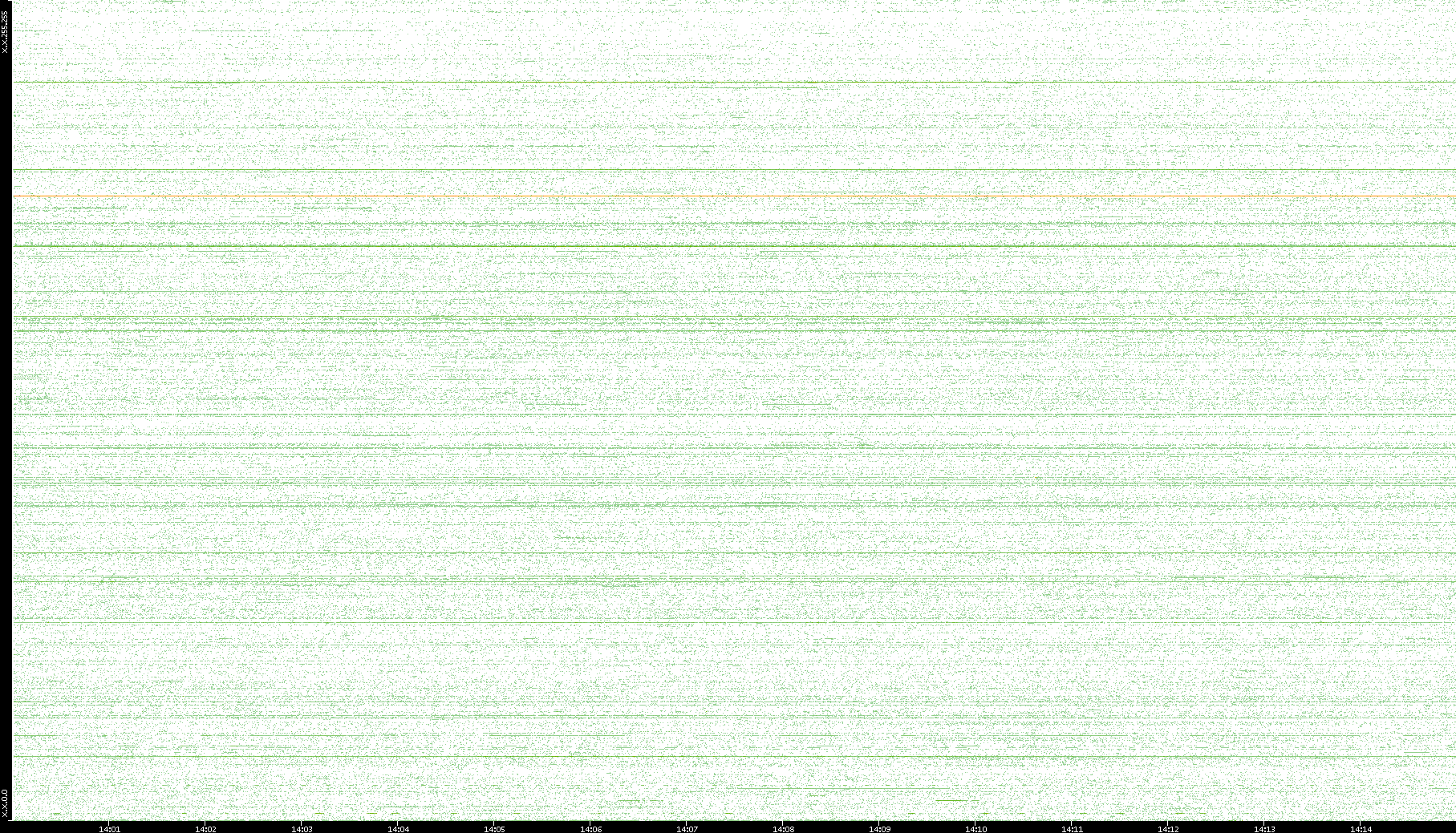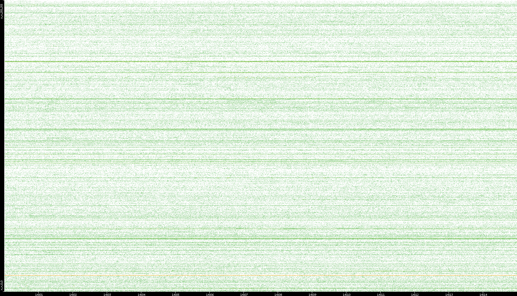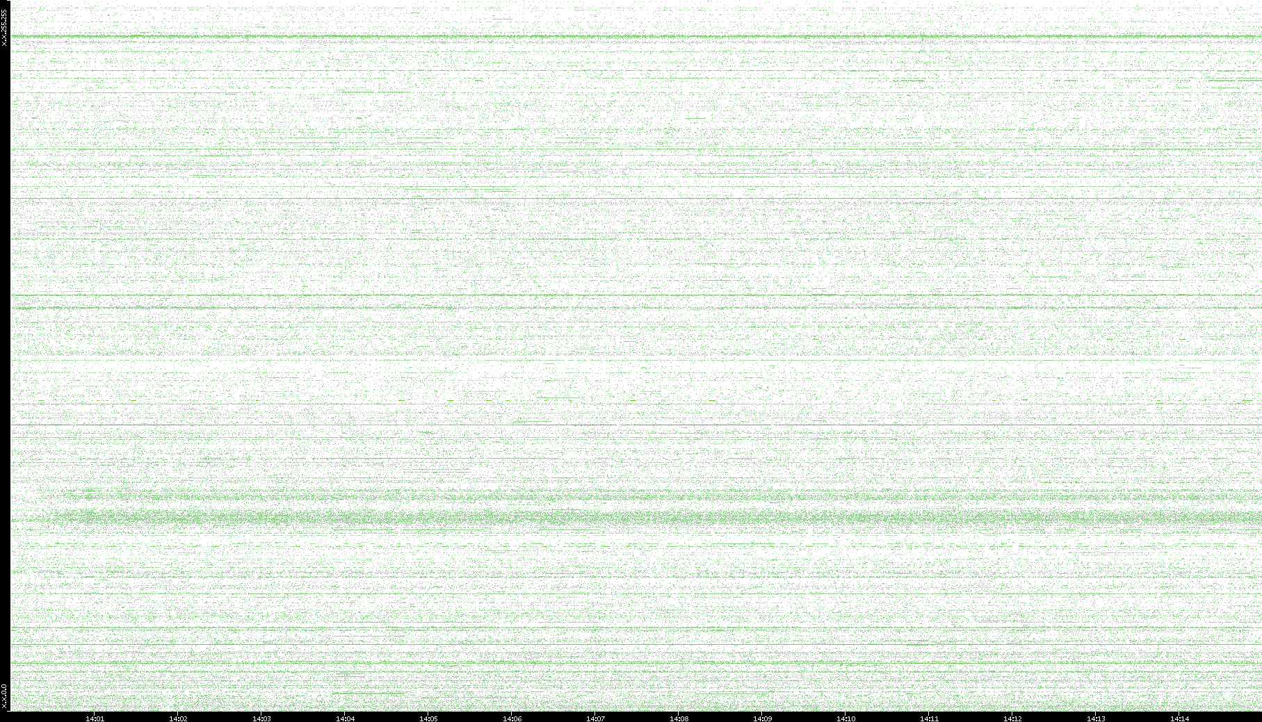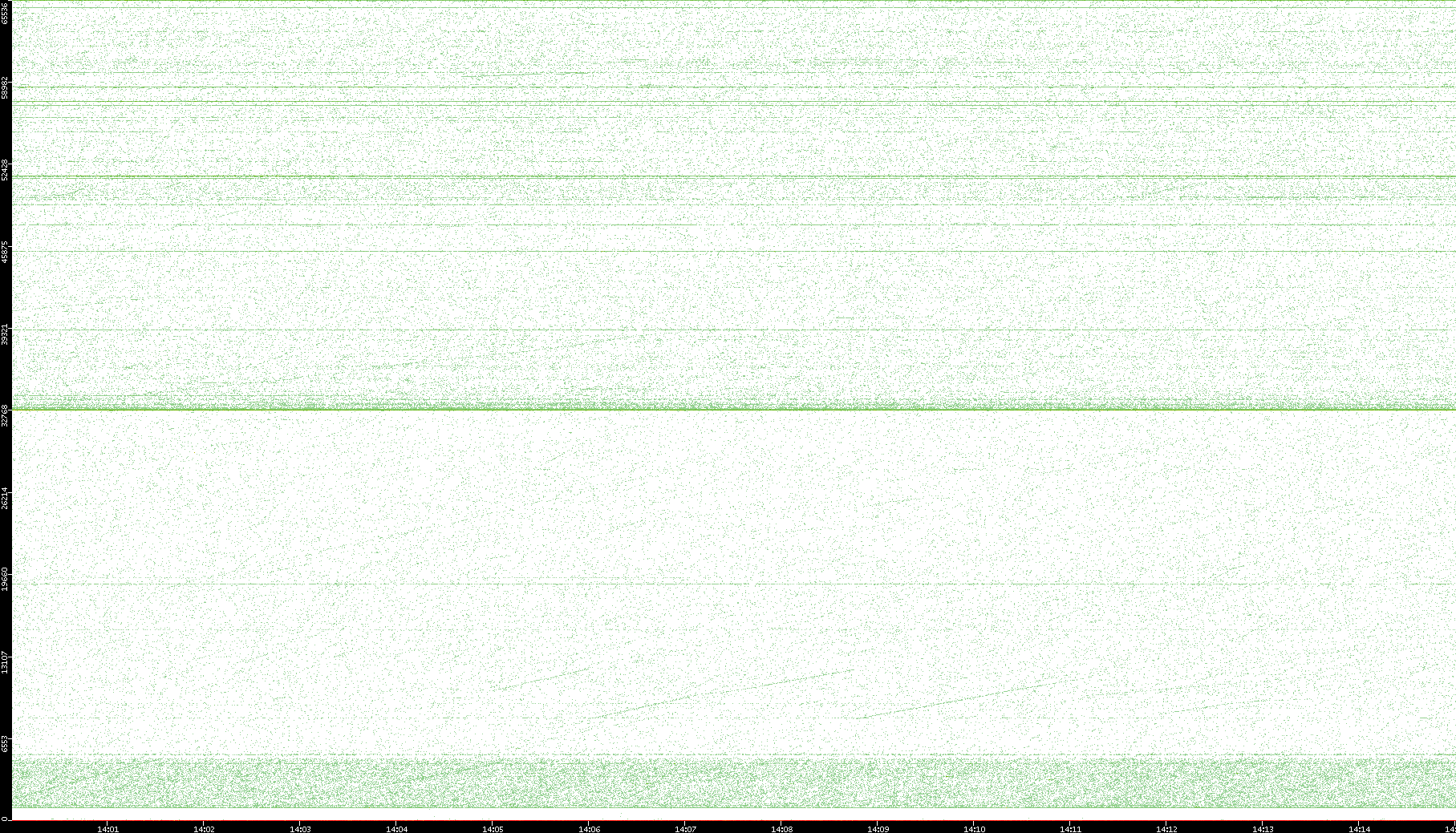 2008/02/14 Dest. IP vs. Time Dest. Port vs. Time Src. IP vs. Time Src. Port vs. Time Nb. of Packets vs. Time Throughput vs. Time Average Packet Size vs. Time Entropy of Port vs. Time