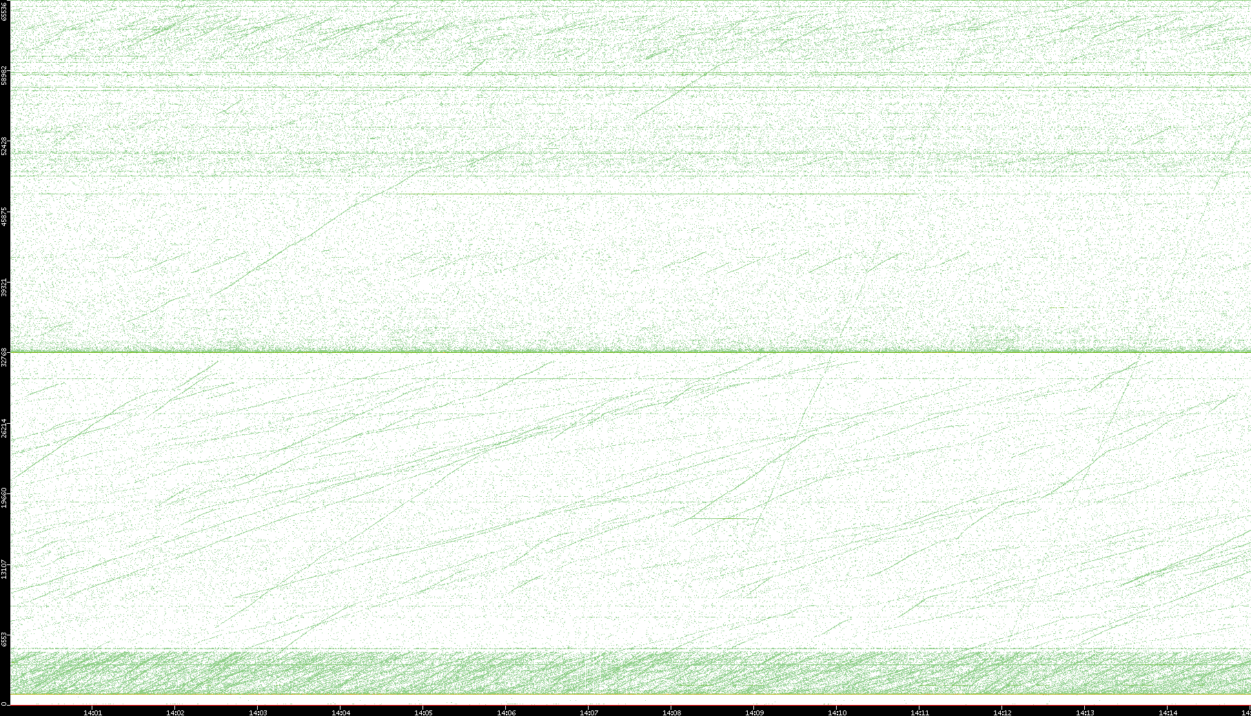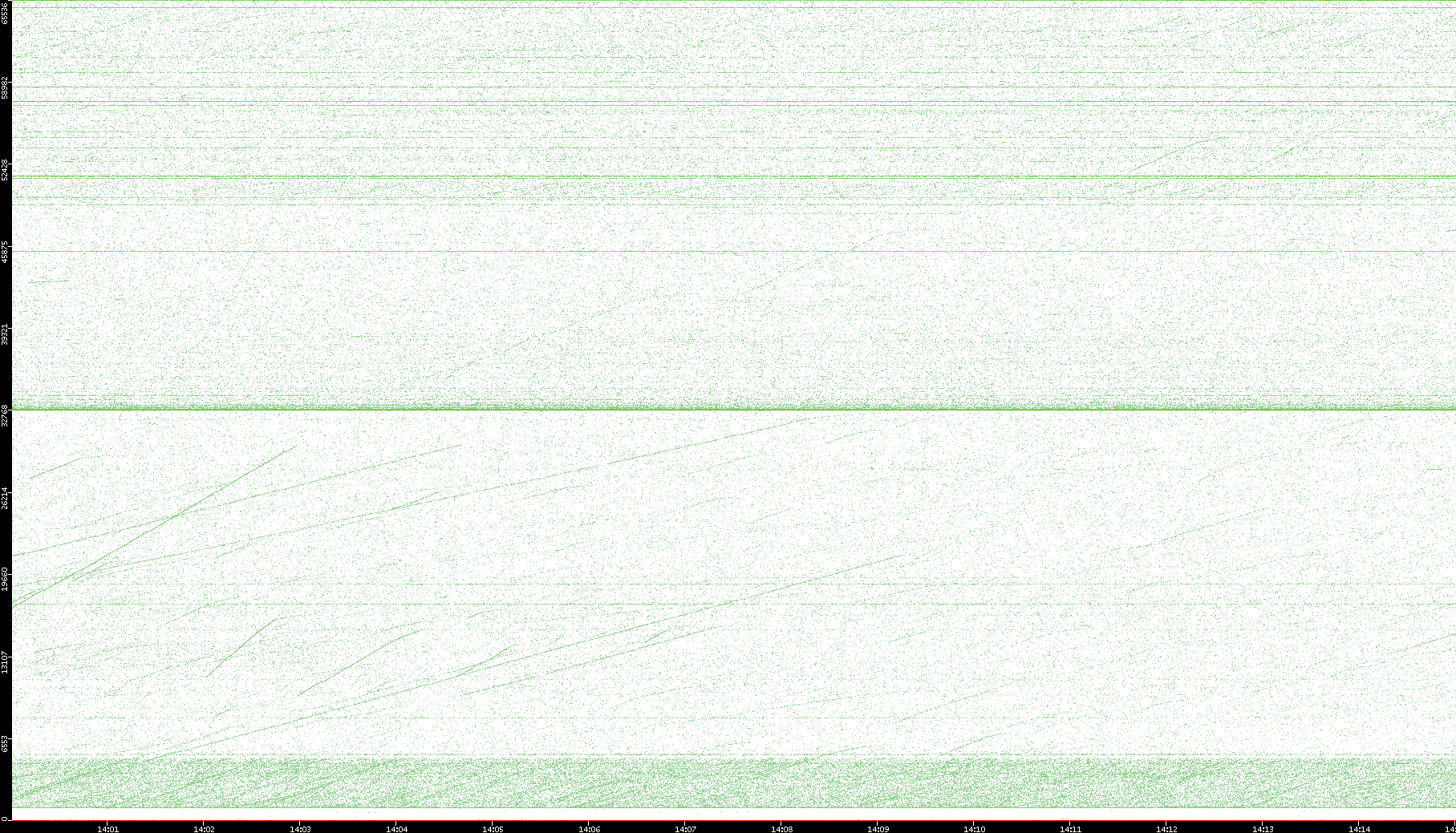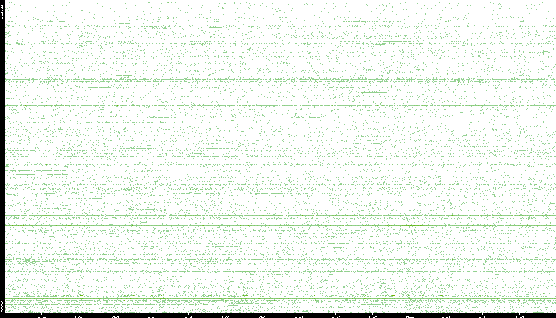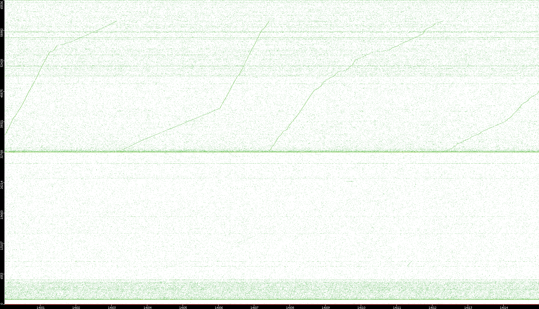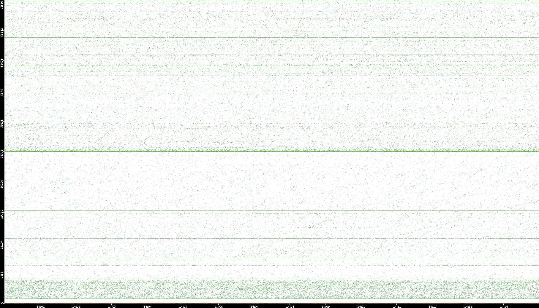 2008/02/14 Dest. IP vs. Time Dest. Port vs. Time Src. IP vs. Time Src. Port vs. Time Nb. of Packets vs. Time Throughput vs. Time Average Packet Size vs. Time Entropy of Port vs. Time