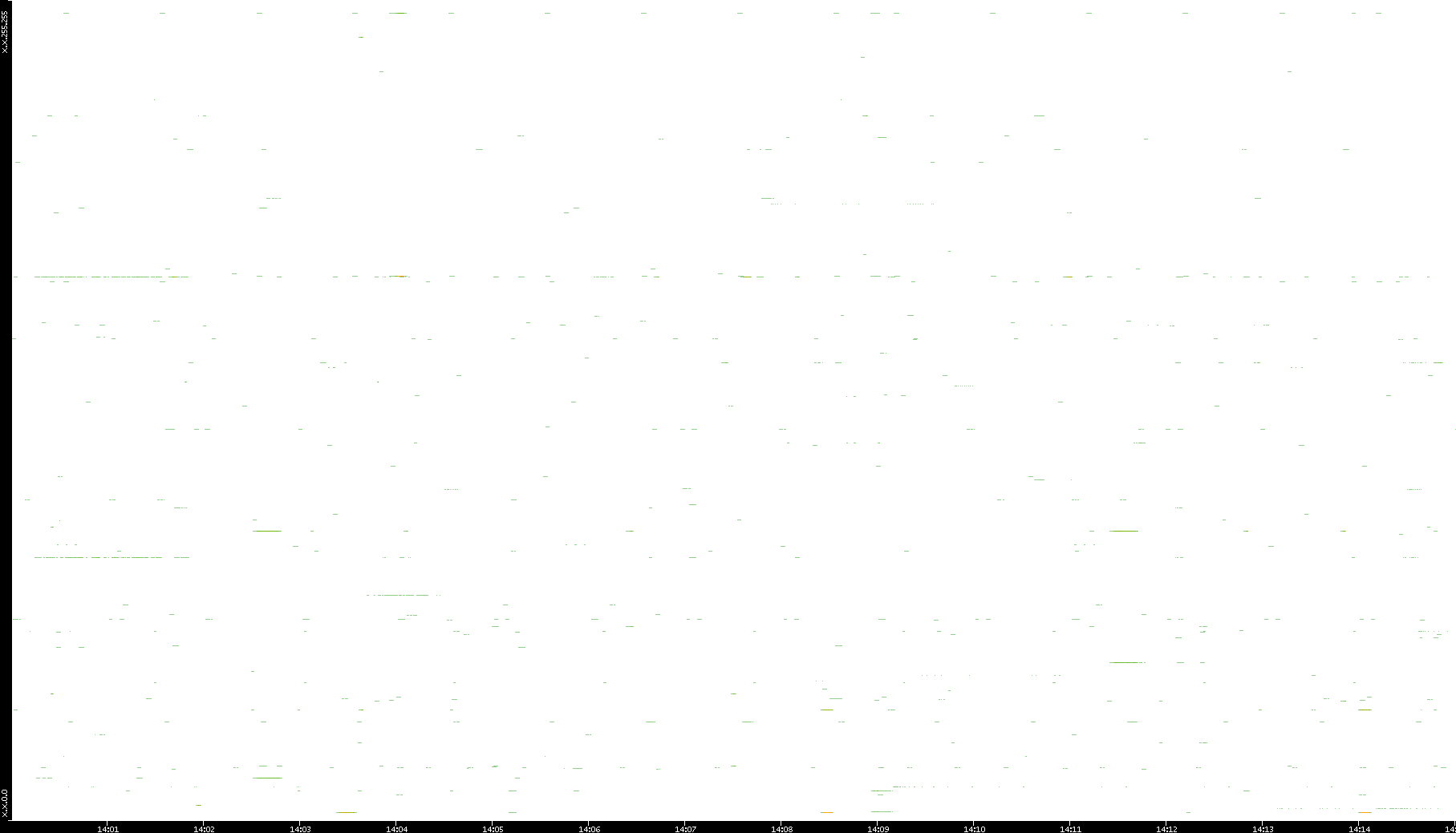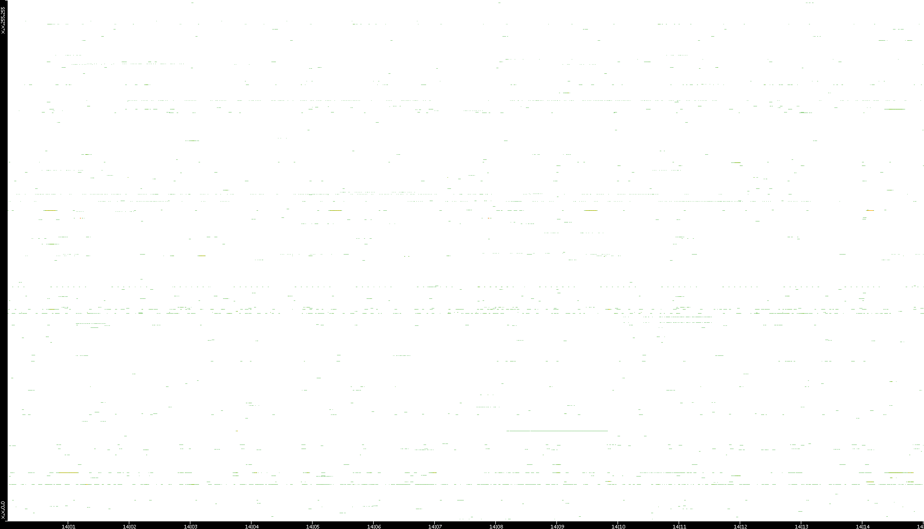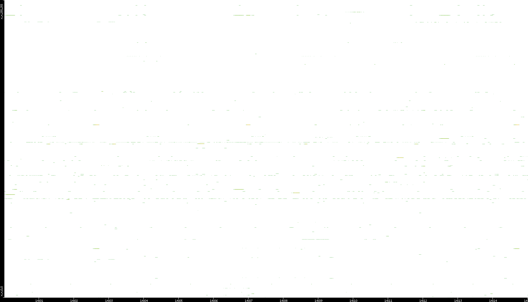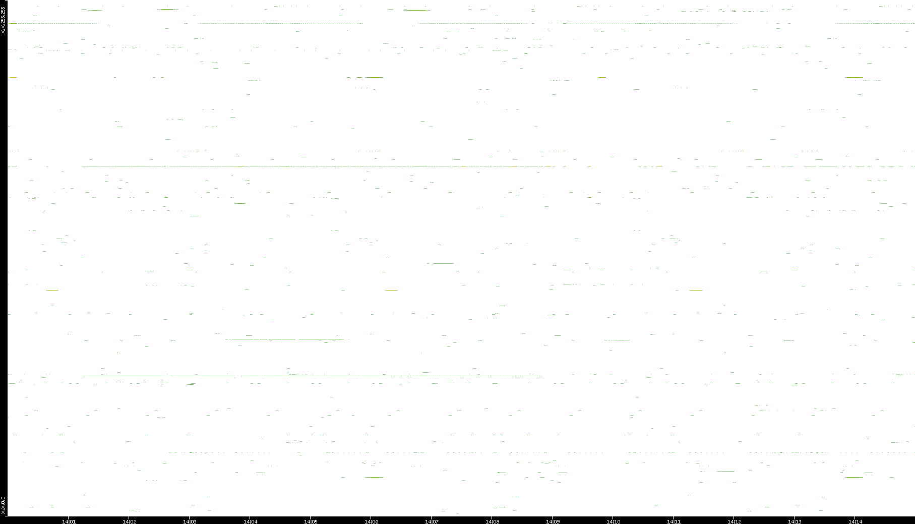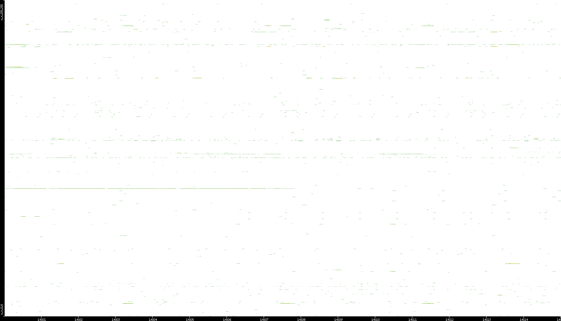 | Date | Dest. IP vs. Time | Dest. Port vs. Time | Src. IP vs. Time | Src. Port vs. Time | Nb. of Packets vs. Time | Throughput vs. Time | Average Packet Size vs. Time | Entropy of Port vs. Time |