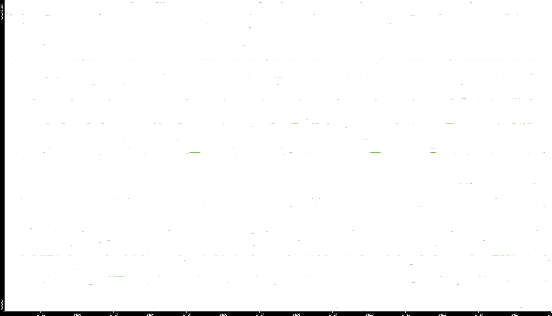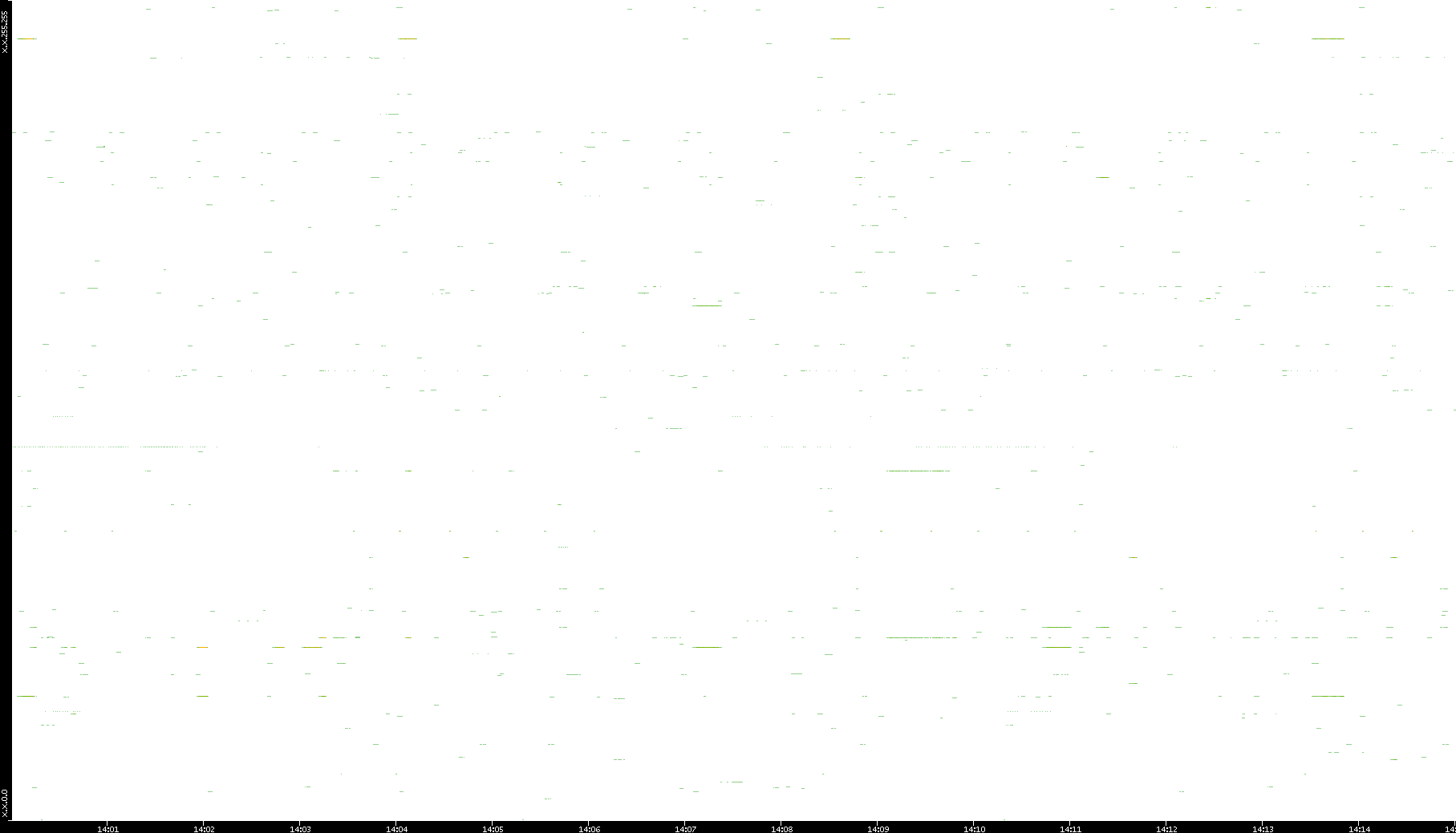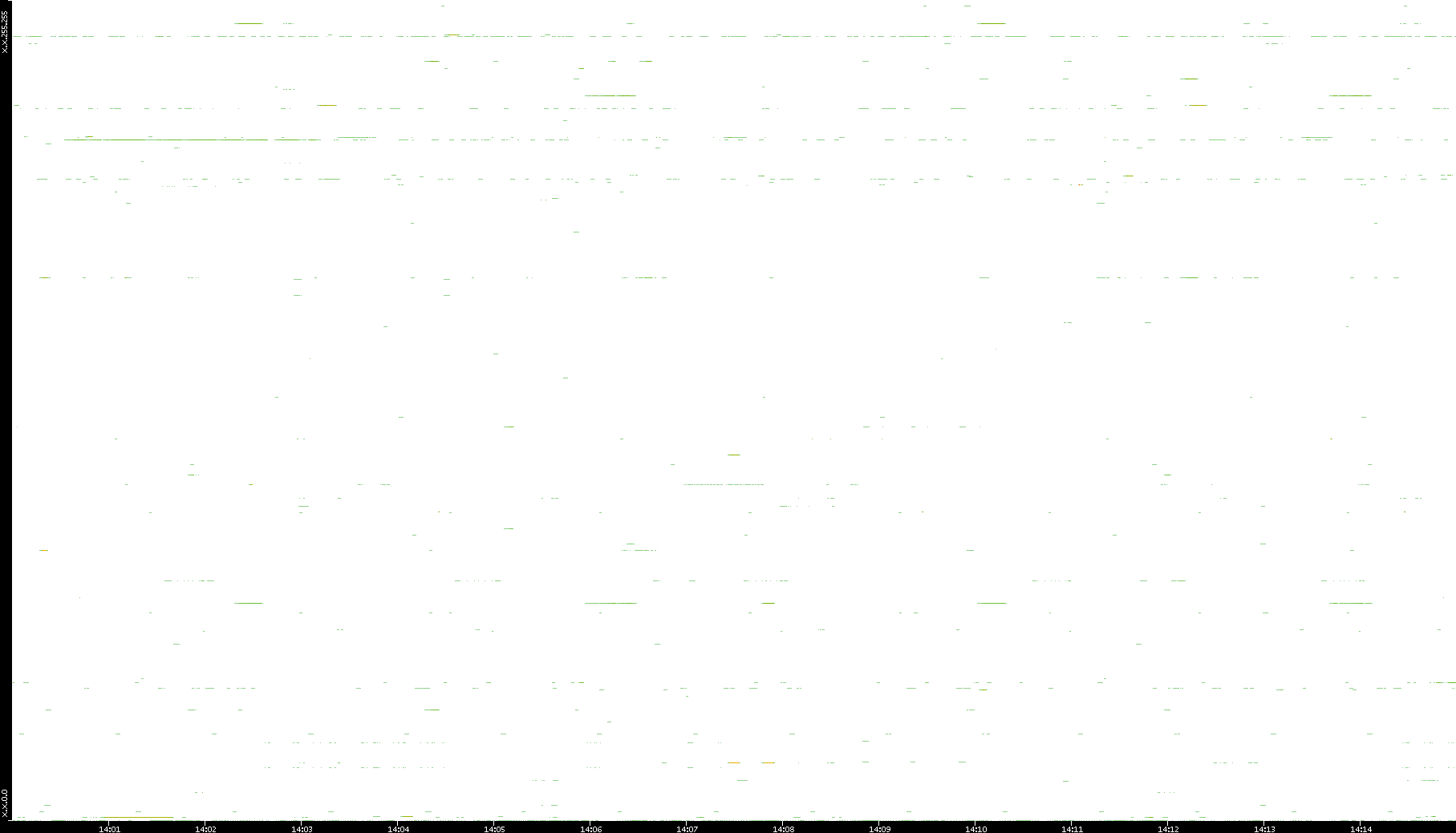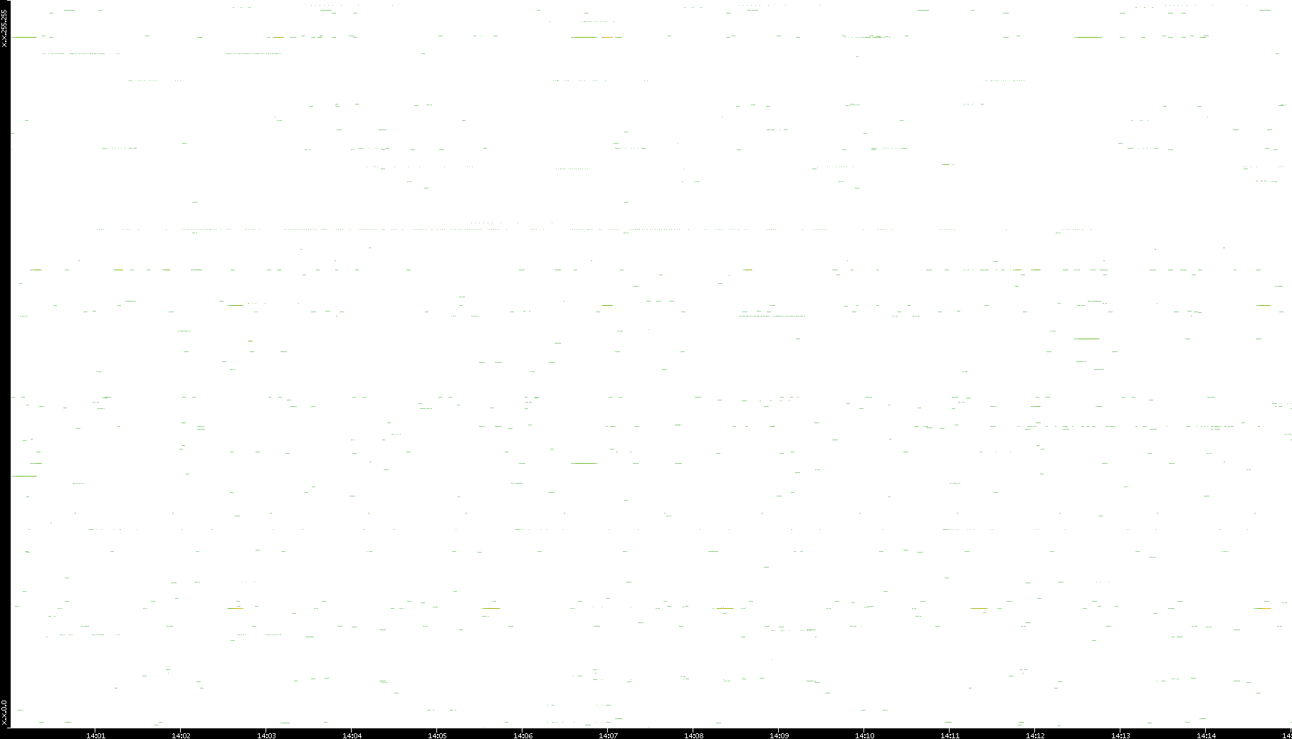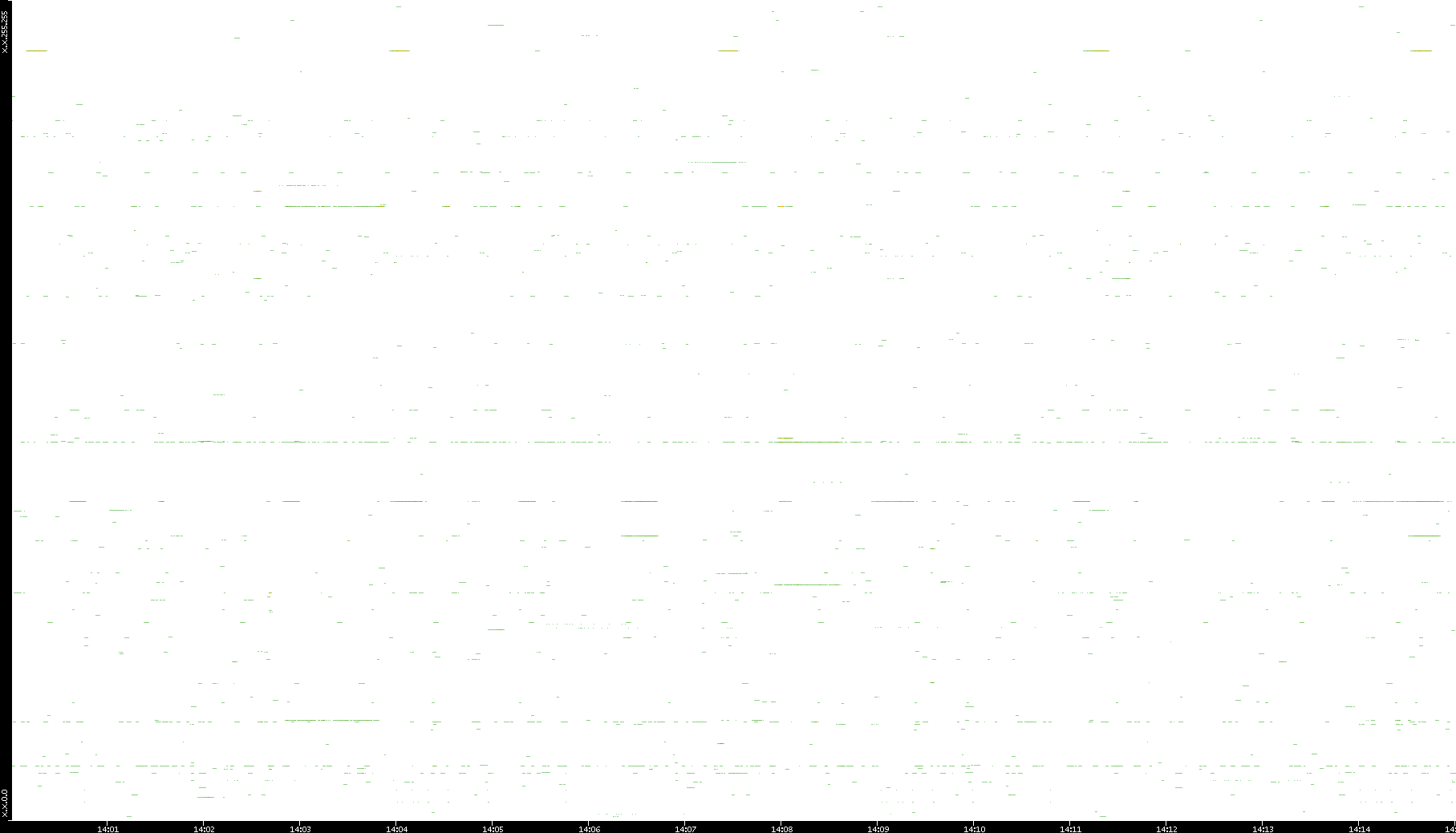 | Date | Dest. IP vs. Time | Dest. Port vs. Time | Src. IP vs. Time | Src. Port vs. Time | Nb. of Packets vs. Time | Throughput vs. Time | Average Packet Size vs. Time | Entropy of Port vs. Time |