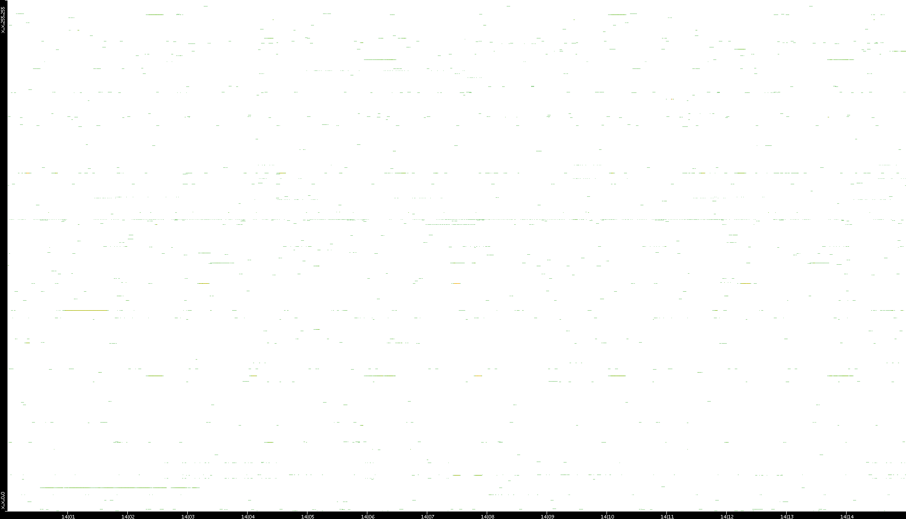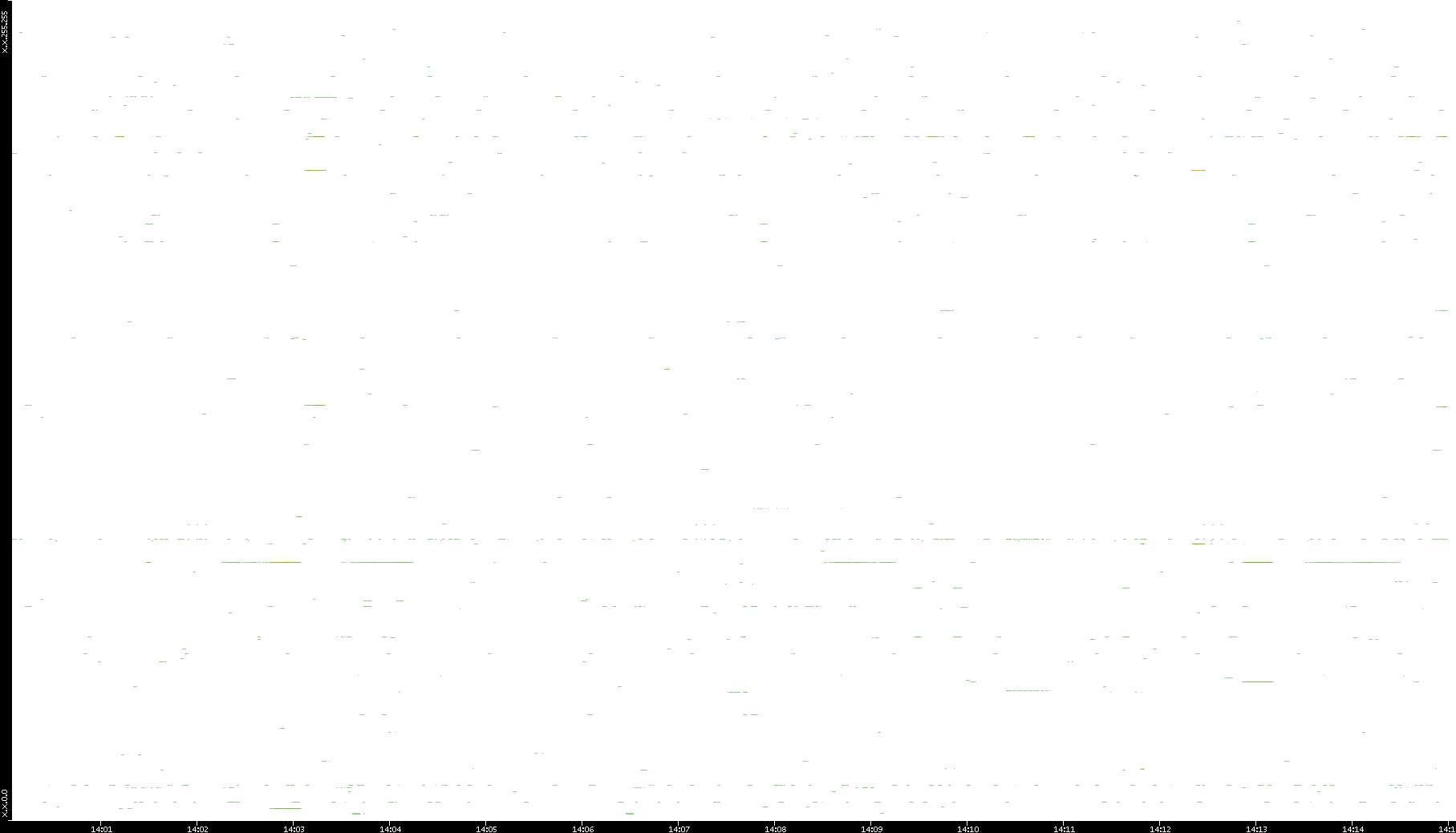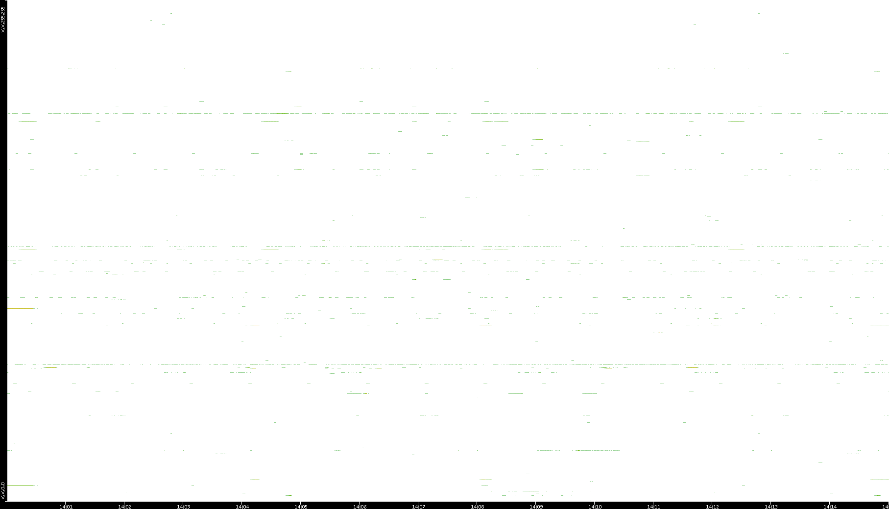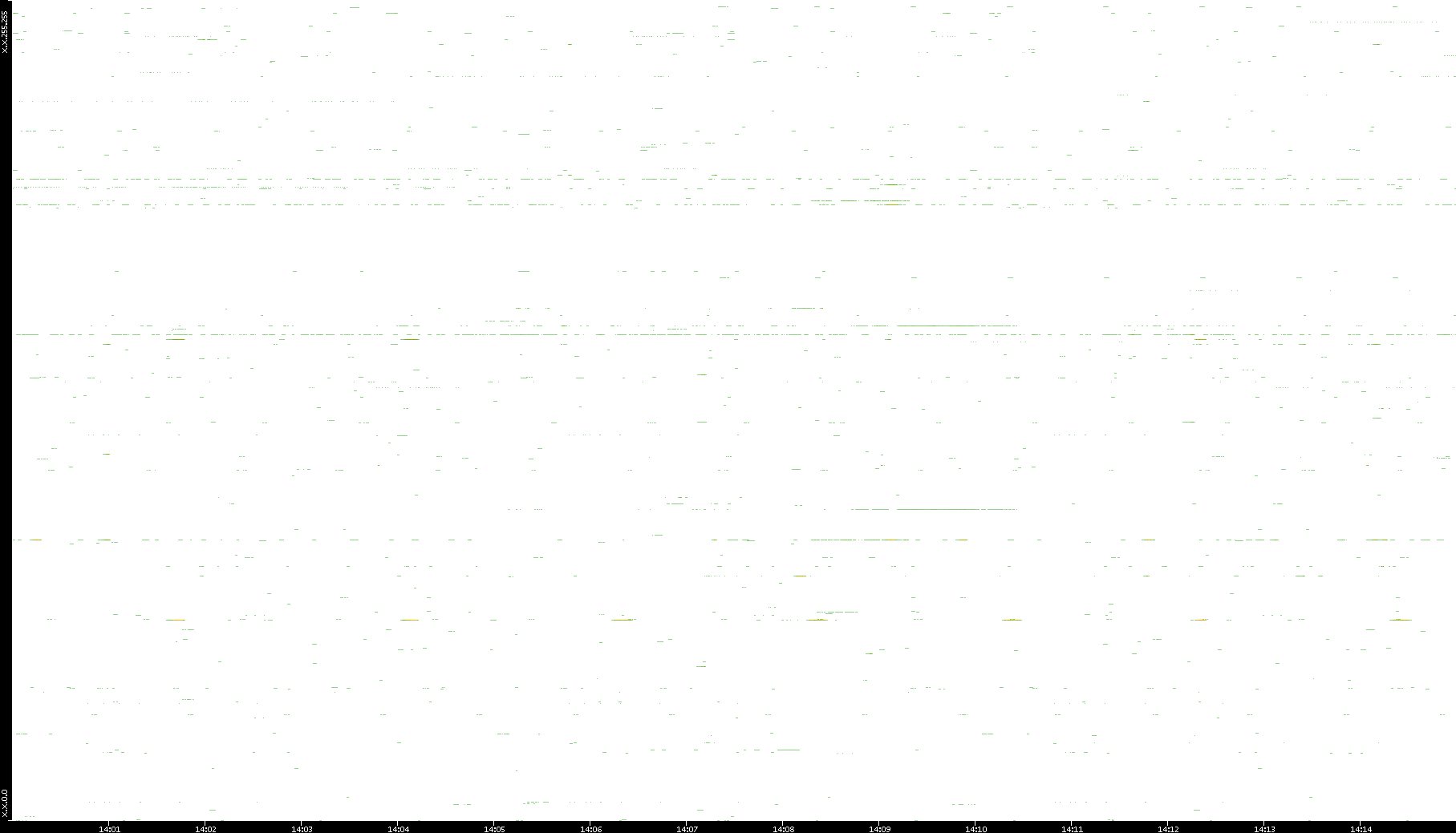 | Date | Dest. IP vs. Time | Dest. Port vs. Time | Src. IP vs. Time | Src. Port vs. Time | Nb. of Packets vs. Time | Throughput vs. Time | Average Packet Size vs. Time | Entropy of Port vs. Time |