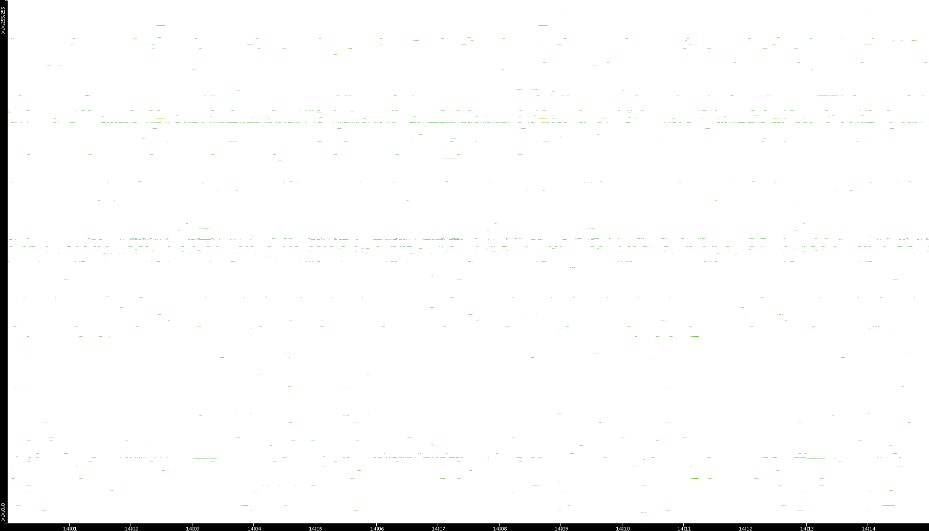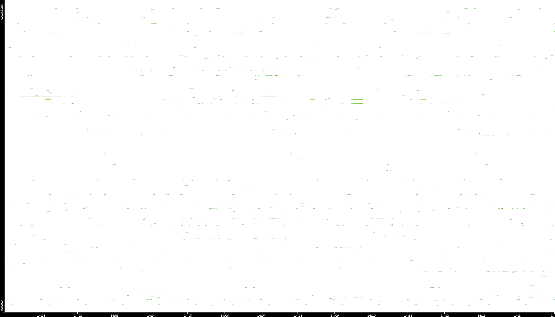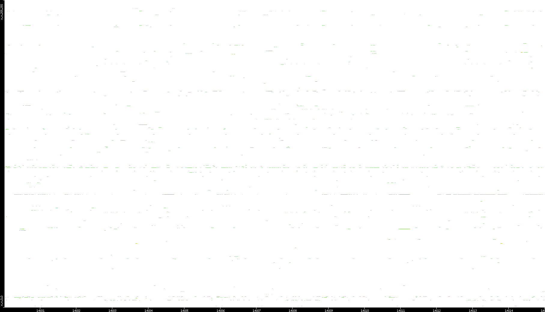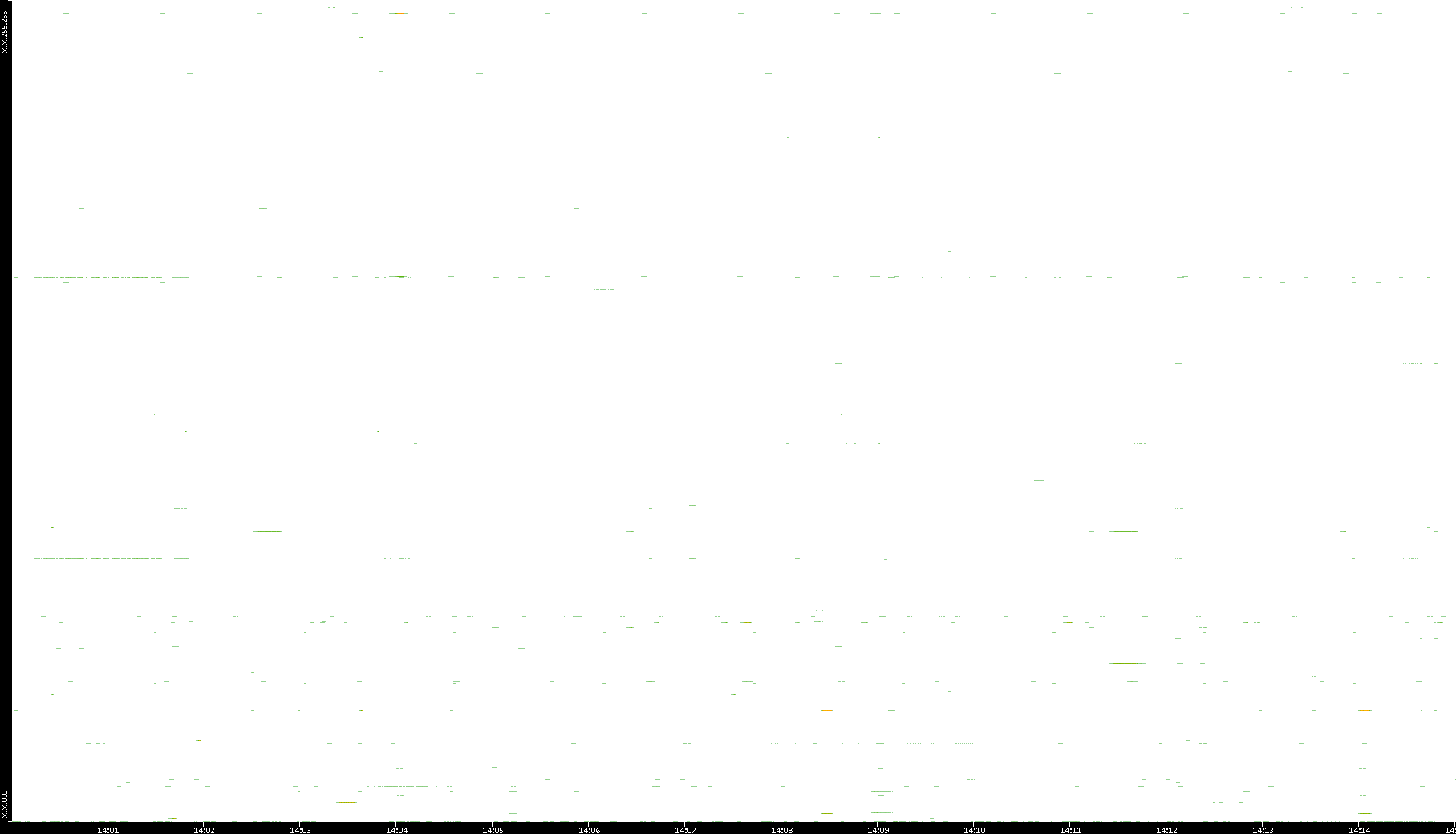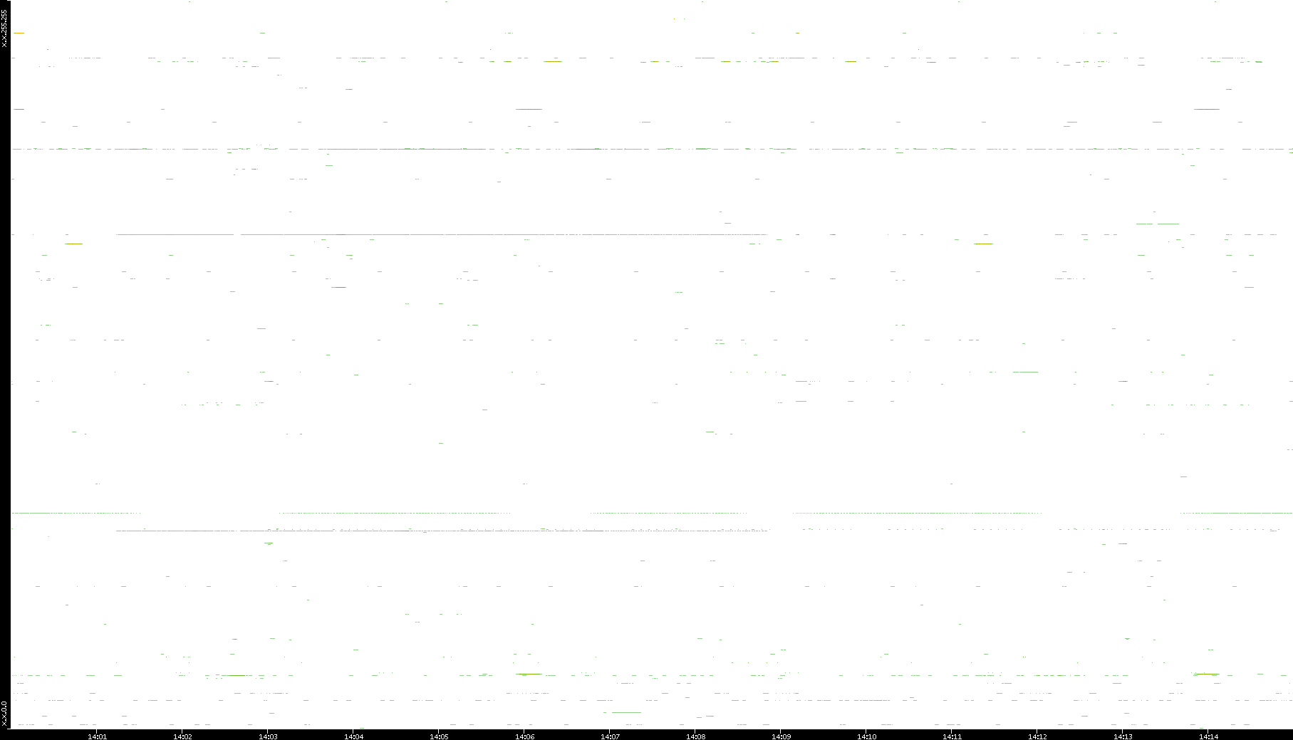 | Date | Dest. IP vs. Time | Dest. Port vs. Time | Src. IP vs. Time | Src. Port vs. Time | Nb. of Packets vs. Time | Throughput vs. Time | Average Packet Size vs. Time | Entropy of Port vs. Time |