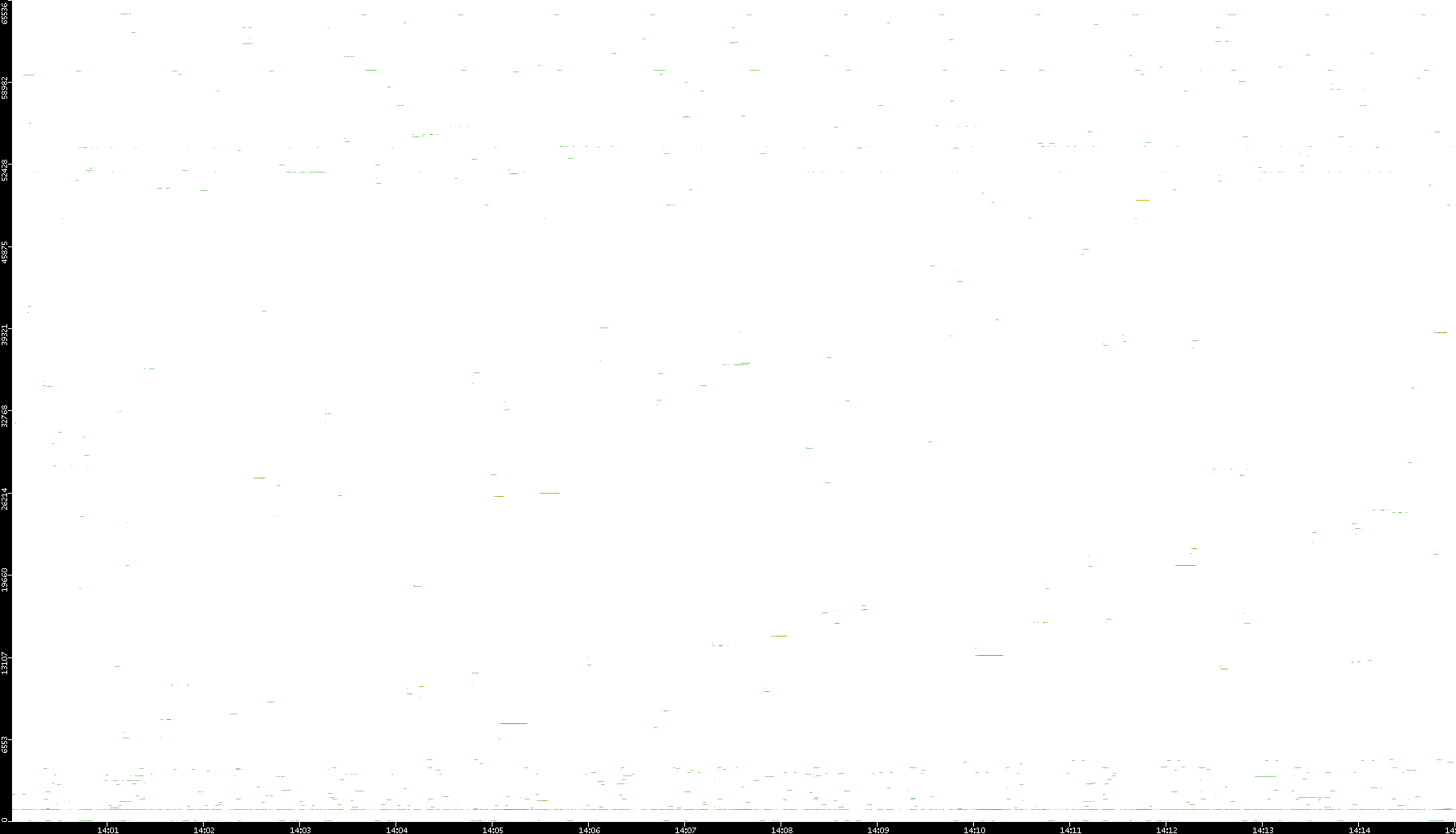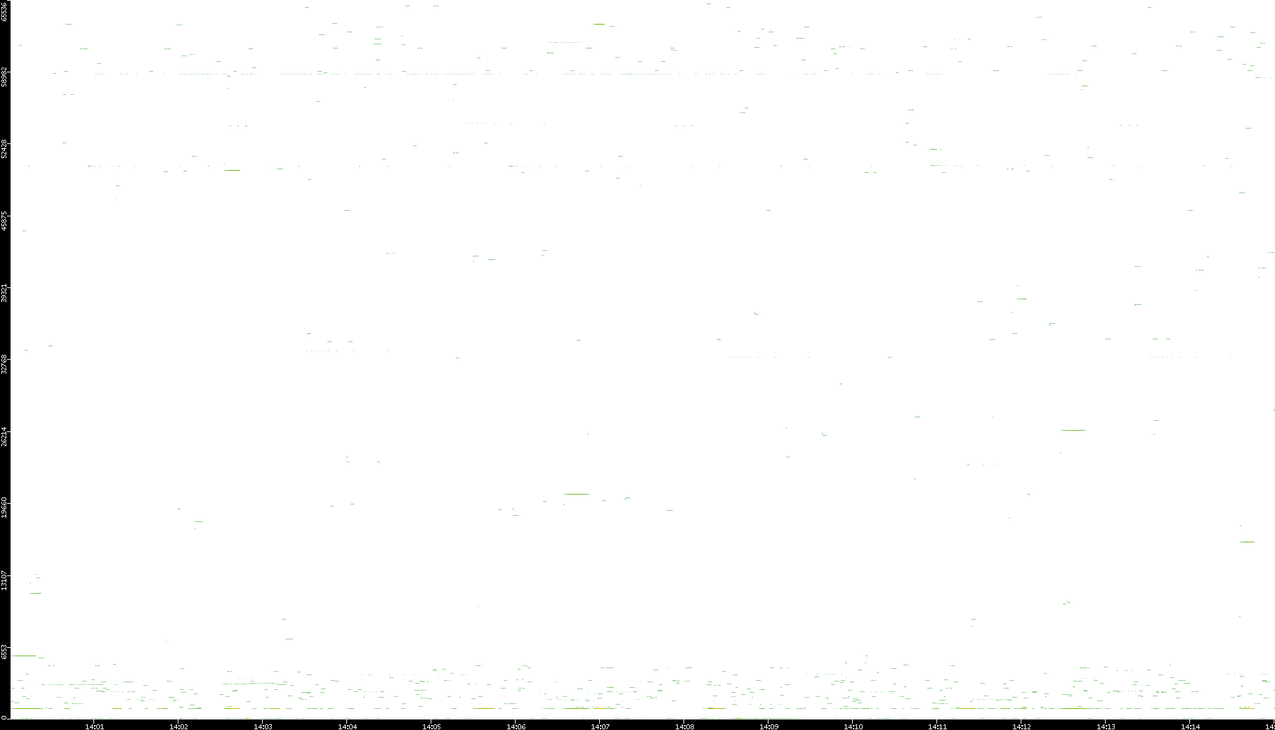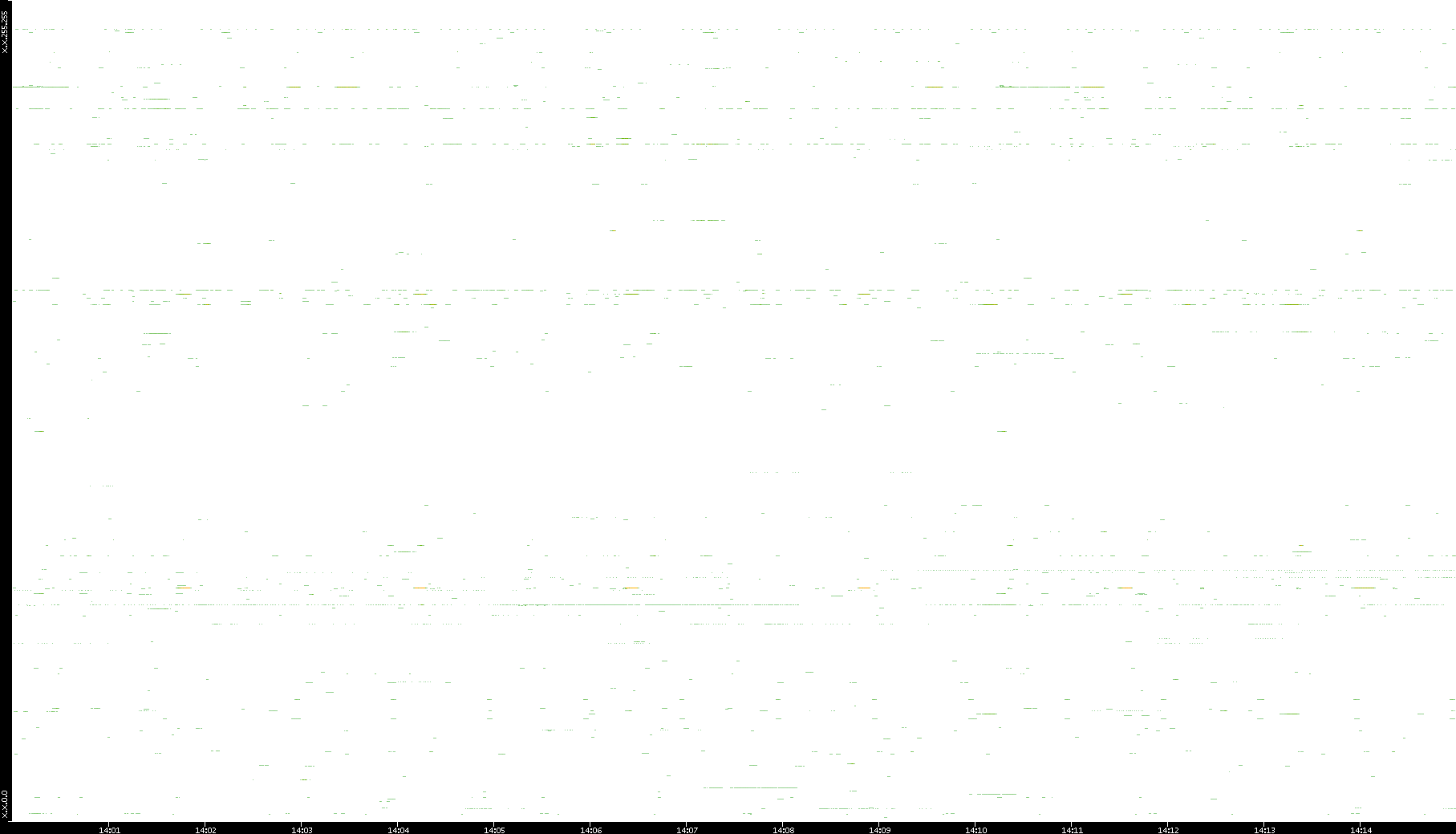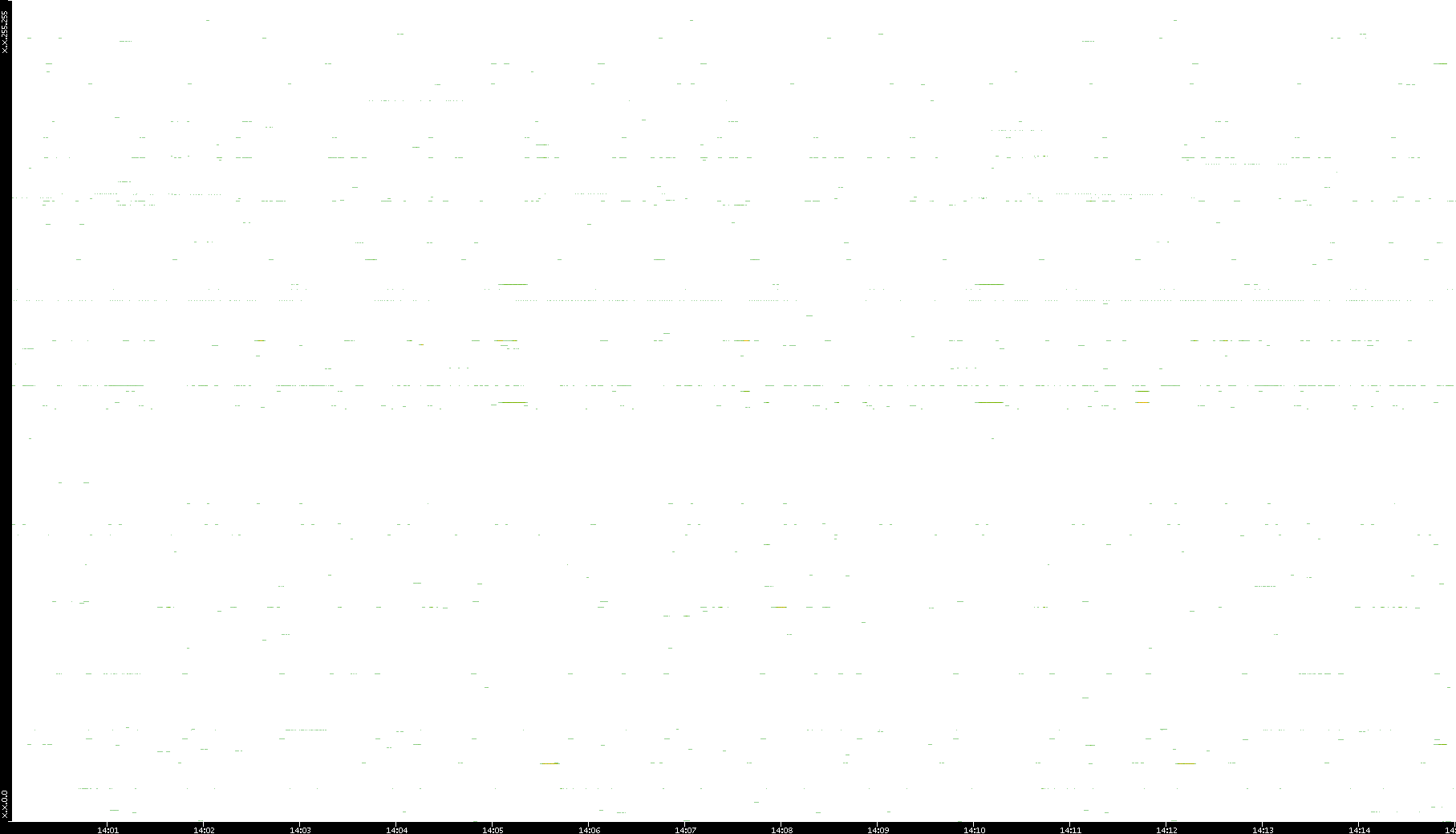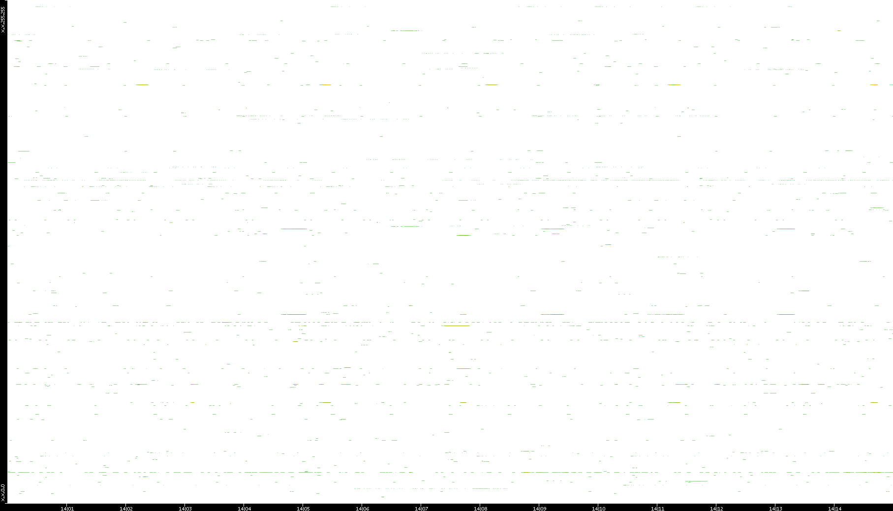 | Date | Dest. IP vs. Time | Dest. Port vs. Time | Src. IP vs. Time | Src. Port vs. Time | Nb. of Packets vs. Time | Throughput vs. Time | Average Packet Size vs. Time | Entropy of Port vs. Time |