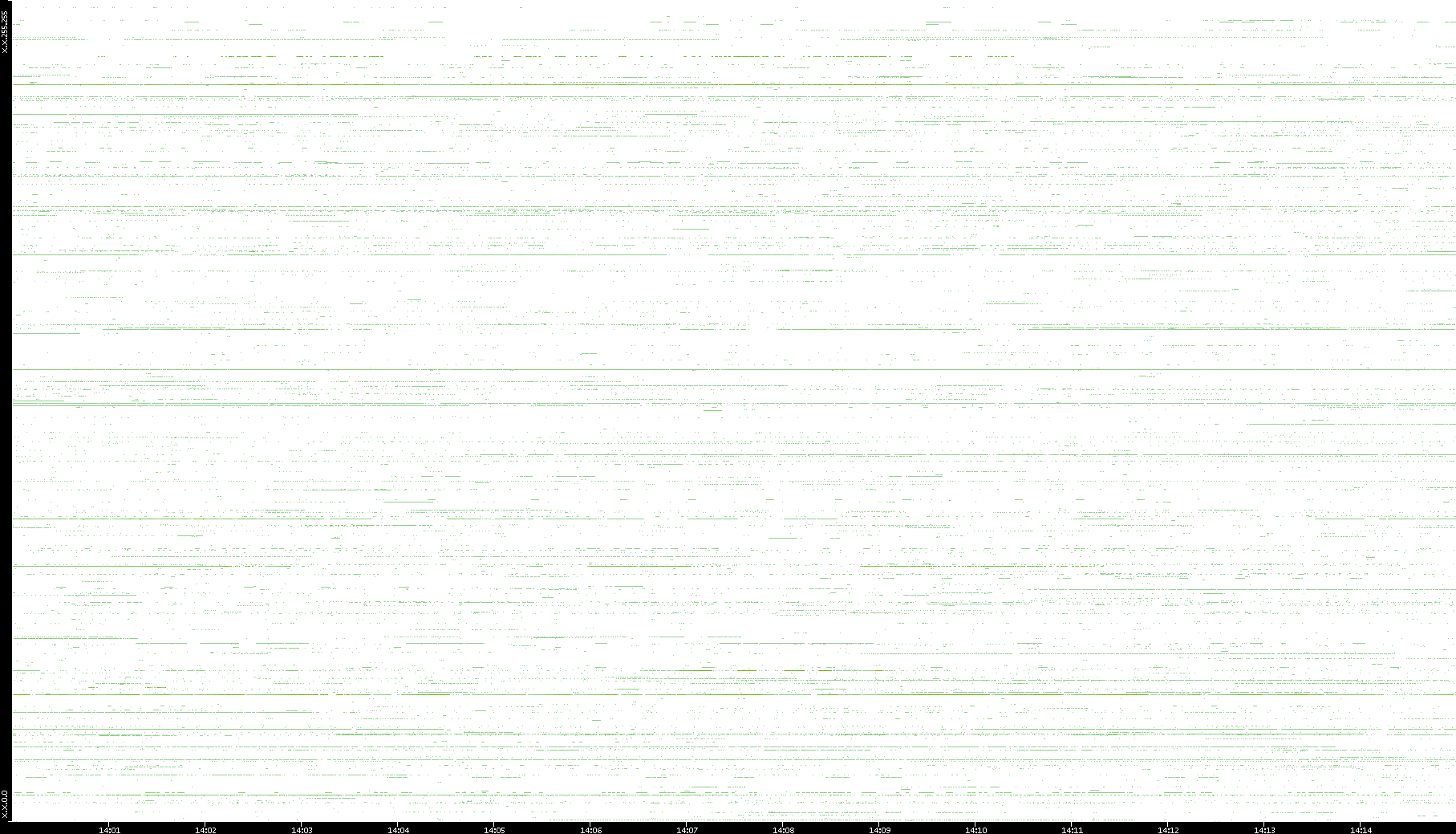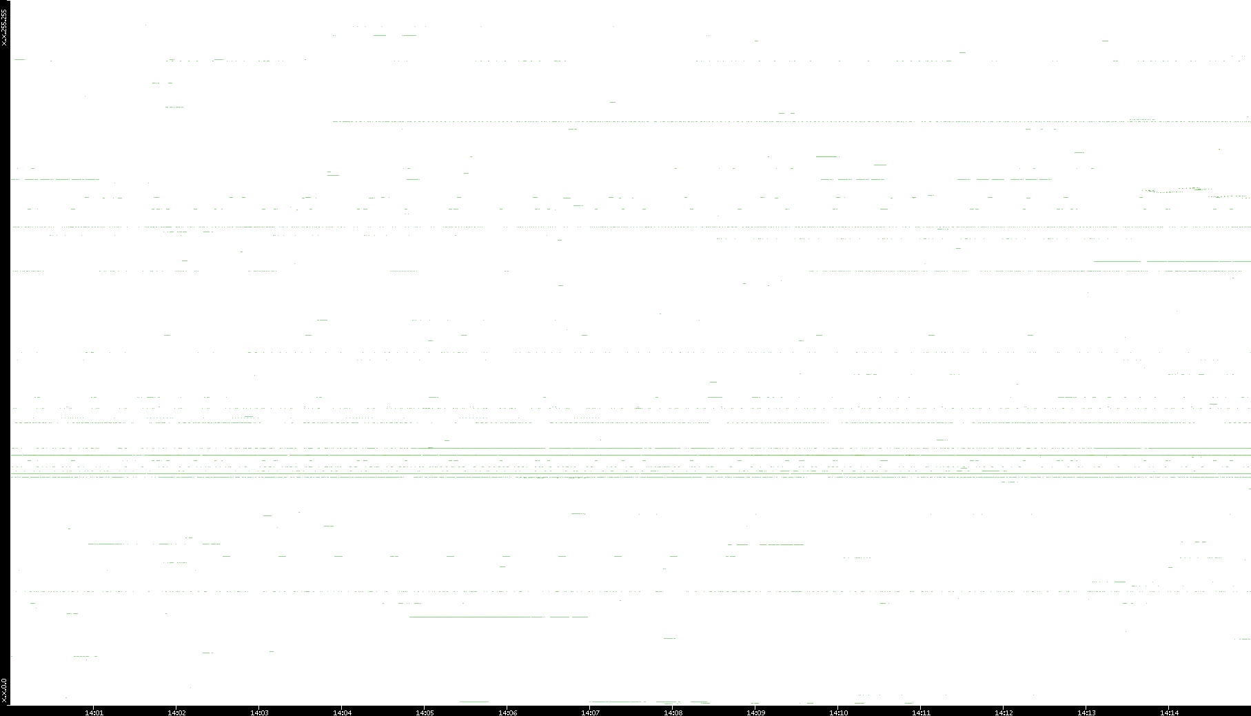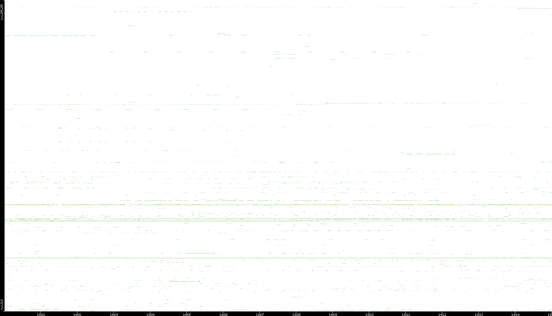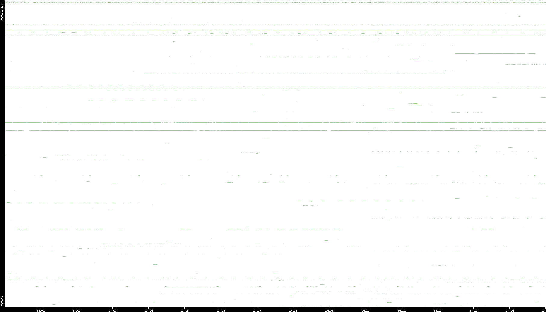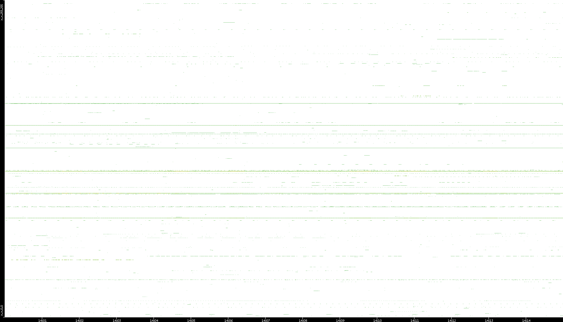2008/03/14 Dest. IP vs. Time Dest. Port vs. Time Src. IP vs. Time Src. Port vs. Time Nb. of Packets vs. Time Throughput vs. Time Average Packet Size vs. Time Entropy of Port vs. Time