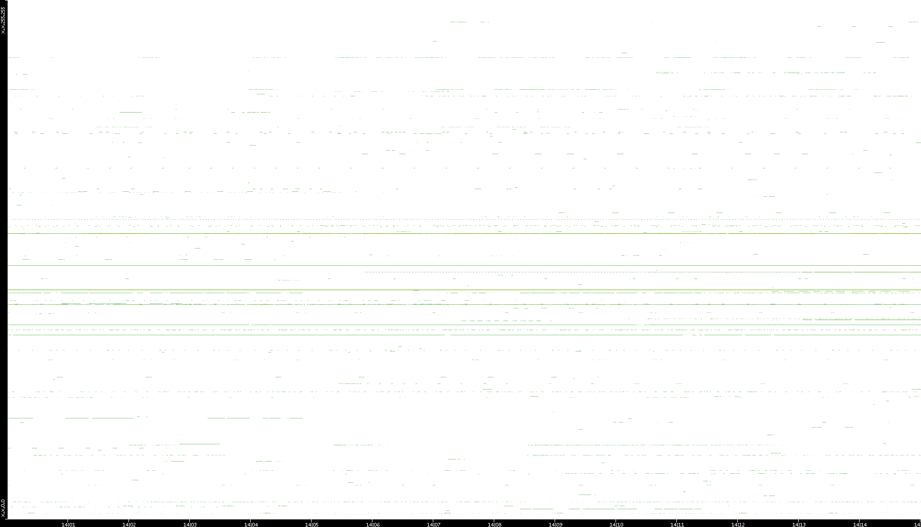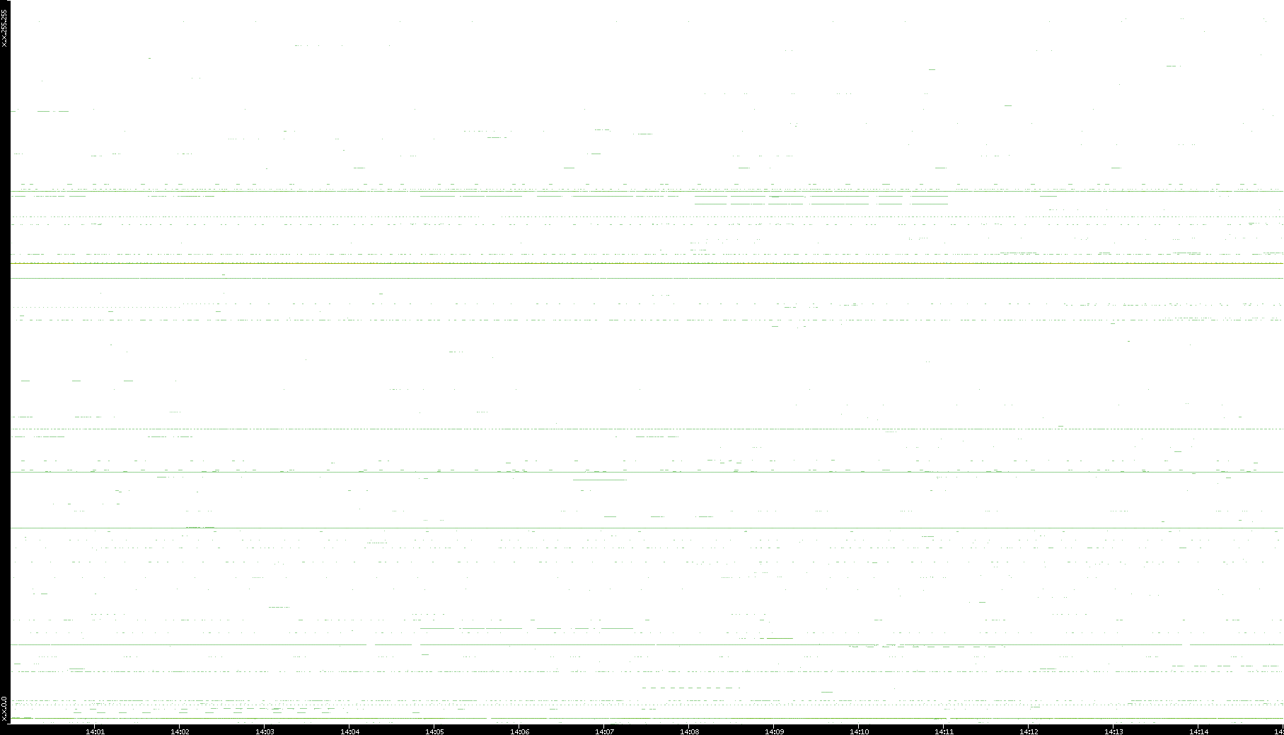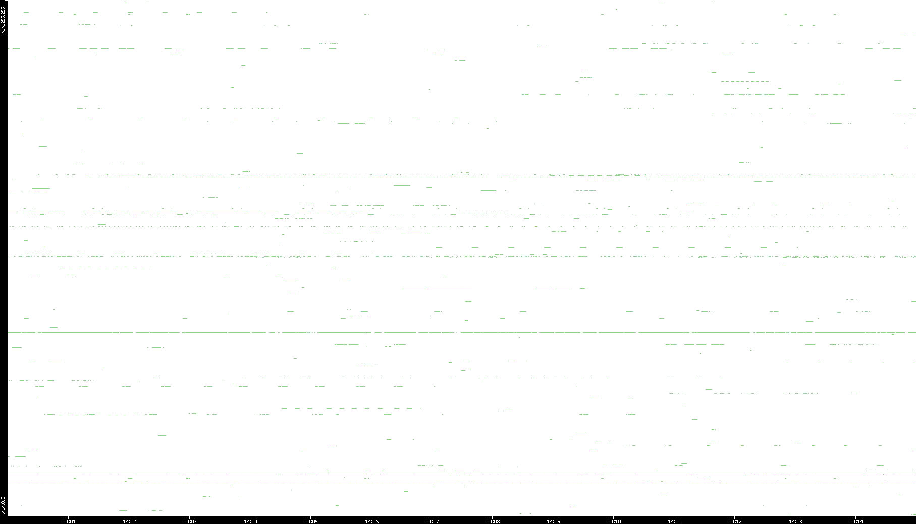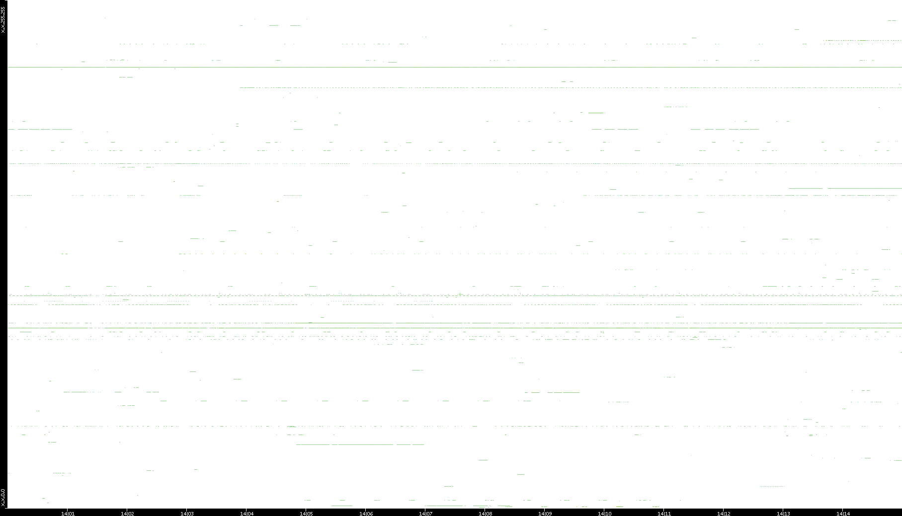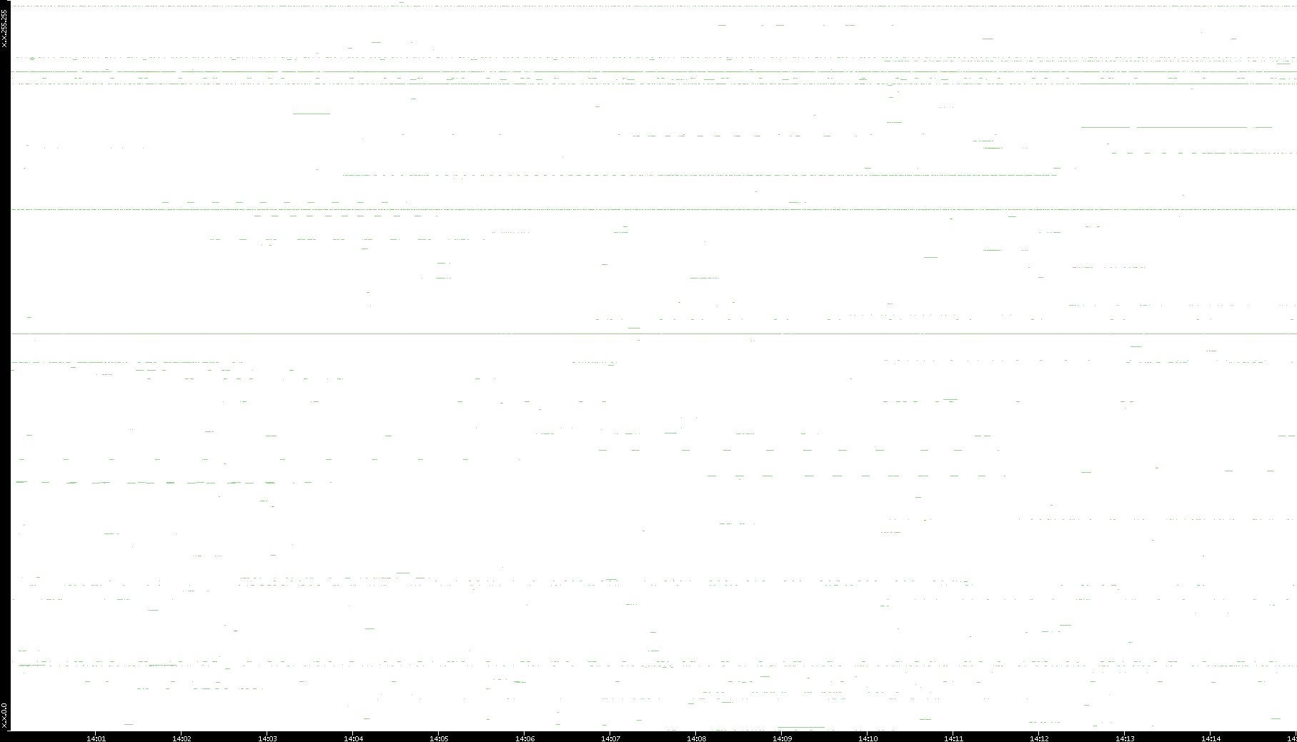 2008/03/14 Dest. IP vs. Time Dest. Port vs. Time Src. IP vs. Time Src. Port vs. Time Nb. of Packets vs. Time Throughput vs. Time Average Packet Size vs. Time Entropy of Port vs. Time