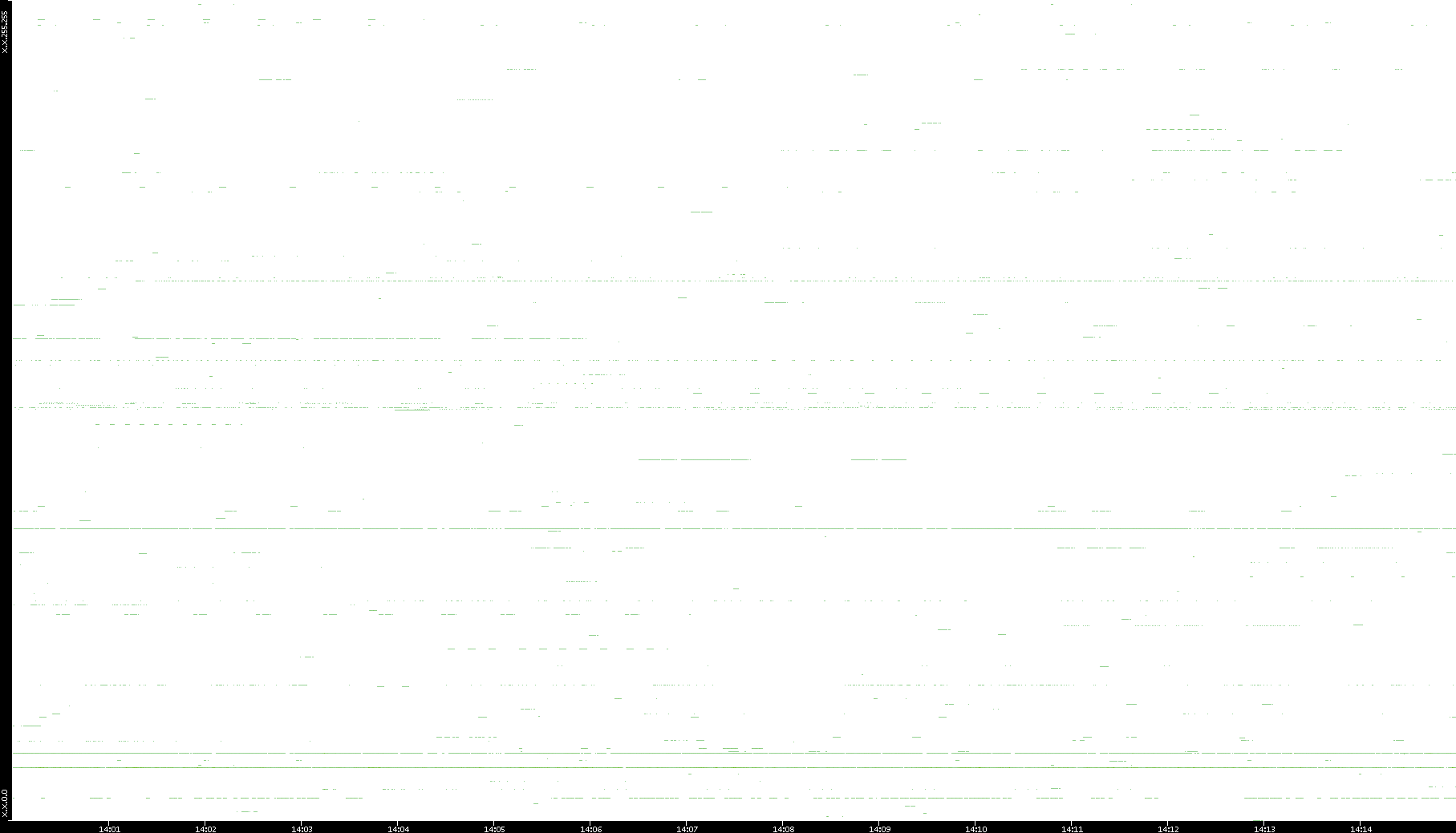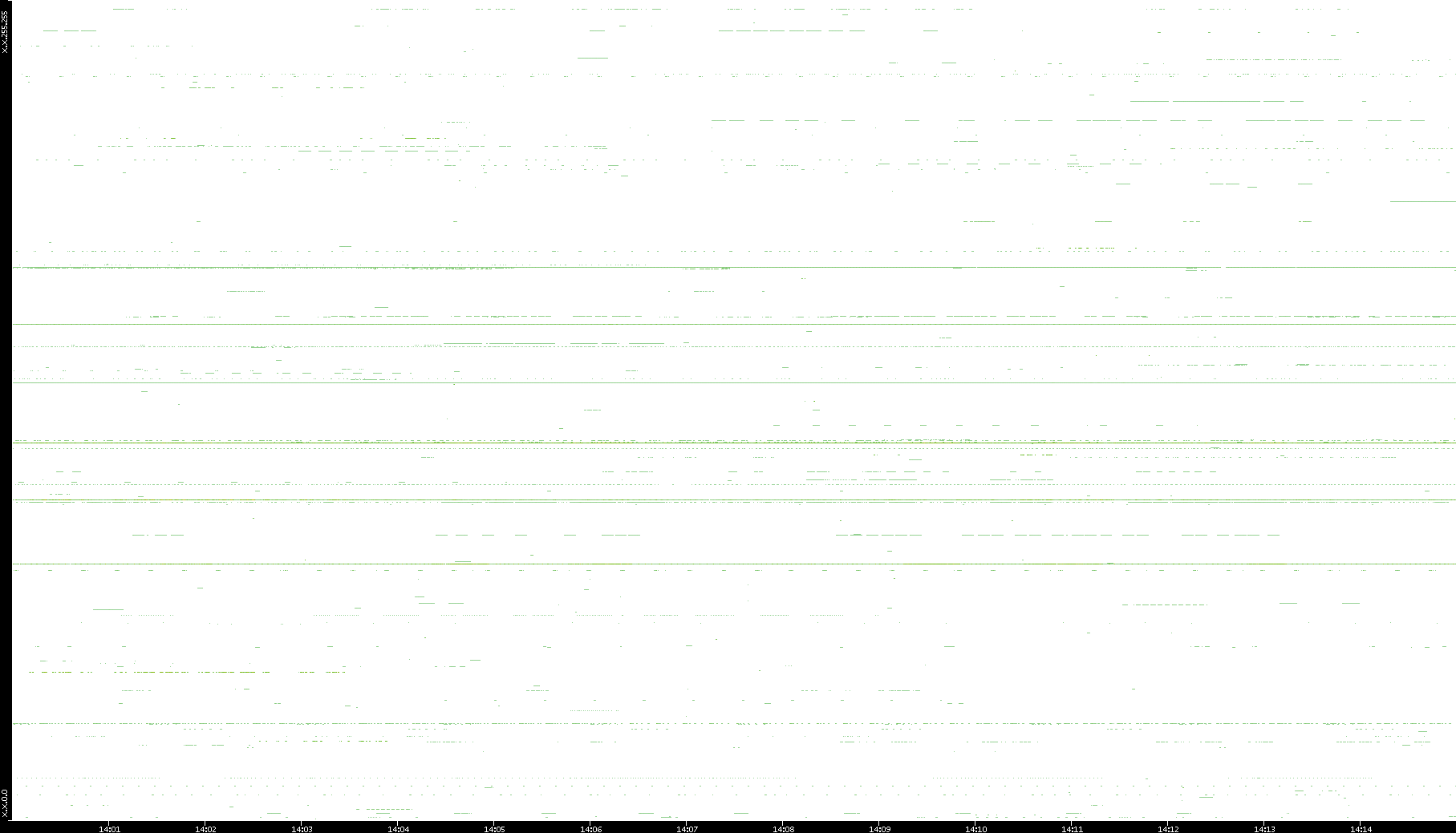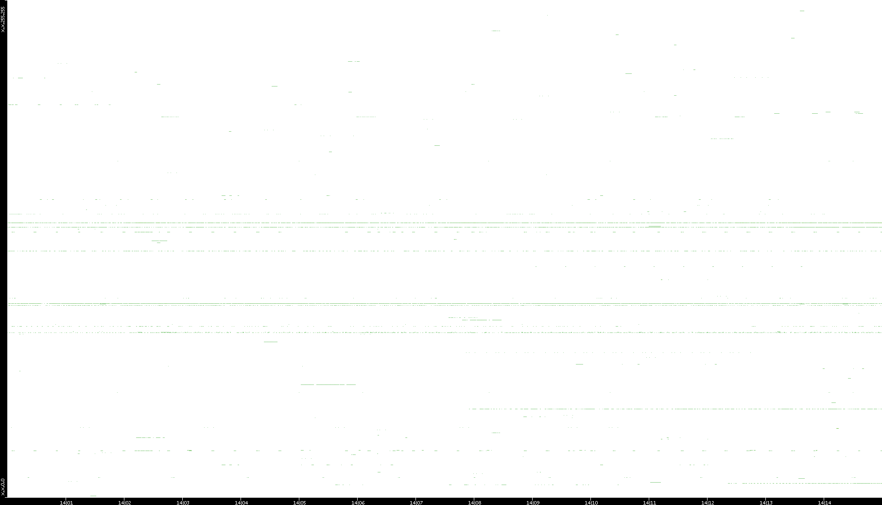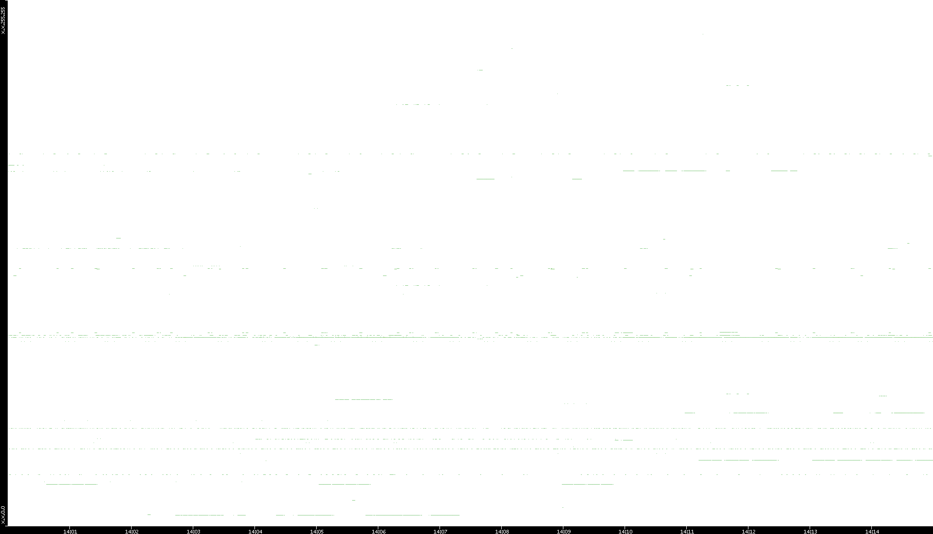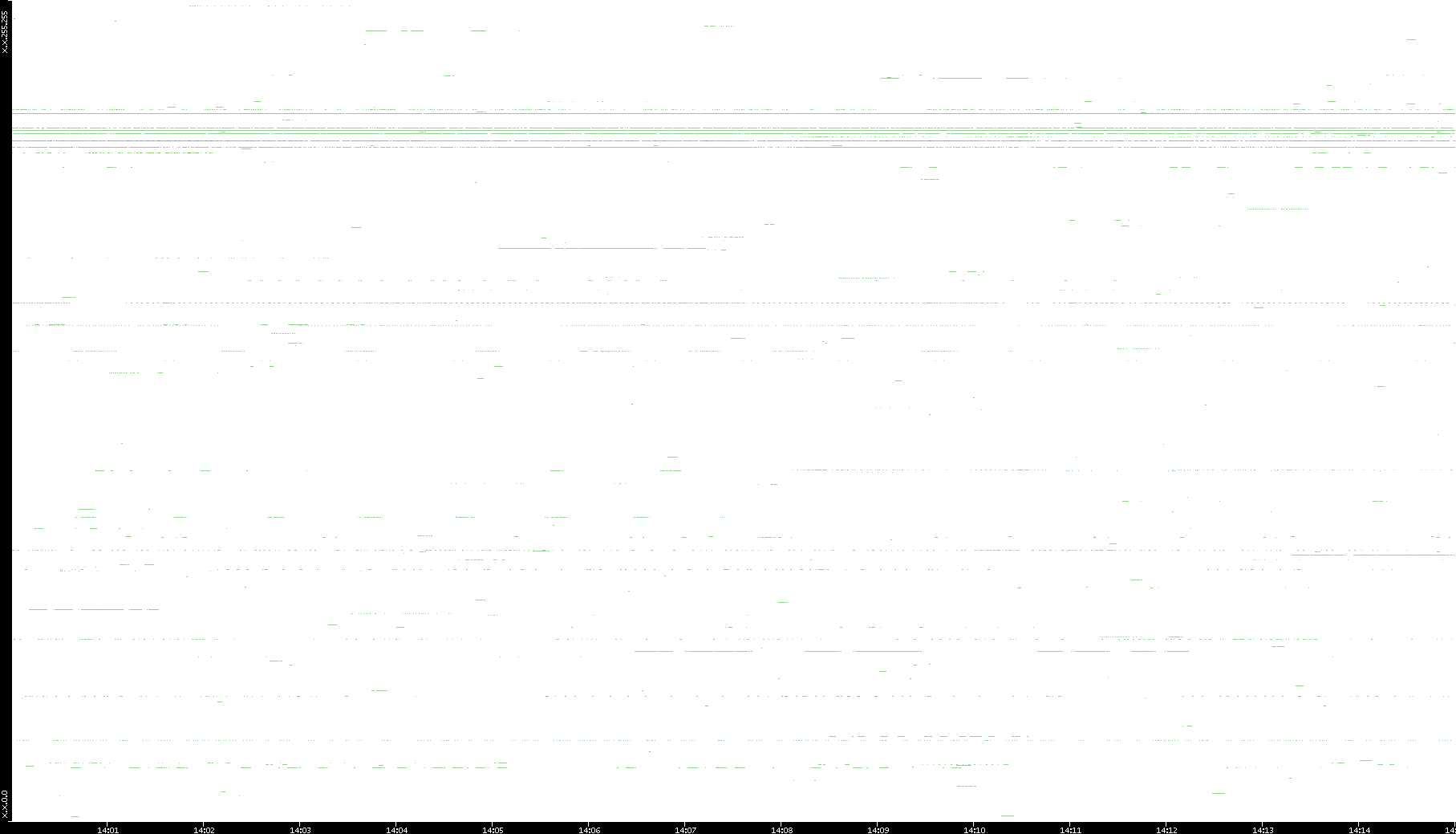 2008/03/14 Dest. IP vs. Time Dest. Port vs. Time Src. IP vs. Time Src. Port vs. Time Nb. of Packets vs. Time Throughput vs. Time Average Packet Size vs. Time Entropy of Port vs. Time