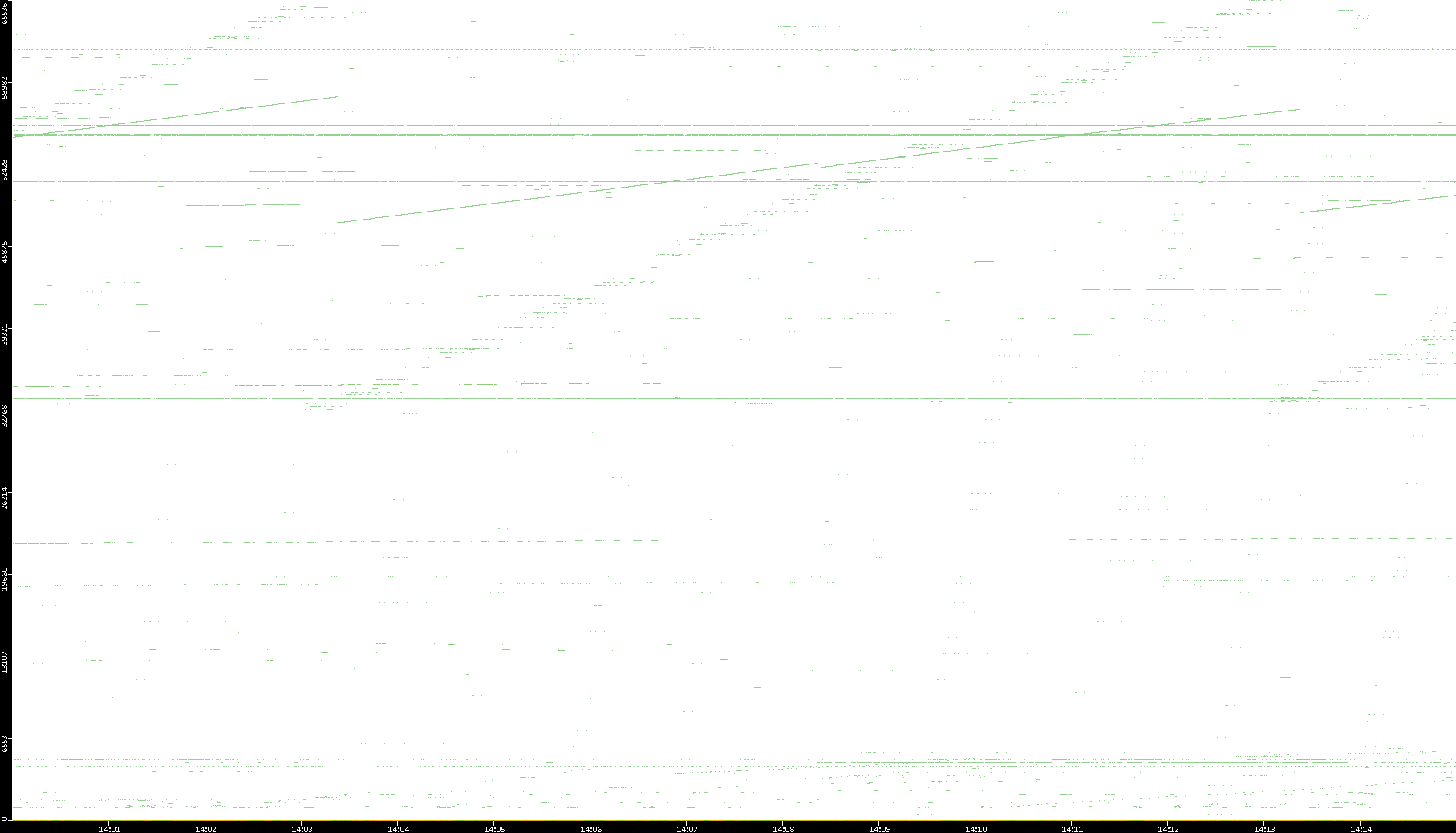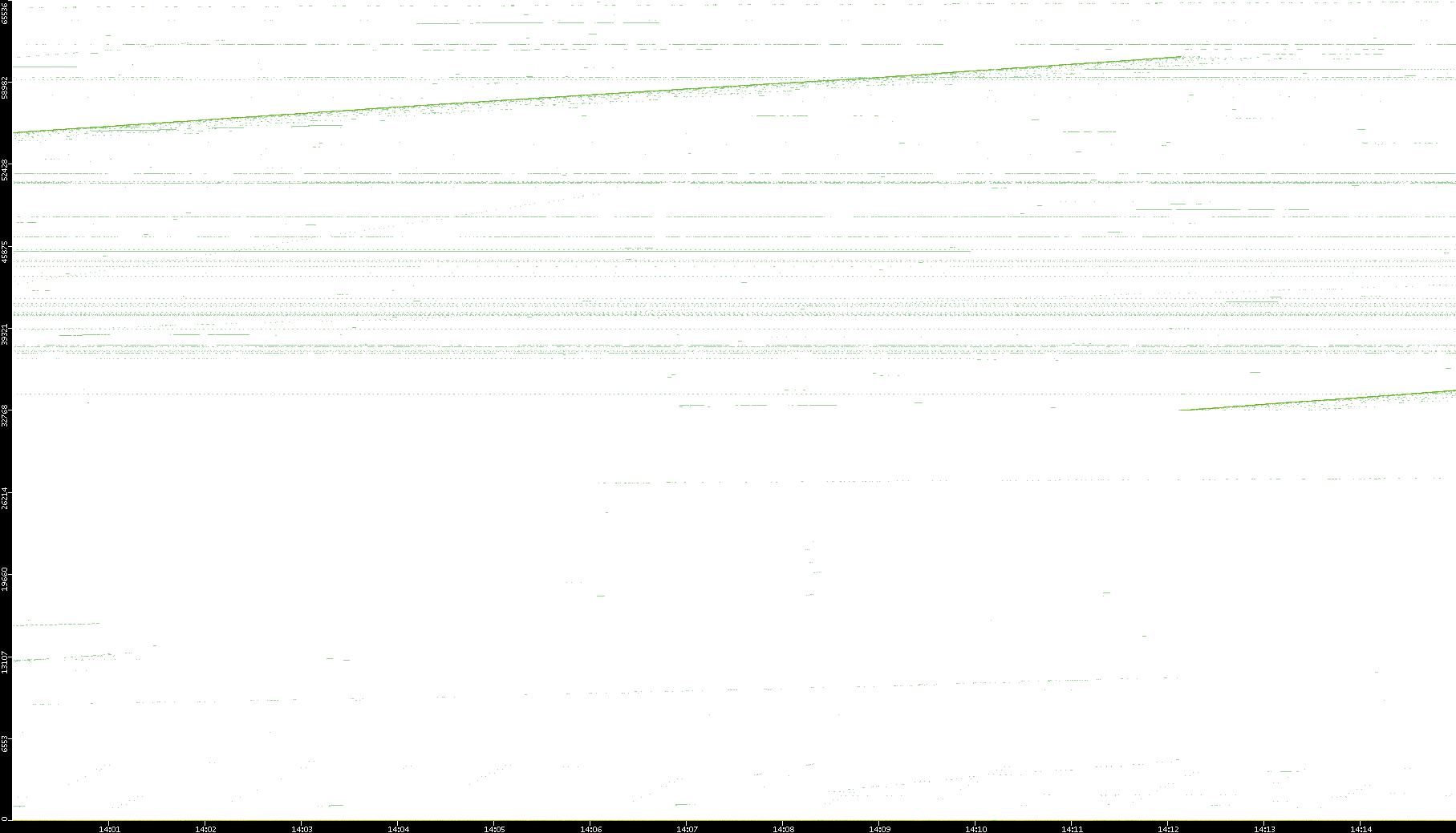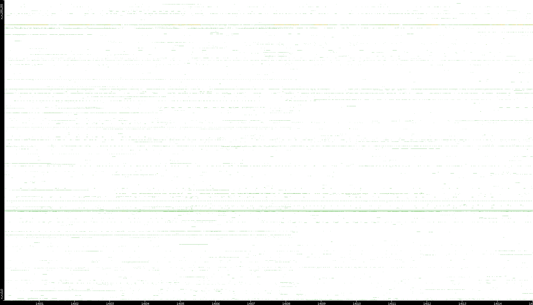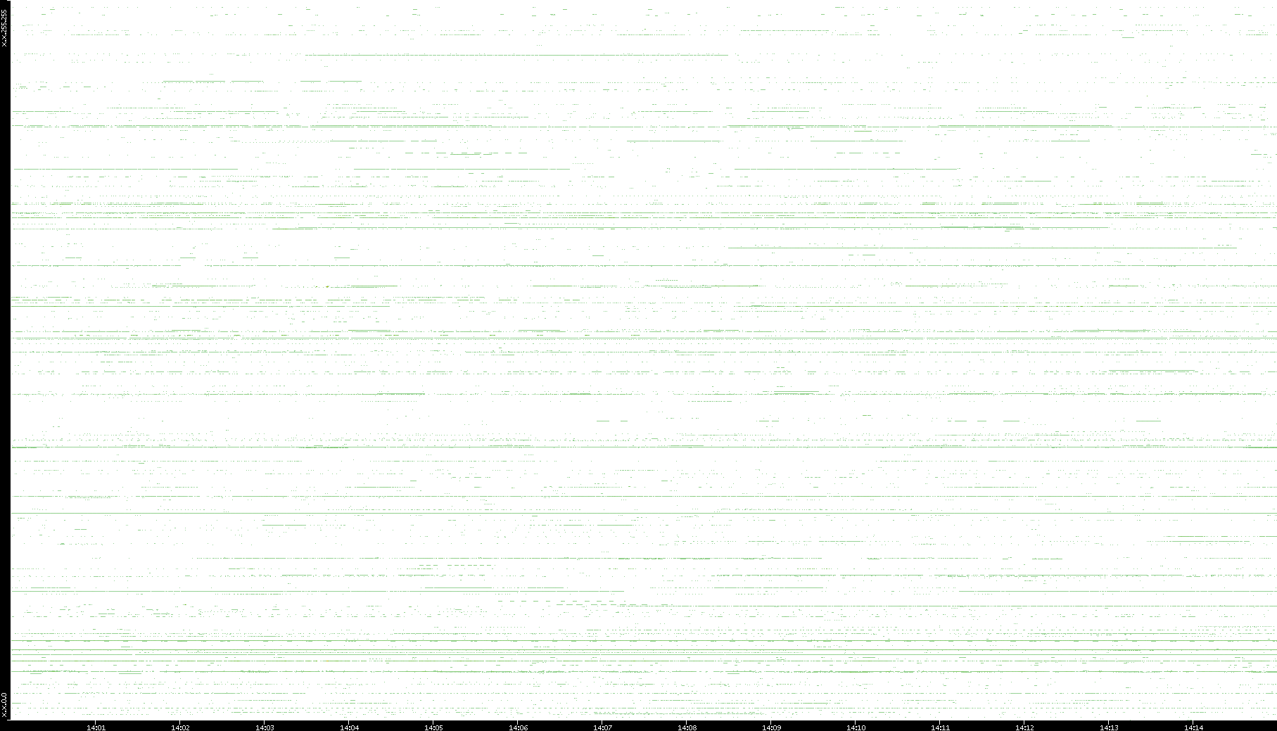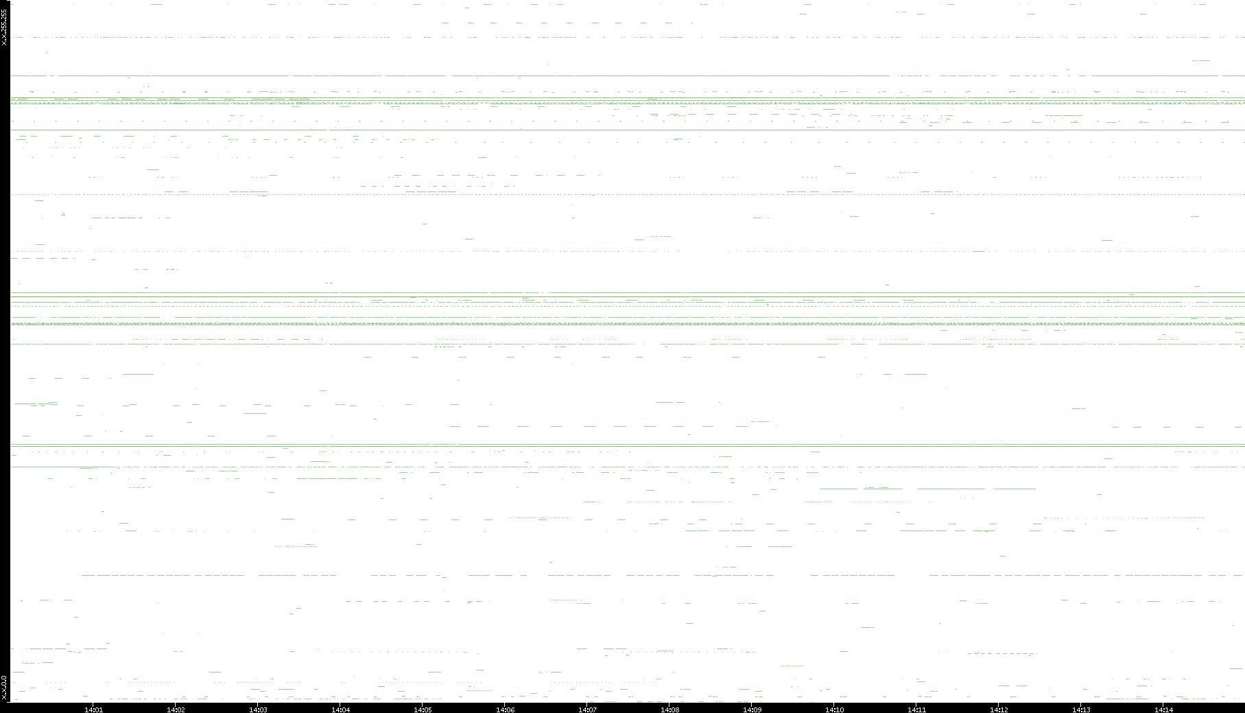 2008/03/14 Dest. IP vs. Time Dest. Port vs. Time Src. IP vs. Time Src. Port vs. Time Nb. of Packets vs. Time Throughput vs. Time Average Packet Size vs. Time Entropy of Port vs. Time