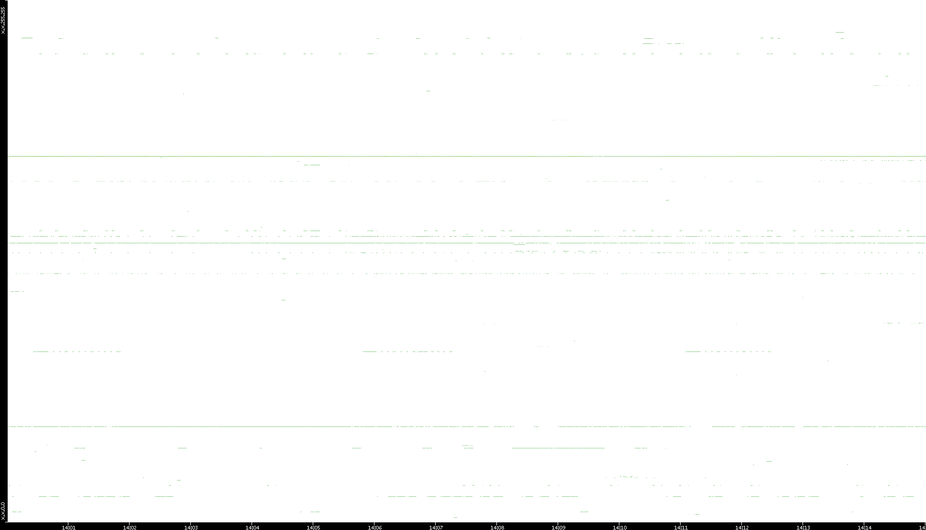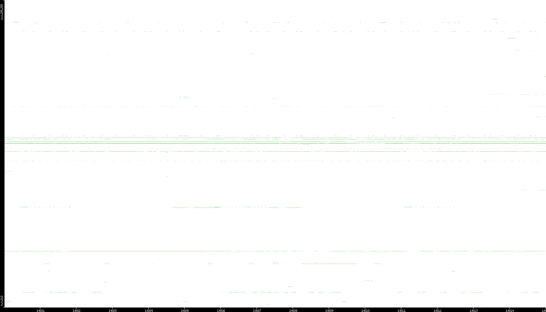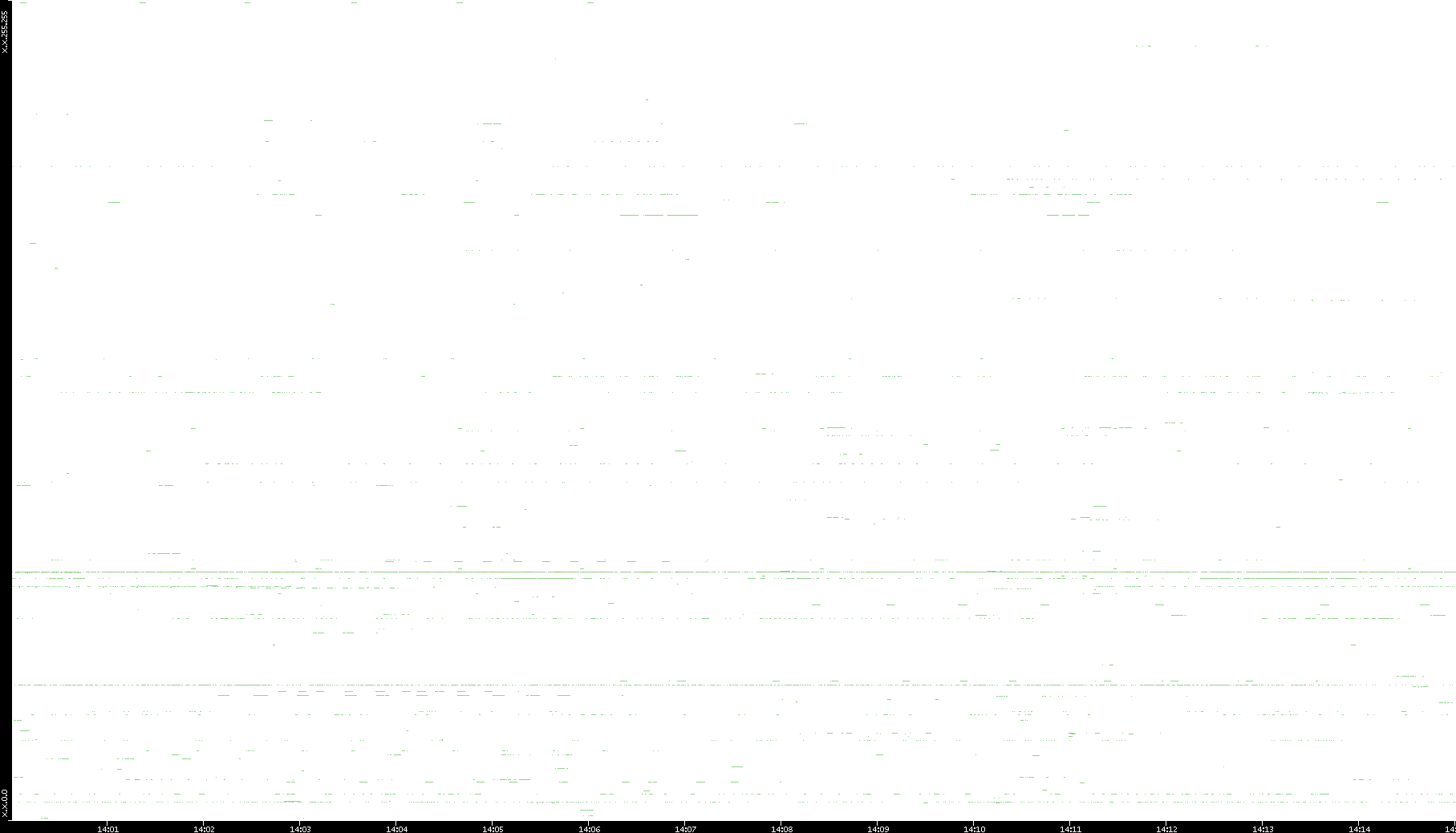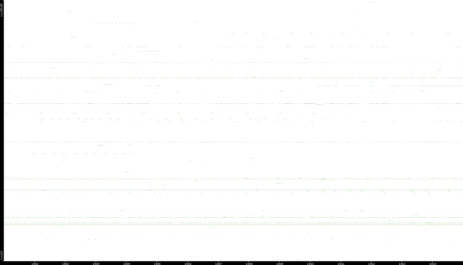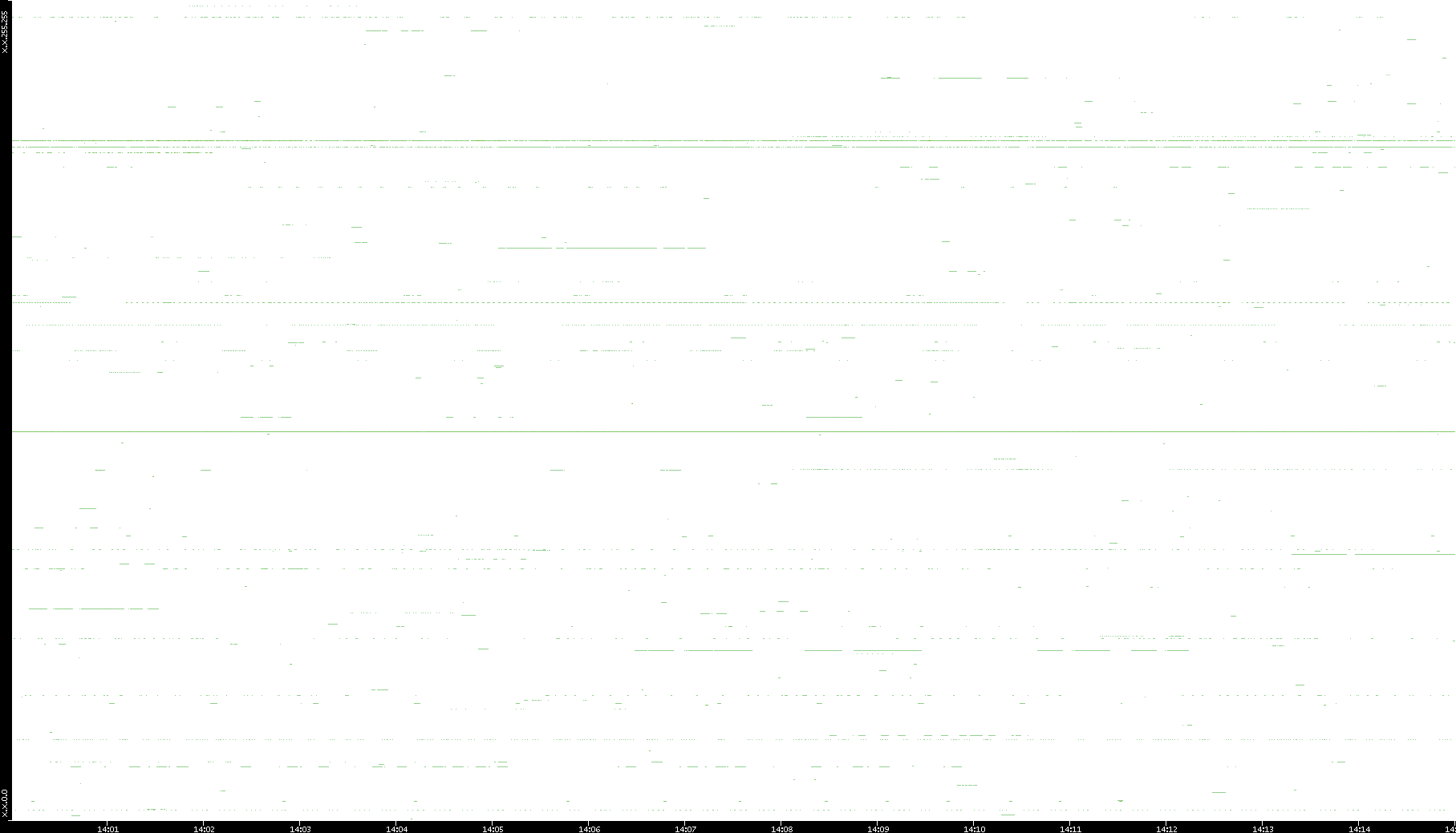 2008/03/14 Dest. IP vs. Time Dest. Port vs. Time Src. IP vs. Time Src. Port vs. Time Nb. of Packets vs. Time Throughput vs. Time Average Packet Size vs. Time Entropy of Port vs. Time