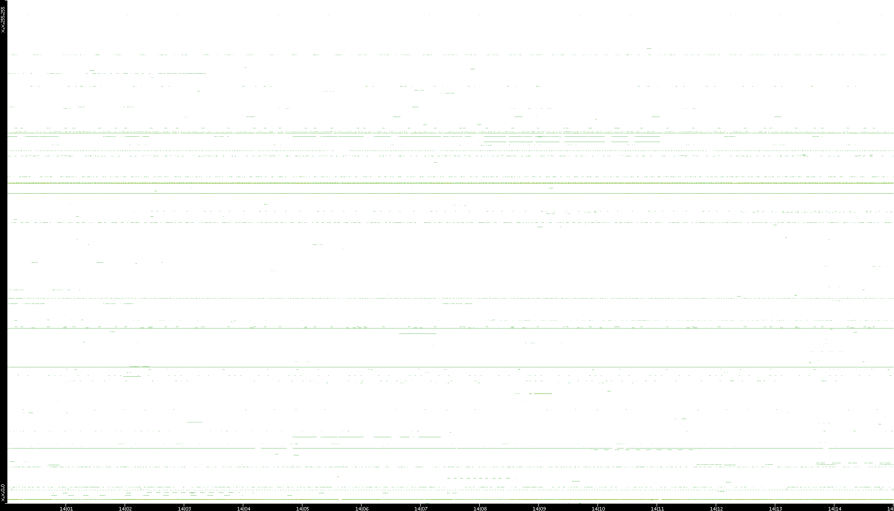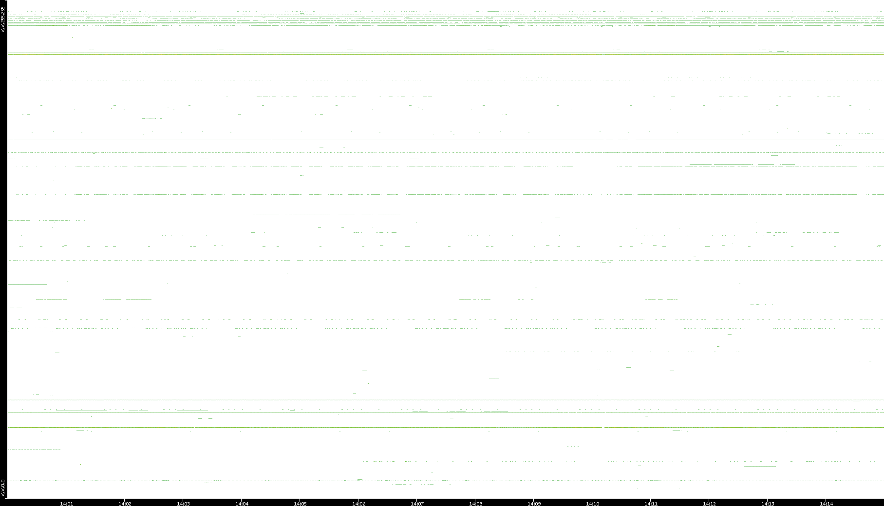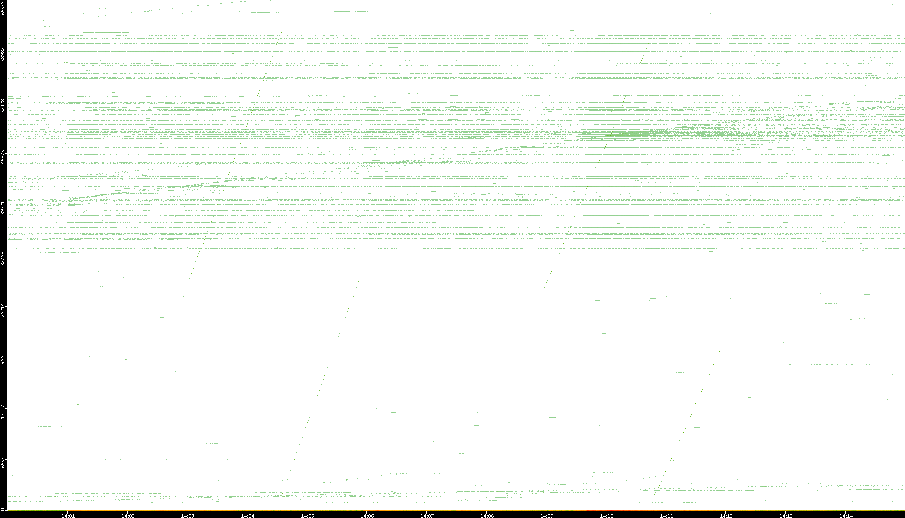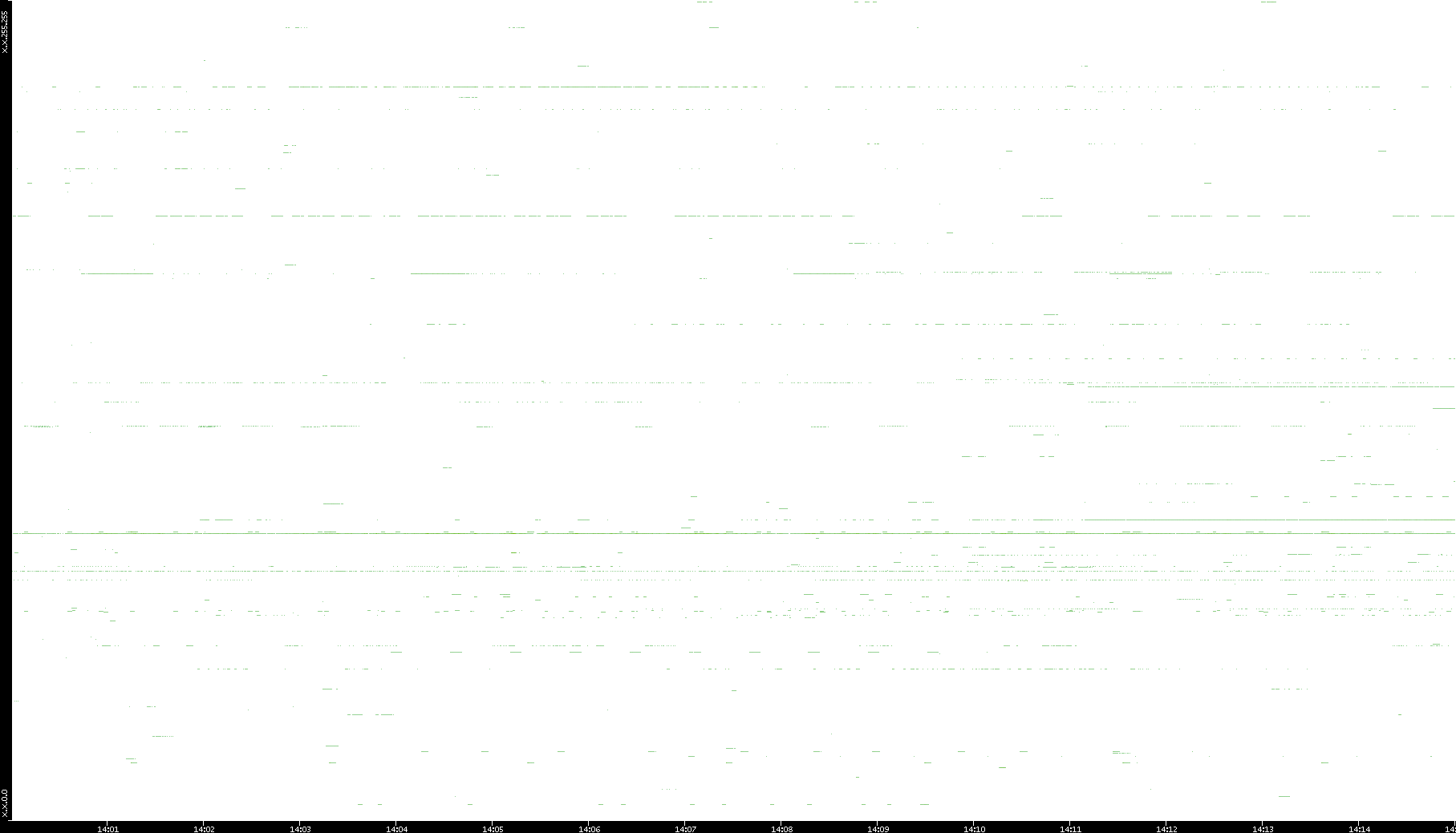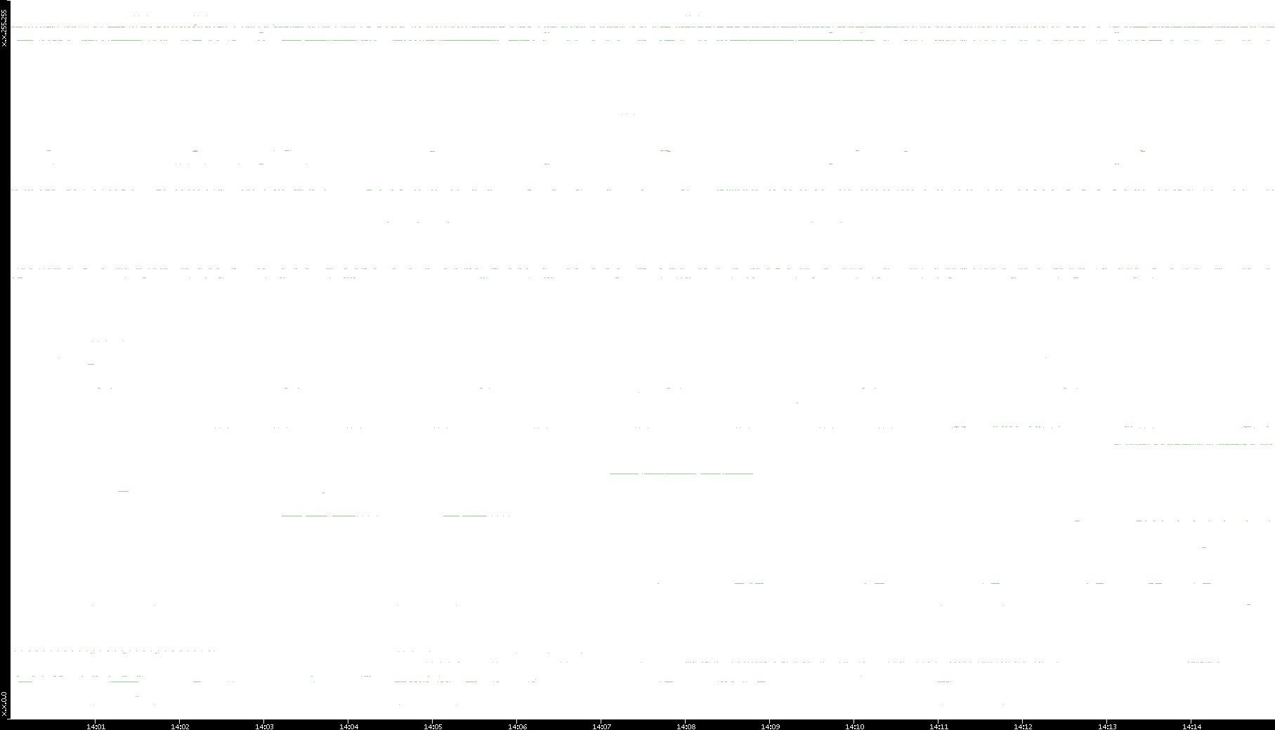 2008/03/14 Dest. IP vs. Time Dest. Port vs. Time Src. IP vs. Time Src. Port vs. Time Nb. of Packets vs. Time Throughput vs. Time Average Packet Size vs. Time Entropy of Port vs. Time