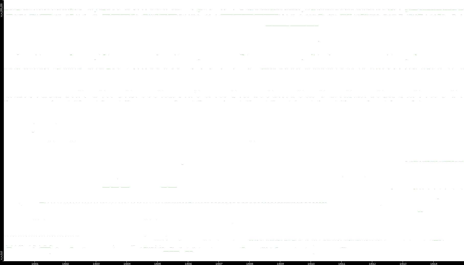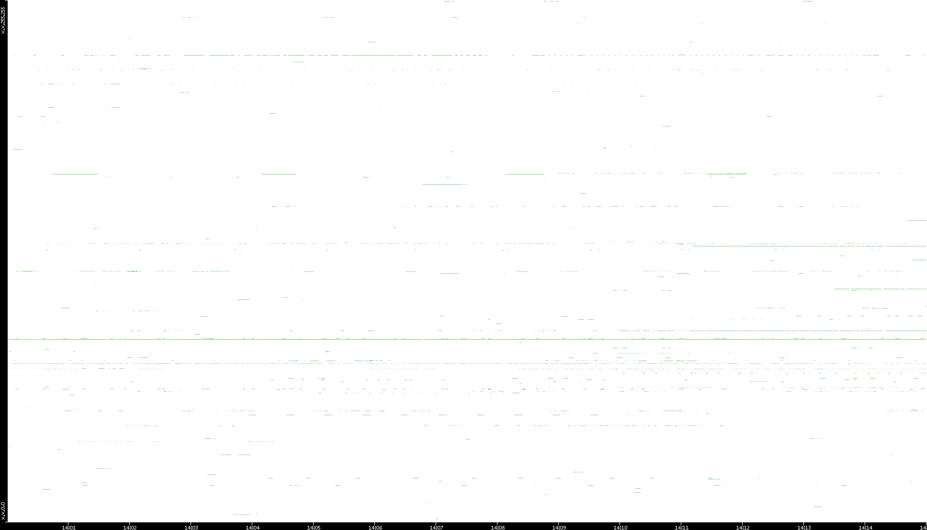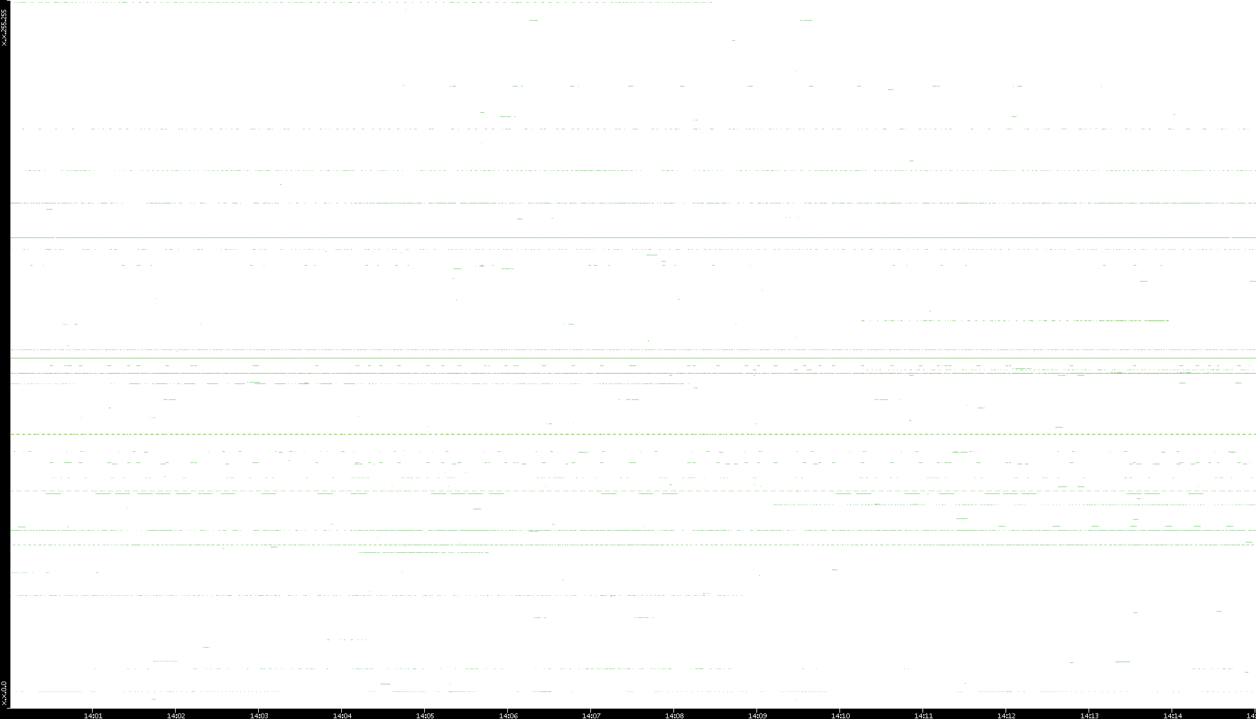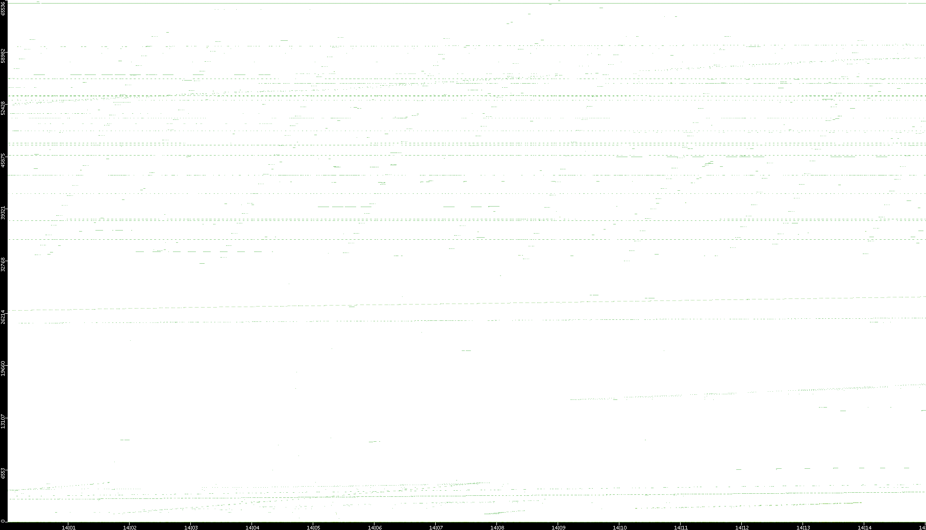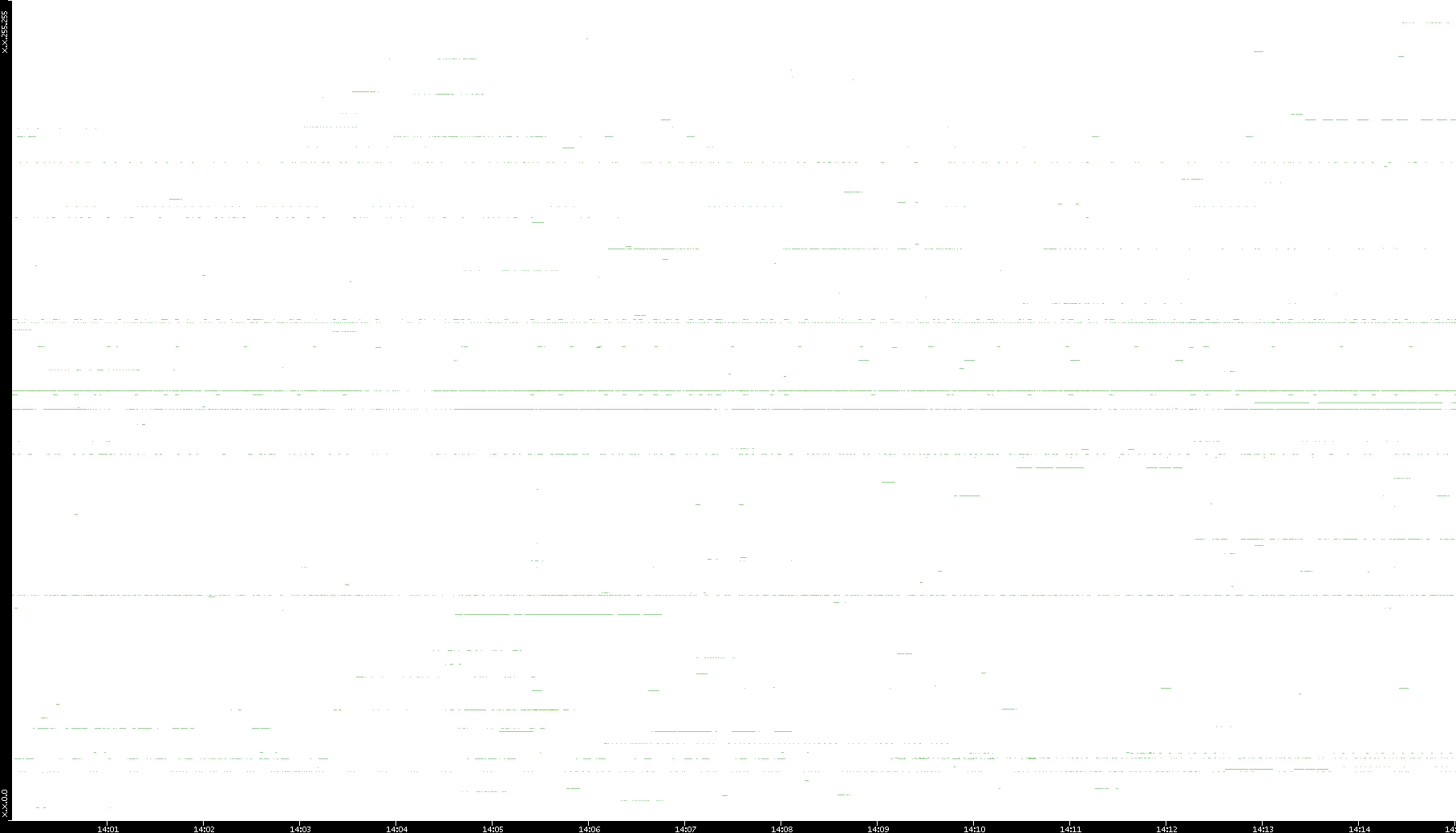 2008/03/14 Dest. IP vs. Time Dest. Port vs. Time Src. IP vs. Time Src. Port vs. Time Nb. of Packets vs. Time Throughput vs. Time Average Packet Size vs. Time Entropy of Port vs. Time