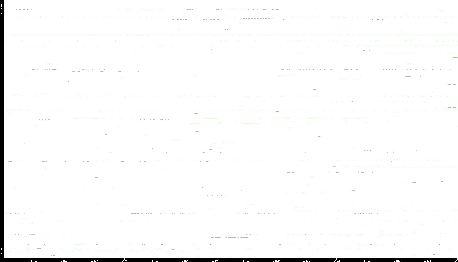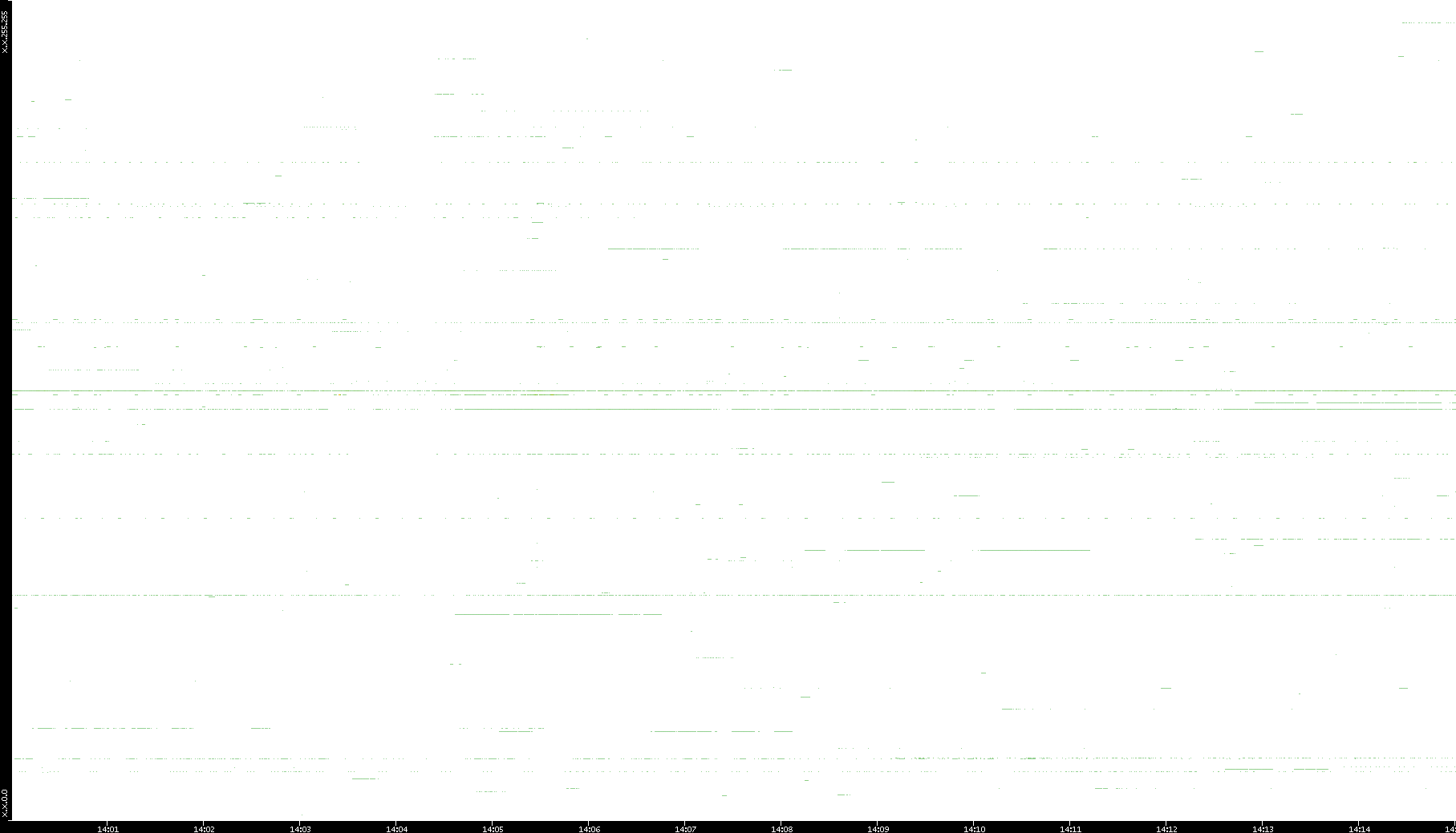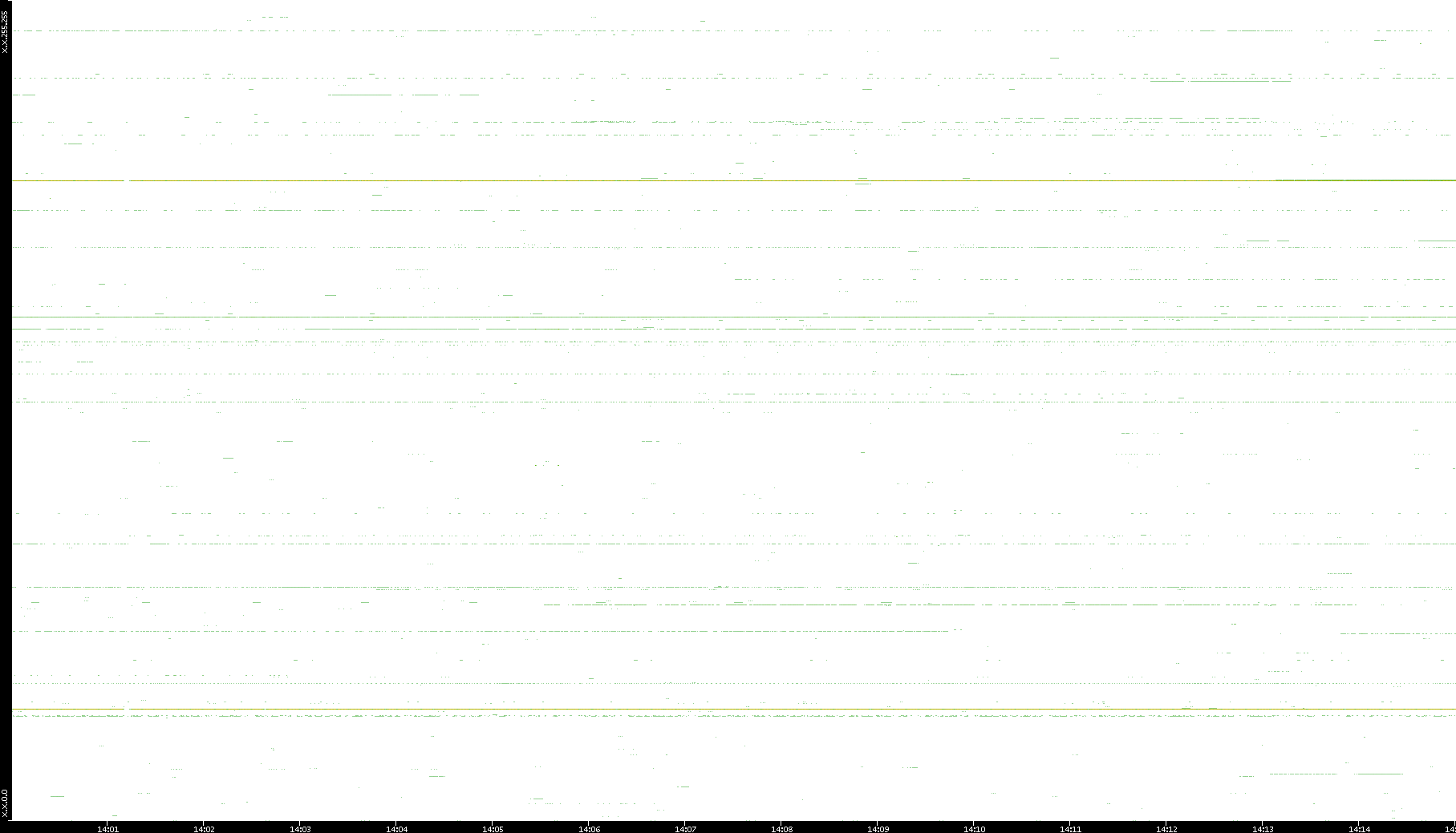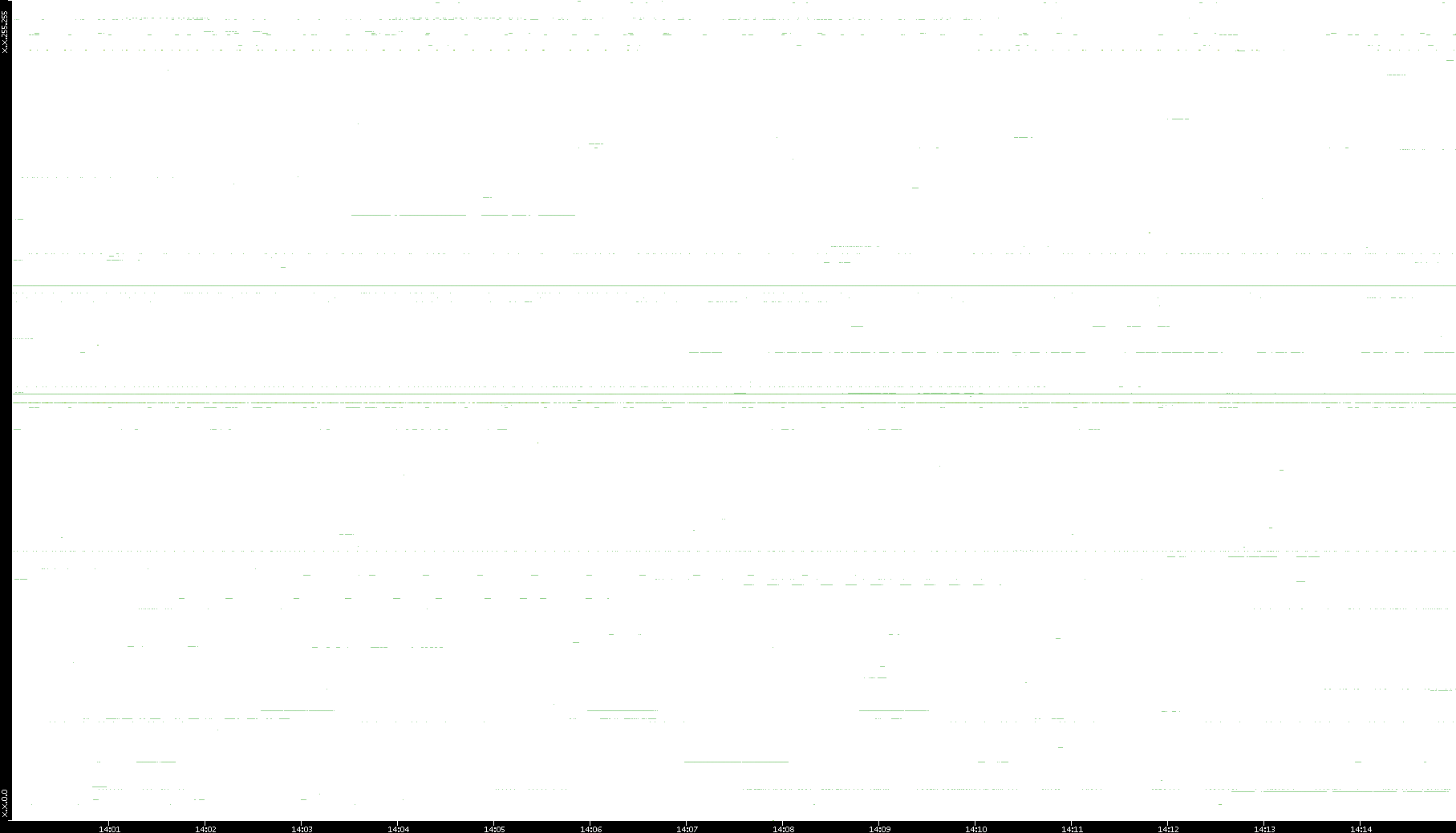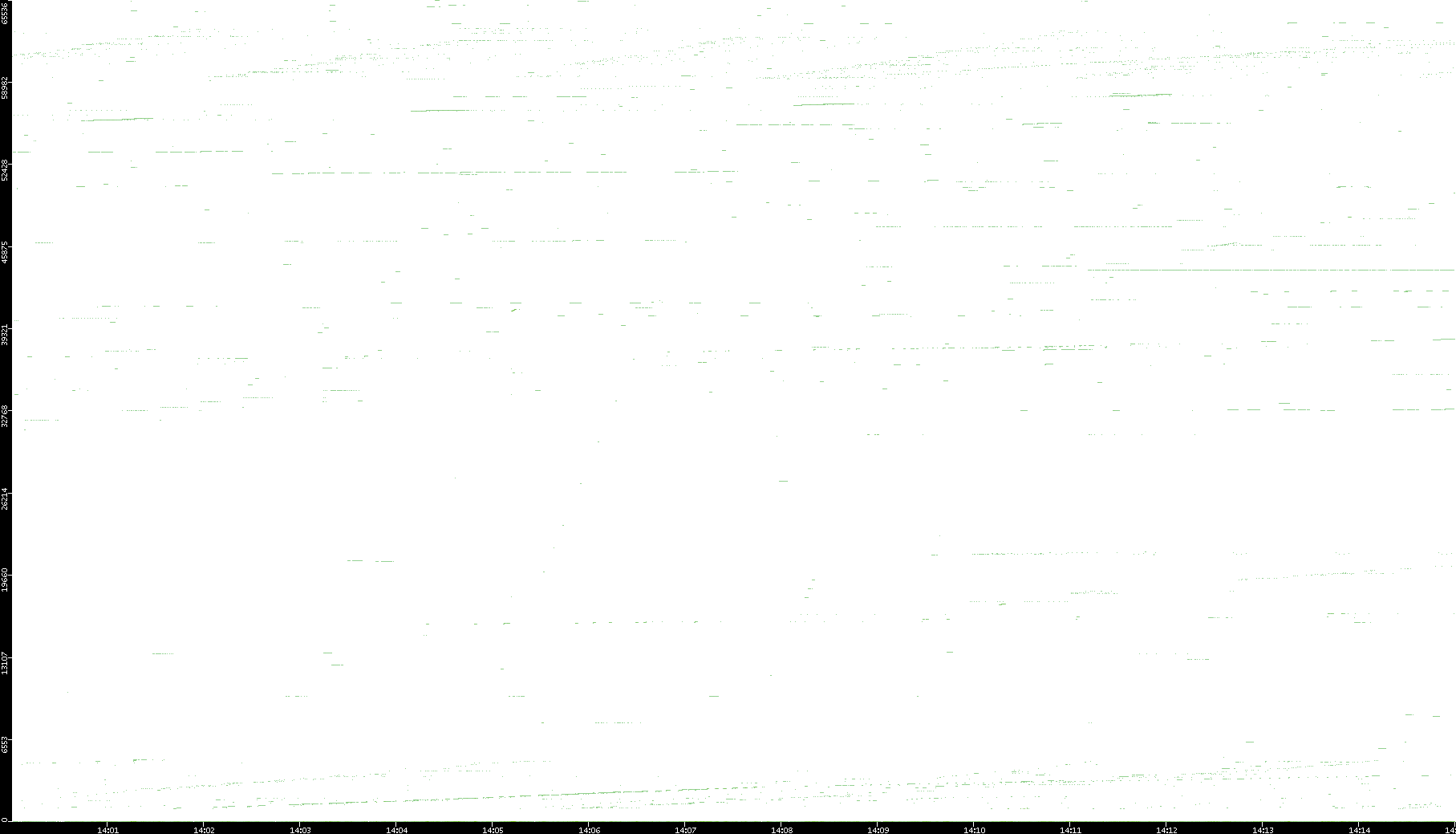 2008/03/14 Dest. IP vs. Time Dest. Port vs. Time Src. IP vs. Time Src. Port vs. Time Nb. of Packets vs. Time Throughput vs. Time Average Packet Size vs. Time Entropy of Port vs. Time