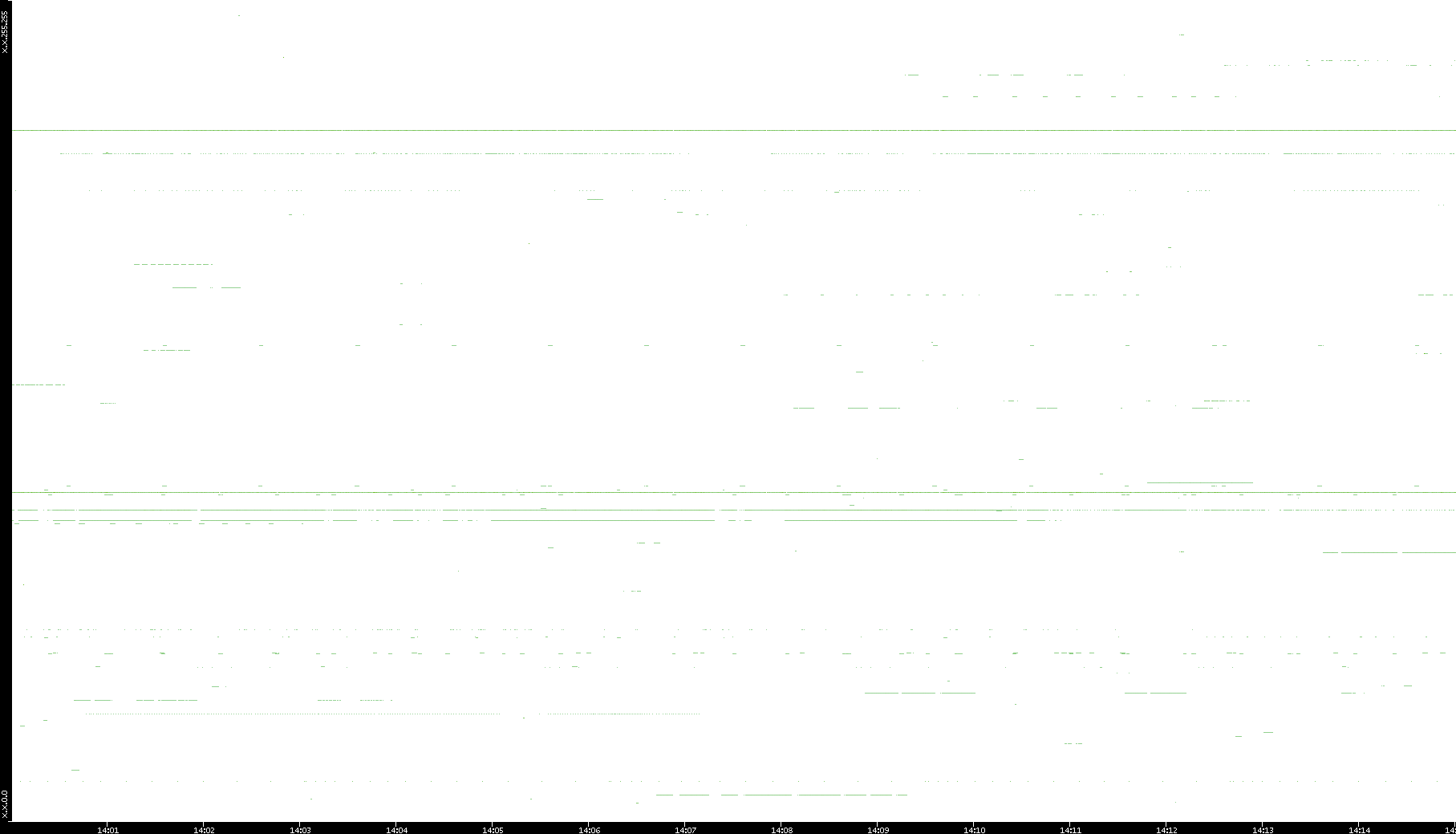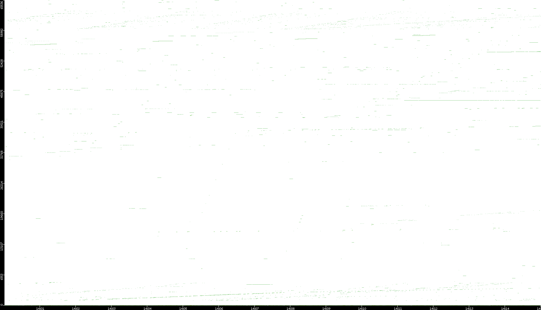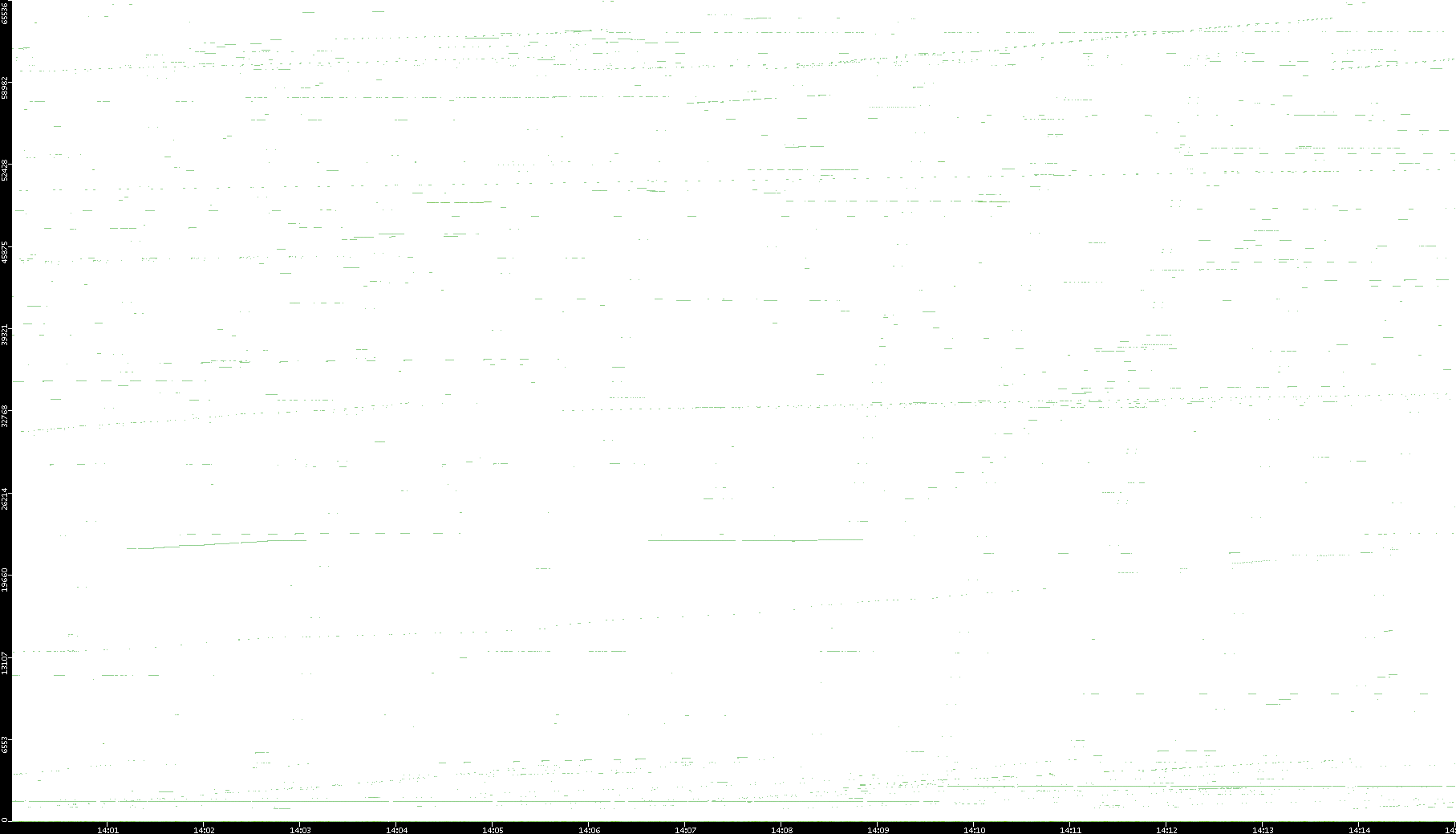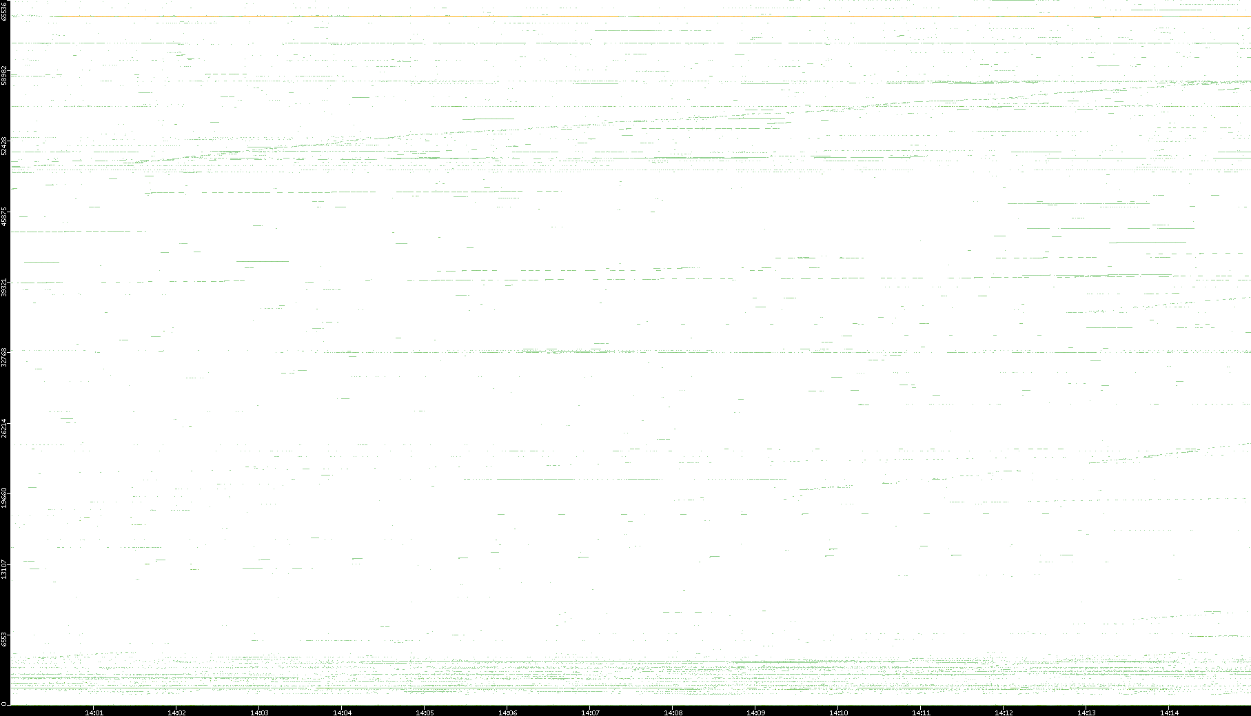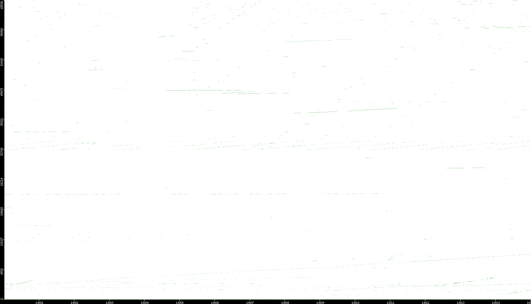 2008/03/14 Dest. IP vs. Time Dest. Port vs. Time Src. IP vs. Time Src. Port vs. Time Nb. of Packets vs. Time Throughput vs. Time Average Packet Size vs. Time Entropy of Port vs. Time