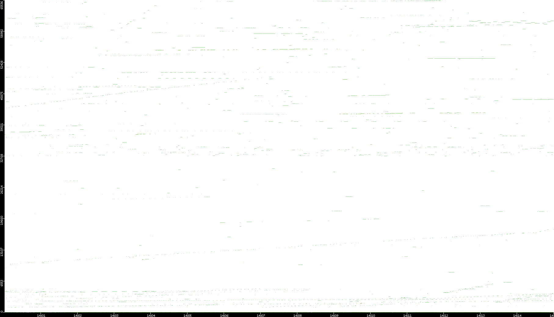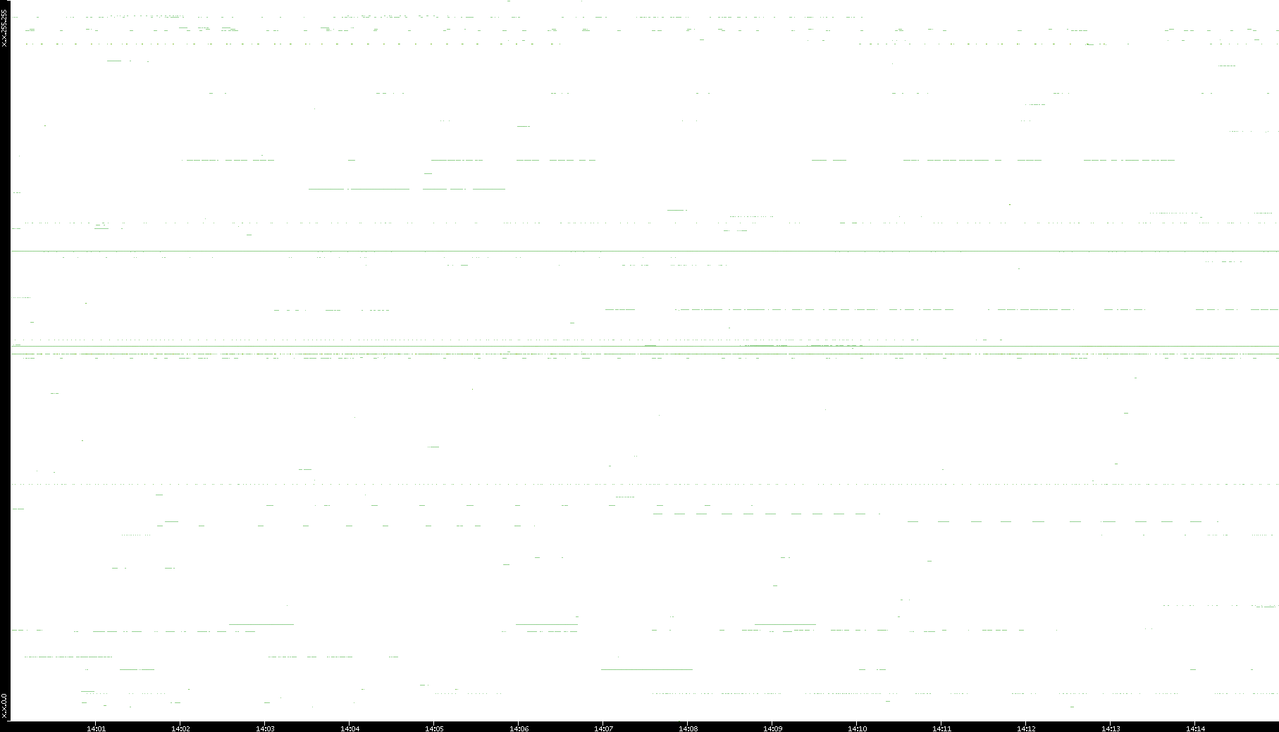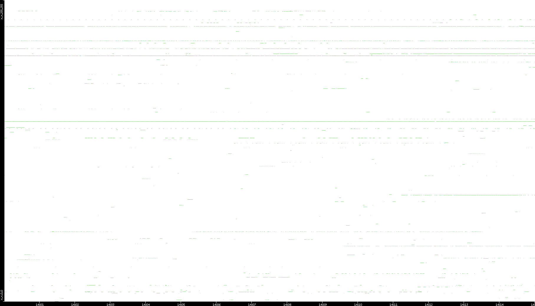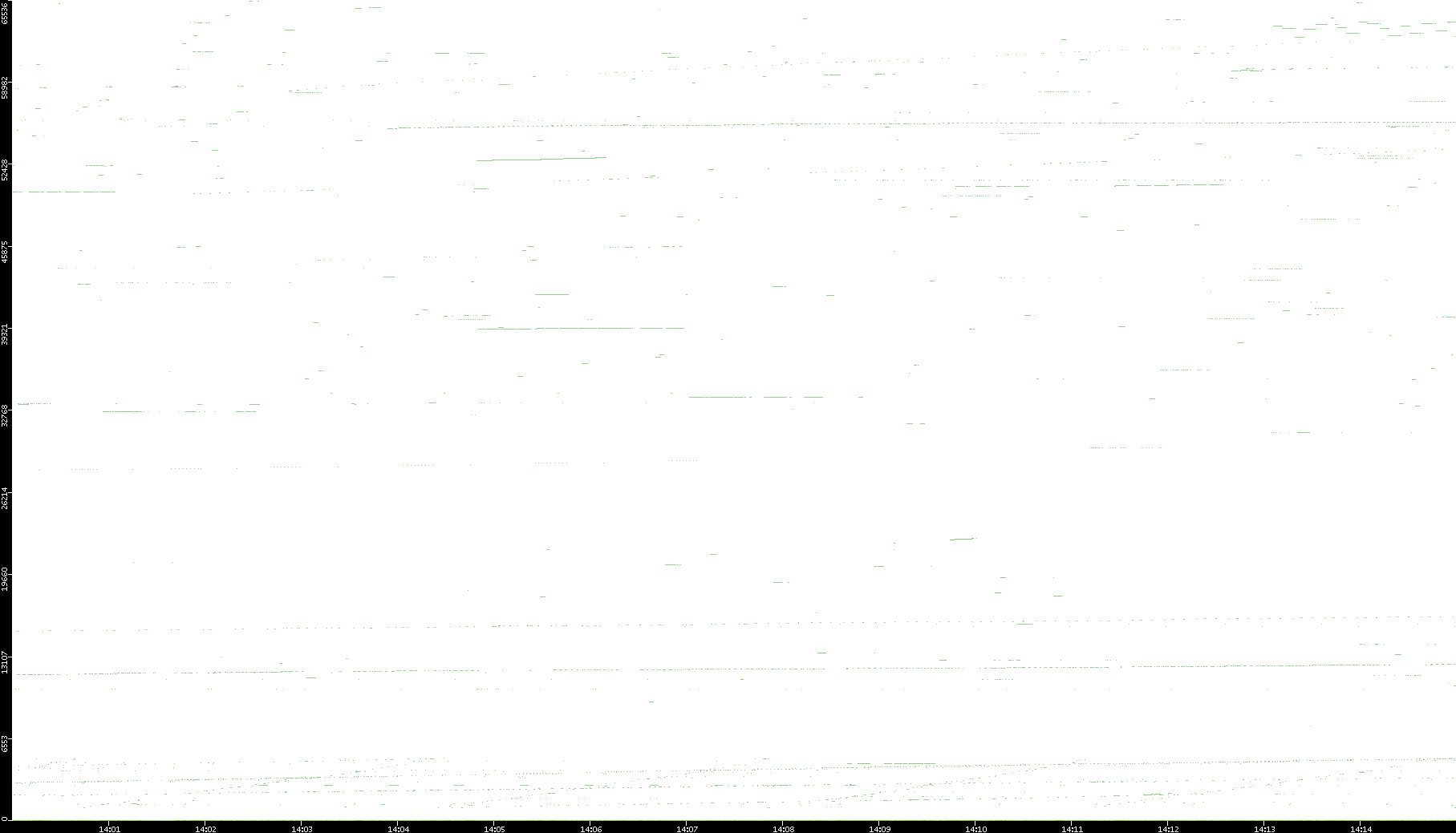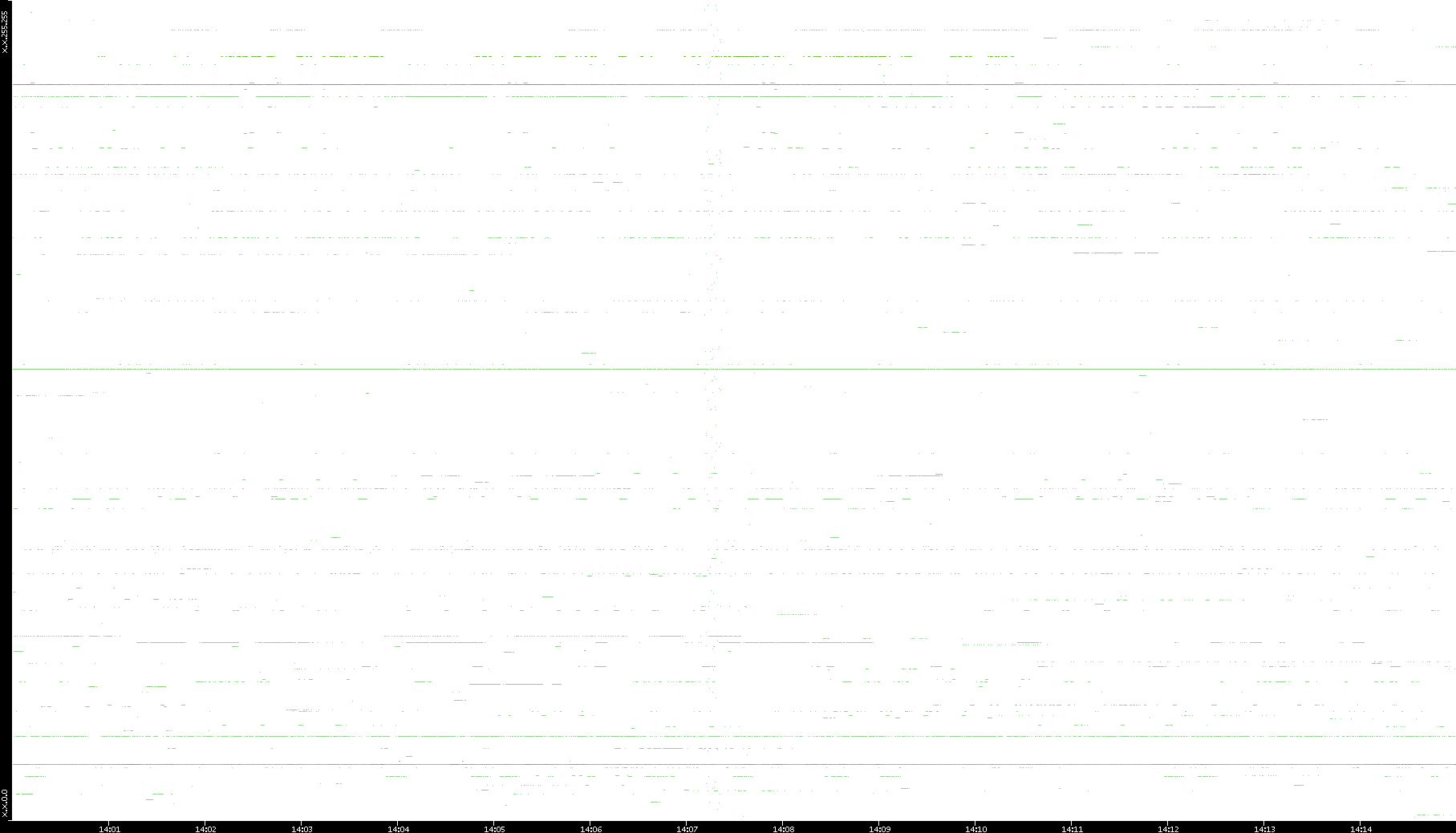 2008/03/14 Dest. IP vs. Time Dest. Port vs. Time Src. IP vs. Time Src. Port vs. Time Nb. of Packets vs. Time Throughput vs. Time Average Packet Size vs. Time Entropy of Port vs. Time