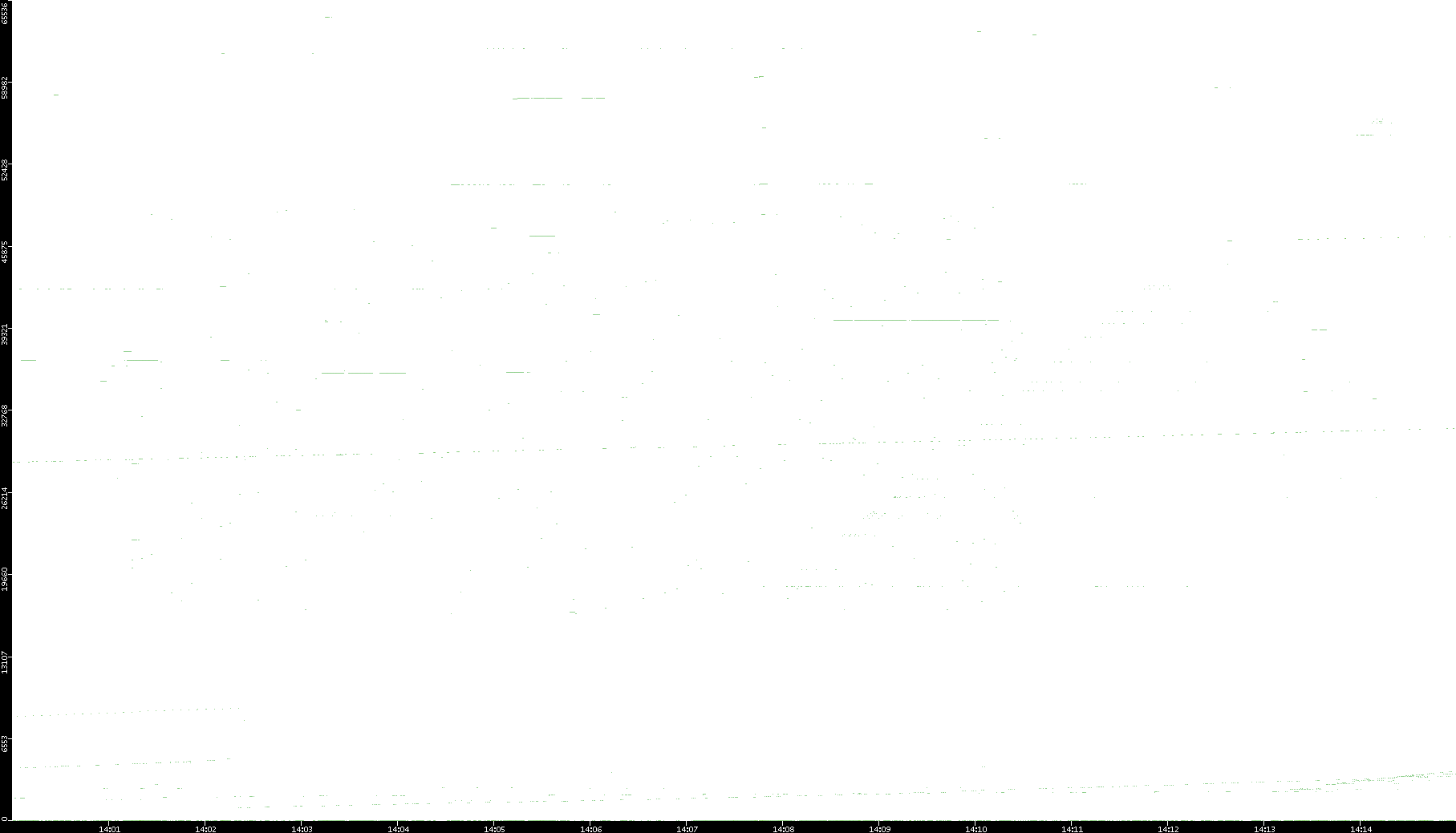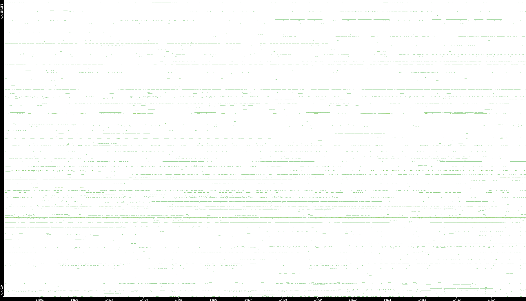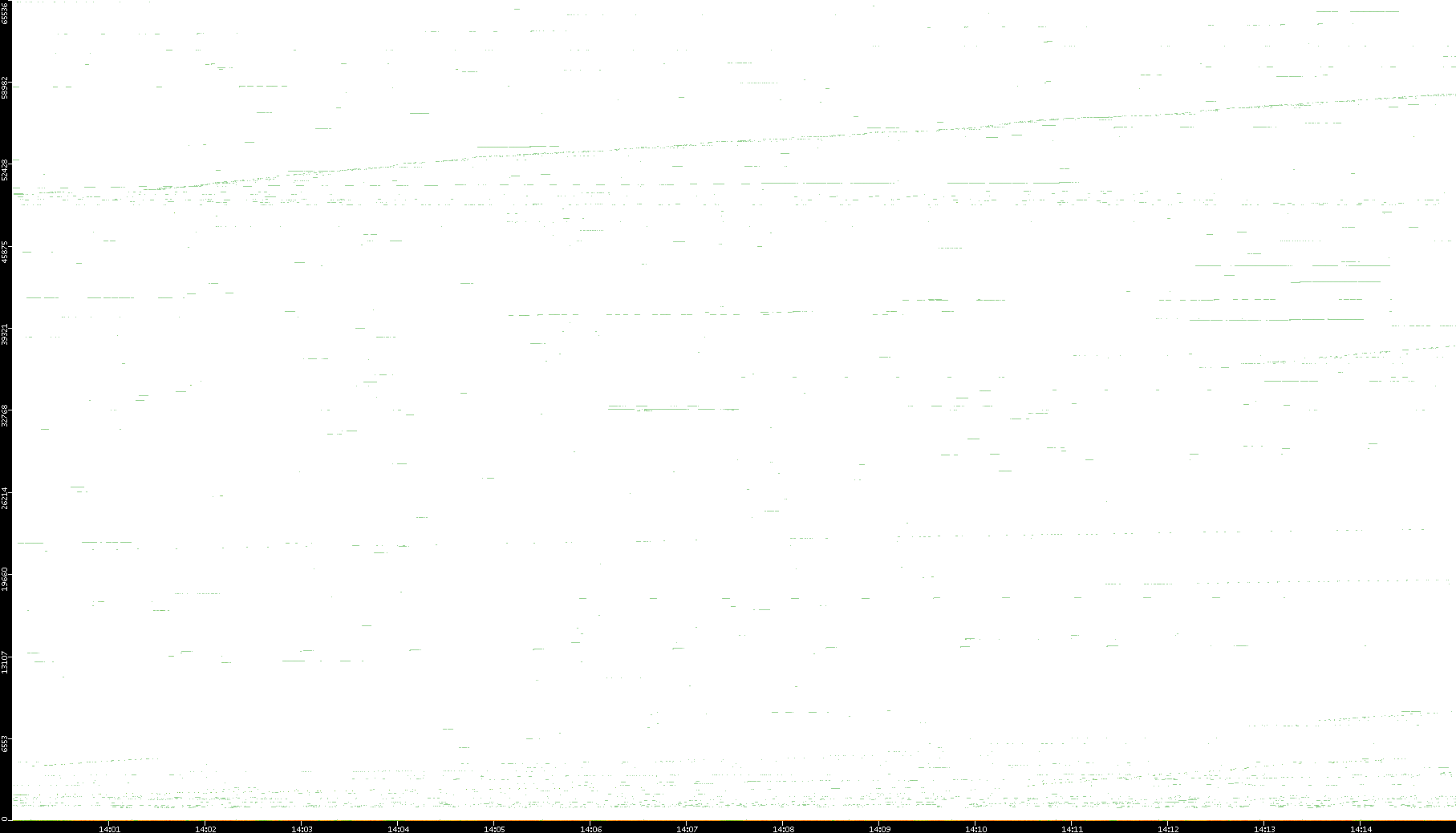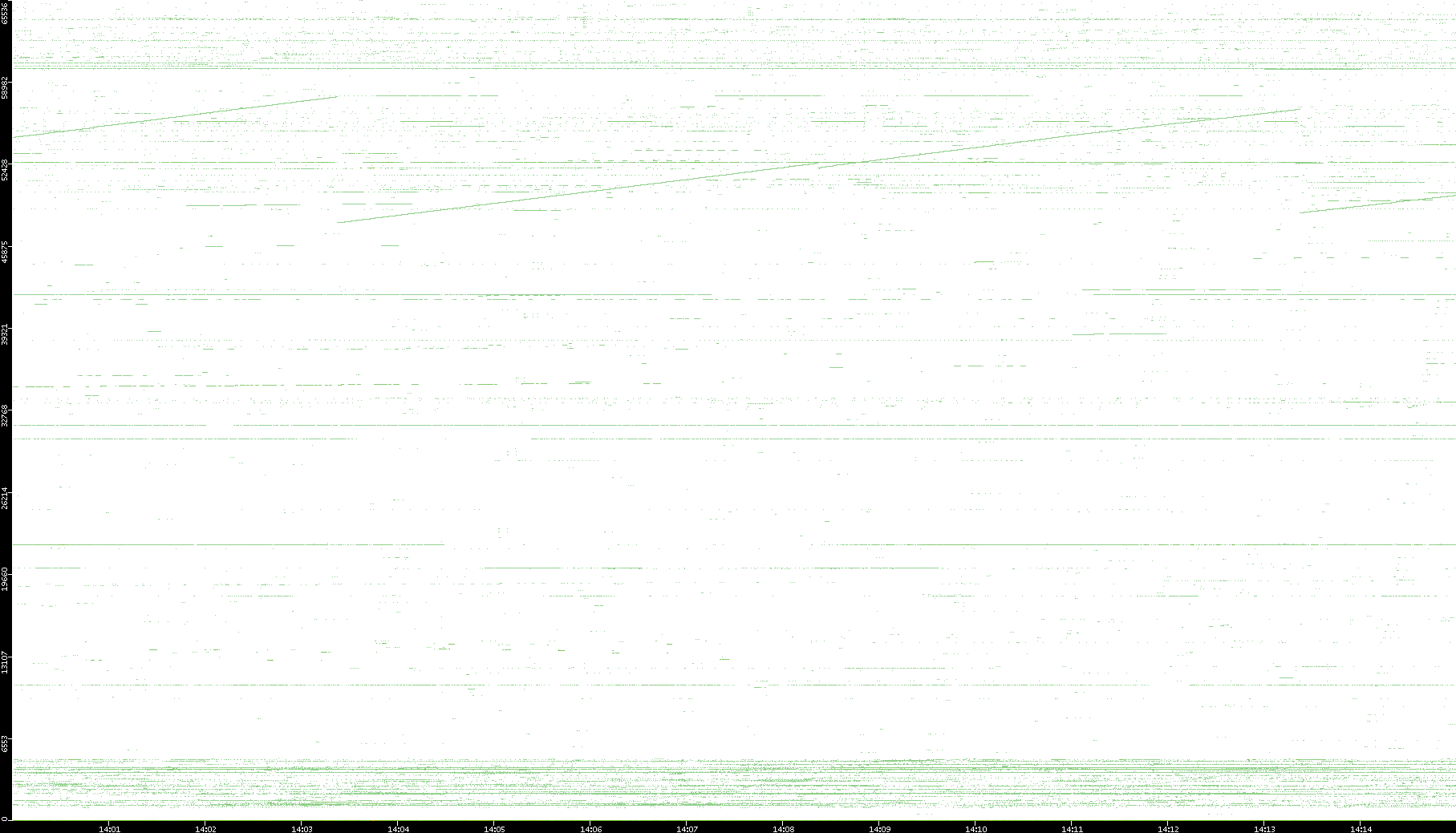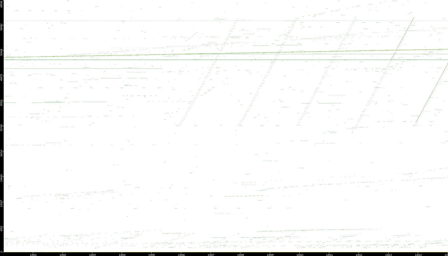 2008/03/14 Dest. IP vs. Time Dest. Port vs. Time Src. IP vs. Time Src. Port vs. Time Nb. of Packets vs. Time Throughput vs. Time Average Packet Size vs. Time Entropy of Port vs. Time