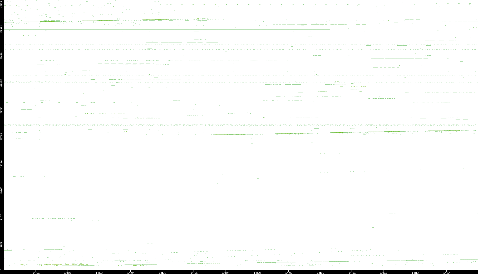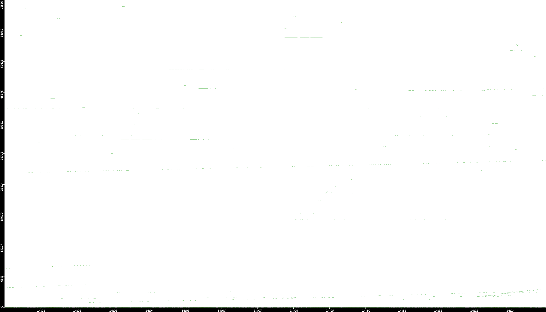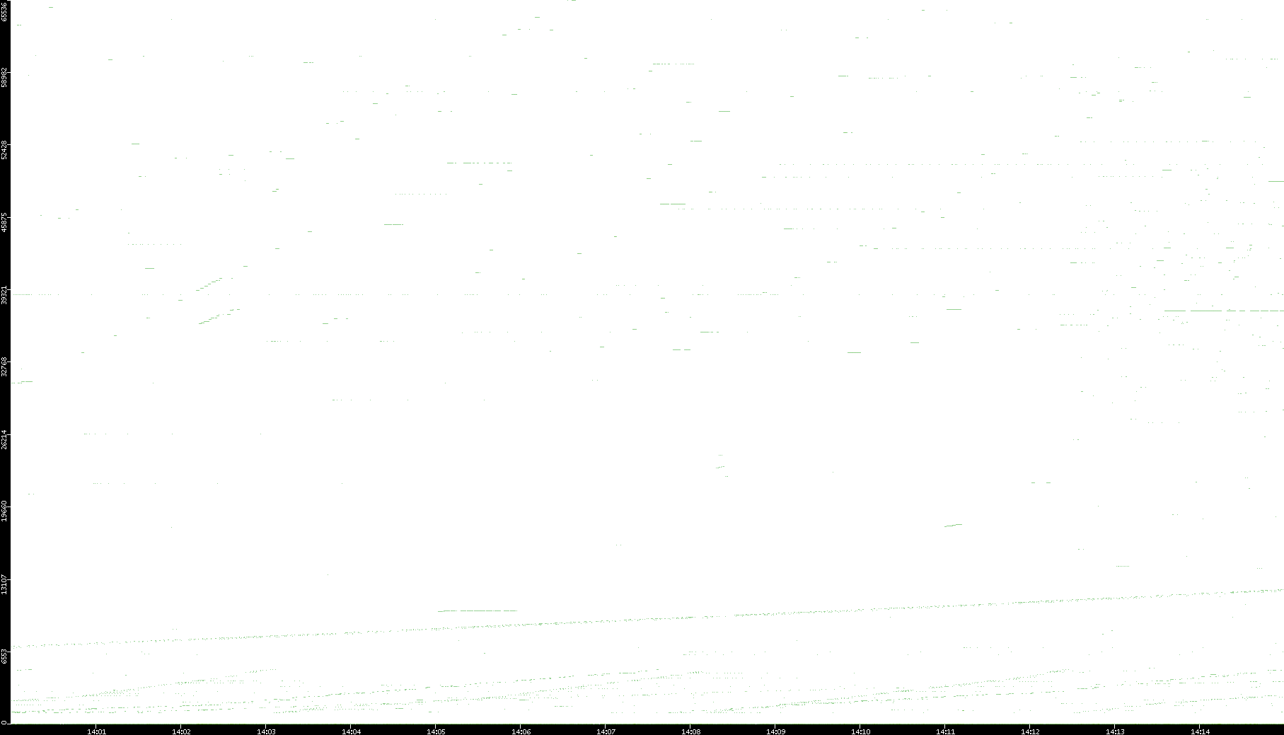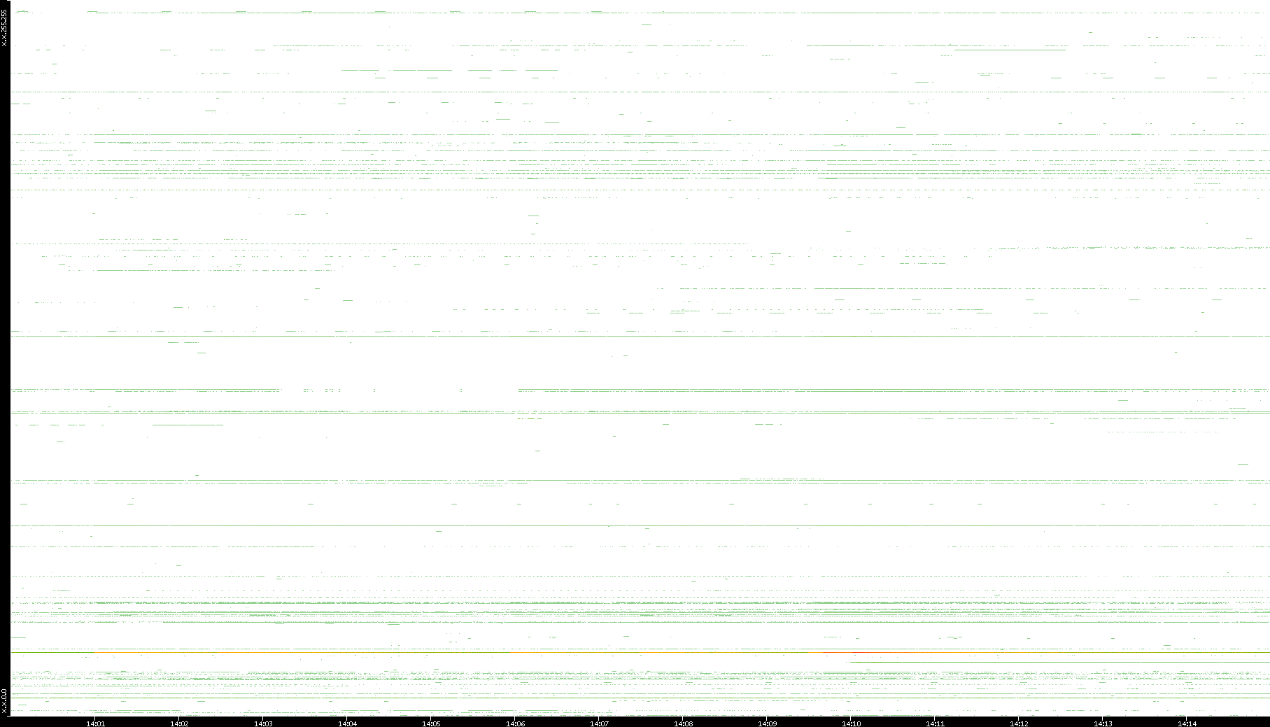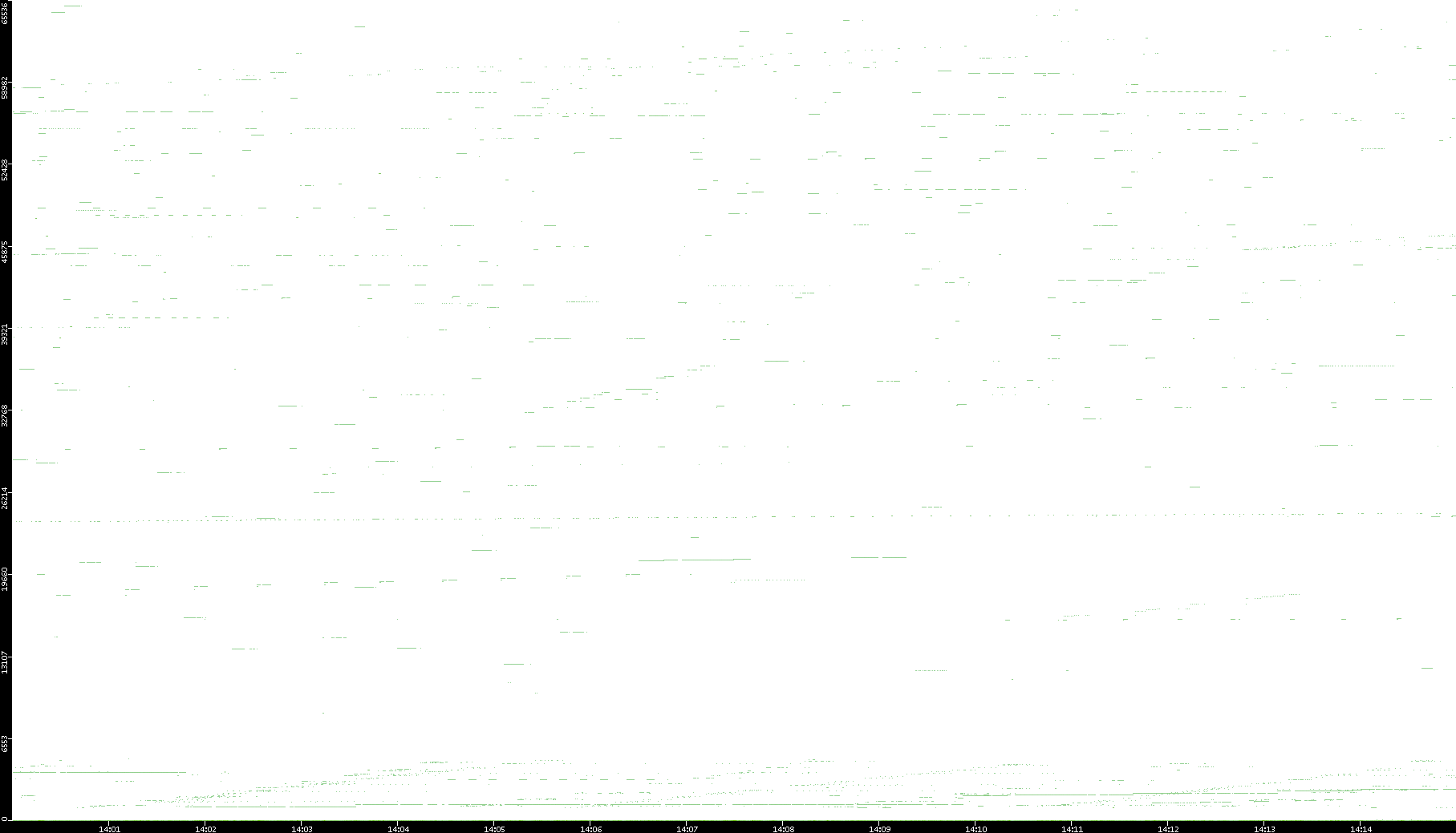 2008/03/14 Dest. IP vs. Time Dest. Port vs. Time Src. IP vs. Time Src. Port vs. Time Nb. of Packets vs. Time Throughput vs. Time Average Packet Size vs. Time Entropy of Port vs. Time