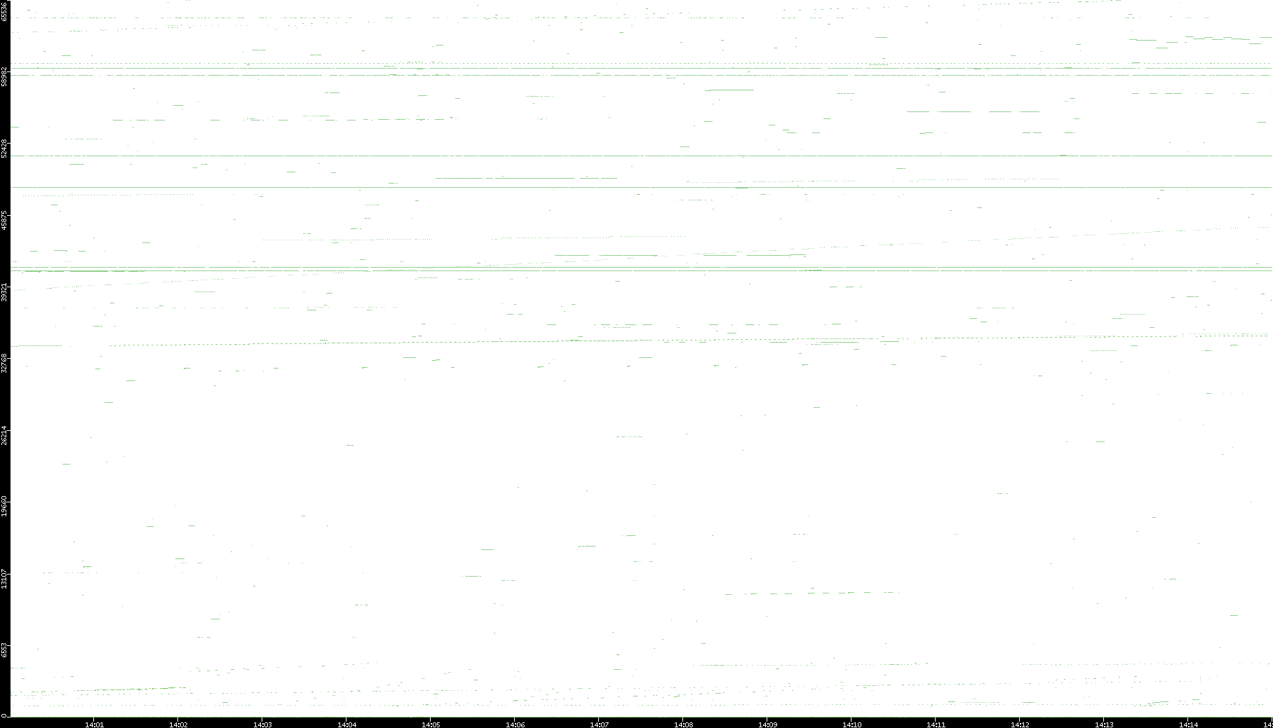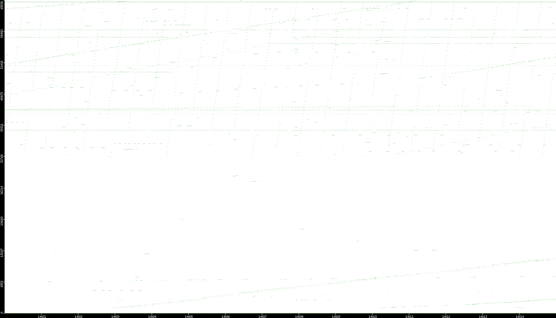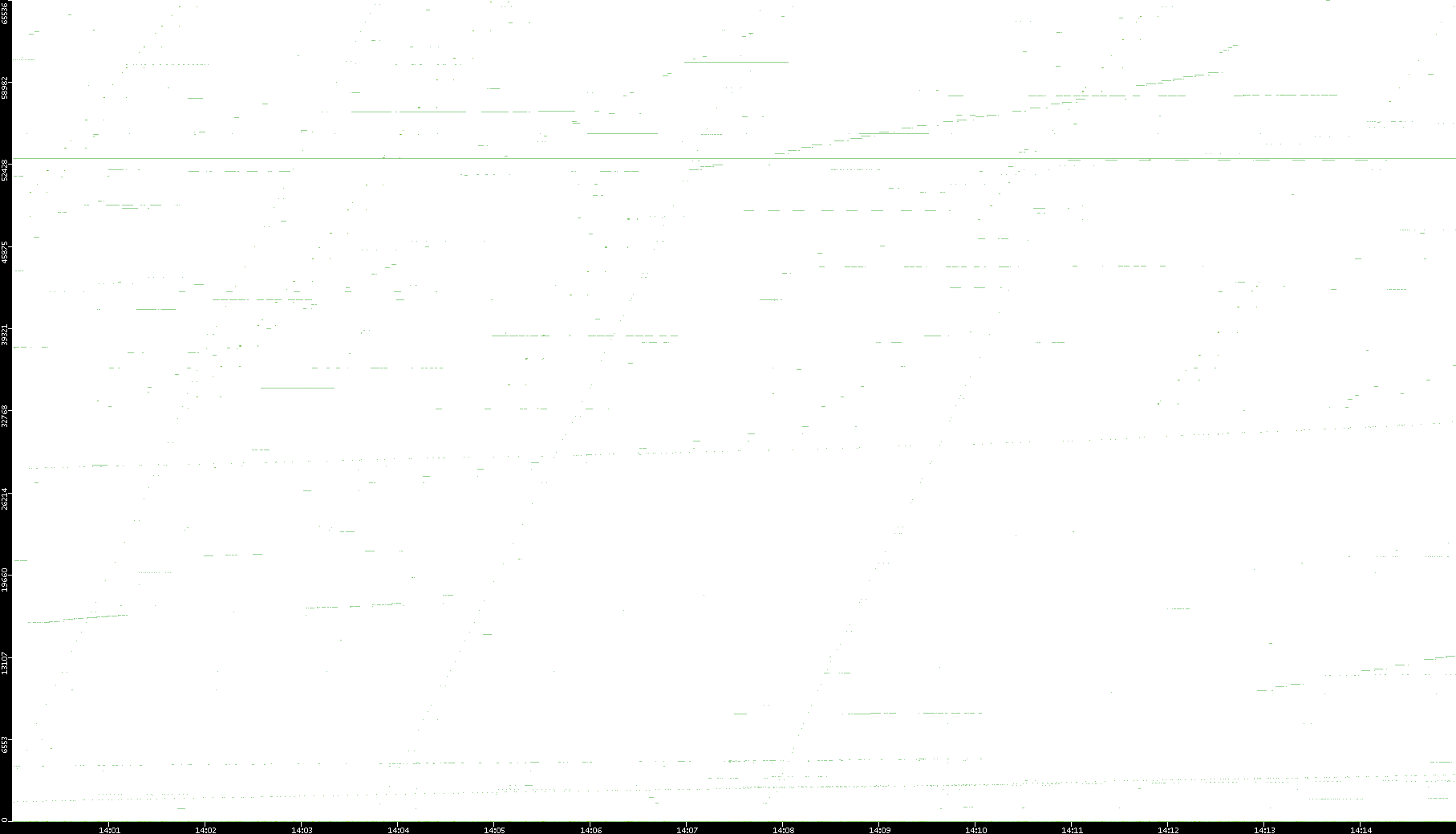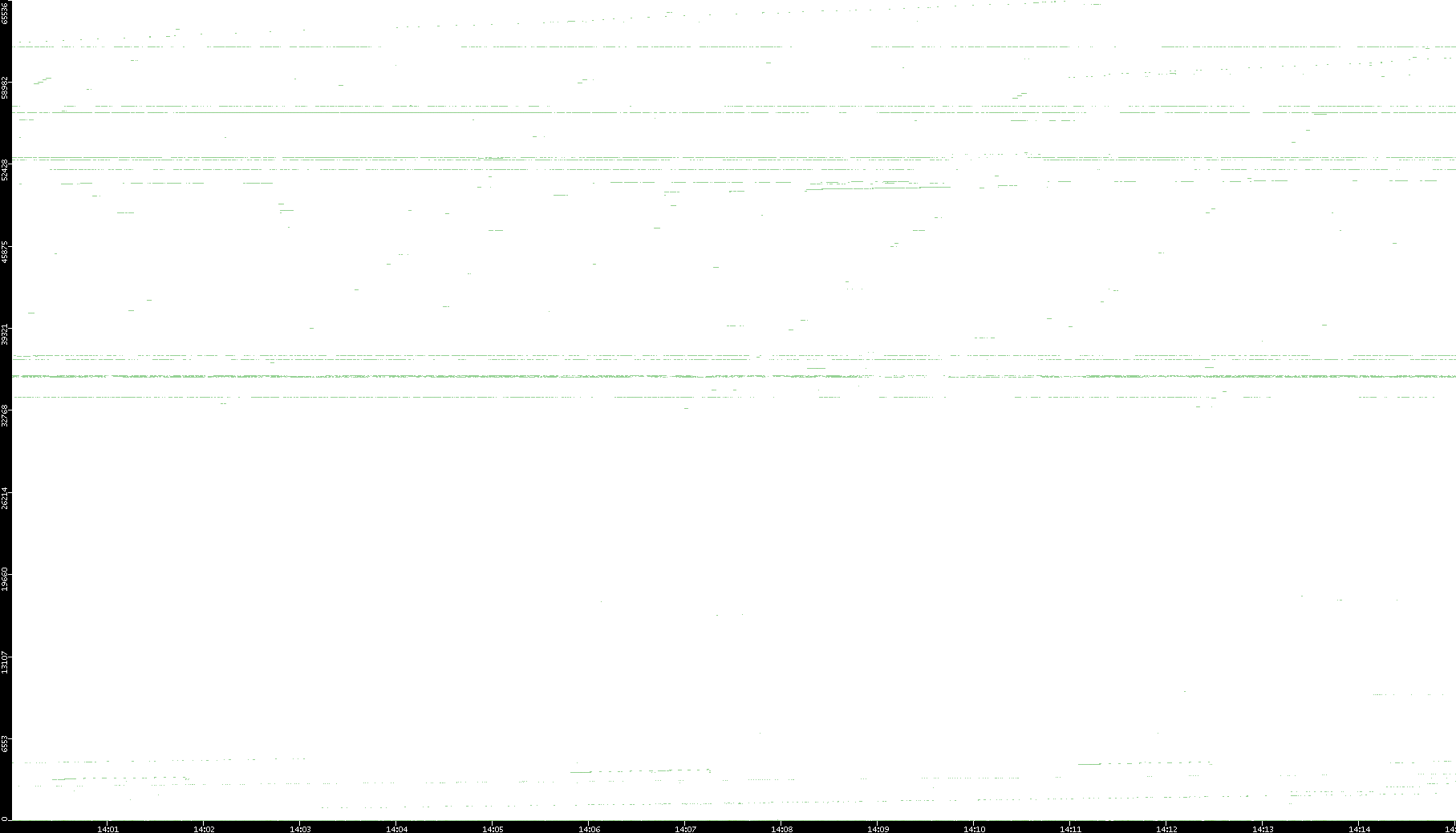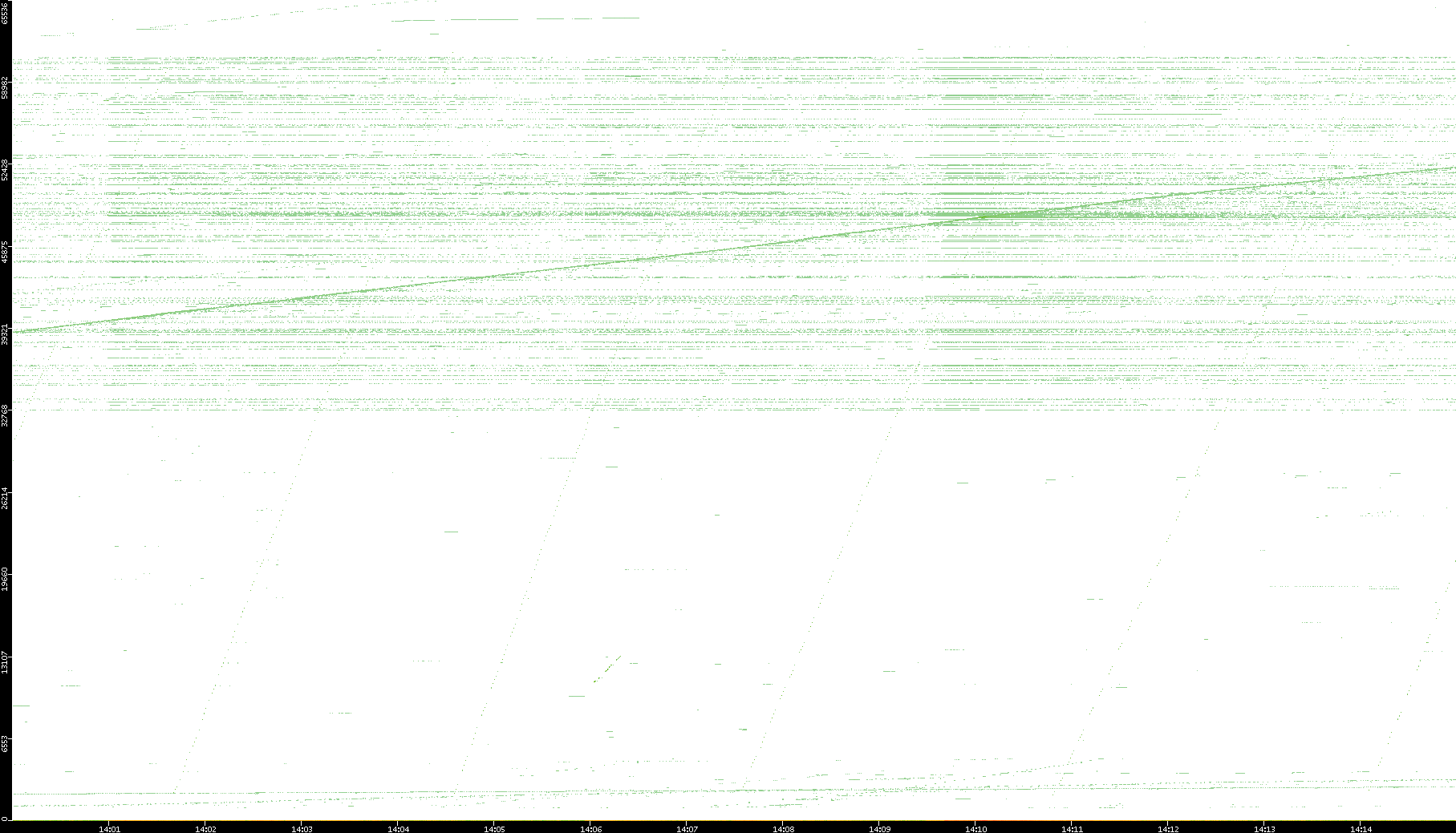 2008/03/14 Dest. IP vs. Time Dest. Port vs. Time Src. IP vs. Time Src. Port vs. Time Nb. of Packets vs. Time Throughput vs. Time Average Packet Size vs. Time Entropy of Port vs. Time