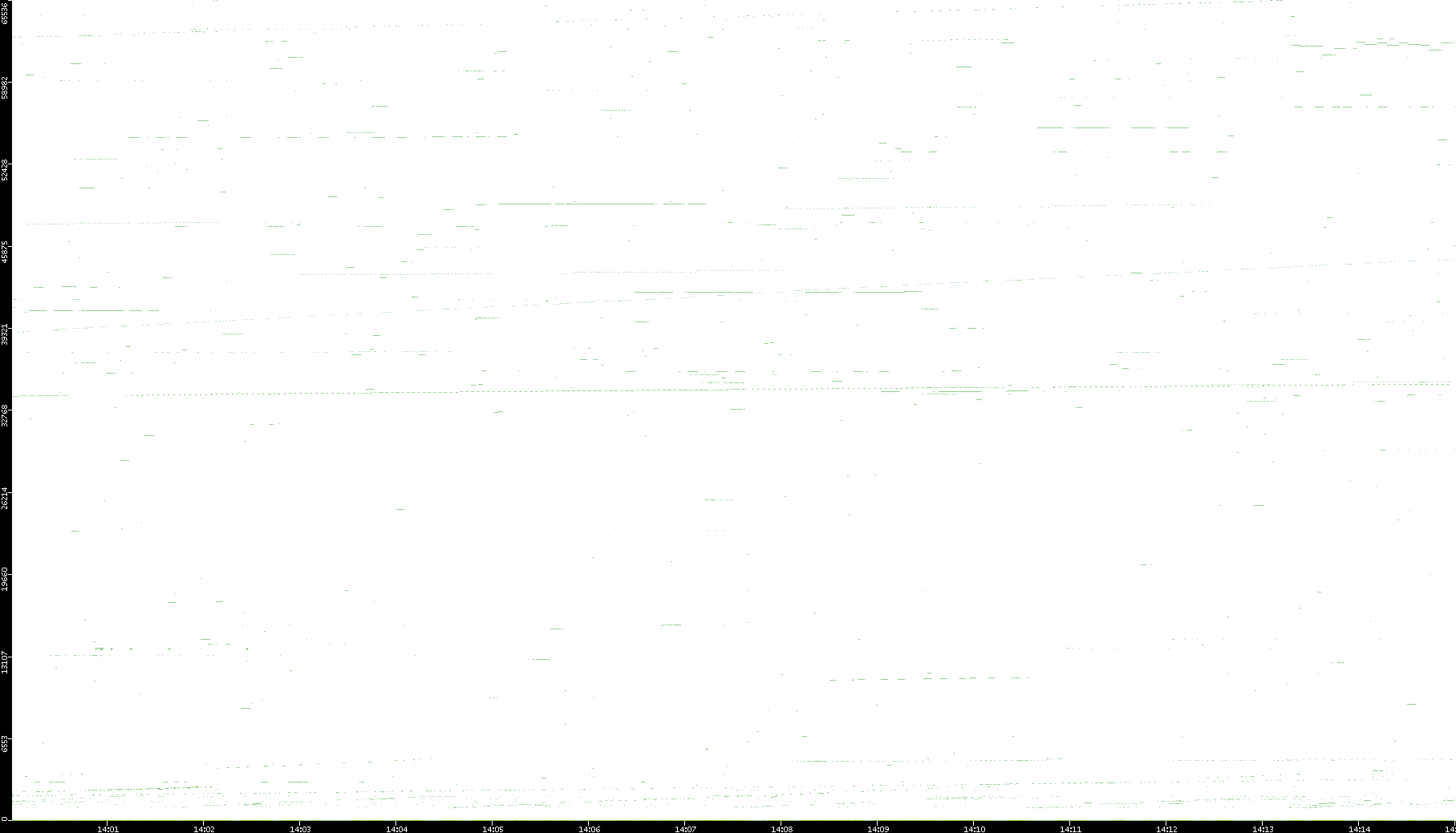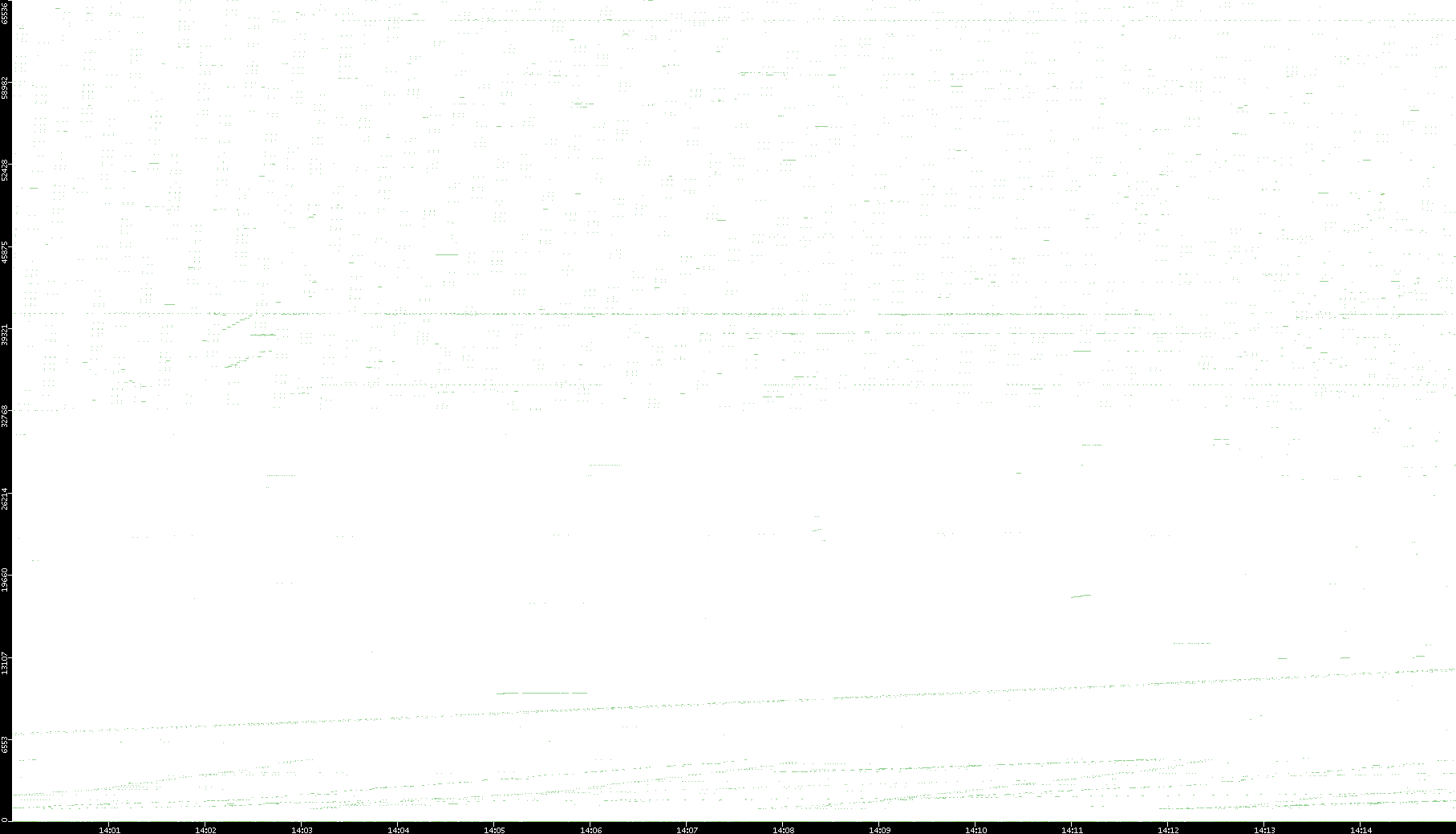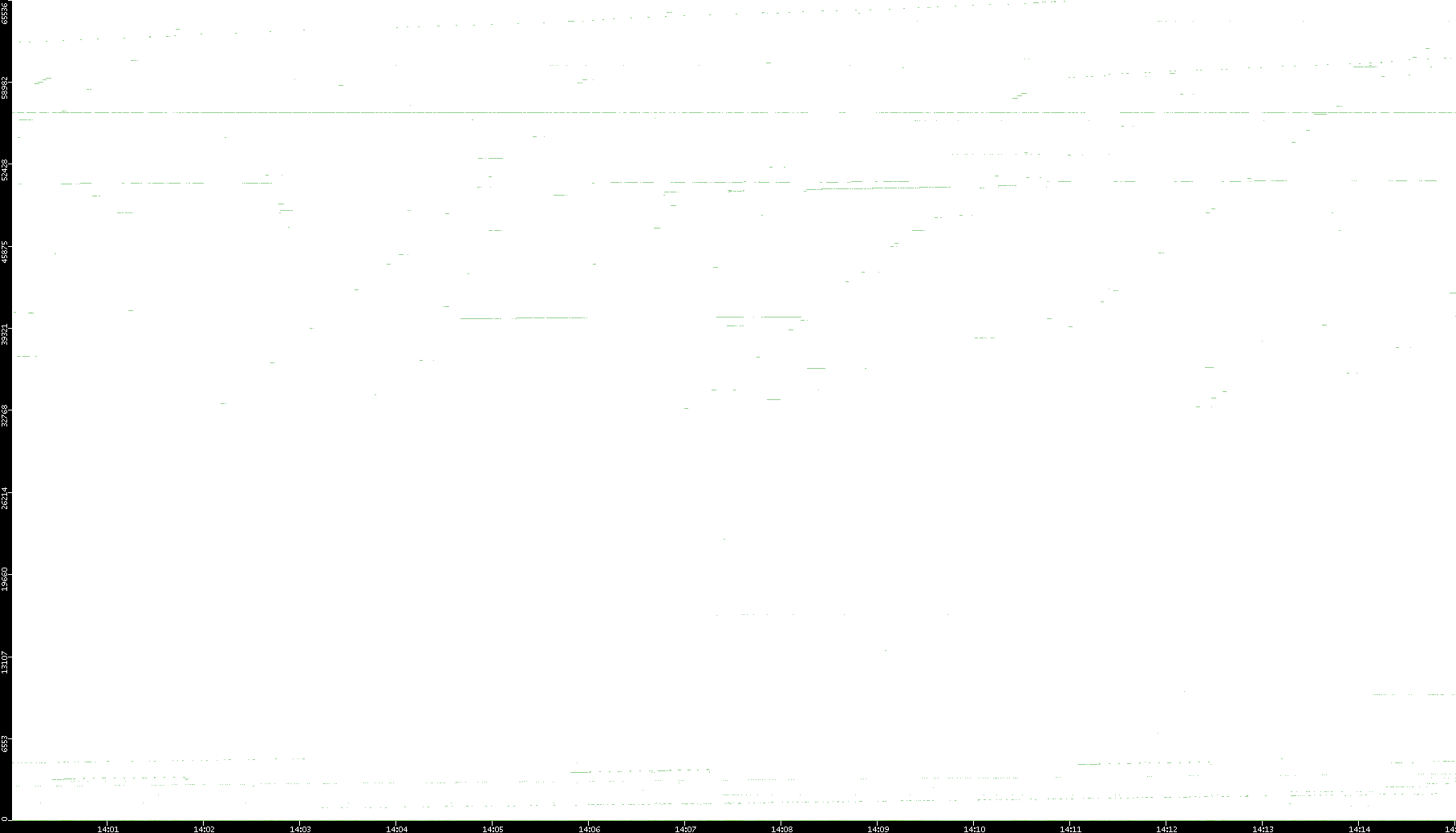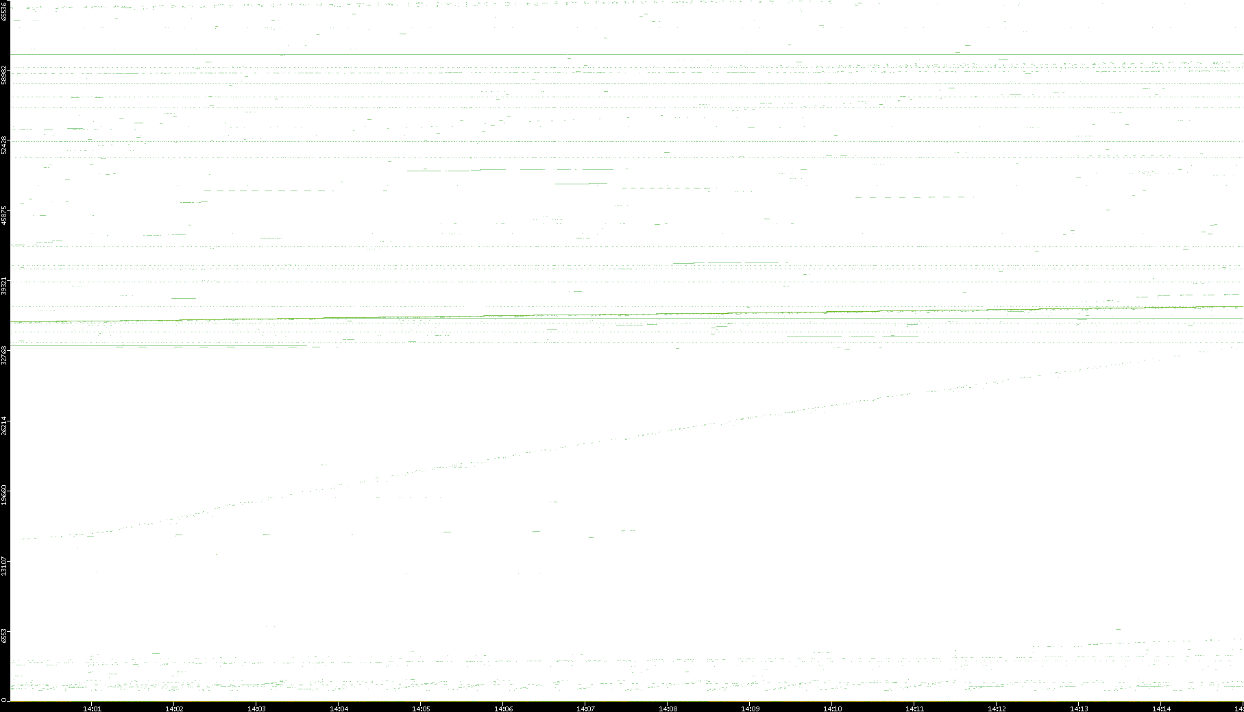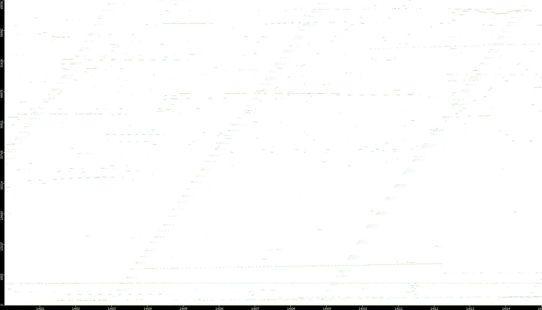 2008/03/14 Dest. IP vs. Time Dest. Port vs. Time Src. IP vs. Time Src. Port vs. Time Nb. of Packets vs. Time Throughput vs. Time Average Packet Size vs. Time Entropy of Port vs. Time