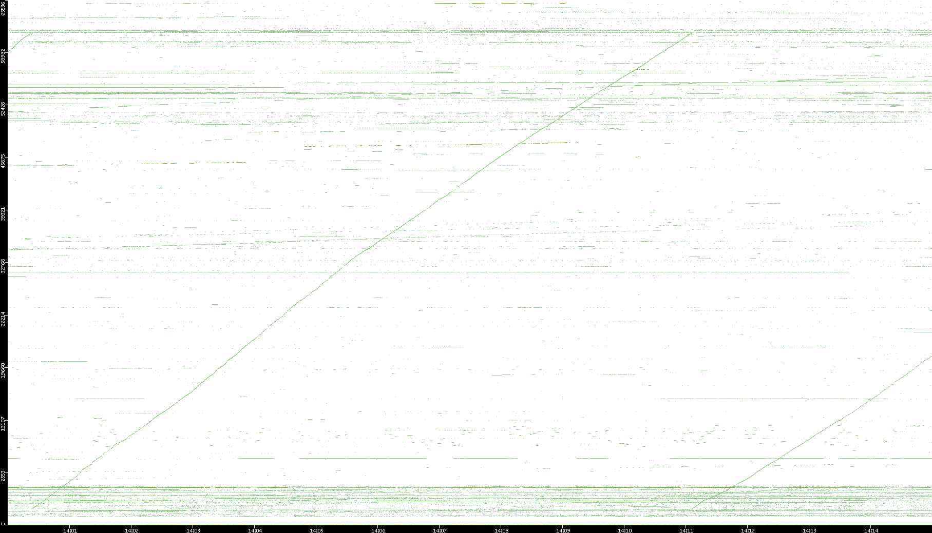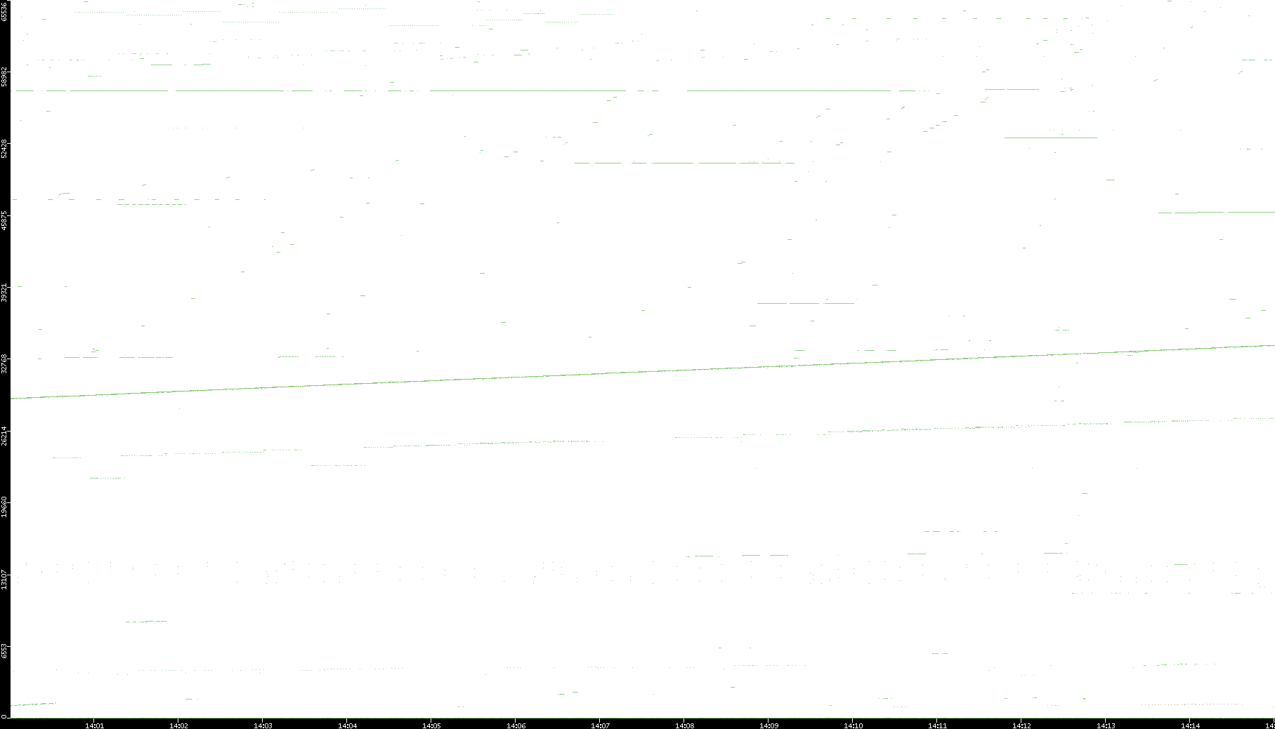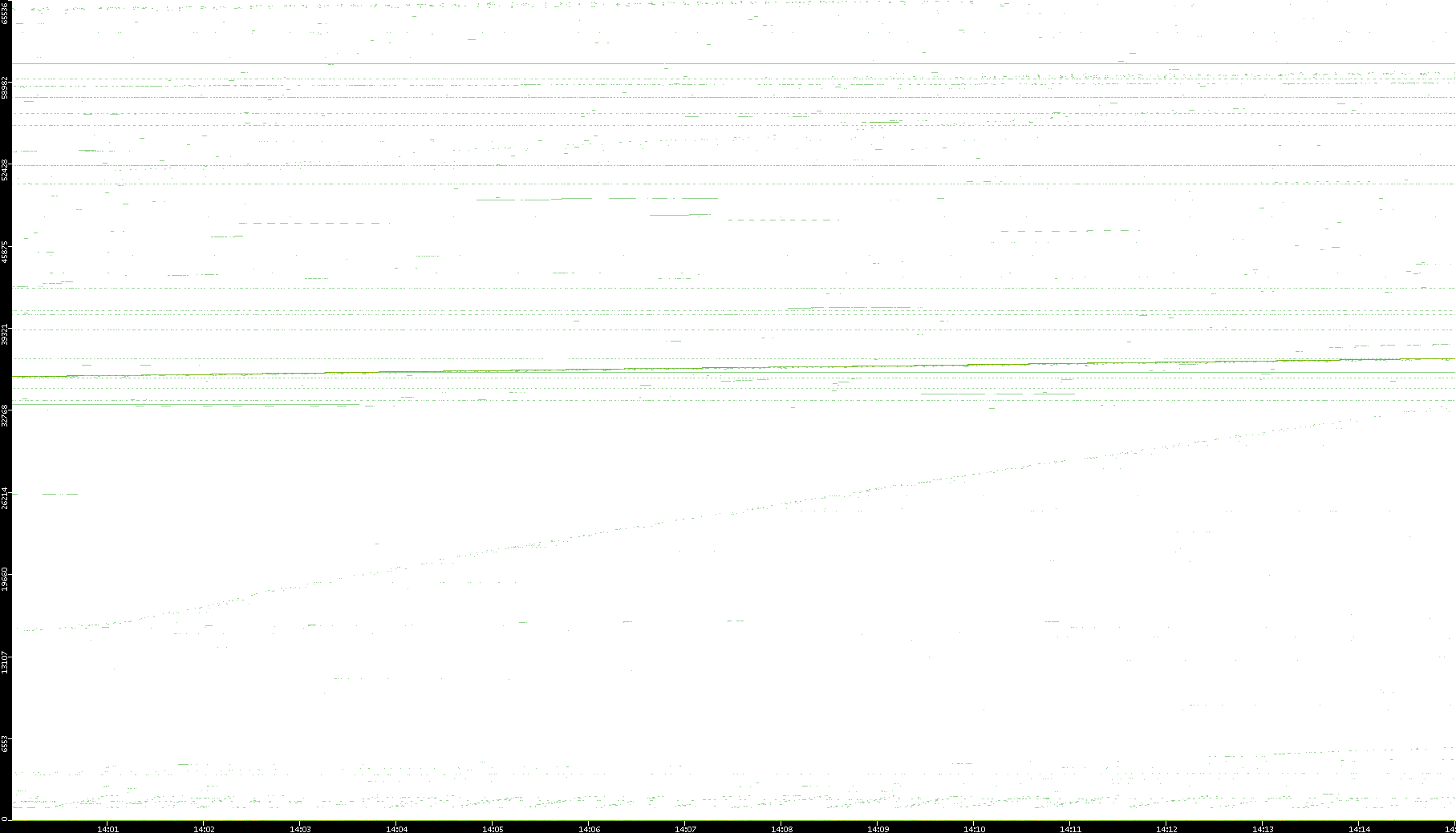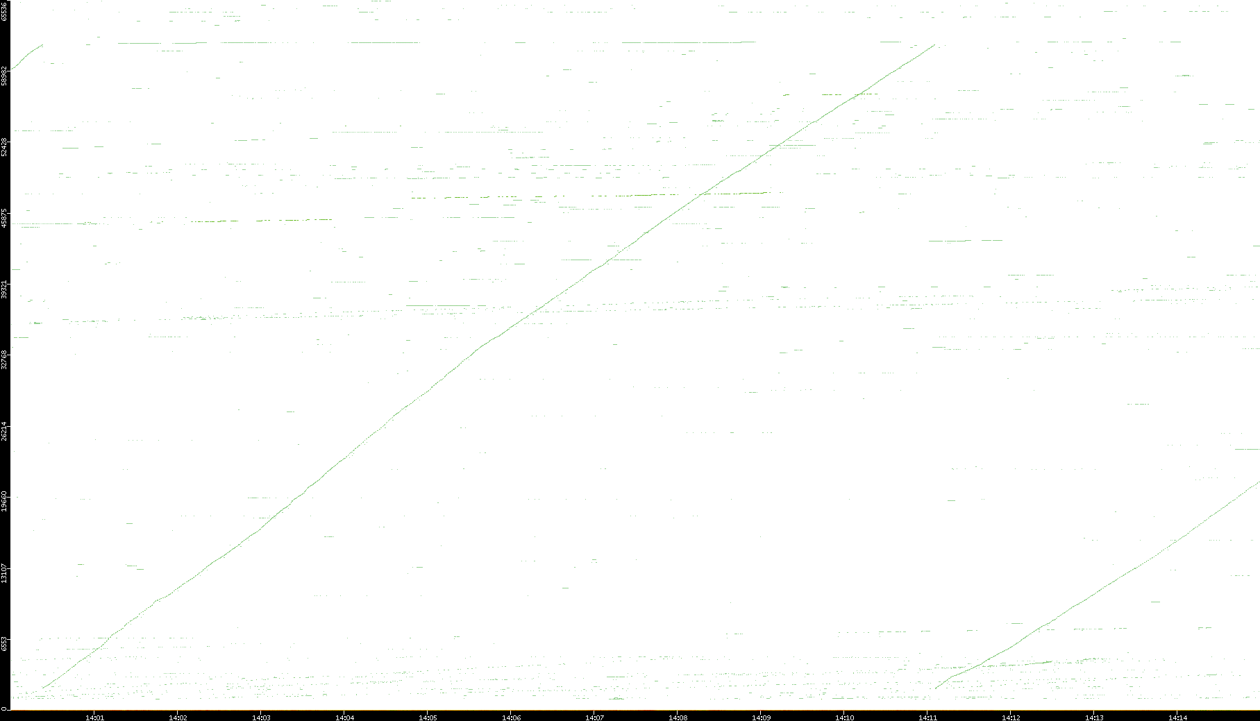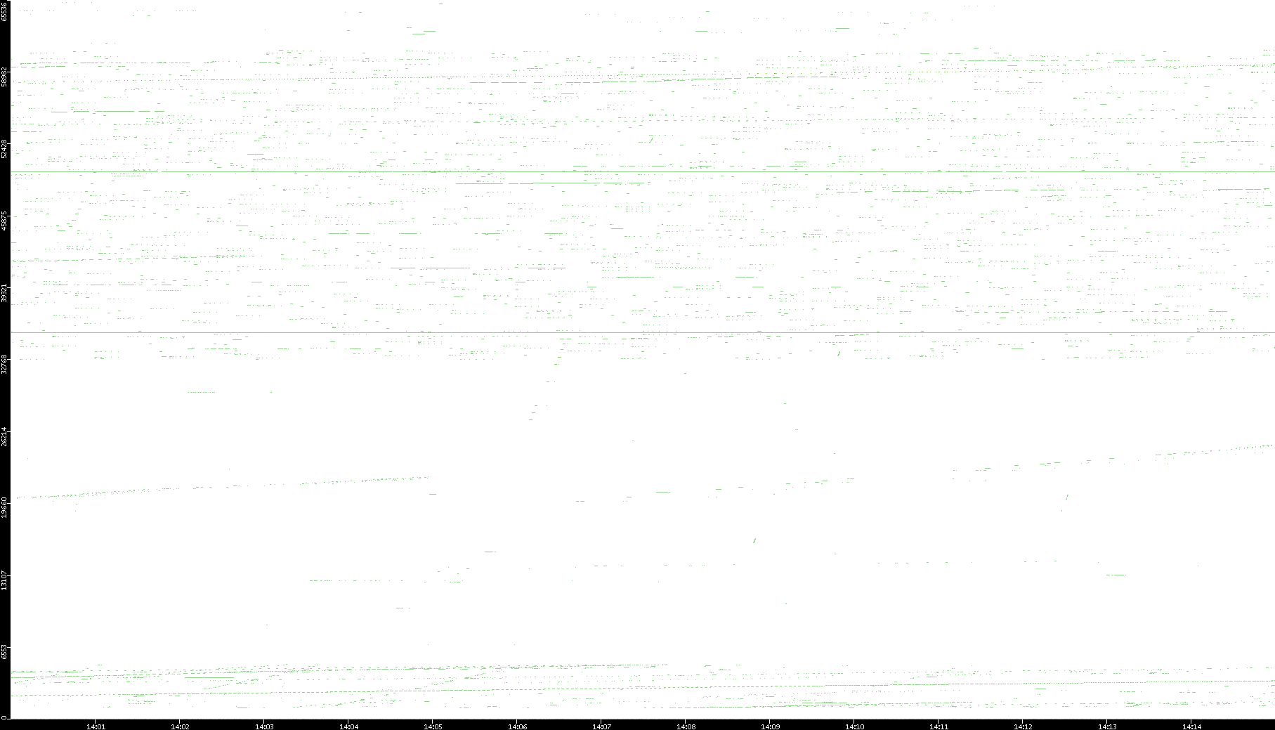 2008/03/14 Dest. IP vs. Time Dest. Port vs. Time Src. IP vs. Time Src. Port vs. Time Nb. of Packets vs. Time Throughput vs. Time Average Packet Size vs. Time Entropy of Port vs. Time