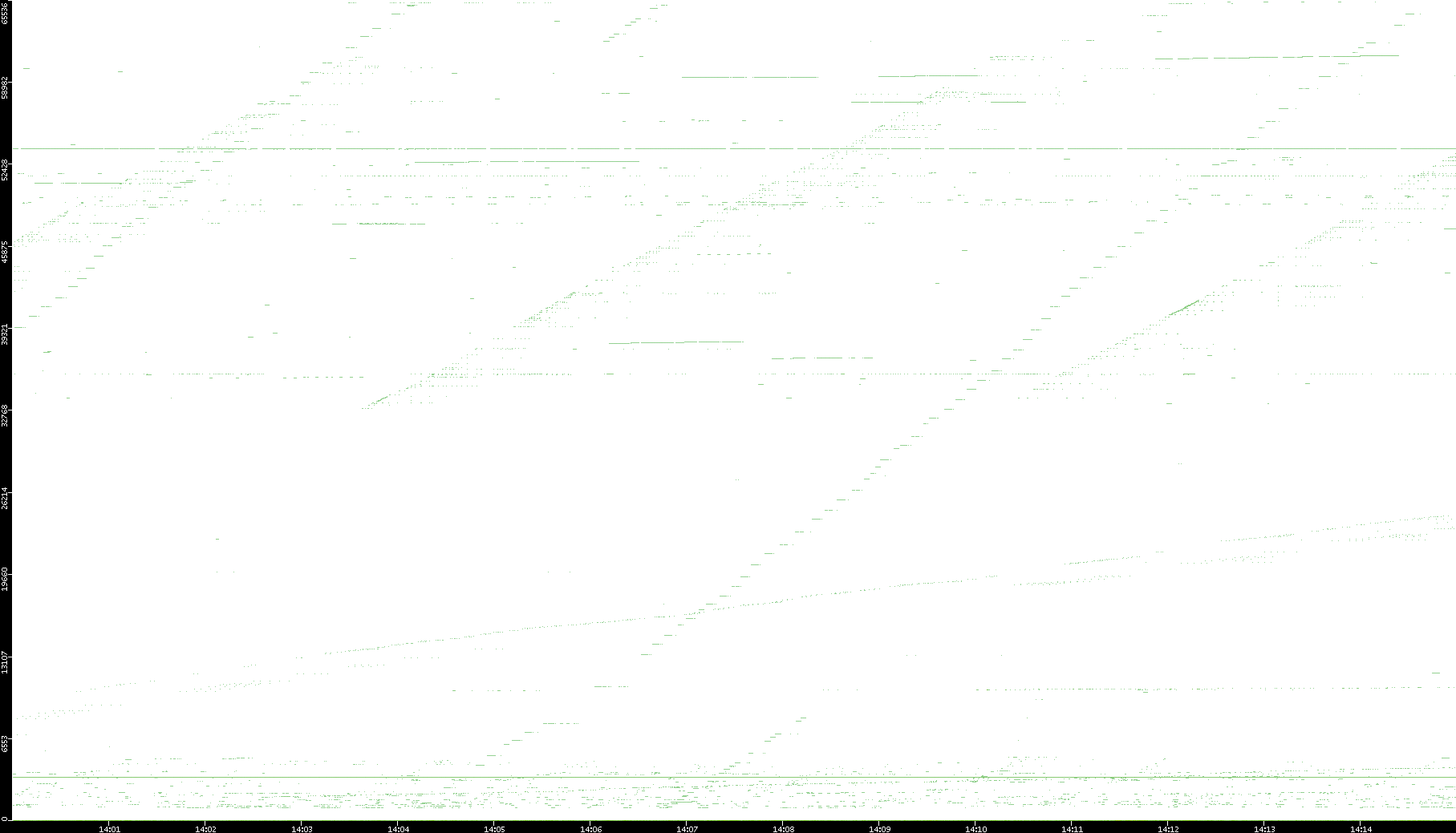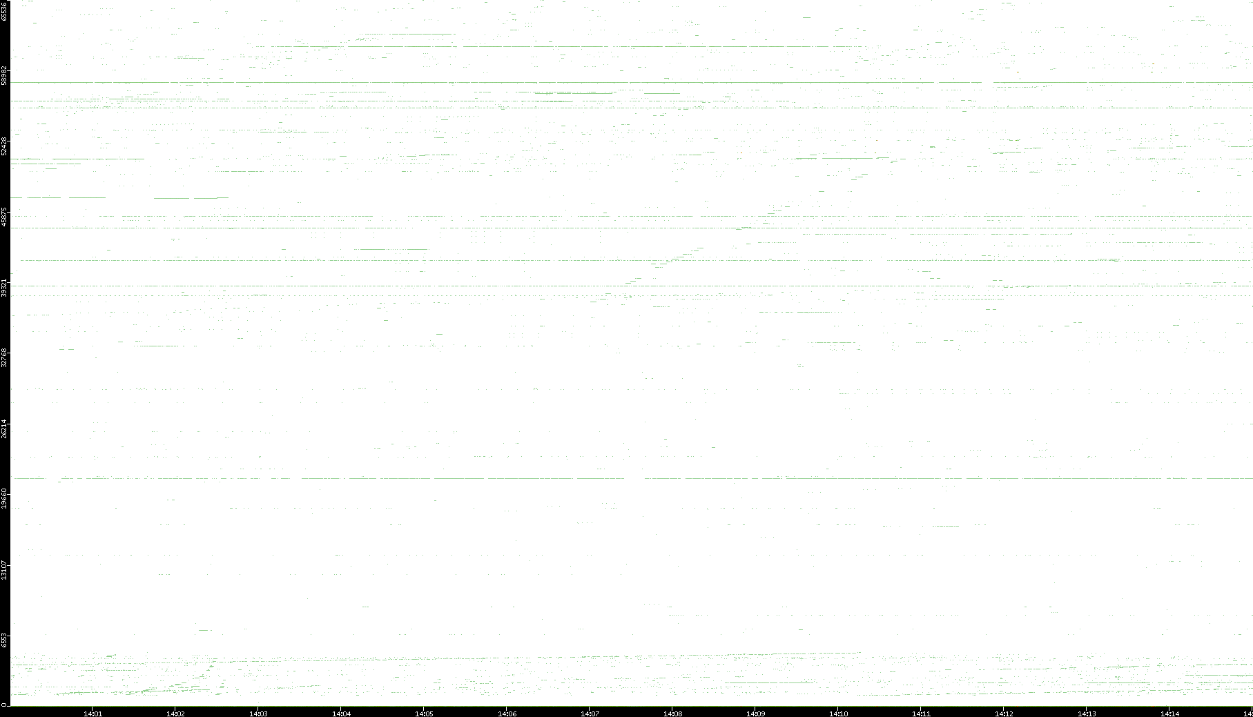 | Date | Dest. IP vs. Time | Dest. Port vs. Time | Src. IP vs. Time | Src. Port vs. Time | Nb. of Packets vs. Time | Throughput vs. Time | Average Packet Size vs. Time | Entropy of Port vs. Time |