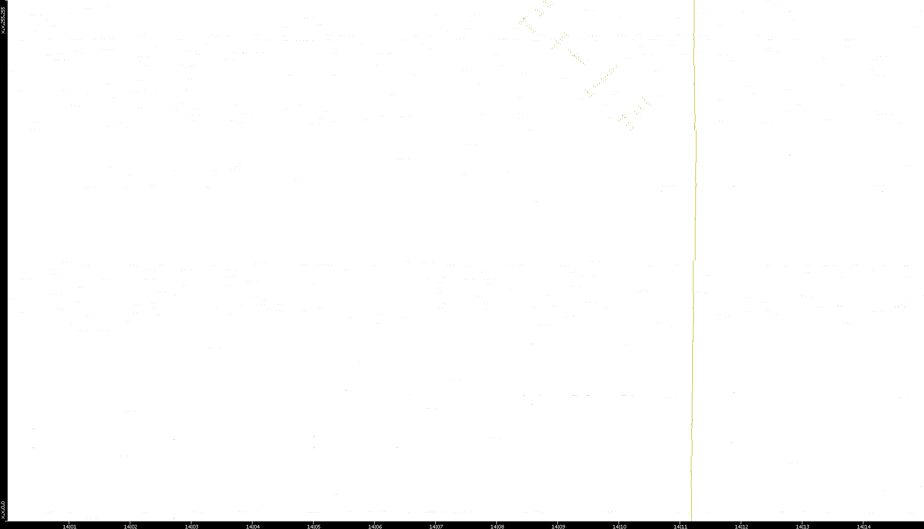2008/11/11 Dest. IP vs. Time Dest. Port vs. Time Src. IP vs. Time Src. Port vs. Time Nb. of Packets vs. Time Throughput vs. Time Average Packet Size vs. Time Entropy of Port vs. Time