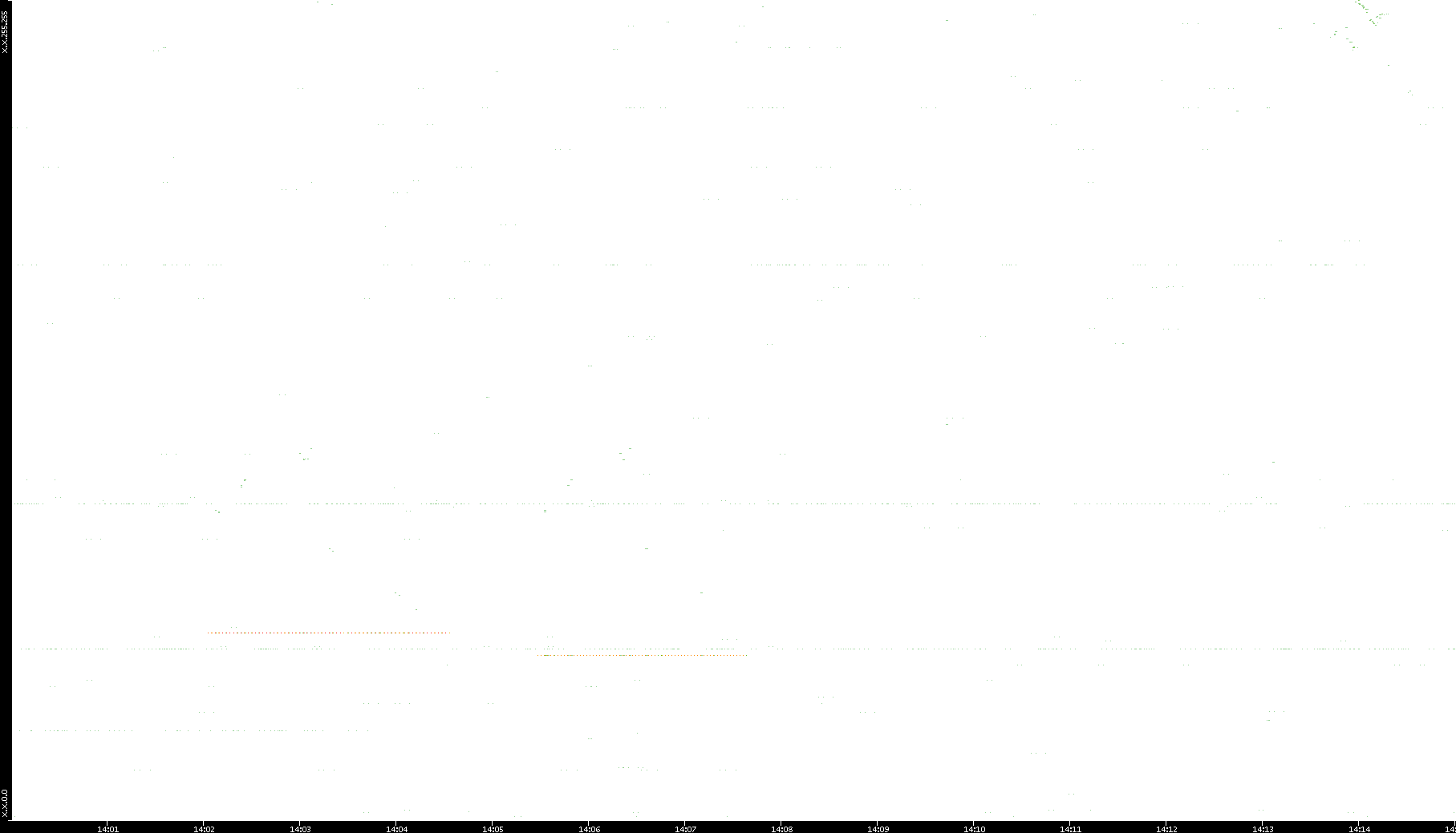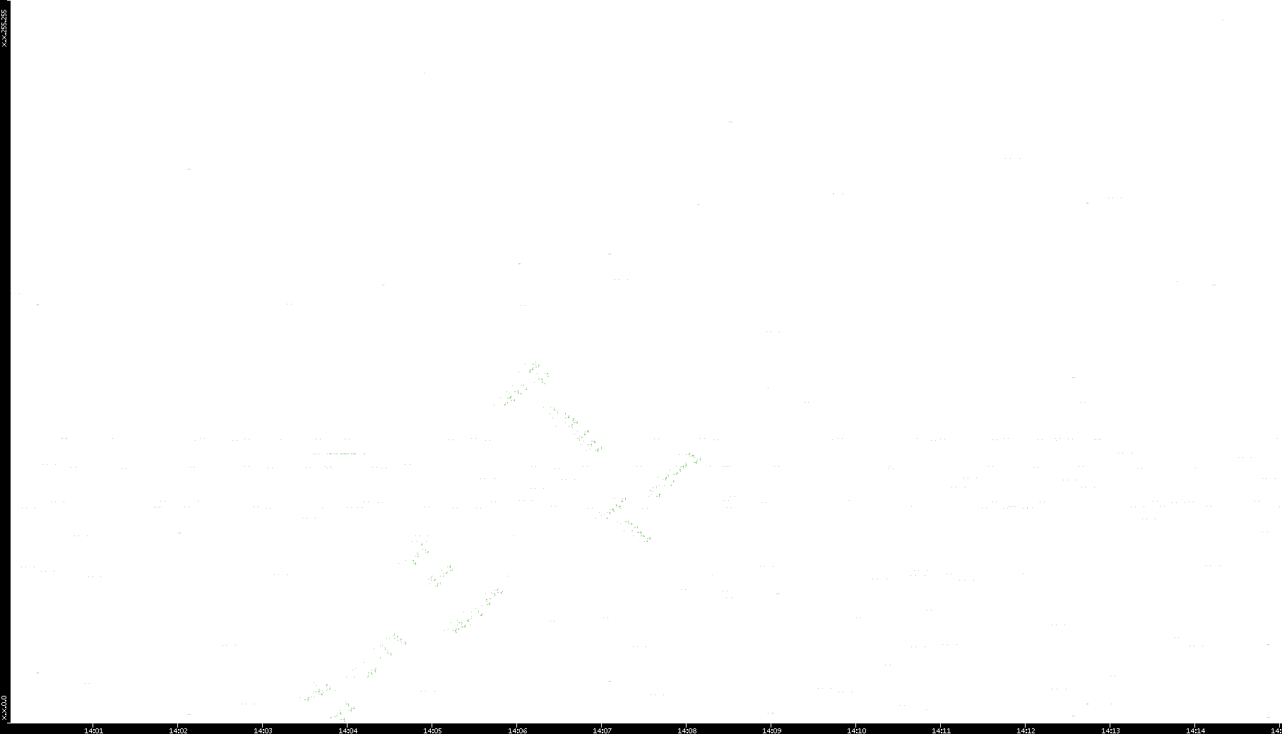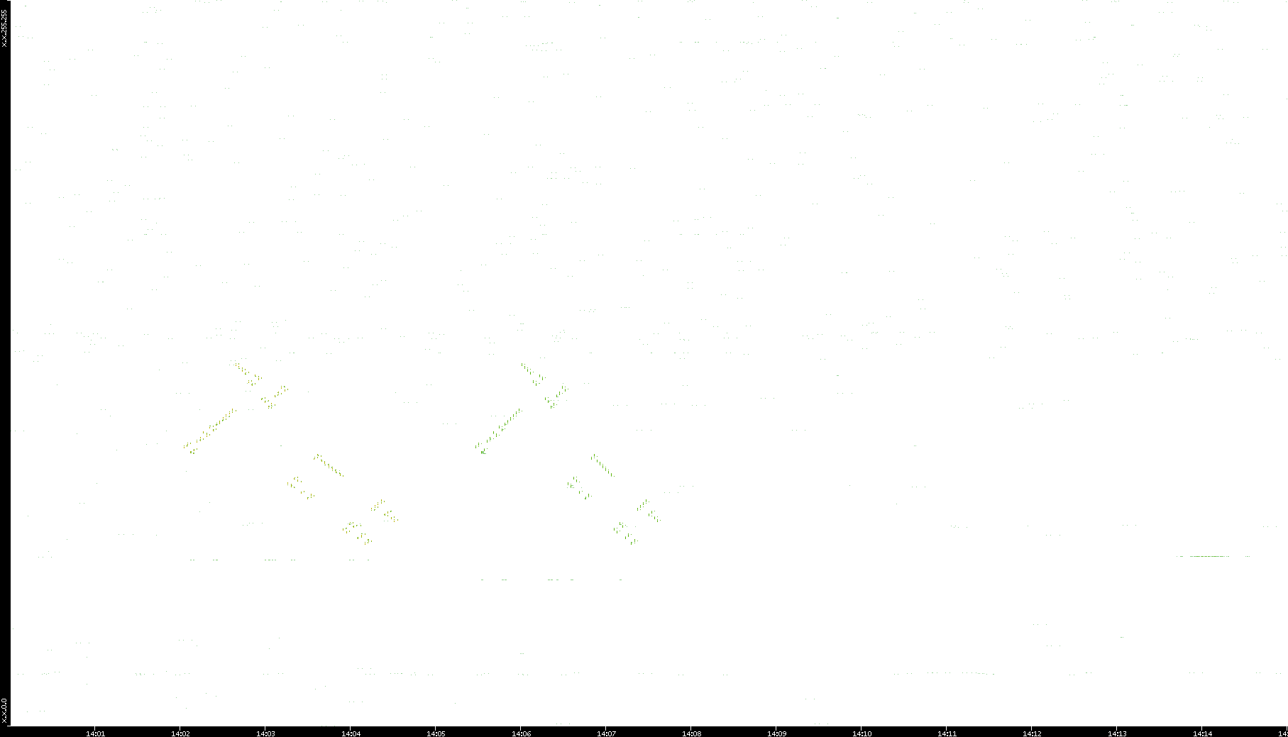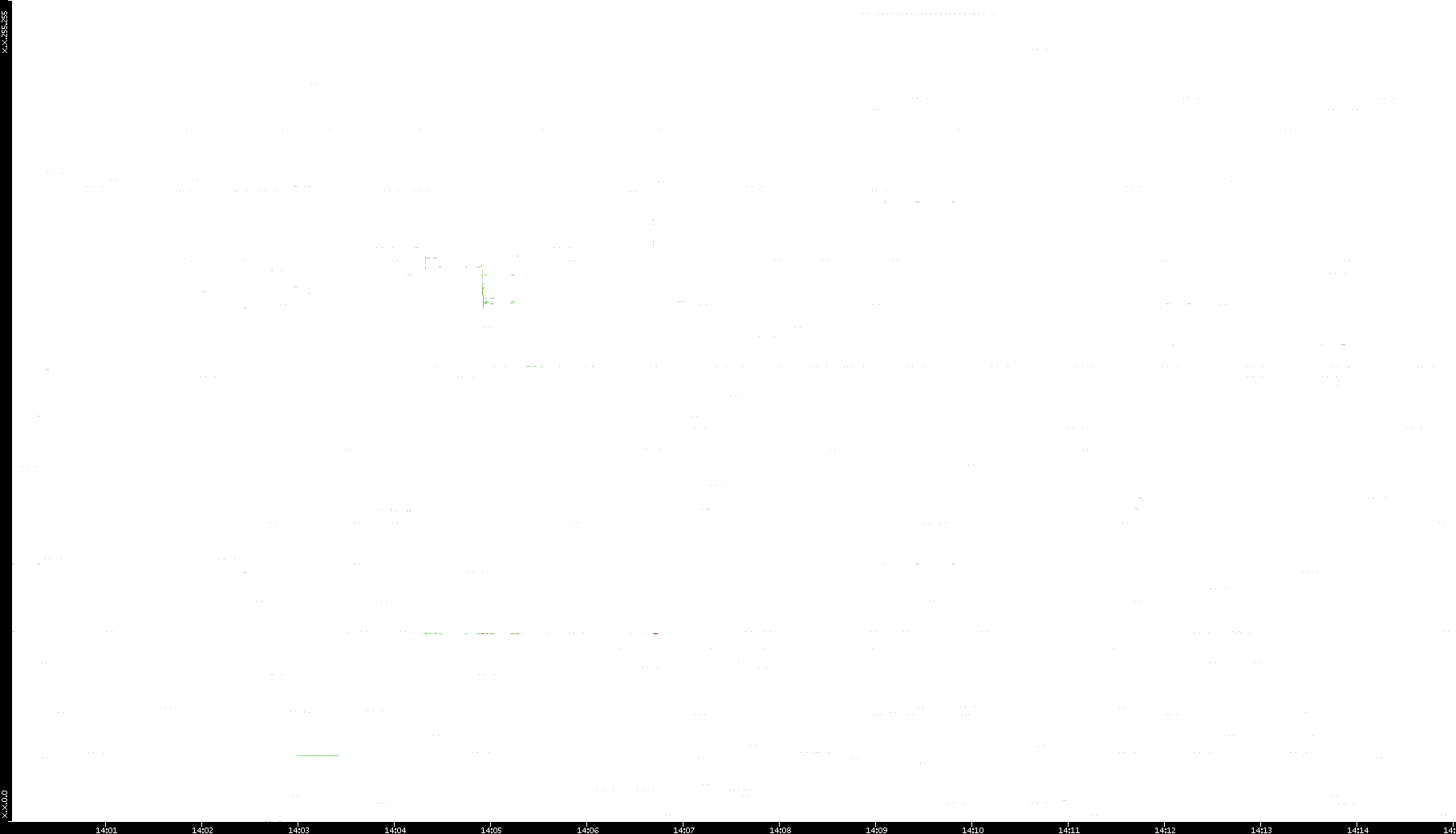 2008/11/03 Dest. IP vs. Time Dest. Port vs. Time Src. IP vs. Time Src. Port vs. Time Nb. of Packets vs. Time Throughput vs. Time Average Packet Size vs. Time Entropy of Port vs. Time